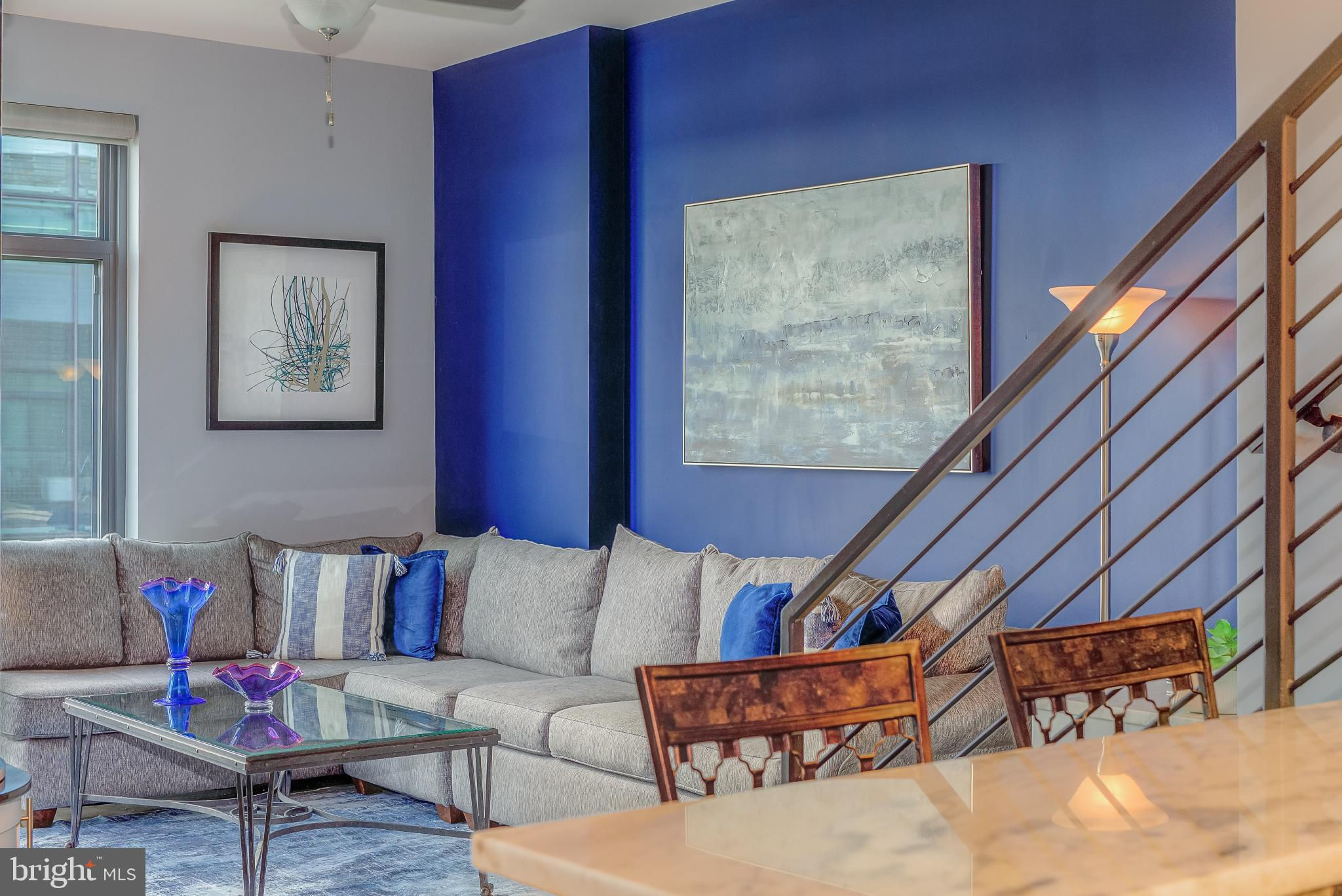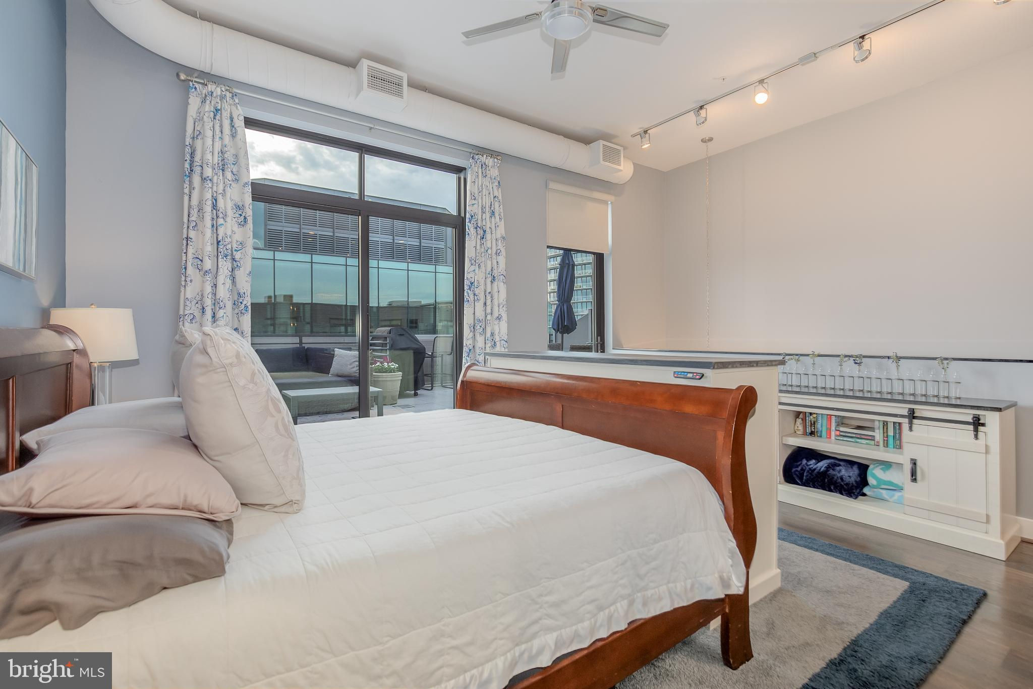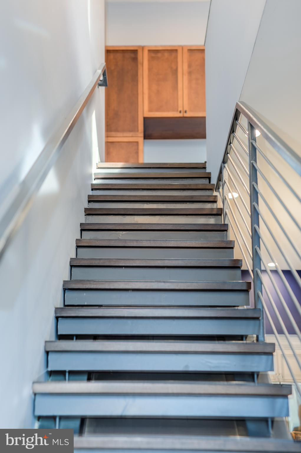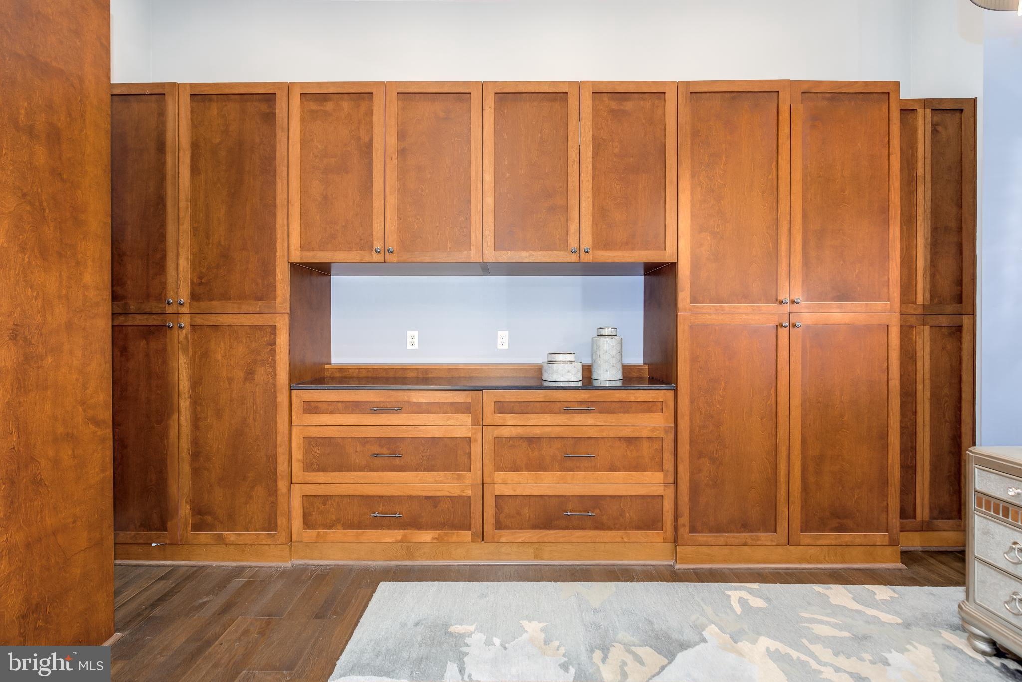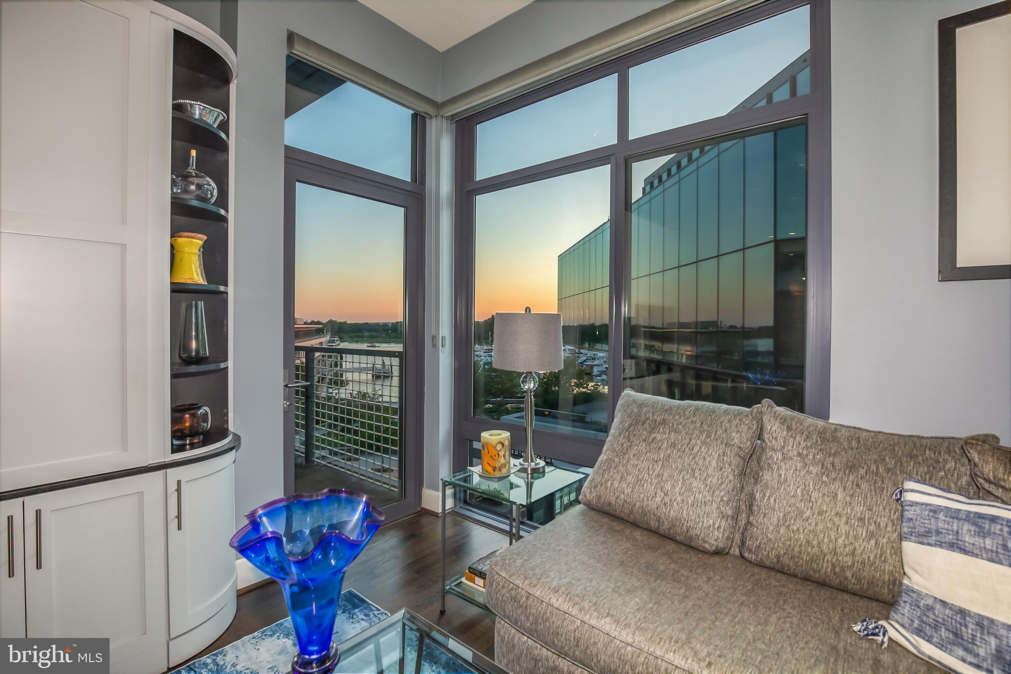 Welcome to Penthouse 403 at 525 Water, an extraordinary two-level condominium in the heart of the Southwest Waterfront. This rare residence offers high ceilings, custom upgrades, two garage parking spaces and a seamless blend of modern comfort and timeless sophistication, all just moments from the energy of The Wharf. Adding to its appeal, Penthouse 403 includes two secure garage parking spaces and an oversized storage unit, an amenity rarely available in the building and highly sought after in city living. The main level opens with ten-foot ceilings and a light-filled living and dining area anchored by a custom-built entertainment center with black granite detailing, a sleek quartzite-topped desk, and a matching full-length display shelf. The gourmet kitchen is both striking and functional, with custom oversized cabinetry and an upgraded, larger island, built-in pantry storage with pull-out shelving, white quartzite countertops, a designer full-height backsplash, and upgraded Electrolux Icon appliances. An InSinkErator instant hot water system and upgraded disposal elevate everyday living, while a private balcony extends the entertaining space outdoors. Completing this level is a spacious bedroom with adjustable closet shelving, and a built-in safe, paired with a beautifully appointed bath featuring white marble shower walls with designer accents, Porcelanosa flooring, granite surfaces, and custom cabinetry with integrated linen storage. Ascending the staircase, the upper-level features soaring eleven-foot ceilings and a dramatic primary suite. This retreat is enhanced by a custom wardrobe and shoe cabinet with granite accents, a dedicated dressing area with large mirrors and integrated lighting, and refined details such as track lighting, a ceiling fan, and exposed spiral ductwork that add a modern edge. The en-suite primary bath is finished with spa-like precision, offering white marble walls and wainscoting, water jet cut stone flooring, a granite vanity with a matching shelf, and a luxurious shower with dual shower heads, a built-in seat and shelving. Beyond the interiors, the residence offers private outdoor living with an expansive terrace designed for al fresco dining and entertaining, complete with a rare gas line for grilling or firepits. Additional thoughtful touches include a custom laundry room with a full-size Electrolux washer and ducted dryer, porcelain tile floors, adjustable shelving, and automatic lighting. Throughout the home, dimmable light fixtures, custom storage solutions, and high-end finishes reflect the attention to detail that defines this one-of-a-kind property. Perfectly positioned within 525 Water, this penthouse places you at the The Wharf’s dynamic waterfront, with premier dining, boutique shopping, entertainment venues, and tranquil green spaces just outside your door. With its expansive layout, bespoke upgrades, and private outdoor terrace, Penthouse 403 represents the pinnacle of waterfront living in Washington, DC.