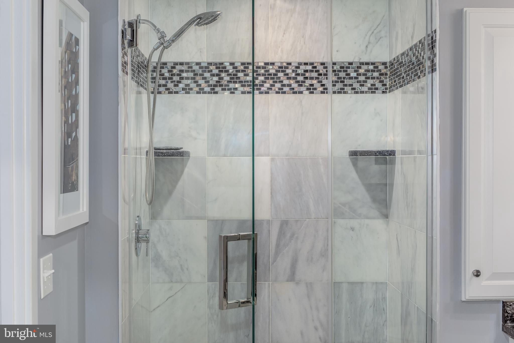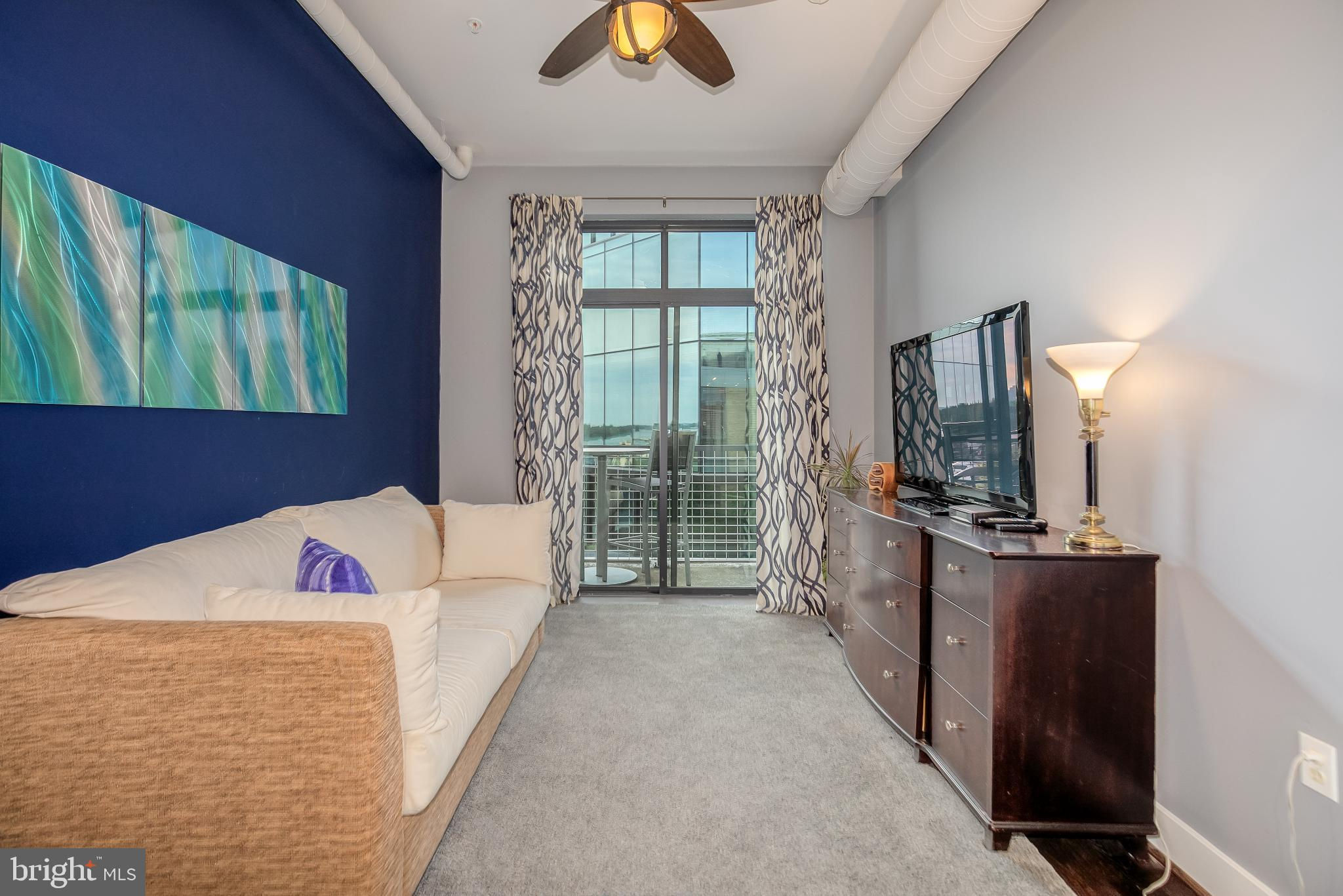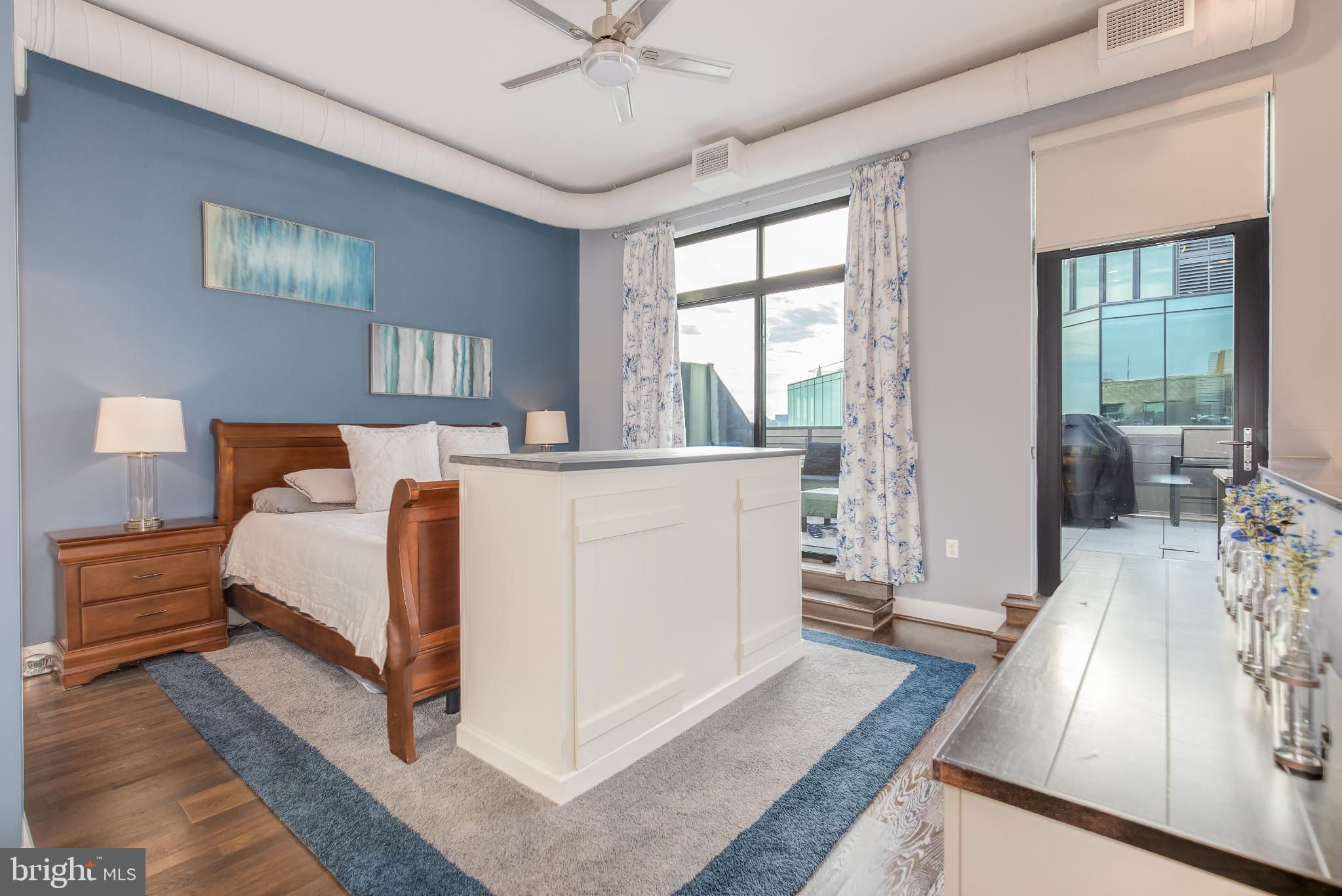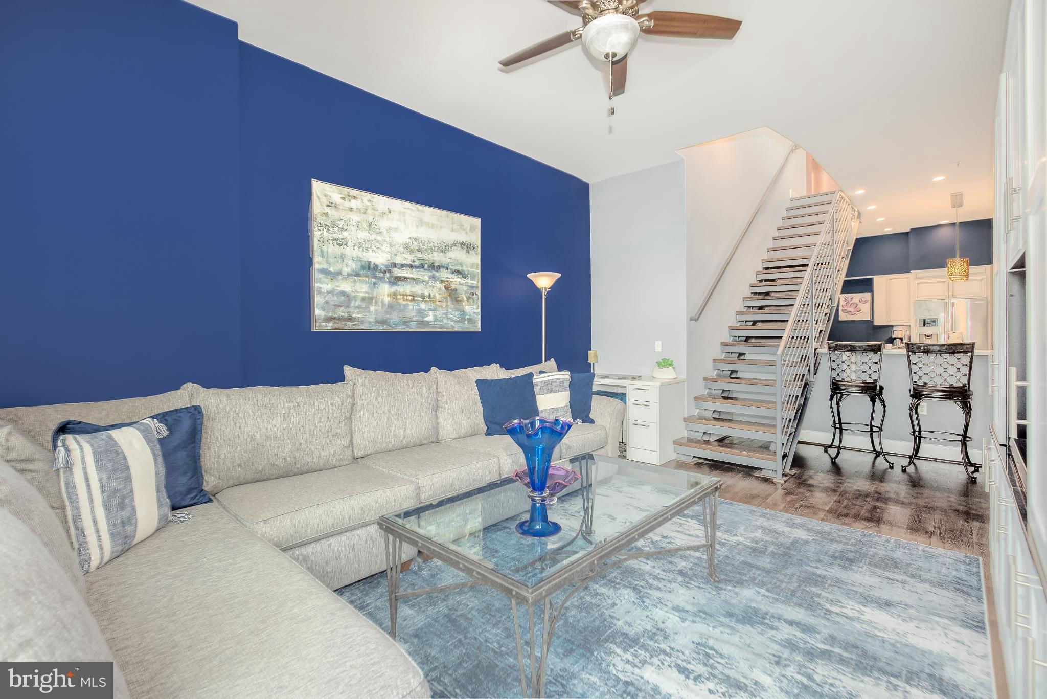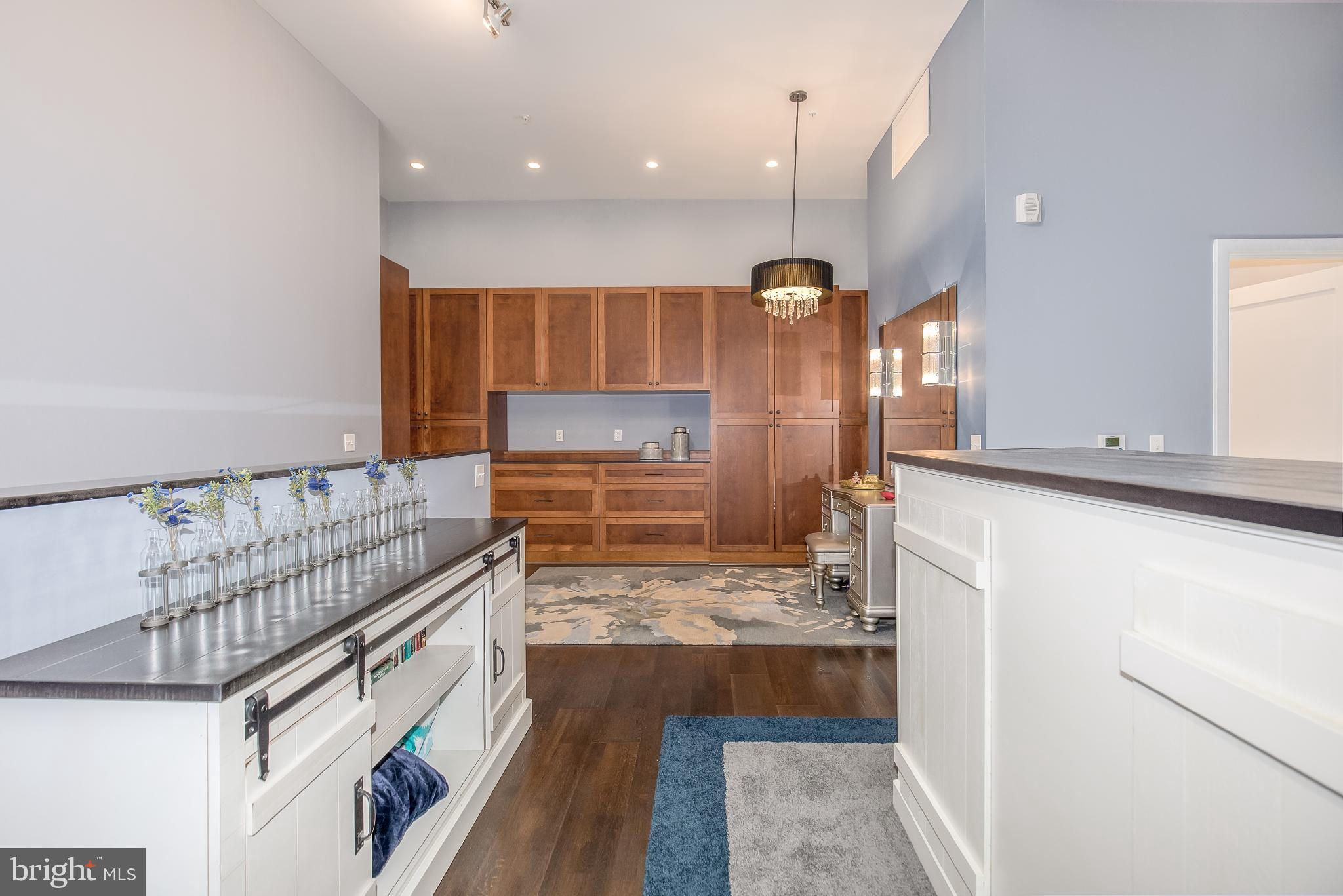 Welcome to Penthouse 403 at 525 Water, an extraordinary two-level condominium in the heart of the Southwest Waterfront. This rare residence offers high ceilings, custom upgrades, two garage parking spaces and a seamless blend of modern comfort and timeless sophistication, all just moments from the energy of The Wharf. Adding to its appeal, Penthouse 403 includes two secure garage parking spaces and an oversized storage unit, an amenity rarely available in the building and highly sought after in city living. The main level opens with ten-foot ceilings and a light-filled living and dining area anchored by a custom-built entertainment center with black granite detailing, a sleek quartzite-topped desk, and a matching full-length display shelf. The gourmet kitchen is both striking and functional, with custom oversized cabinetry and an upgraded, larger island, built-in pantry storage with pull-out shelving, white quartzite countertops, a designer full-height backsplash, and upgraded Electrolux Icon appliances. An InSinkErator instant hot water system and upgraded disposal elevate everyday living, while a private balcony extends the entertaining space outdoors. Completing this level is a spacious bedroom with adjustable closet shelving, and a built-in safe, paired with a beautifully appointed bath featuring white marble shower walls with designer accents, Porcelanosa flooring, granite surfaces, and custom cabinetry with integrated linen storage. Ascending the staircase, the upper-level features soaring eleven-foot ceilings and a dramatic primary suite. This retreat is enhanced by a custom wardrobe and shoe cabinet with granite accents, a dedicated dressing area with large mirrors and integrated lighting, and refined details such as track lighting, a ceiling fan, and exposed spiral ductwork that add a modern edge. The en-suite primary bath is finished with spa-like precision, offering white marble walls and wainscoting, water jet cut stone flooring, a granite vanity with a matching shelf, and a luxurious shower with dual shower heads, a built-in seat and shelving. Beyond the interiors, the residence offers private outdoor living with an expansive terrace designed for al fresco dining and entertaining, complete with a rare gas line for grilling or firepits. Additional thoughtful touches include a custom laundry room with a full-size Electrolux washer and ducted dryer, porcelain tile floors, adjustable shelving, and automatic lighting. Throughout the home, dimmable light fixtures, custom storage solutions, and high-end finishes reflect the attention to detail that defines this one-of-a-kind property. Perfectly positioned within 525 Water, this penthouse places you at the The Wharf’s dynamic waterfront, with premier dining, boutique shopping, entertainment venues, and tranquil green spaces just outside your door. With its expansive layout, bespoke upgrades, and private outdoor terrace, Penthouse 403 represents the pinnacle of waterfront living in Washington, DC.
