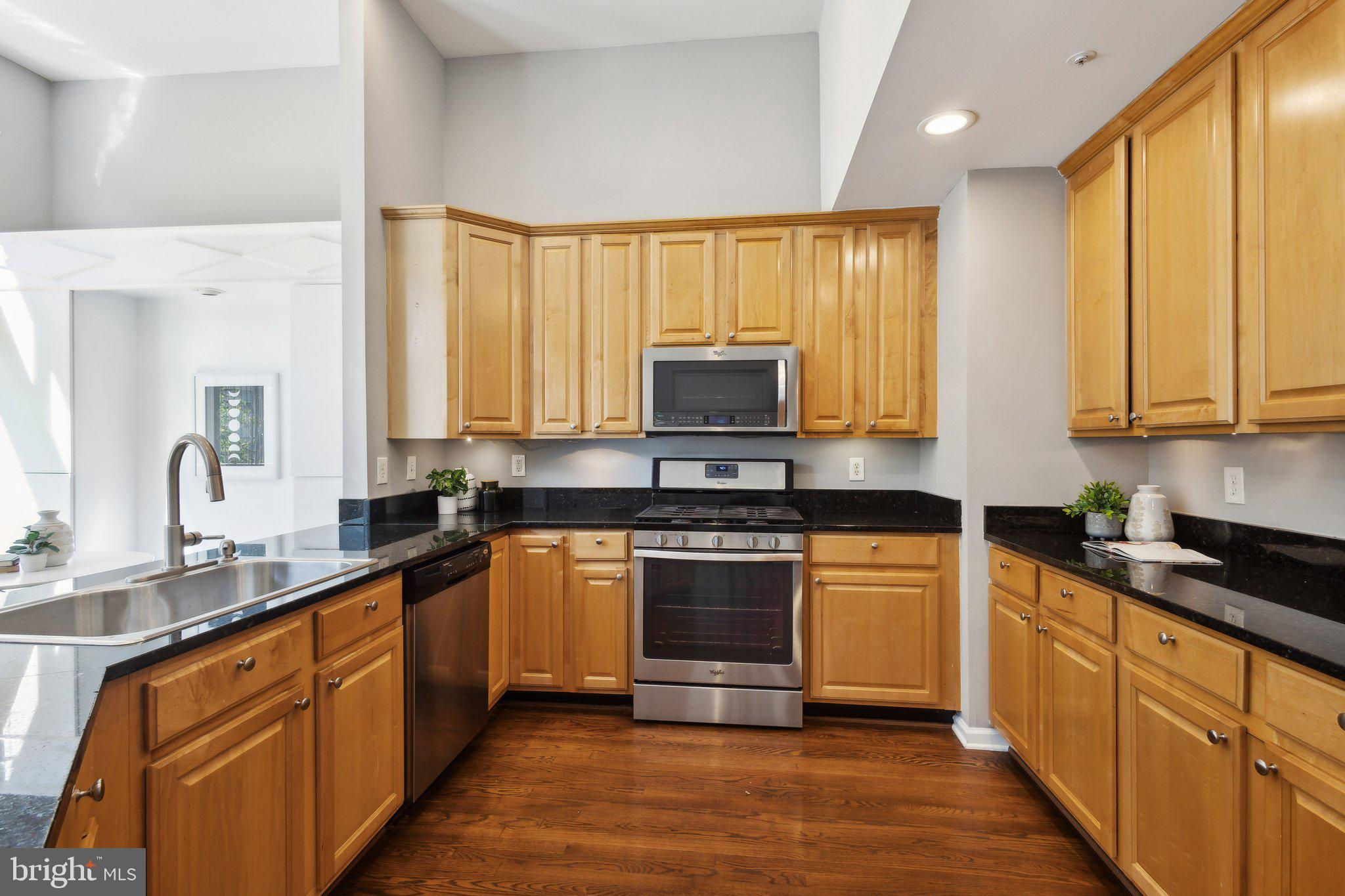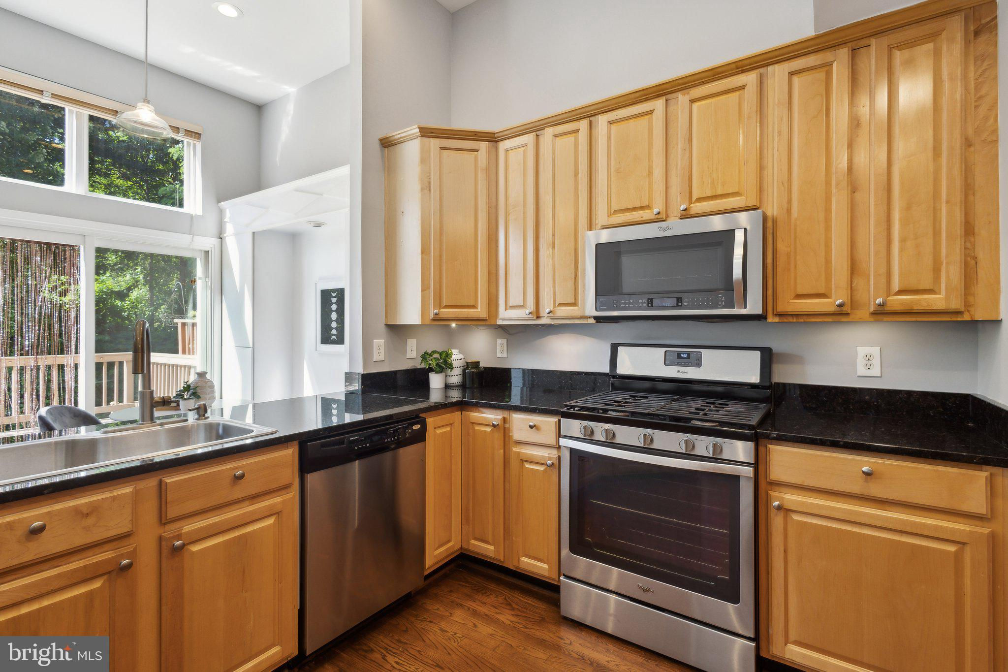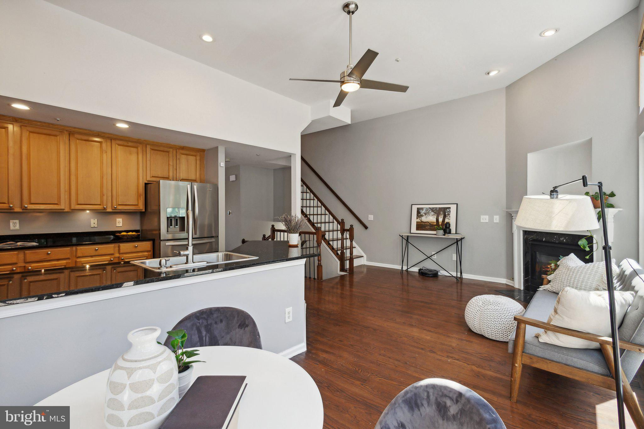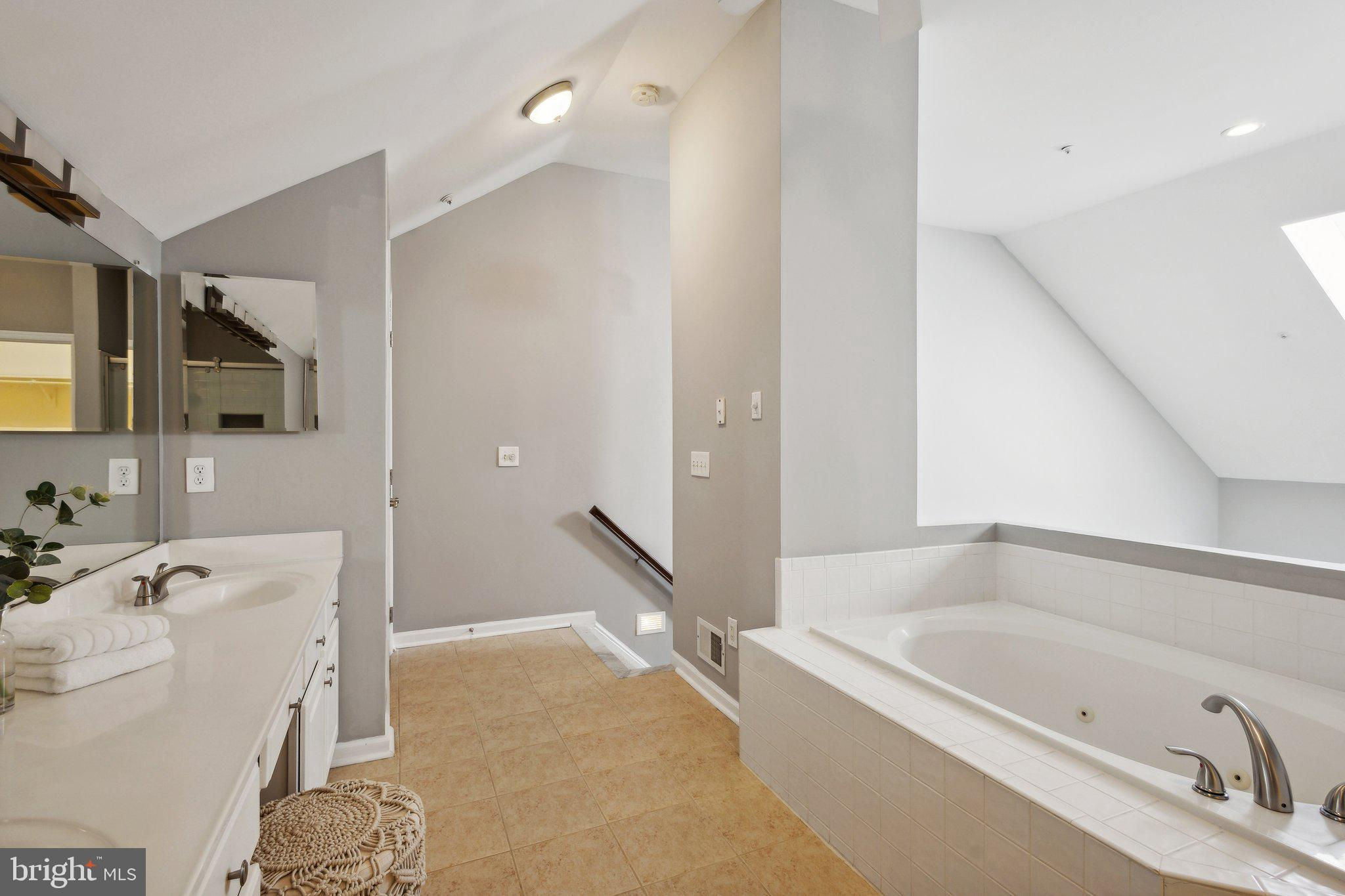 Welcome to Ballycastle Circle! Over 2100 sqft luxury TH. This stunning 3-bedroom, 2/2-bath townhome is a true gem, perfectly situated near Kingstowne and all the public amenities you could desire. Step inside and be captivated by the open floor concept featuring beautiful hardwood floors, soaring high ceilings, modern fixtures, custom built-ins, a cozy fireplace, and skylights that fill the space with abundant natural light. The kitchen is a chef's dream, boasting tall wood cabinetry, sleek stainless steel appliances, and luxurious granite countertops with a wrap-around design. Enjoy the convenience of direct access to the expansive outdoor deck right off the family room—ideal for entertaining and relaxing in style. As you make your way upstairs, you'll discover the elevated split-level master bedroom, complete with vaulted ceilings and a charming corner fireplace. The unique master en-suite overlooks the bedroom through a pass-through and offers double vanities, a private water closet, and an enormous soaking tub, creating a true sanctuary. All additional bedrooms are spacious with lots of storage space to optimize on layout options. The lower level features a versatile open space with plenty of storage, a beautiful fireplace, and large windows that look onto the private enclosed patio, providing additional flex space for your enjoyment. Enjoy the extensive list of amenities included which are a bike trail, community center, fitness center, jogging path, party room, pool, tennis courts, volleyball courts and playground. Conveniently located near shops, fine dining, grocery stores, parks, public transit and so much more!