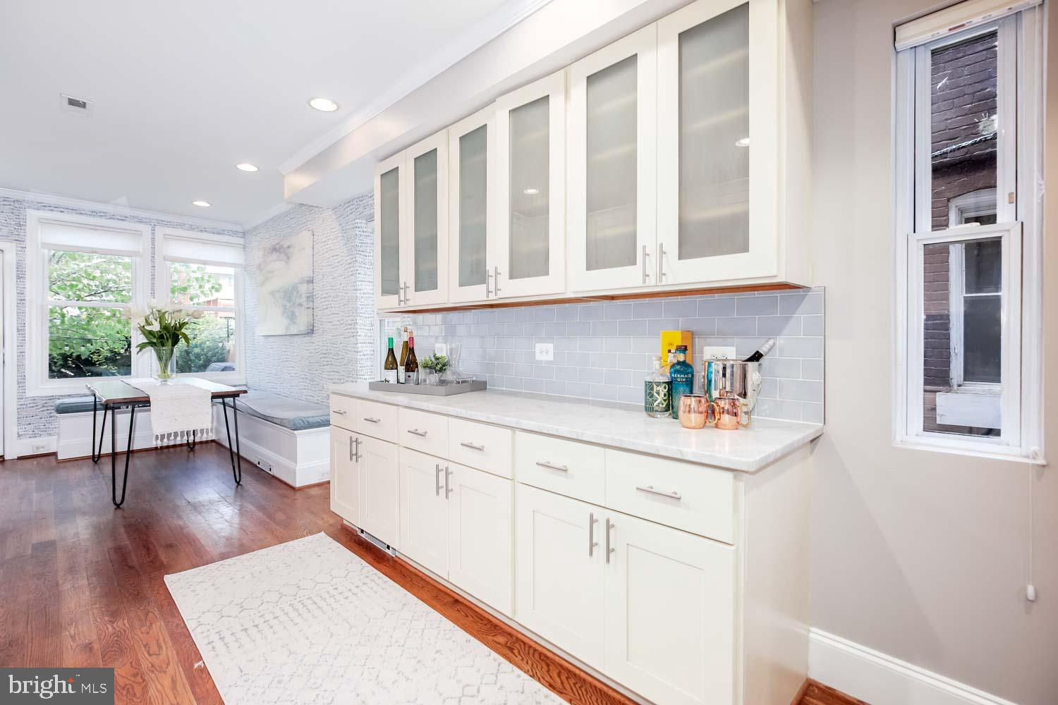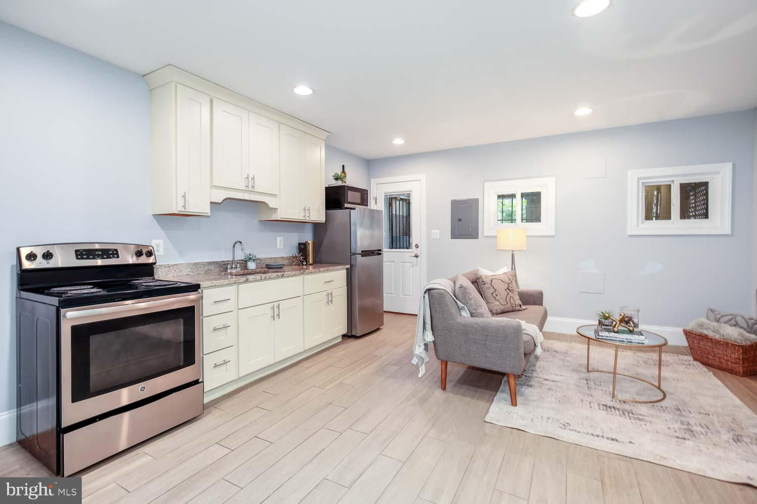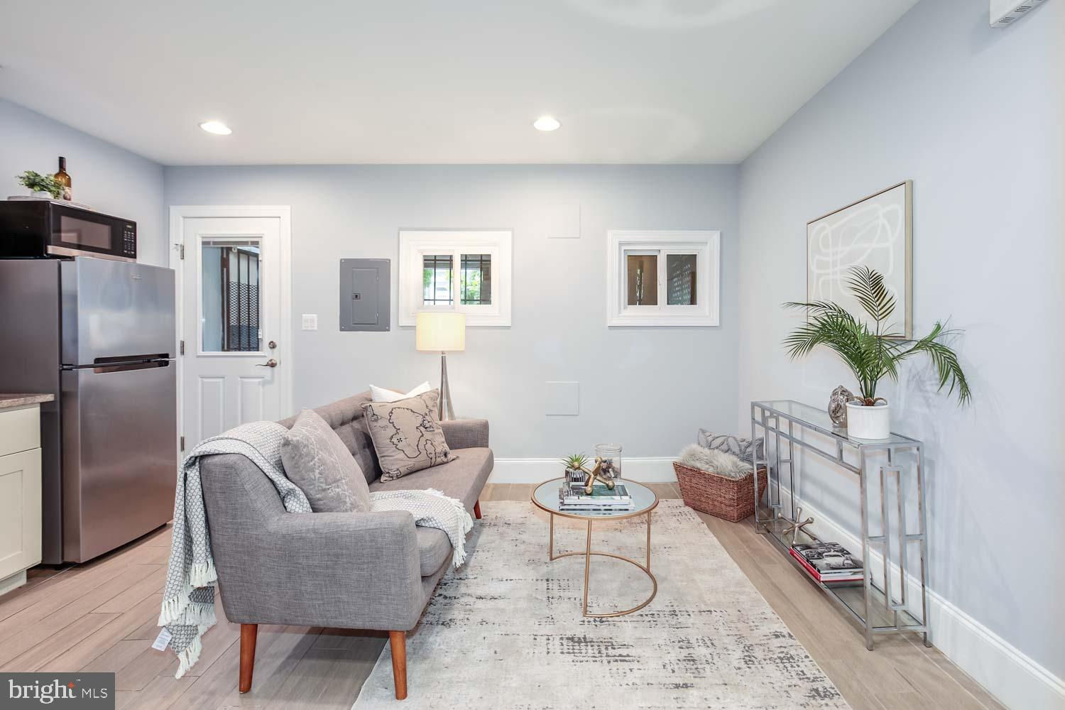 ** RARE DETACHED GARAGE + 2-Bedroom Basement Rental** Perched high above the street in the desirable Park View neighborhood, this recently renovated rowhouse at 531 Irving Street Northwest offers a striking contemporary design and high-quality craftsmanship. The elegant three-level home boasts 5 bedrooms, 3.5 bathrooms, and a detached garage. Step inside to discover hardwood oak floors, honed Carrara marble, and exposed brick, creating a sophisticated ambiance throughout the almost 3,000 square feet of living space. The upper floor features 3 bedrooms and 2 bathrooms, while the lower level includes an optional 2-bedroom income producing rental/AIRBNB with a full kitchen, and front and rear egress. This smartly designed home offers a seamless blend of modern luxury and urban convenience, providing the perfect retreat in the heart of the city. Enjoy a short walk to coffee shops, restaurants, and the recently developed Reservoir District boasting DC’s newest recreation center and the upcoming opening of Whole Foods grocery and 15,000 square feet of new retail.