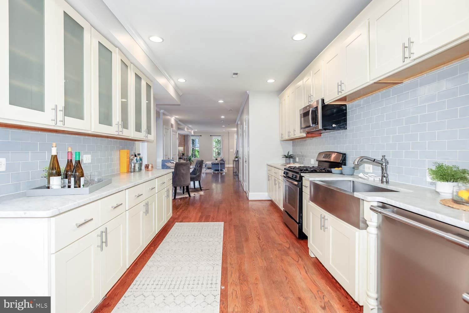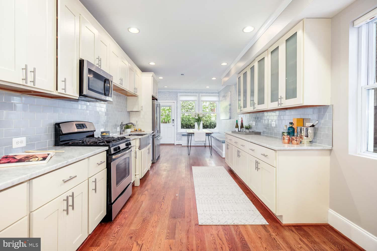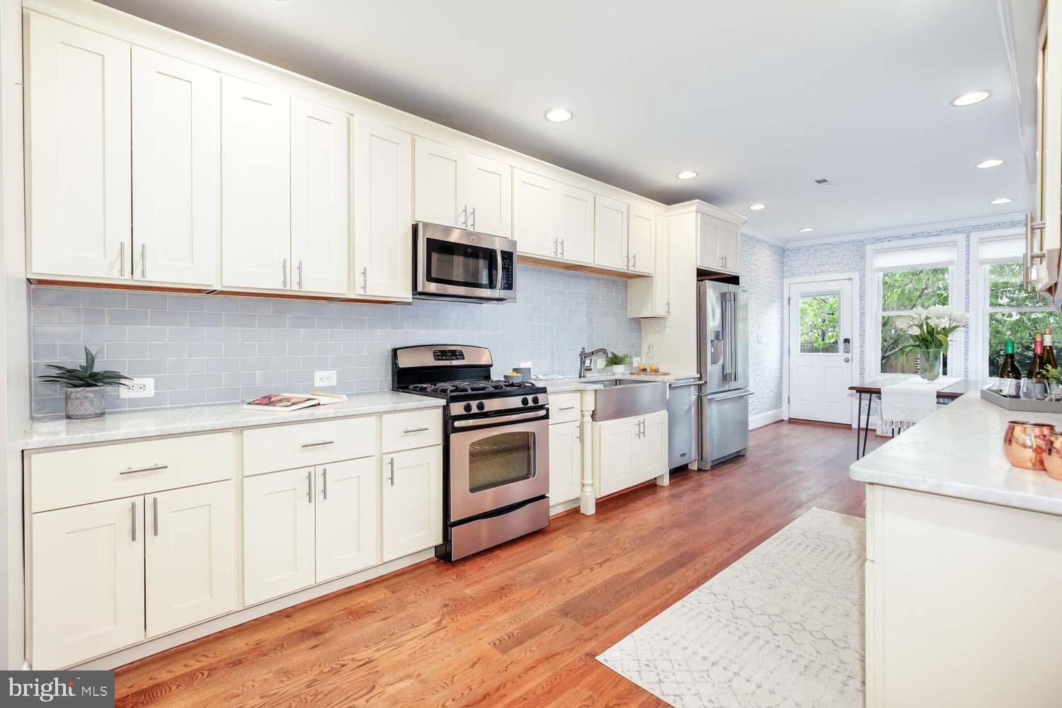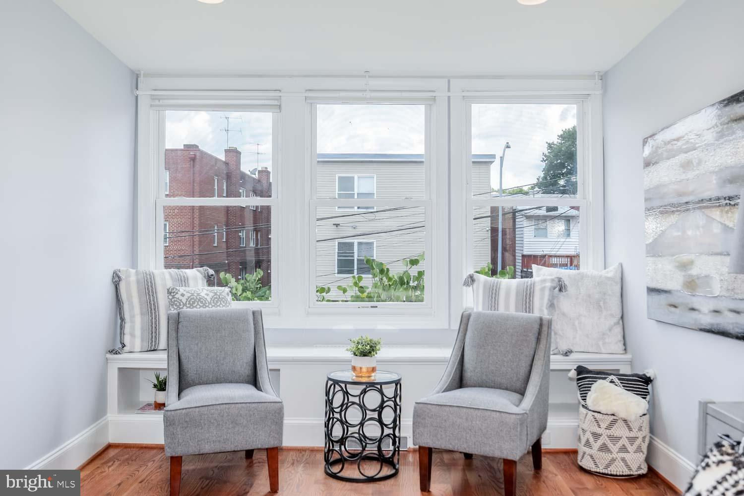 ** RARE DETACHED GARAGE + 2-Bedroom Basement Rental** Perched high above the street in the desirable Park View neighborhood, this recently renovated rowhouse at 531 Irving Street Northwest offers a striking contemporary design and high-quality craftsmanship. The elegant three-level home boasts 5 bedrooms, 3.5 bathrooms, and a detached garage. Step inside to discover hardwood oak floors, honed Carrara marble, and exposed brick, creating a sophisticated ambiance throughout the almost 3,000 square feet of living space. The upper floor features 3 bedrooms and 2 bathrooms, while the lower level includes an optional 2-bedroom income producing rental/AIRBNB with a full kitchen, and front and rear egress. This smartly designed home offers a seamless blend of modern luxury and urban convenience, providing the perfect retreat in the heart of the city. Enjoy a short walk to coffee shops, restaurants, and the recently developed Reservoir District boasting DC’s newest recreation center and the upcoming opening of Whole Foods grocery and 15,000 square feet of new retail.