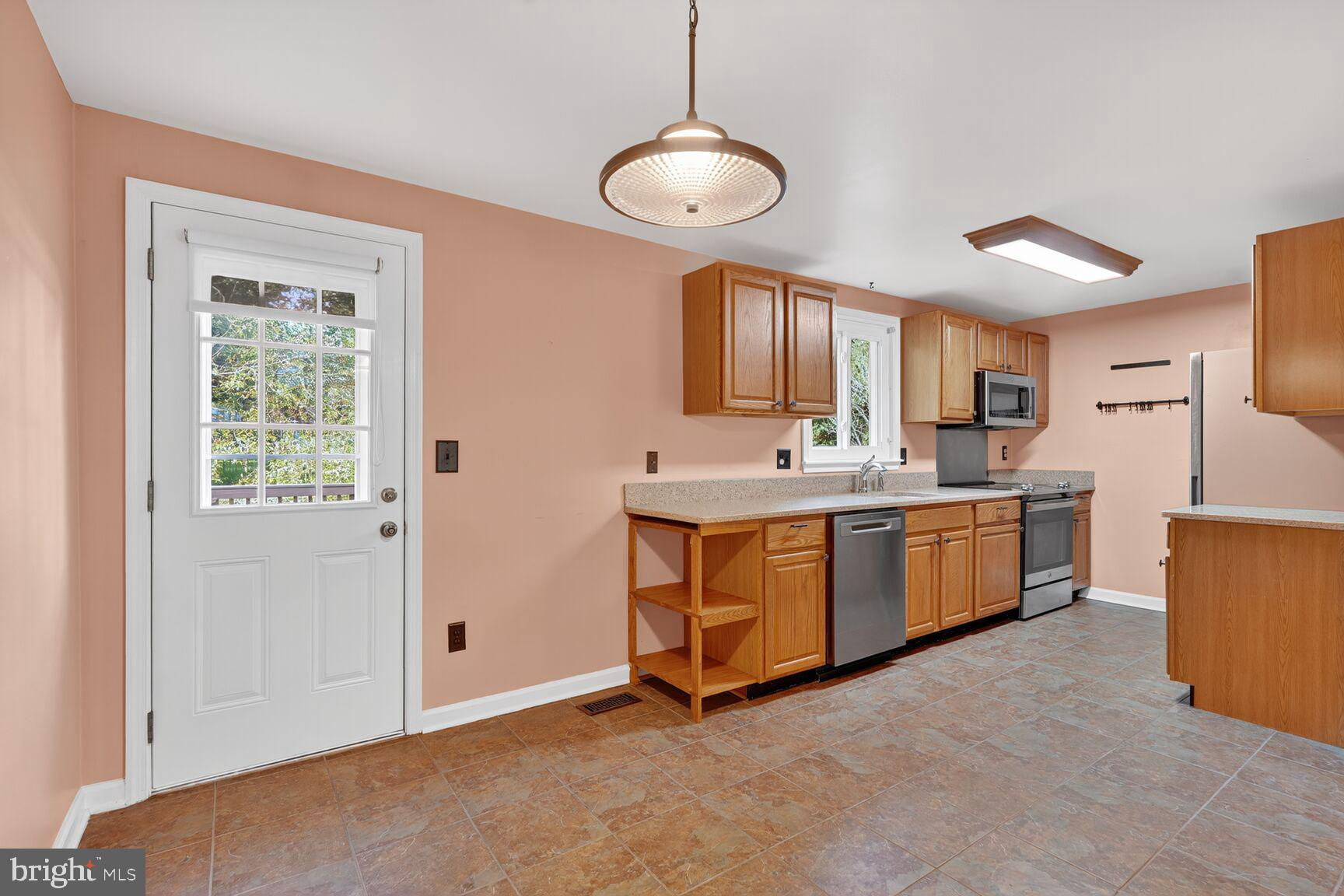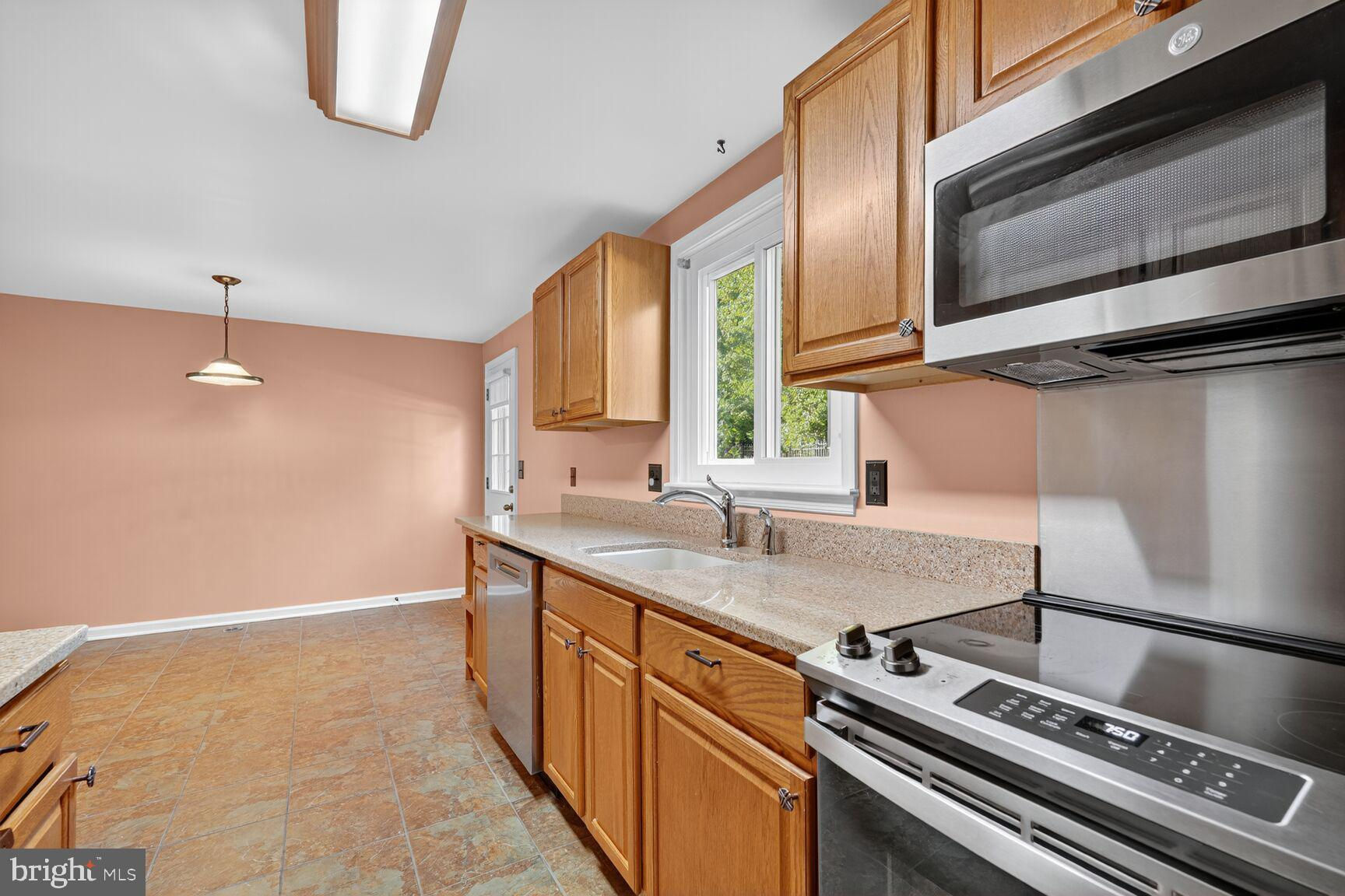 Welcome to 5320 Larochelle Court, a stunning Carlisle model backing to trees in Alexandria's sought-after Tartan Village! This beautifully updated 3-bedroom, 3.5-bath home features new carpet on the lower level, plantation shutters and vinyl tilt-in windows throughout. The spacious living area offers gleaming hardwood floors and two double windows that fill the space with natural light. The large eat-in kitchen boasts ceramic tile flooring, stainless steel appliances, and sleek granite countertops. From the kitchen, step out to the expansive back deck that spans the width of the home—a perfect spot to grill with friends or unwind with a cup of coffee and a good book. Upstairs, you'll find three generously sized bedrooms, including a bright owner’s suite with three windows and a private en-suite bath. The lower level includes a full bathroom, recessed lighting, a sizable rec room and a laundry area with extra storage space. Outside, the fully fenced yard is surrounded by peaceful trees. Tenants will appreciate two assigned parking spaces and close proximity to major commuter routes, shopping, restaurants, the Metro, Old Town Alexandria, and more—this home truly has it all! Owner will consider 1 small pet under 40 pounds with $500 pet deposit.