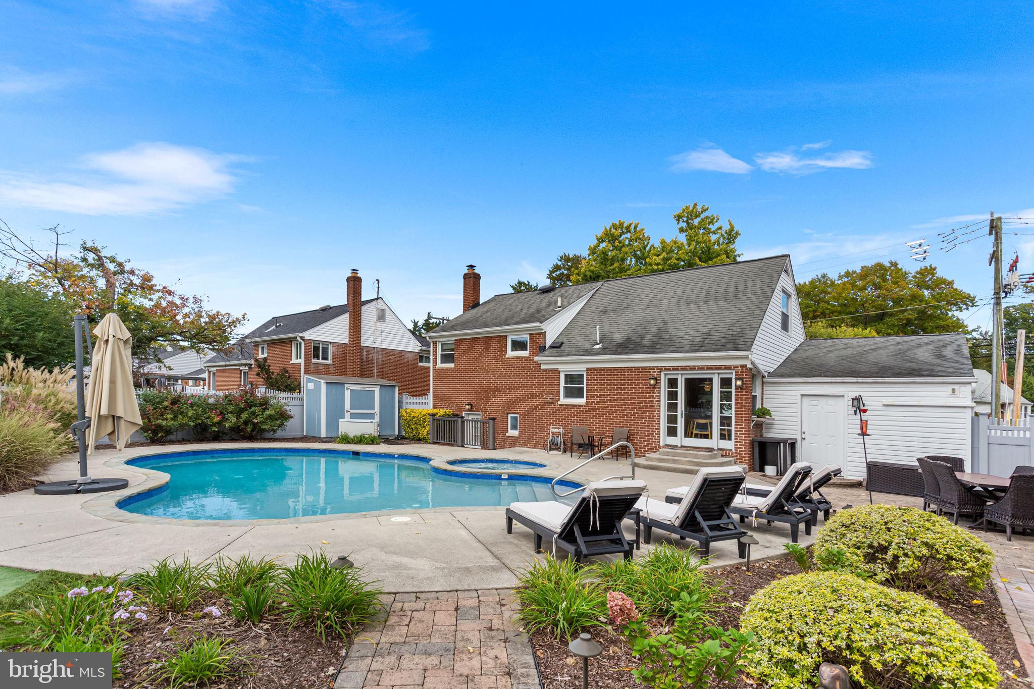 Welcome to The Taney Retreat, a charming all-brick home in Alexandria offering over 2,100 finished square feet across four levels. This 3-bedroom, 2-bathroom residence perfectly balances comfort, flexibility, and outdoor living. The main level features an open, light-filled layout with an updated kitchen and breakfast bar, a separate dining area, and a spacious living room that makes entertaining effortless. Upstairs, the bedrooms are generously sized, and the full bathroom has been tastefully updated. The finished lower level offers a cozy family room with a gas fireplace, built-ins, a wet bar, and an updated full bathroom—ideal for movie nights or hosting guests. Outside, the backyard truly steals the show. Enjoy a heated in-ground pool, relaxing jacuzzi, and private putting green surrounded by lush landscaping. The patio area is perfect for outdoor dining, barbecues, or lounging poolside on a quiet afternoon. The converted garage includes a mini-split heating and cooling system for year-round use, the encapsulated crawl space adds valuable storage, and a whole-house generator provides peace of mind year-round. Centrally located with easy access to I-395, I-495, and the Van Dorn Metro Station, commuting to Arlington, Old Town, and DC is simple. Nearby favorites like Clyde’s at Mark Center, Ramparts Tavern, and Café Pizzaiolo, along with the new West End development, make this location hard to beat.