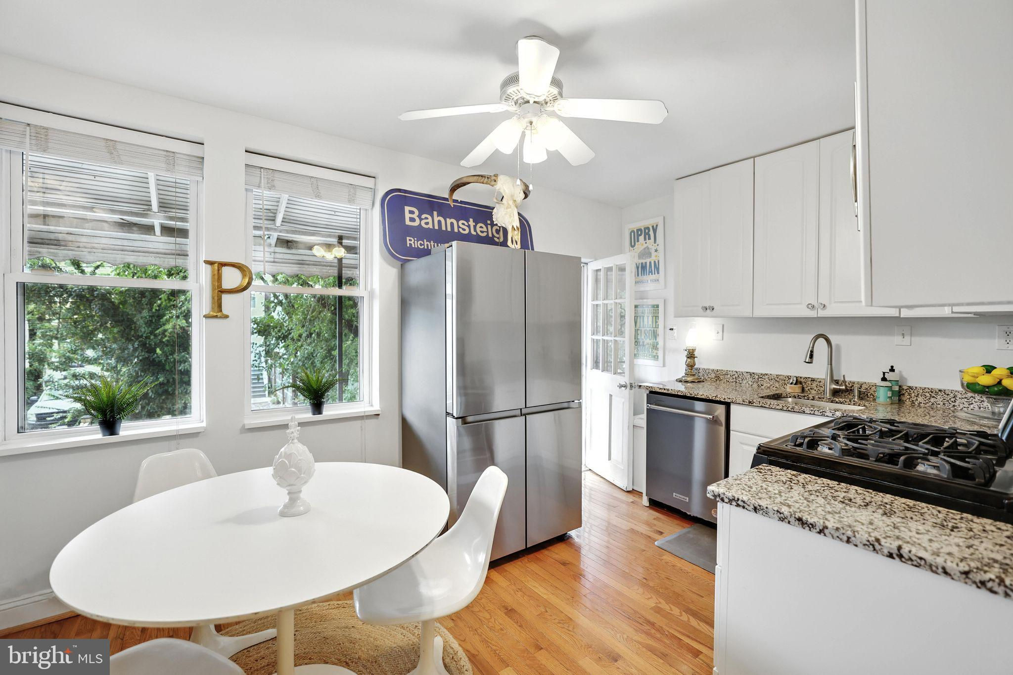 This classic 1920's Wardman rowhome has been impeccably cared for and stylishly renovated, blending timeless character with smart updates. With fully paid-off solar panels, income-generating SRECs, and a lower level with rental potential, this home is as smart as it is beautiful. Inside, the main level shines with warm hardwood floors, natural light, and an open yet defined floor plan that flows seamlessly from the living and dining areas into a stunning white shaker-cabinet kitchen. A convenient half bath completes this level. Upstairs, two spacious bedrooms offer great closet storage, along with a newly renovated full bath and a dedicated laundry room. The lower level expands your options with new flooring, a living room with fireplace, kitchen, bedroom area, full bath, and its own washer/dryer plus separate HVAC. With front and rear entrances, it’s an ideal in-law suite, guest quarters, or rental space. Outside, enjoy a classic Wardman front porch and landscaped walkway. Even better, the solar panels not only offset energy usage but also generate valuable income through SRECs. Located near the H Street Corridor, Kingman Island, the Anacostia River, bike trails, and the DC Streetcar—with RFK Stadium’s exciting redevelopment just around the corner—this home offers move-in readiness, strong equity potential, and the perfect balance of city vibrancy and natural escape.