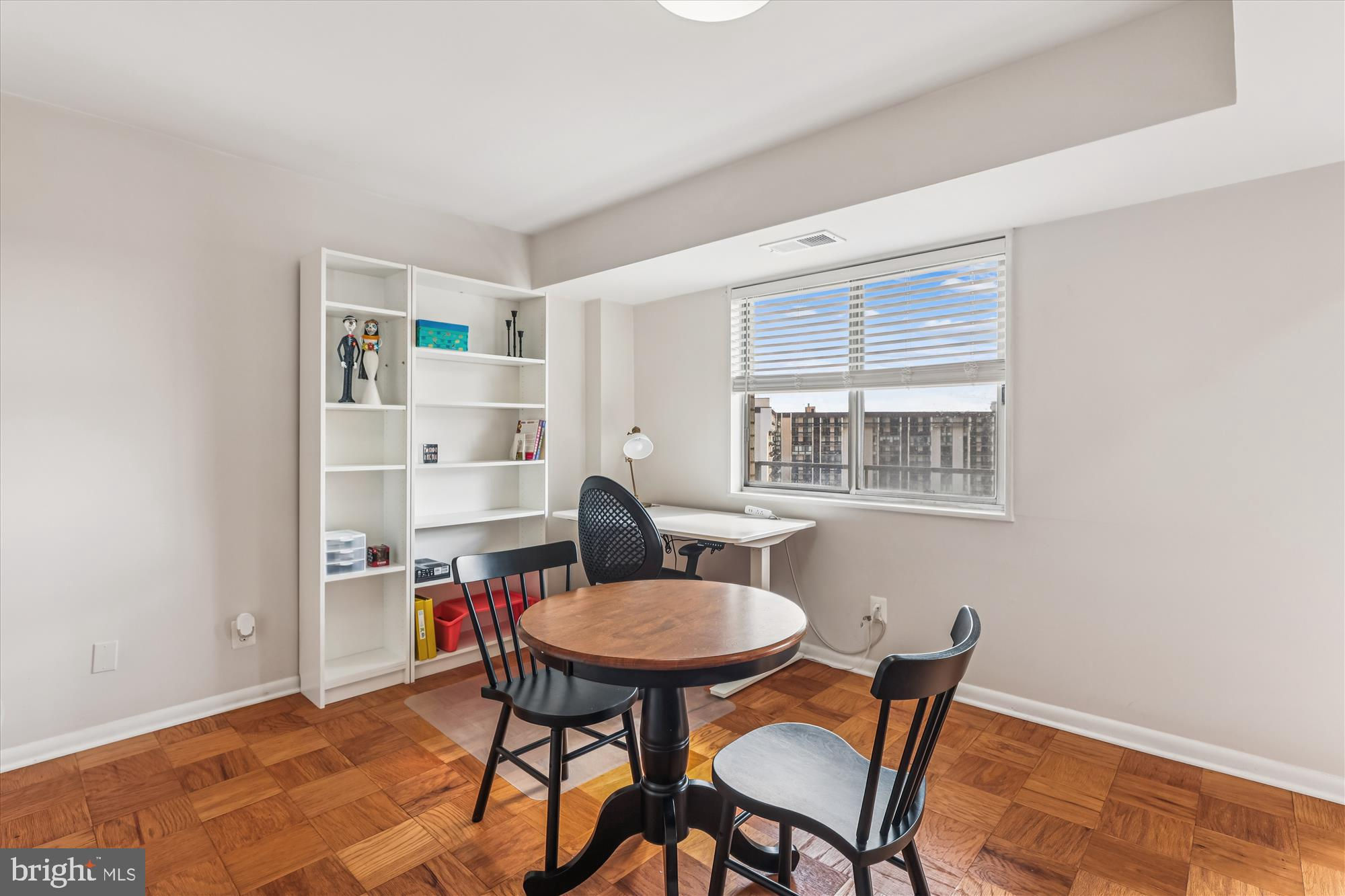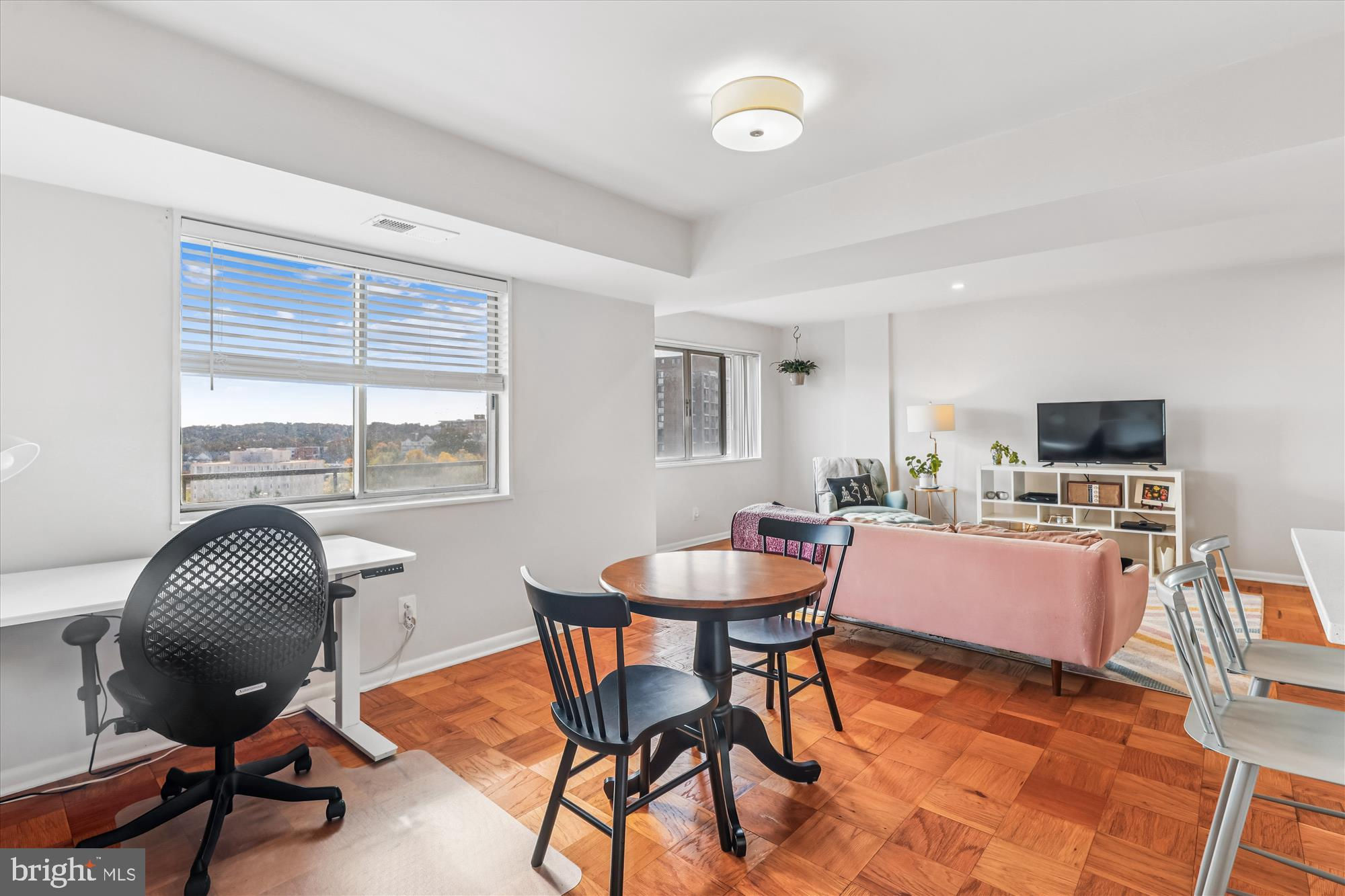 Welcome to Pavilion on the Park! This beautifully updated one-bedroom, one-bath condo features a modern kitchen, stylish flooring, and custom paint throughout. The spacious primary bedroom offers a large walk-in closet, while the bright, light-filled living room showcases sweeping views of Holmes Run Park. Enjoy your morning coffee on the private balcony or take part in the community garden. Perfectly situated in Alexandria’s sought-after West End, this home is just minutes from the new INOVA hospital campus, 395, 495, shopping, restaurants, and more.