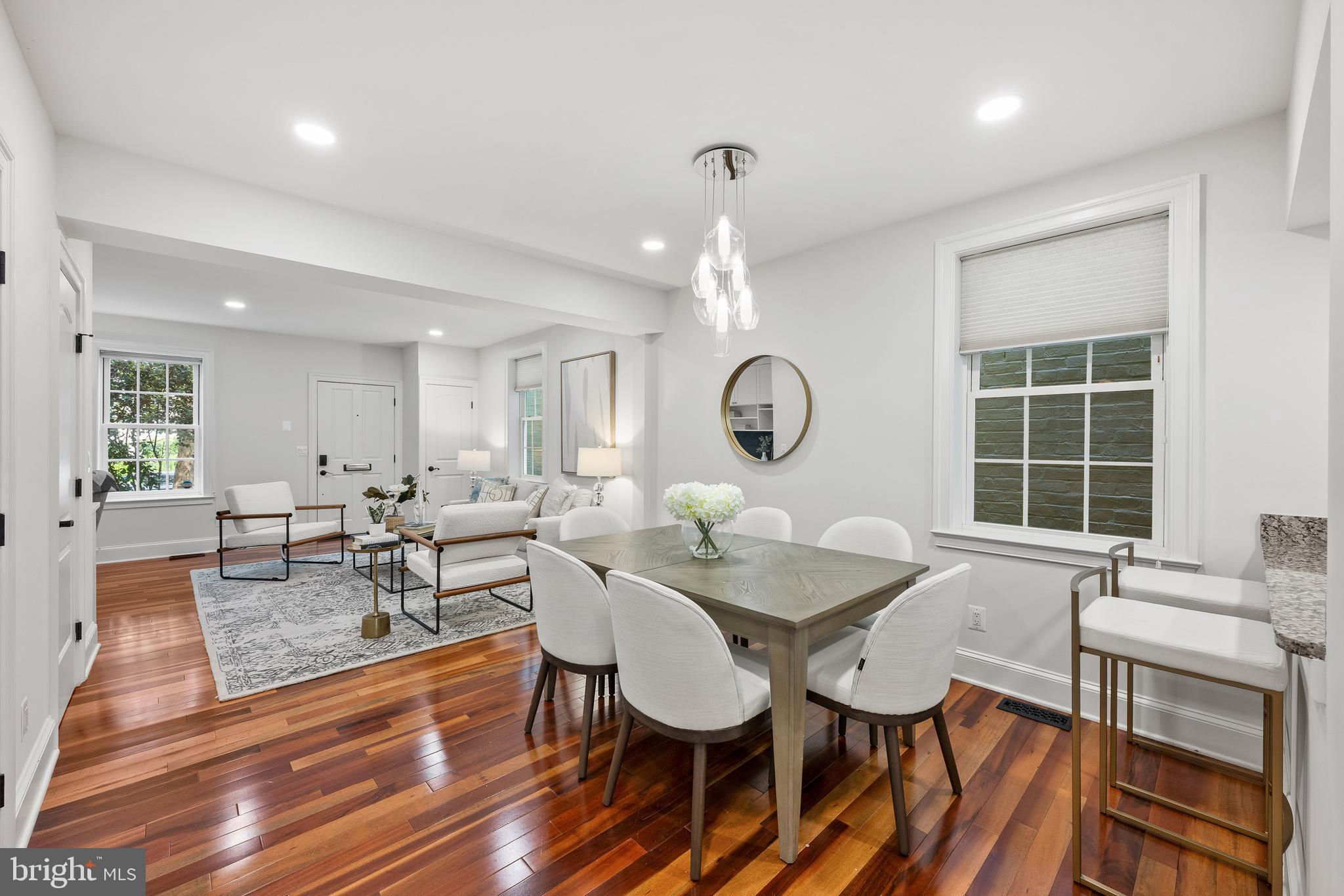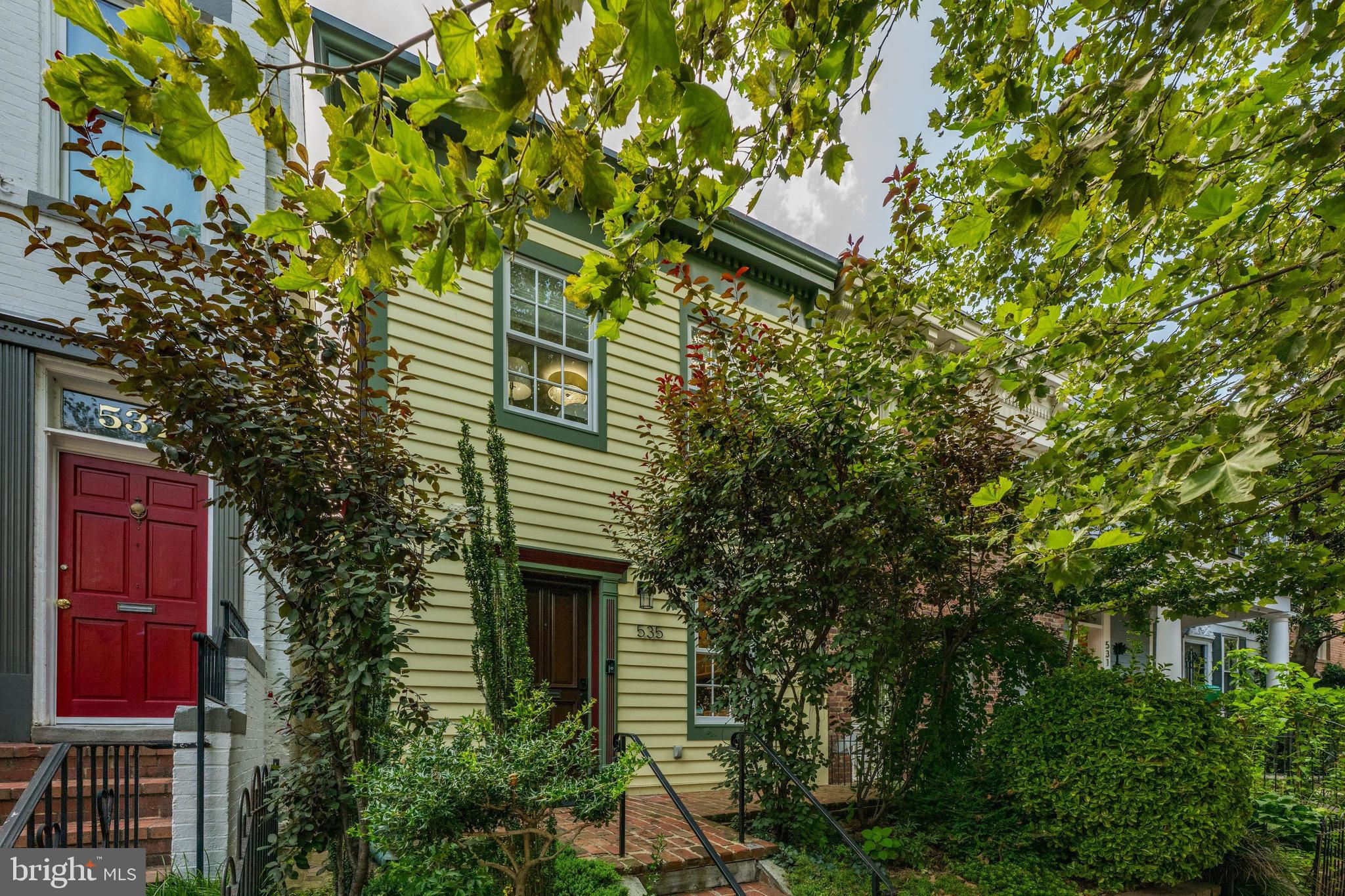This beautifully expanded and updated 1890 Capitol Hill rowhome offers 4 bedrooms and 3.5 baths in one of DC’s most sought-after and historic neighborhoods. Surrounded by lush front landscaping and featuring a charming brick front porch, the home welcomes you with bright interiors, gorgeous hardwood floors, and thoughtfully designed living spaces. The home has a large two-story rear extension, which includes a finished cellar, expansive rooftop deck, which dramatically increases the home’s size and functionality while preserving its historic charm. The open main level features a cozy living room, a formal dining room with a breakfast bar pass-through to the gourmet kitchen, which boasts granite countertops, a Viking 6-burner range with hood, built-in microwave, double basin farmhouse sink, full-size Sub-Zero refrigerator and full-size Sub-Zero freezer. The kitchen opens to a light-filled family room with French doors that lead to a bricked rear patio and beautifully landscaped backyard—perfect for entertaining. A powder room and built-in home office with extensive custom cabinetry complete the main level. Upstairs, the second floor offers three bedrooms and two full baths, including a spacious primary suite with double vanity, a glass-walled shower with bench, and decorative tile. A washer/dryer closet is conveniently located in the hallway, along with a well-appointed shared bath. The top level includes a fourth bedroom/office with its own full bath, built-in storage, and French doors opening to a private roof deck with panoramic city vistas—including views of the July 4th fireworks! Additional highlights include abundant built-in storage throughout including a hidden cellar (photo in tour) below the family room accessed by a hatch and additional crawlspace on top floor next to built-in bookshelves, two-zone cooling, covered off-street parking with a garage door and 120/240V EV charger outlet, and a serene backyard retreat. Perfectly located just steps from Eastern Market, Barracks Row, Trader Joe’s, Whole Foods, Nationals Stadium, museums, and urban parks—plus in-bounds for Brent Elementary—this exceptional home offers timeless Capitol Hill character blended with modern upgrades and unmatched walkability.