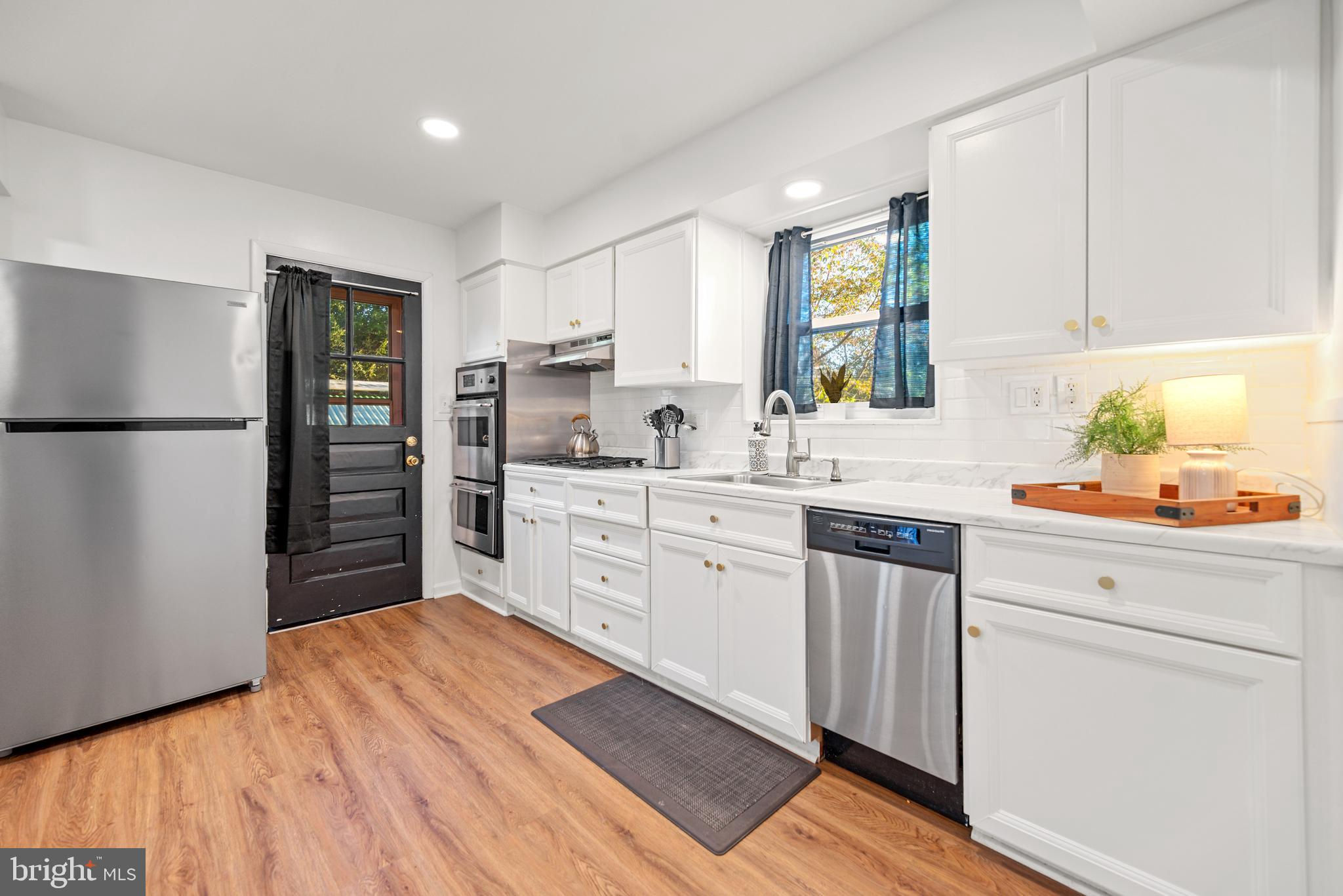 Welcome home! It’s rare to find a three-level home at this price with no HOA or condo fees! Bright and welcoming, this beautiful home’s open floorplan creates effortless space for daily living and entertaining, enhanced by tasteful updates throughout. Inside, the living room greets you with modern recessed lighting and gleaming hardwood floors that flow seamlessly into a defined dining room that’s ideal for gatherings. The updated kitchen boasts abundant bright cabinetry and stainless steel appliances, including an enviable double wall oven. Upstairs, hardwood flooring continues into the primary bedroom, which offers a wide closet with plenty of storage and shares the updated hall bathroom with two additional comfortably sized bedrooms. Downstairs, the lower level adds greater flexibility with a fourth private bedroom, bonus room, and versatile recreation room. Step outside to a huge, fenced backyard with a patio and handy storage shed, perfect for relaxing, playing, or hosting weekend barbecues. No HOA in this established neighborhood, with two convenient and rare dedicated parking spaces immediately in front of the home. Just minutes to Giant, Harris Teeter, Bradlee Shopping Center, Old Town Alexandria, Potomac Yard, and The Pentagon. Convenient access to Duke Street, I-395, and I-495, with King Street Metro nearby for easy commuting options. Schedule a private tour of your lovely new home today!
