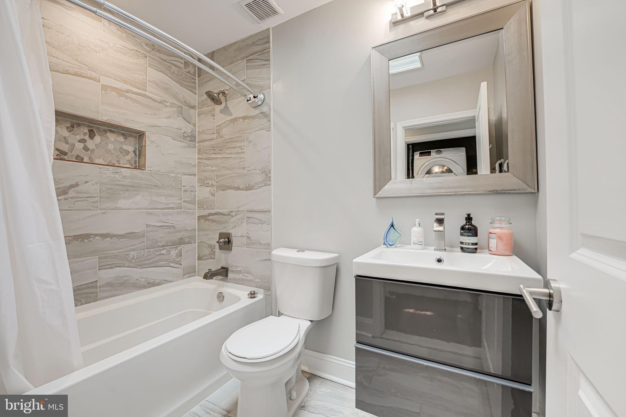 Picture yourself walking down a quaint street, arriving at a house with a charming wrought iron gate that opens to a flat, grassy front yard. As you ascend the stairs, you’re welcomed by a spacious covered porch – the perfect spot to sip coffee and enjoy the neighborhood. Inside, a light-filled living room with a cozy fireplace sets the tone for a warm and inviting home. The open-concept design seamlessly flows into a chef's dream kitchen, complete with updated appliances, ample storage, and a large island for entertaining. A half bath and storage closet offer convenience and functionality. Upstairs, natural light floods the landing from a skylight above the staircase. Two generously sized guest bedrooms, a luxurious guest bathroom with a soaking tub, and a stacked washer and dryer provide comfort and convenience for residents and visitors alike. The master suite, a true sanctuary, features west-facing windows, spacious wall closets, and a spa-like bathroom with a walk-in shower and double vanity. Venture downstairs to a finished basement offering endless possibilities. A large open space with a fireplace, a sleek dry bar, and a full bathroom with a walk-in shower create a versatile entertainment area. A separate entrance and bedroom provide additional flexibility. Outside, a spacious patio with a small garden box offers a serene outdoor retreat for enjoying summer evenings and cultivating your green thumb. A one-car garage with extra storage provides convenient parking. This house isn't just about the stunning interior; it's about location too. Fort Slocum Park, with its forests, open fields, and rich Civil War history, is just a short stroll away. Commuting to the city is a breeze with the Fort Totten Metro station within a mile, or hop on the E4 Metrobus line right at the end of the block for a quick ten-minute commute. And for nature lovers, Rock Creek Park is also just a mile away.