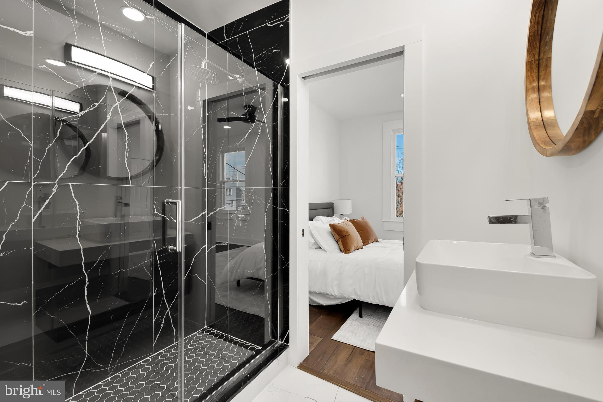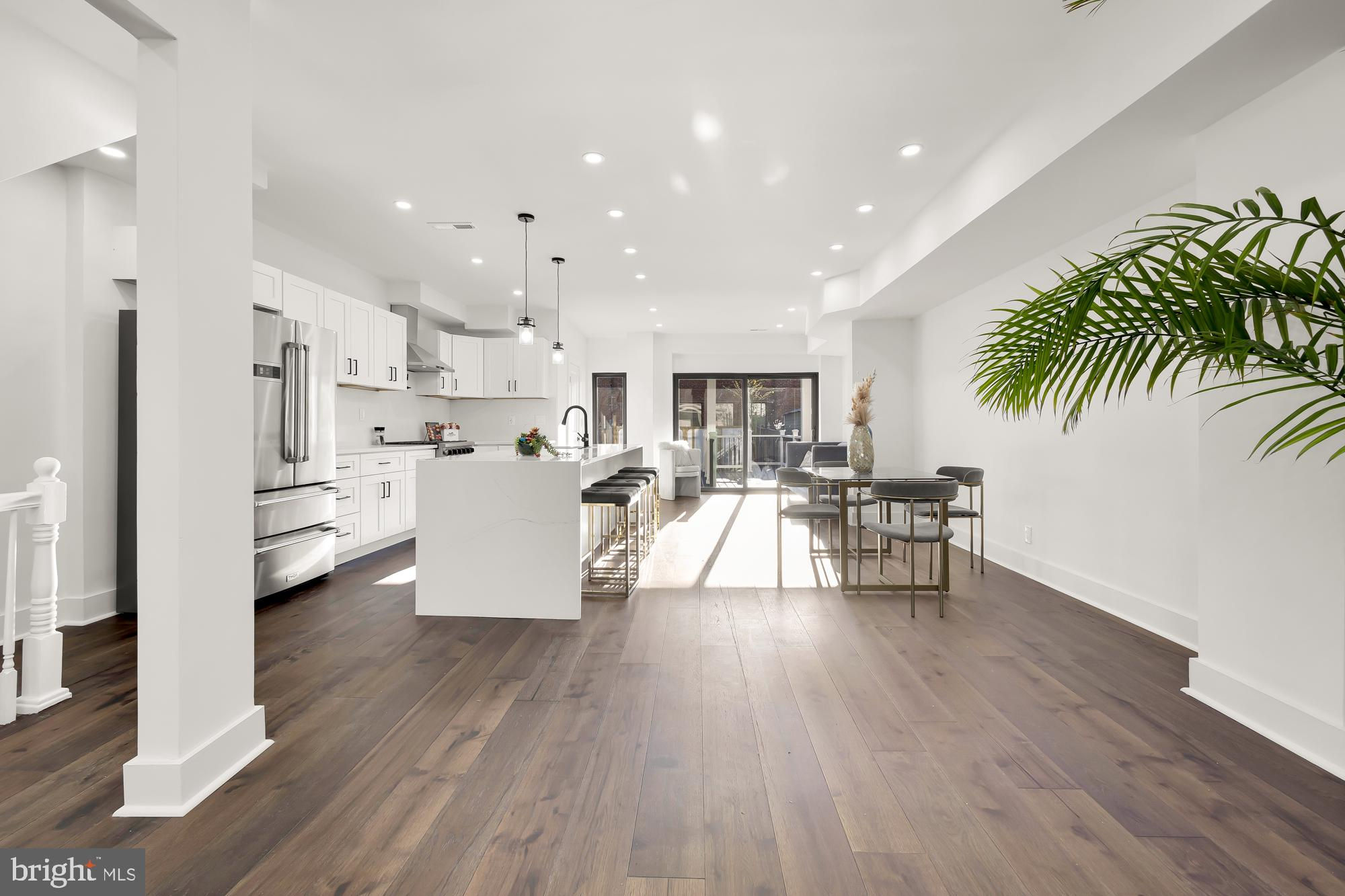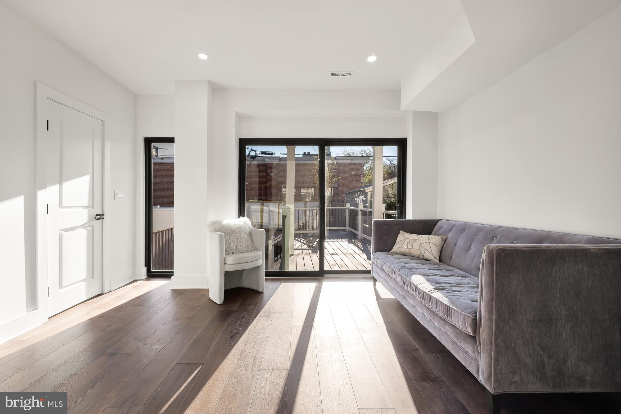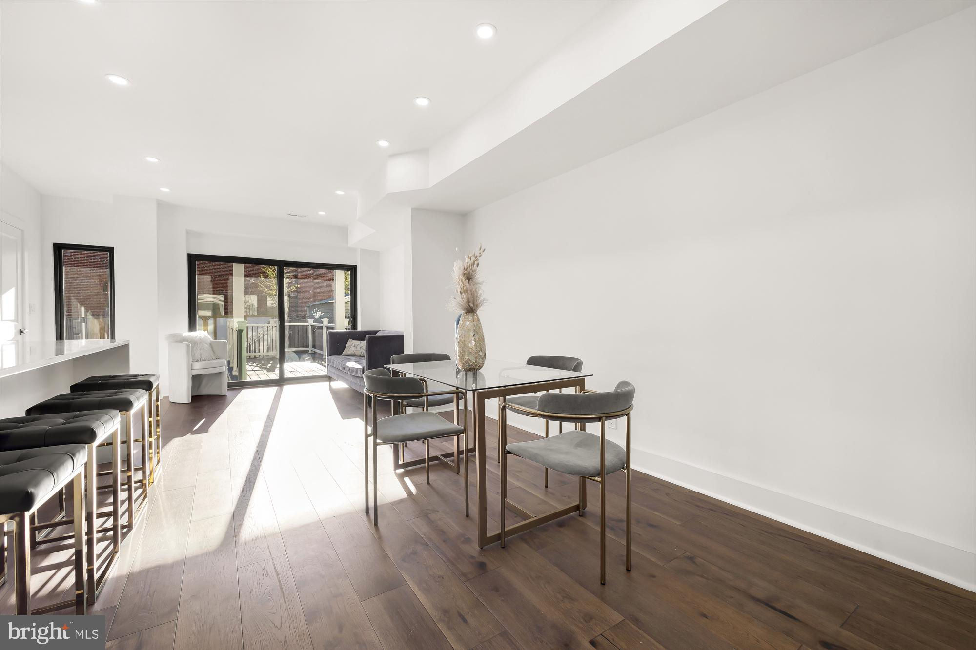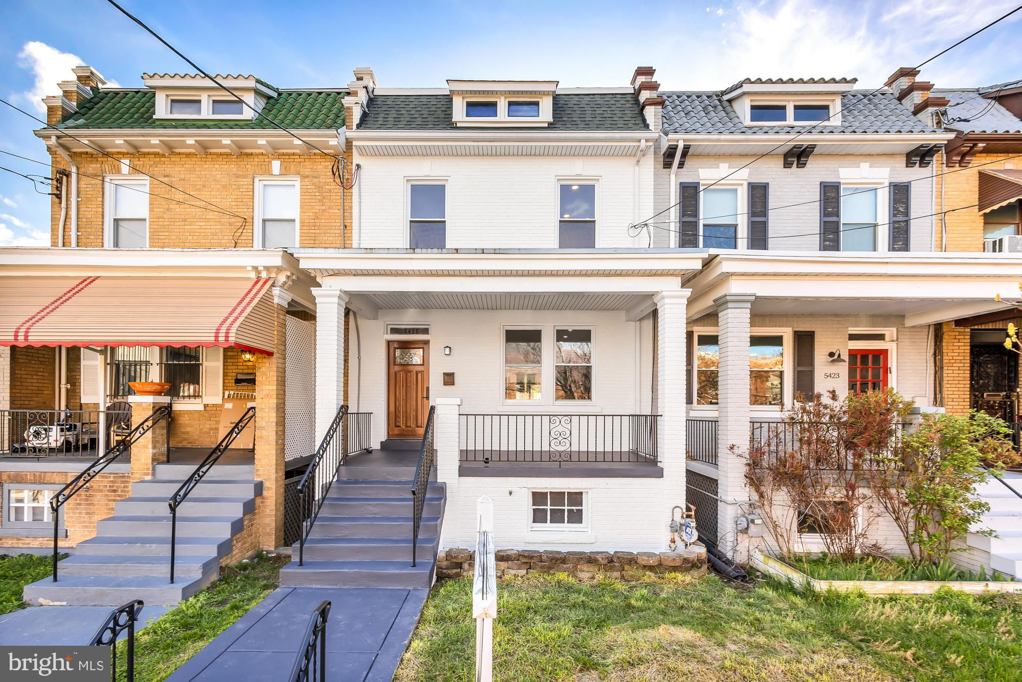 This exceptional row house in Petworth has undergone a meticulous renovation and expansion, elevating it to the highest standards of modern living. With nearly 3,000 square feet of living space across three levels, no detail has been overlooked. The main level features reclaimed wood floors and restored original doors, hardware, and transom windows. The reconfigured layout seamlessly blends classic elements with contemporary amenities, offering a bright and open living room and a spacious formal dining room. The kitchen shines with custom cabinetry, double ovens, a six-burner gas cooktop, pulled together by the sizable island with storage and seating. French doors lead from the kitchen to the newly refinished deck, providing access to the amble back yard and two-car off-street parking. A half bath adds convenience to the main level and your guests. Upstairs, natural light floods through a custom skylight, illuminating the original hardwood floors that lead to three generously sized bedrooms. The primary suite boasts two double custom closets, a spa-like bath with dual vanities, a large glass shower, and a private balcony. The second and third bedrooms are also en-suite with large double closets. The custom lower level offers extra-high ceilings and versatile living and entertaining spaces, including a legal fourth bedroom with a large closet and full bathroom, along with a kitchenette. Petworth maintains a strong sense of community, with residents often organizing events and activities to foster connections among neighbors. The area has a welcoming atmosphere and is known for its tree-lined streets, historic row houses, and diverse architectural styles. The neighborhood boasts a growing number of local businesses, including boutique shops, cafes, and restaurants. This home presents a rare opportunity for discerning buyers seeking modern luxury in a sought-after location.