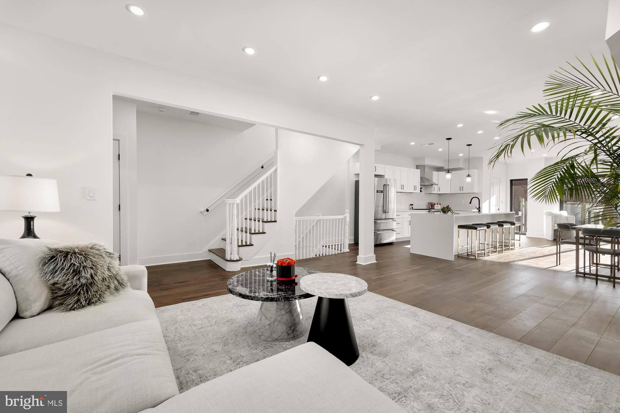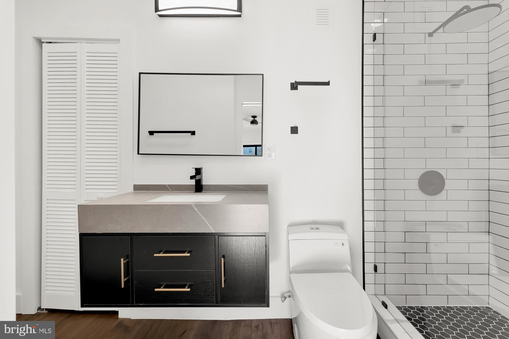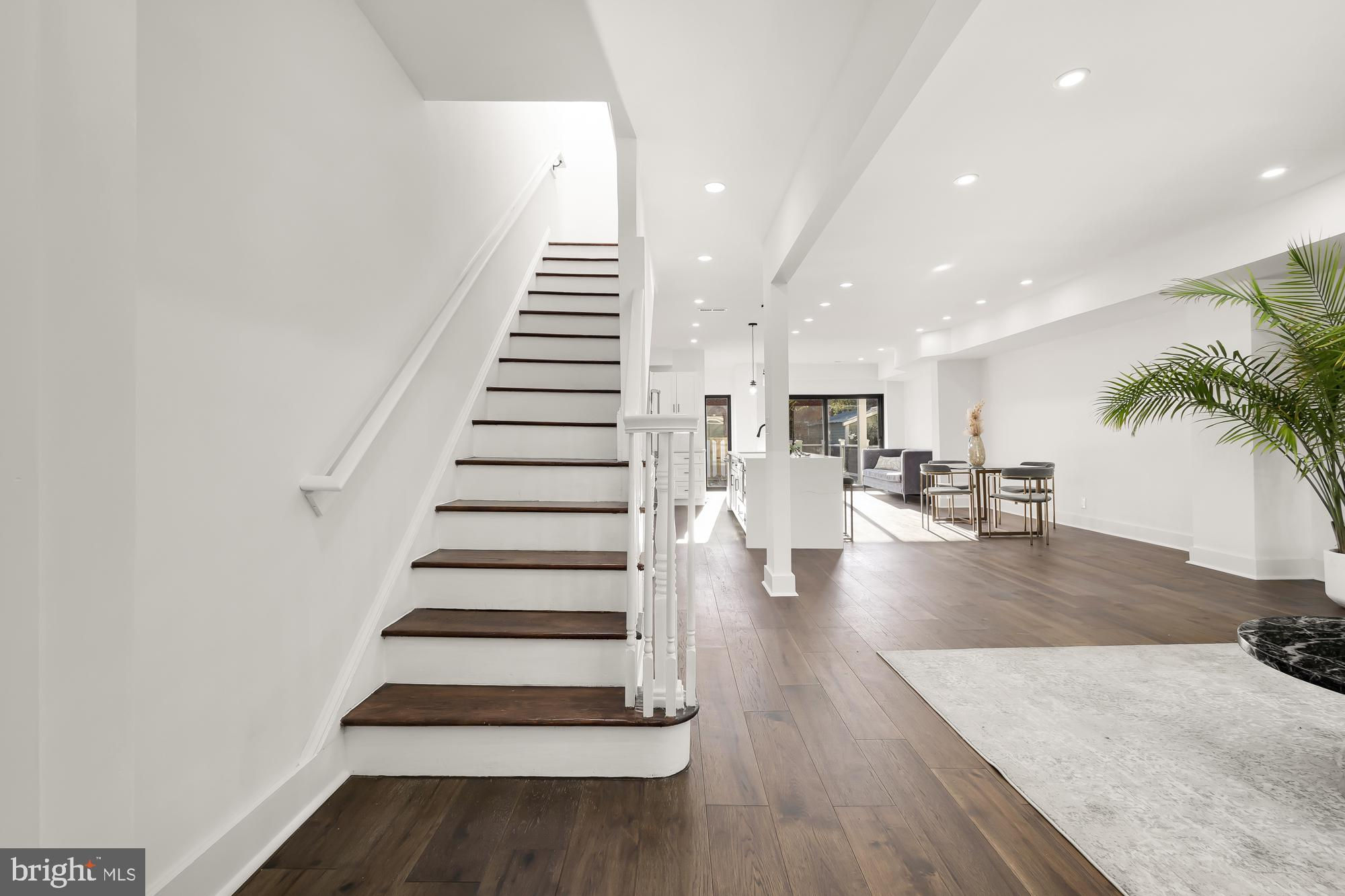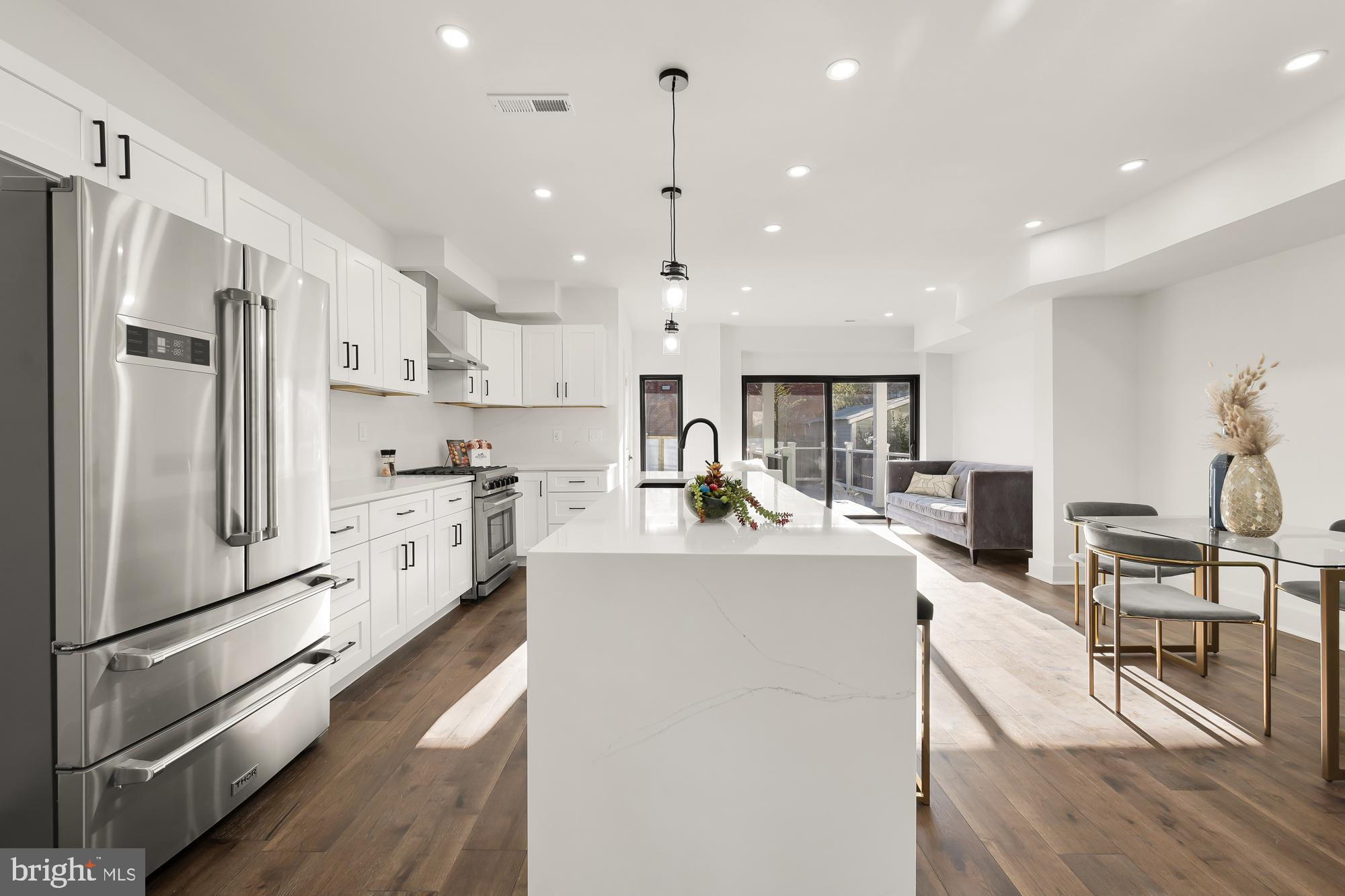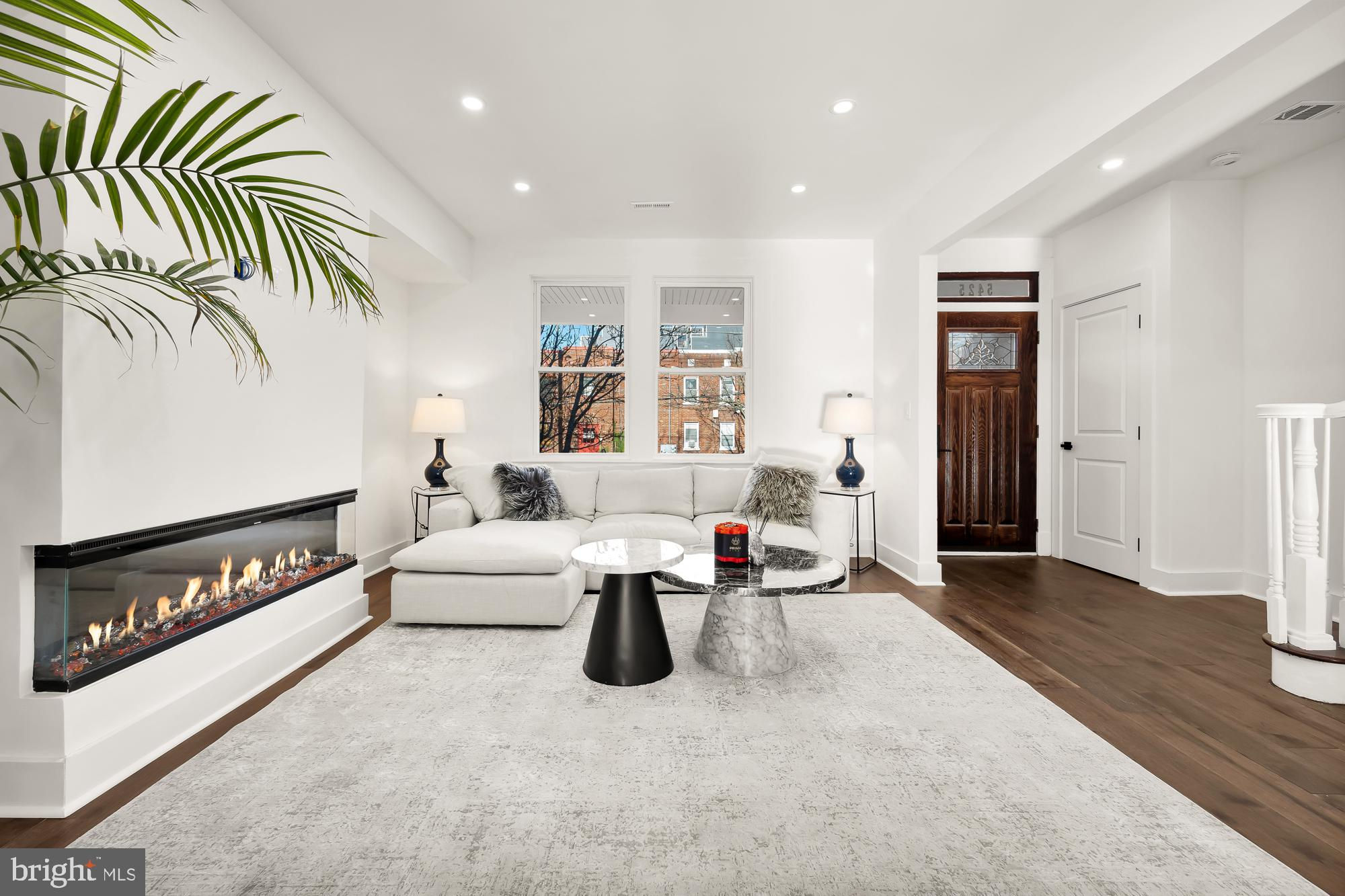 This exceptional row house in Petworth has undergone a meticulous renovation and expansion, elevating it to the highest standards of modern living. With nearly 3,000 square feet of living space across three levels, no detail has been overlooked. The main level features reclaimed wood floors and restored original doors, hardware, and transom windows. The reconfigured layout seamlessly blends classic elements with contemporary amenities, offering a bright and open living room and a spacious formal dining room. The kitchen shines with custom cabinetry, double ovens, a six-burner gas cooktop, pulled together by the sizable island with storage and seating. French doors lead from the kitchen to the newly refinished deck, providing access to the amble back yard and two-car off-street parking. A half bath adds convenience to the main level and your guests. Upstairs, natural light floods through a custom skylight, illuminating the original hardwood floors that lead to three generously sized bedrooms. The primary suite boasts two double custom closets, a spa-like bath with dual vanities, a large glass shower, and a private balcony. The second and third bedrooms are also en-suite with large double closets. The custom lower level offers extra-high ceilings and versatile living and entertaining spaces, including a legal fourth bedroom with a large closet and full bathroom, along with a kitchenette. Petworth maintains a strong sense of community, with residents often organizing events and activities to foster connections among neighbors. The area has a welcoming atmosphere and is known for its tree-lined streets, historic row houses, and diverse architectural styles. The neighborhood boasts a growing number of local businesses, including boutique shops, cafes, and restaurants. This home presents a rare opportunity for discerning buyers seeking modern luxury in a sought-after location.