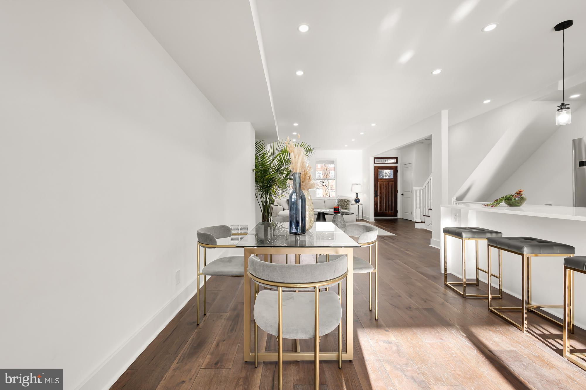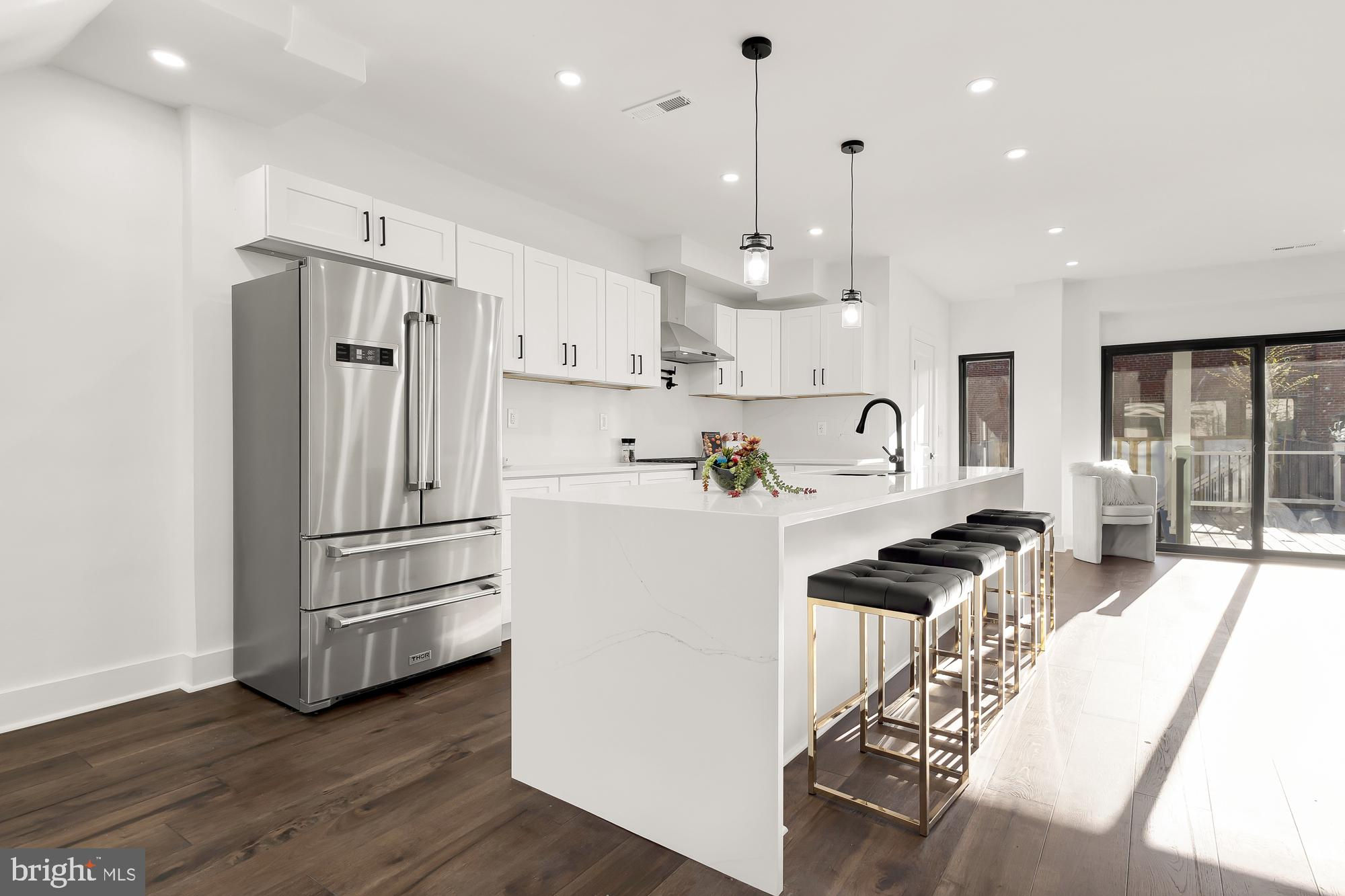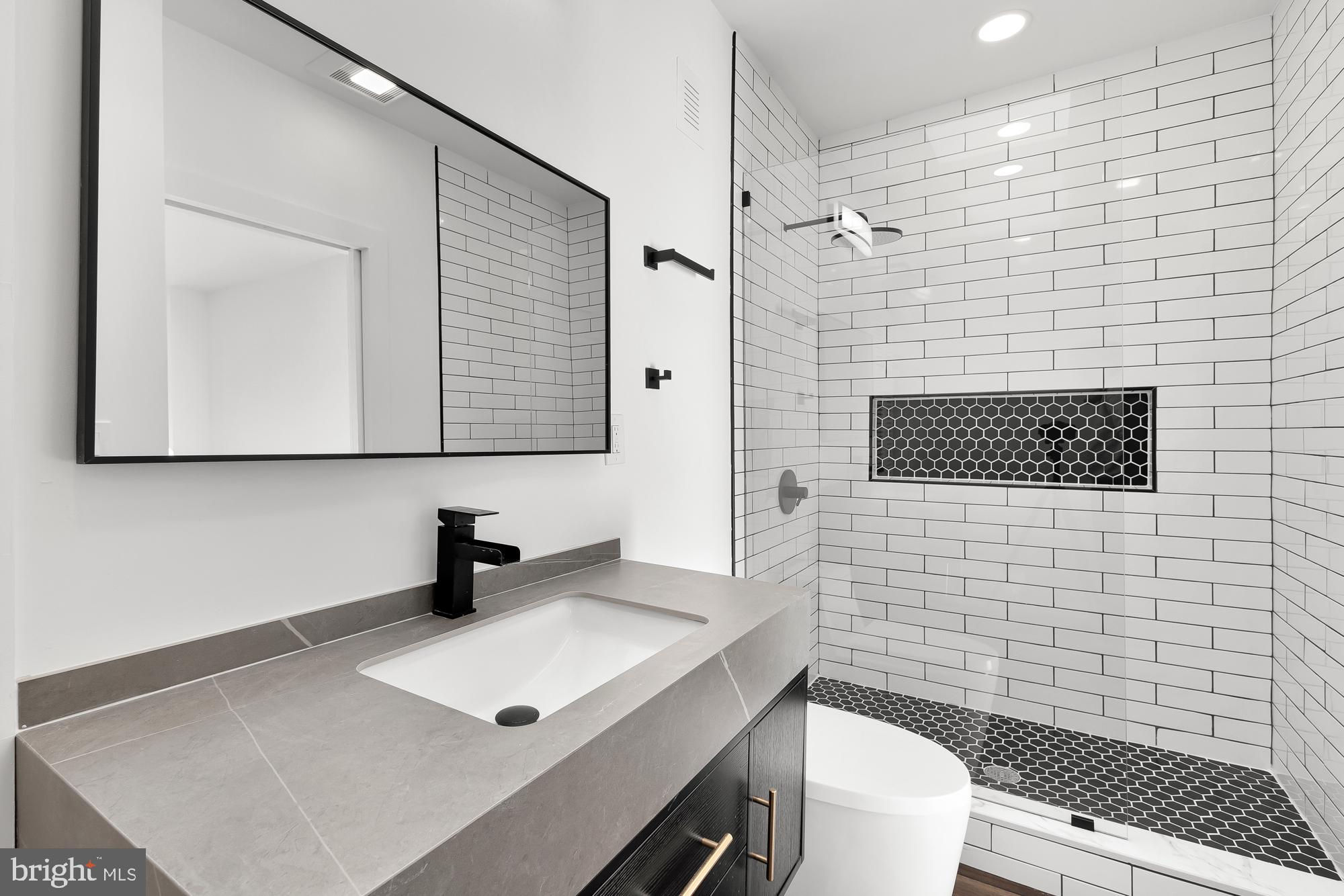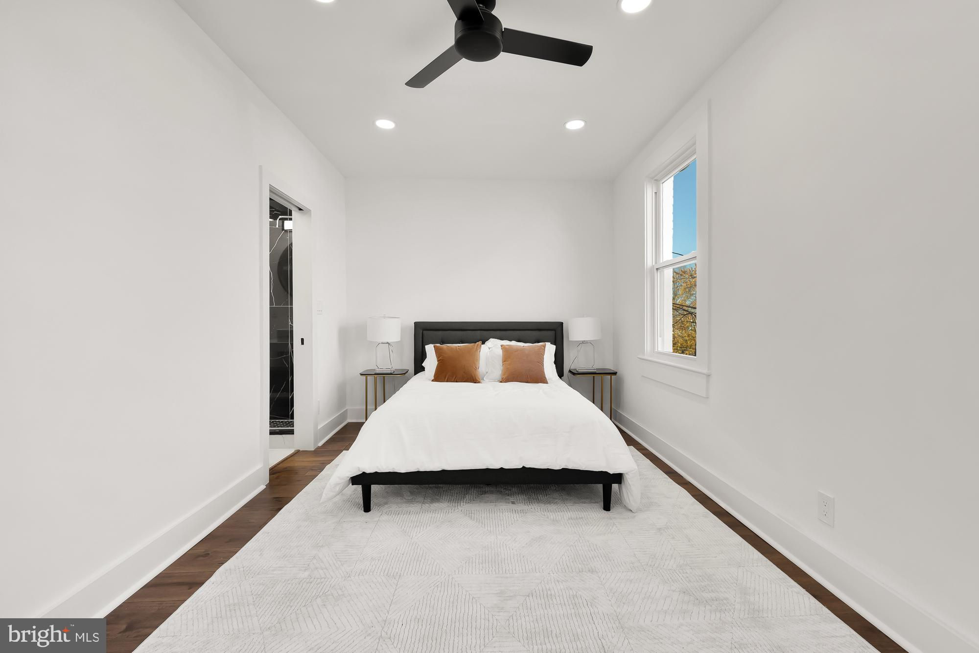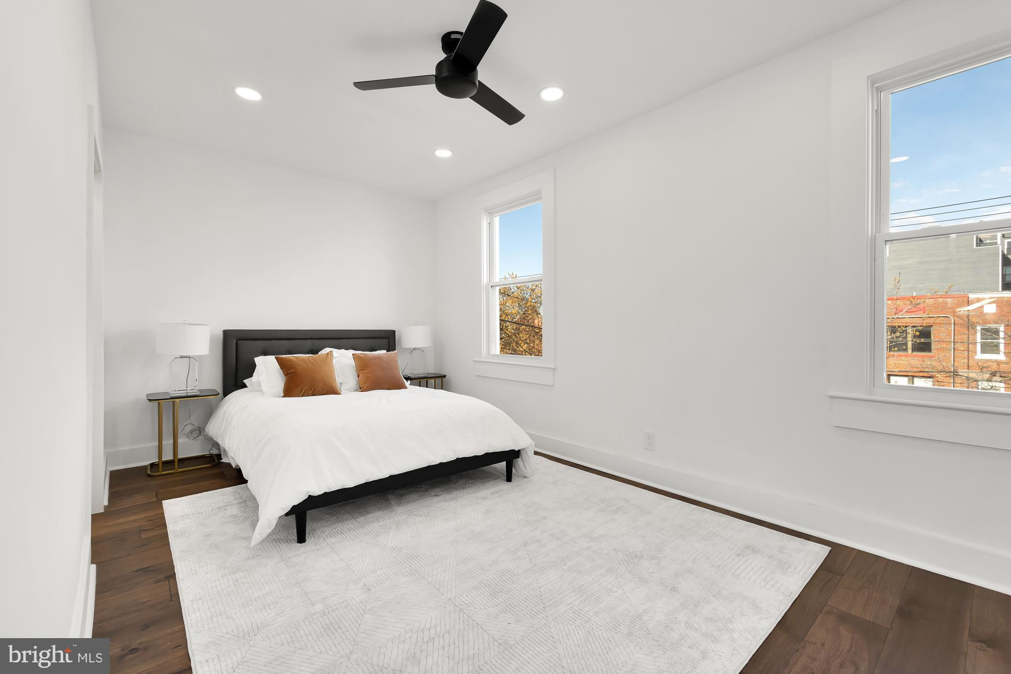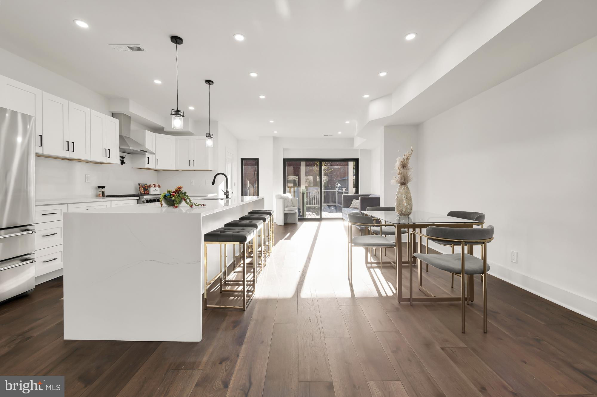 This exceptional row house in Petworth has undergone a meticulous renovation and expansion, elevating it to the highest standards of modern living. With nearly 3,000 square feet of living space across three levels, no detail has been overlooked. The main level features reclaimed wood floors and restored original doors, hardware, and transom windows. The reconfigured layout seamlessly blends classic elements with contemporary amenities, offering a bright and open living room and a spacious formal dining room. The kitchen shines with custom cabinetry, double ovens, a six-burner gas cooktop, pulled together by the sizable island with storage and seating. French doors lead from the kitchen to the newly refinished deck, providing access to the amble back yard and two-car off-street parking. A half bath adds convenience to the main level and your guests. Upstairs, natural light floods through a custom skylight, illuminating the original hardwood floors that lead to three generously sized bedrooms. The primary suite boasts two double custom closets, a spa-like bath with dual vanities, a large glass shower, and a private balcony. The second and third bedrooms are also en-suite with large double closets. The custom lower level offers extra-high ceilings and versatile living and entertaining spaces, including a legal fourth bedroom with a large closet and full bathroom, along with a kitchenette. Petworth maintains a strong sense of community, with residents often organizing events and activities to foster connections among neighbors. The area has a welcoming atmosphere and is known for its tree-lined streets, historic row houses, and diverse architectural styles. The neighborhood boasts a growing number of local businesses, including boutique shops, cafes, and restaurants. This home presents a rare opportunity for discerning buyers seeking modern luxury in a sought-after location.