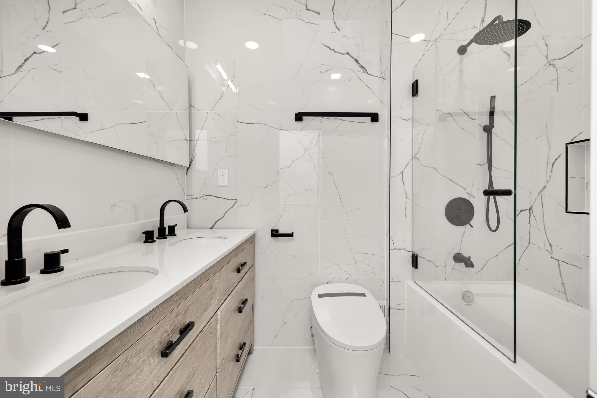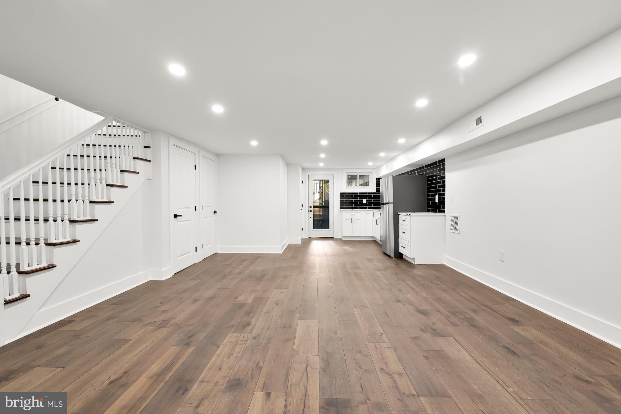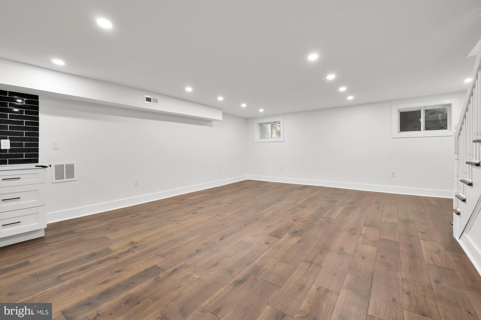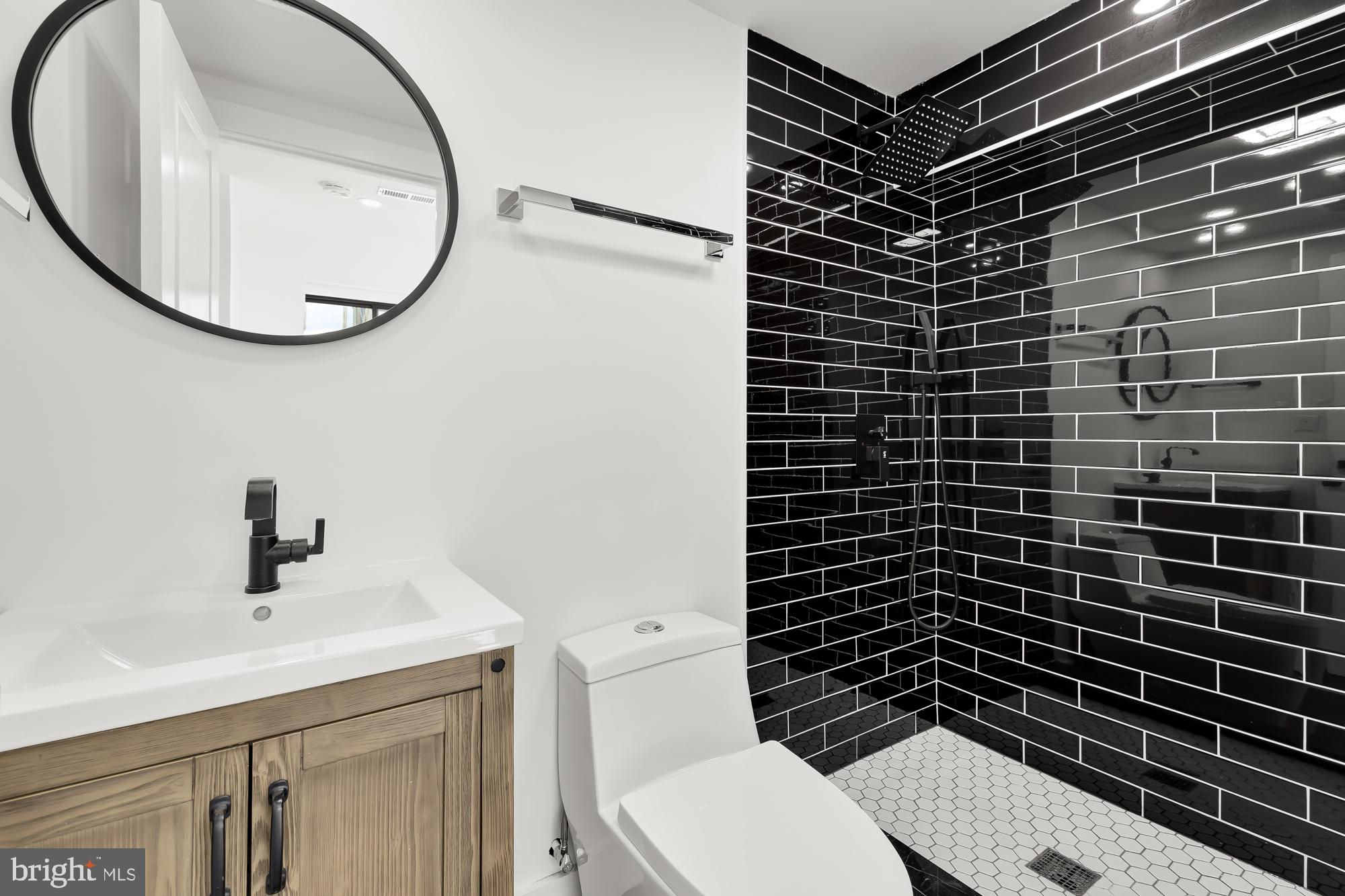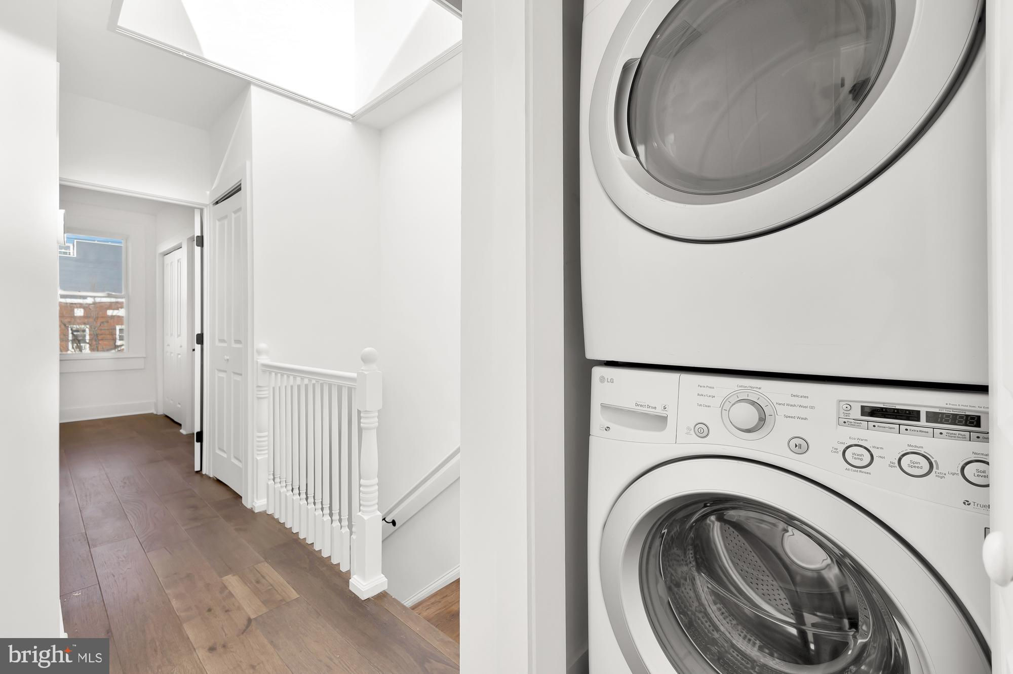 This exceptional row house in Petworth has undergone a meticulous renovation and expansion, elevating it to the highest standards of modern living. With nearly 3,000 square feet of living space across three levels, no detail has been overlooked. The main level features reclaimed wood floors and restored original doors, hardware, and transom windows. The reconfigured layout seamlessly blends classic elements with contemporary amenities, offering a bright and open living room and a spacious formal dining room. The kitchen shines with custom cabinetry, double ovens, a six-burner gas cooktop, pulled together by the sizable island with storage and seating. French doors lead from the kitchen to the newly refinished deck, providing access to the amble back yard and two-car off-street parking. A half bath adds convenience to the main level and your guests. Upstairs, natural light floods through a custom skylight, illuminating the original hardwood floors that lead to three generously sized bedrooms. The primary suite boasts two double custom closets, a spa-like bath with dual vanities, a large glass shower, and a private balcony. The second and third bedrooms are also en-suite with large double closets. The custom lower level offers extra-high ceilings and versatile living and entertaining spaces, including a legal fourth bedroom with a large closet and full bathroom, along with a kitchenette. Petworth maintains a strong sense of community, with residents often organizing events and activities to foster connections among neighbors. The area has a welcoming atmosphere and is known for its tree-lined streets, historic row houses, and diverse architectural styles. The neighborhood boasts a growing number of local businesses, including boutique shops, cafes, and restaurants. This home presents a rare opportunity for discerning buyers seeking modern luxury in a sought-after location.
