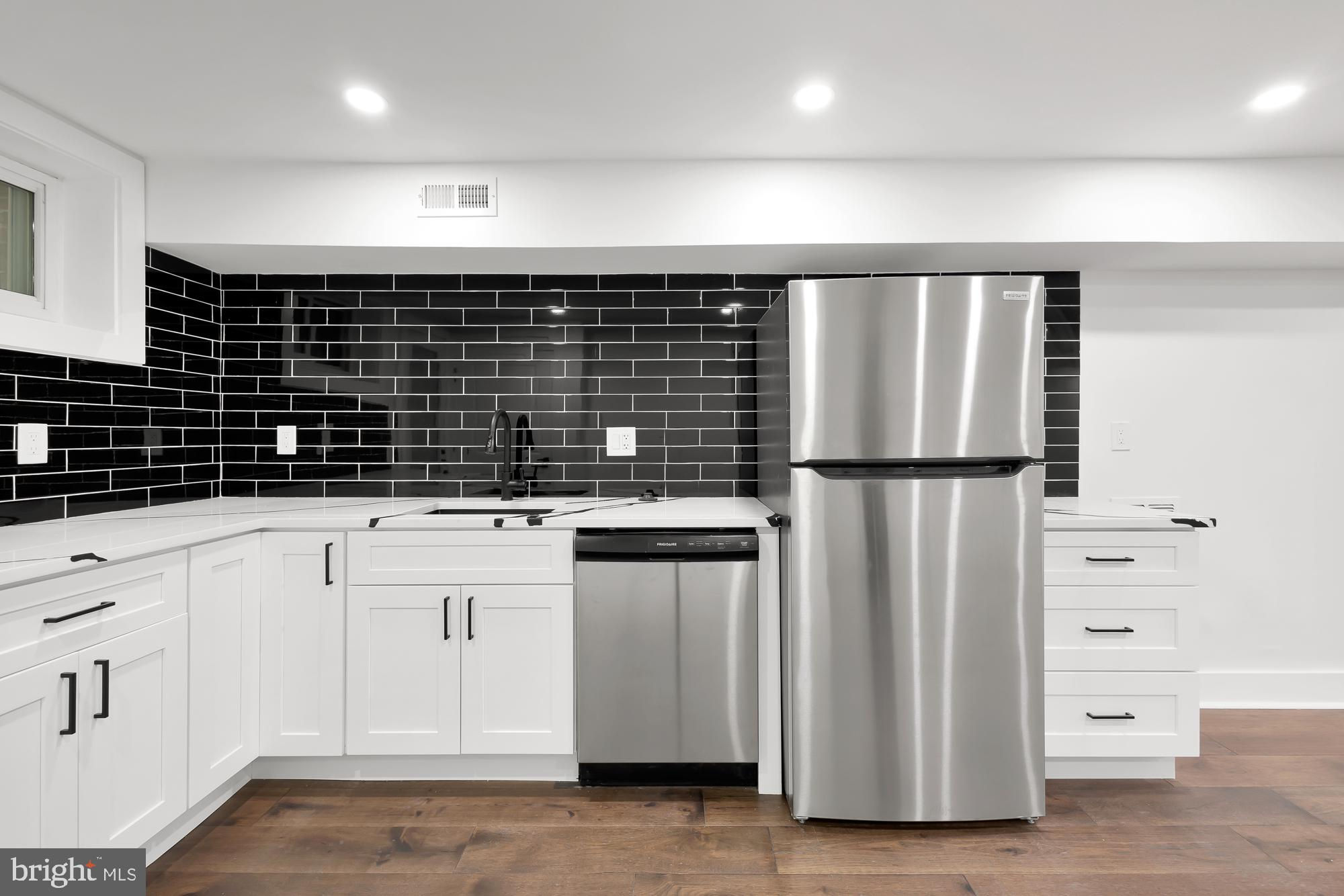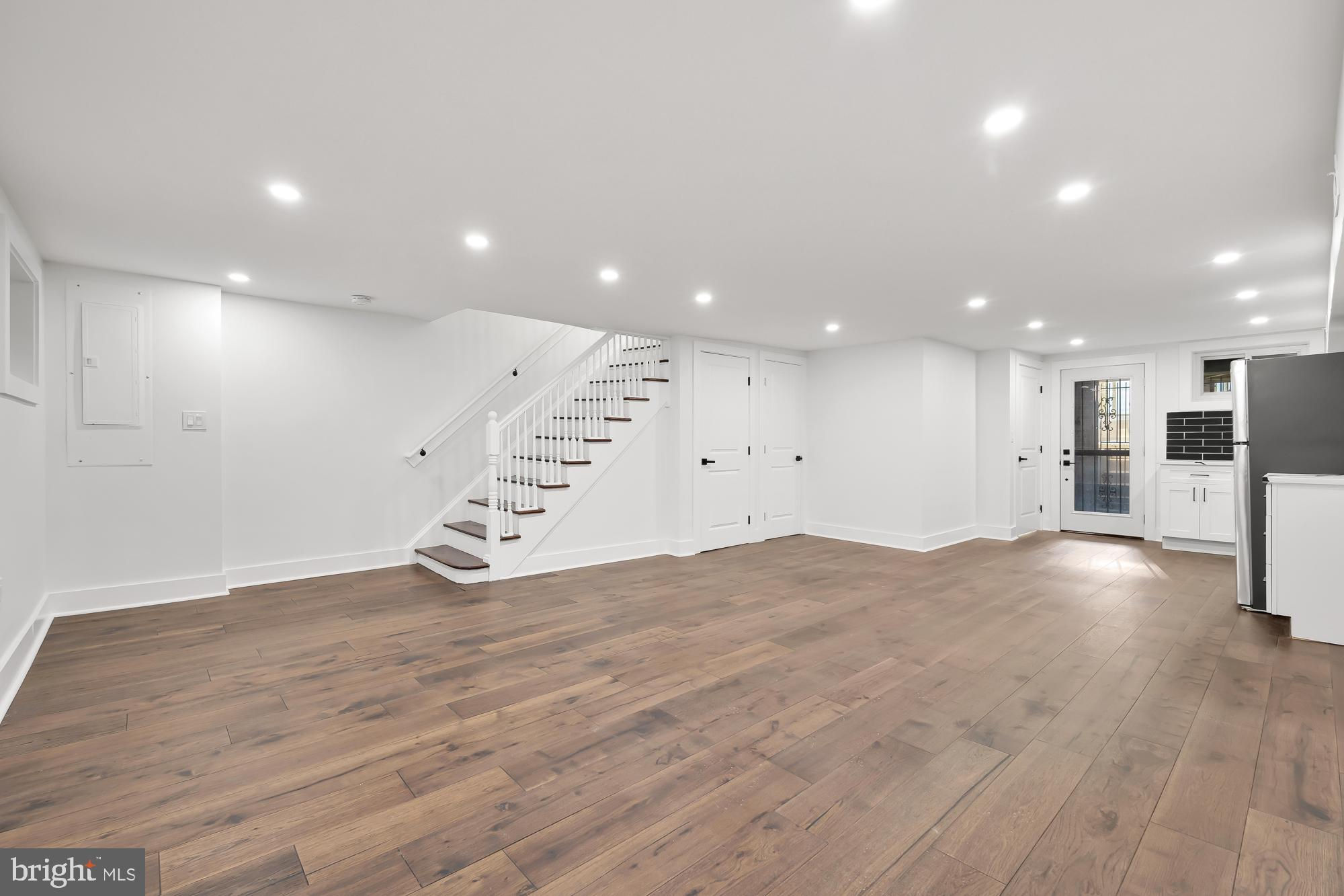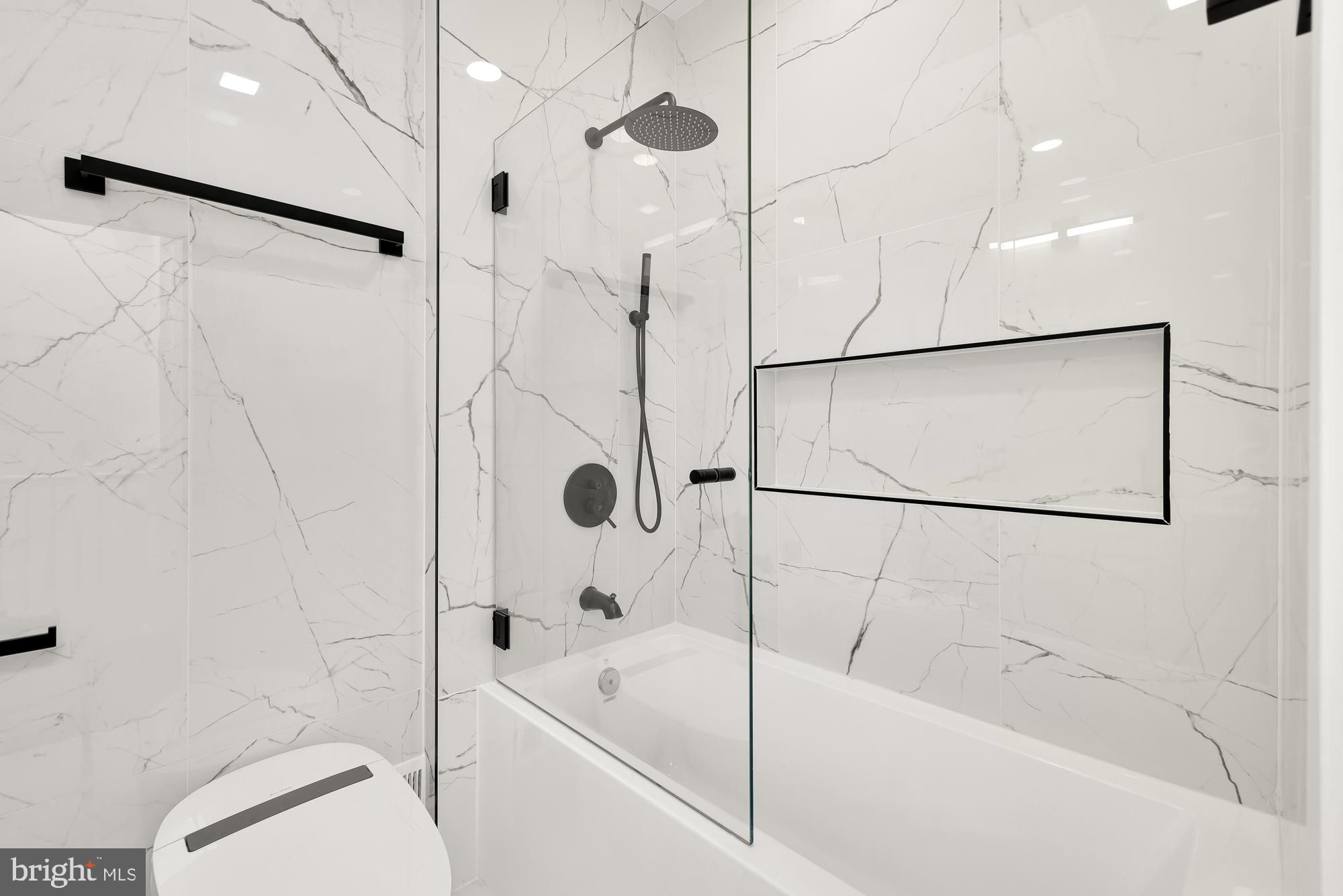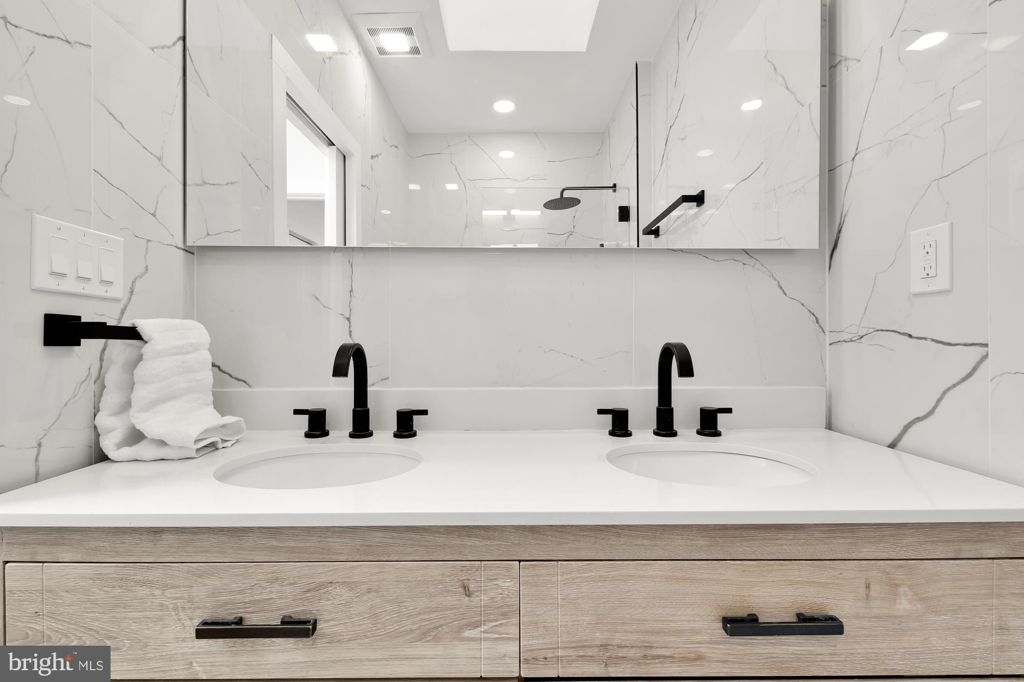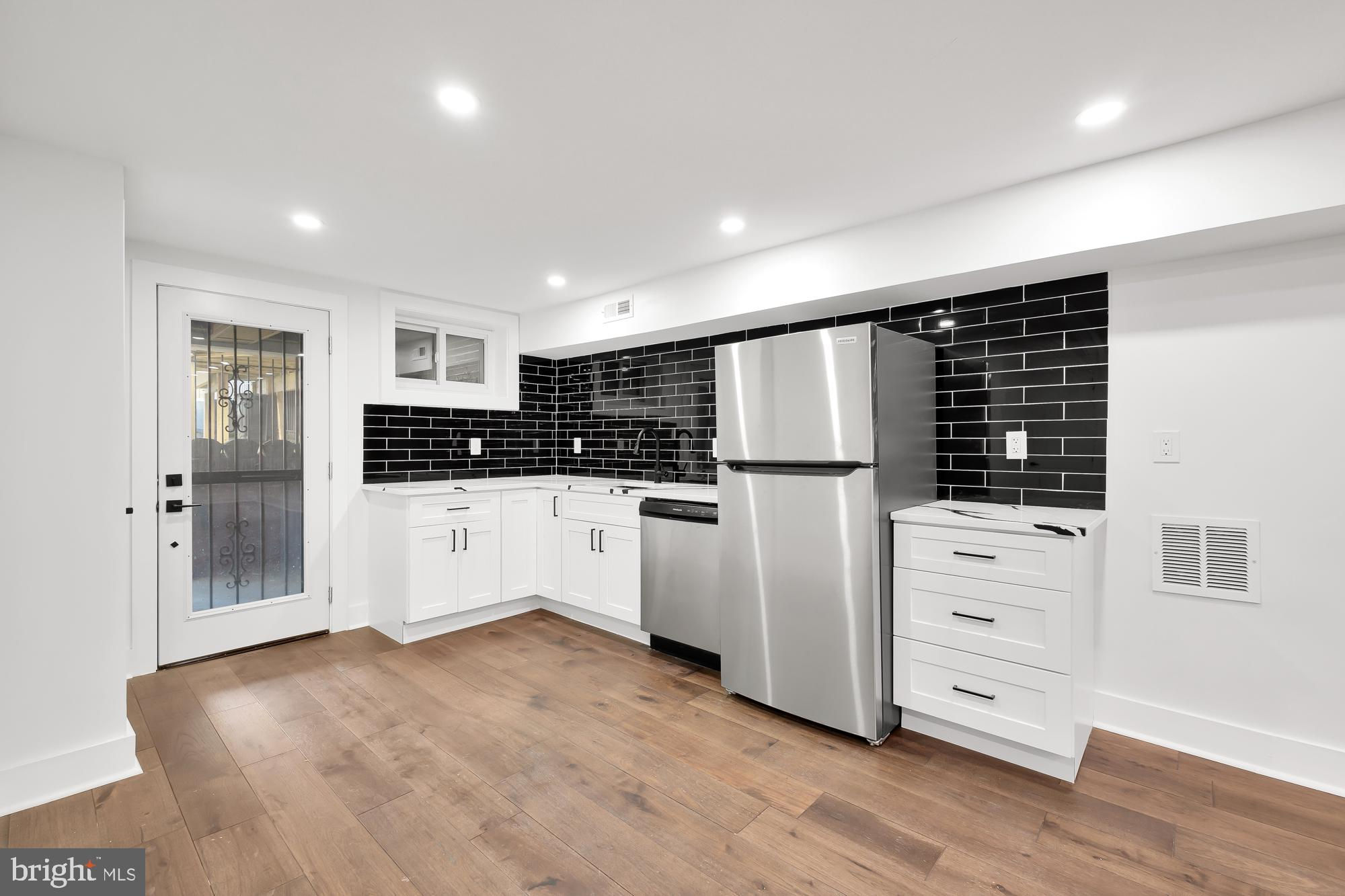 This exceptional row house in Petworth has undergone a meticulous renovation and expansion, elevating it to the highest standards of modern living. With nearly 3,000 square feet of living space across three levels, no detail has been overlooked. The main level features reclaimed wood floors and restored original doors, hardware, and transom windows. The reconfigured layout seamlessly blends classic elements with contemporary amenities, offering a bright and open living room and a spacious formal dining room. The kitchen shines with custom cabinetry, double ovens, a six-burner gas cooktop, pulled together by the sizable island with storage and seating. French doors lead from the kitchen to the newly refinished deck, providing access to the amble back yard and two-car off-street parking. A half bath adds convenience to the main level and your guests. Upstairs, natural light floods through a custom skylight, illuminating the original hardwood floors that lead to three generously sized bedrooms. The primary suite boasts two double custom closets, a spa-like bath with dual vanities, a large glass shower, and a private balcony. The second and third bedrooms are also en-suite with large double closets. The custom lower level offers extra-high ceilings and versatile living and entertaining spaces, including a legal fourth bedroom with a large closet and full bathroom, along with a kitchenette. Petworth maintains a strong sense of community, with residents often organizing events and activities to foster connections among neighbors. The area has a welcoming atmosphere and is known for its tree-lined streets, historic row houses, and diverse architectural styles. The neighborhood boasts a growing number of local businesses, including boutique shops, cafes, and restaurants. This home presents a rare opportunity for discerning buyers seeking modern luxury in a sought-after location.