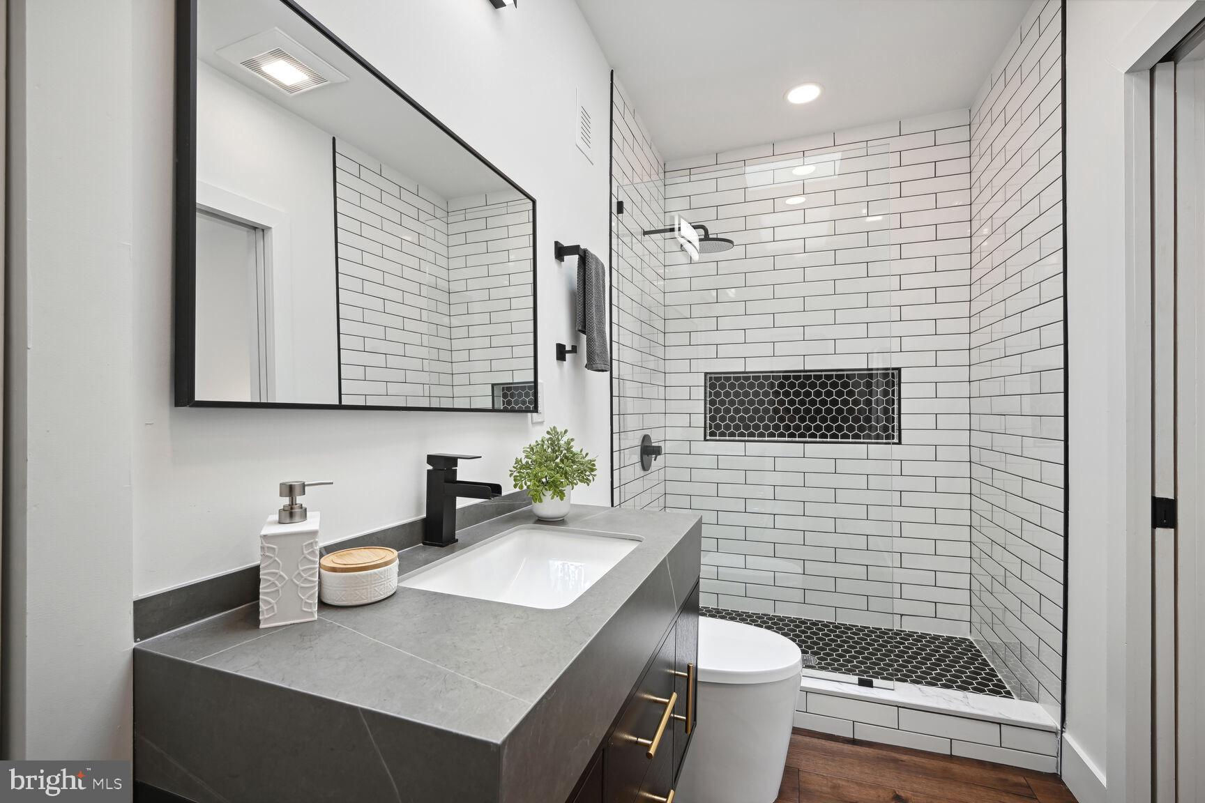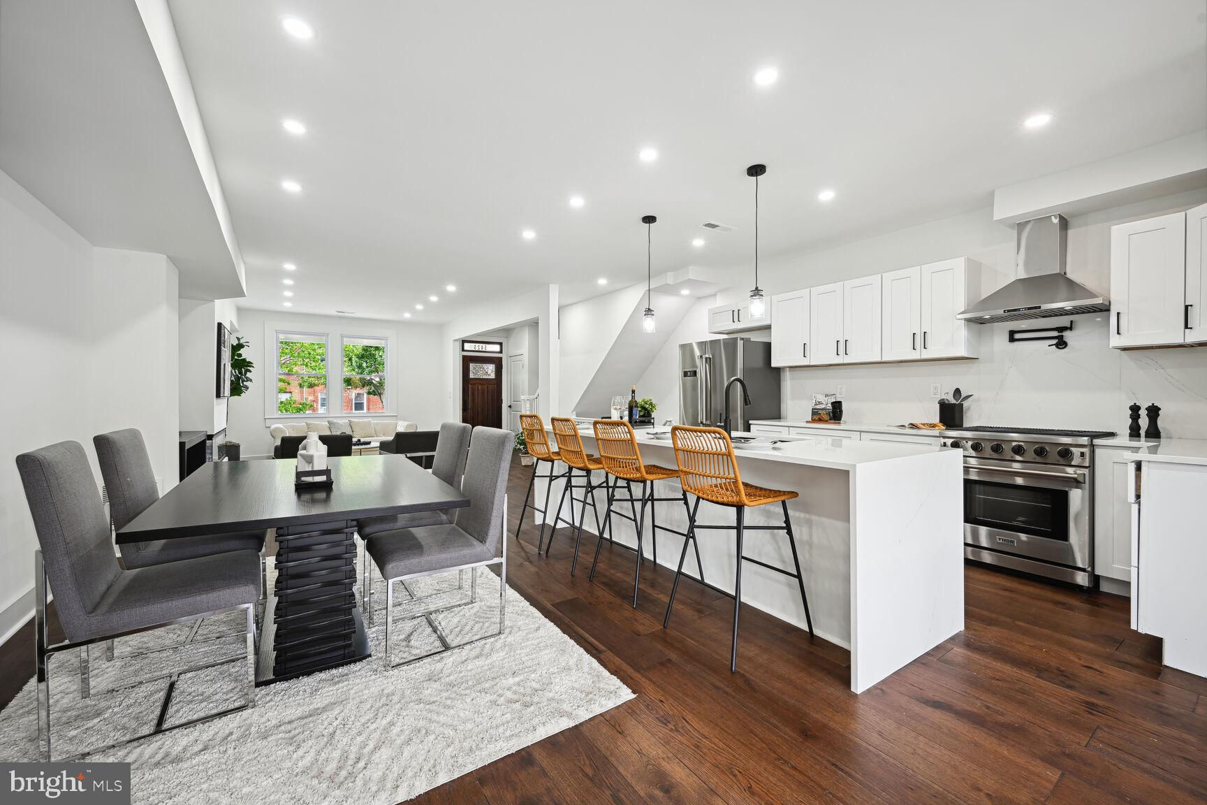 Welcome to your dream home in vibrant Petworth! This stunning 3-story Colonial rowhouse, meticulously renovated in 2024, blends historic charm with modern luxury. Featuring 4 spacious bedrooms and 4.5 stylish bathrooms, including skylights in each upper-level bath, this home offers over 2,100 square feet of refined living space. The fully finished basement, with a separate entrance and kitchen, adds 850 square feet—perfect for entertaining, guest stays, or Airbnb. Inside, elegantly designed floors are bathed in natural light and complemented by pendant and recessed lighting. The gourmet kitchen, equipped with Thor Kitchen appliances, is a chef’s delight with high-powered burners and sleek stainless steel finishes. Outside, enjoy a low-maintenance landscape with mulch and mini hedges, a fenced rear yard, and off-street parking for two cars. Relax on the two-tier rear deck or front porch, ideal for outdoor gatherings.Nestled in a family-friendly community with tree-lined streets, local shops, and parks, this home offers unparalleled living in one of DC’s most sought-after neighborhoods. Do not miss this chance to experience modern elegance in Petworth!