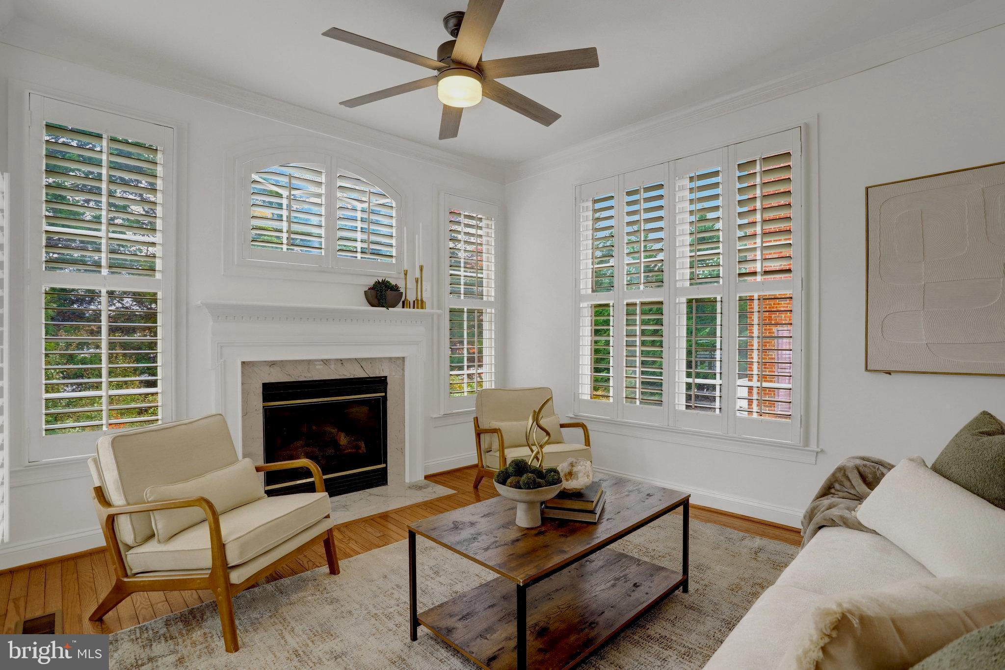 This spacious 4-bedroom, 4.5-bath, 4 level end-unit townhouse offers style, comfort, and functionality in an unbeatable location. Freshly painted from top to bottom and enhanced with designer light fixtures, this home shines with modern updates. Hardwood floors flow throughout, adding warmth and elegance to every room. A mixture of custom blinds and crisp white shutters on all the windows allow for filtering the sun just perfectly throughout the day. The main level features an open-concept layout with just the right balance of separation. White kitchen cabinets with under-mount lighting, beautiful granite countertops, a gas cooktop, double oven, and large additional breakfast room/seating area allow for the most ambitious of cooks to thrive. The dedicated dining area gives the ability to host lovely dinner parties or to help with homework (while not being reminded of dirty dishes). The gracious living room is well appointed with a gas fireplace with marble surround, multiple seating areas and walk out access to the deck—perfect for relaxing or entertaining. This level also includes a convenient powder room and dedicated office looking out to the tree line. Upstairs, the large and luxurious primary suite includes a comfortable seating area and generous walk-in closet with an elegant ensuite bath with soaking tub, rain head shower, private toilet area, and double vanity. Laundry on the bedroom level adds everyday convenience. Two more ample bedrooms round out this level. The top floor offers a versatile fourth bedroom with multiple walk-in closets and ensuite bathroom—ideal for guests, hobbies, or a private suite. The lower-level recreation room with a full bath and an additional gas fireplace provides a cozy additional living room / tv / hang out space and opens to a walk-out patio with a manicured lawn and fenced-in yard. The oversized two car garage with storage area and heavy-duty storage racks as well as a Tesla charger will make everyone in the home happy. Just move in! — new water heater (2025), one AC handler (2025) and the other one (2023), refrigerator (2021), washing machine (2021), roof (2018). Commuting is a breeze with quick access to I-95, I-395, and the Van Dorn Metro, plus a bus stop right in the neighborhood. So close to all of Alexandria, Kingstowne, Springfield, Pentagon, National Landing, DC. While this boutique community of 24 townhouses doesn’t have it’s own pool (hence the very reasonable quarterly HOA fee) residents enjoy nearby amenities including the Bren Mar Pool Association (check with them for dues and availability) with swimming, diving, children’s pool, tennis courts, volleyball courts, horseshoes, basketball courts, tether ball, ping pong and bbq grills, not to mention Bren Mar Park with scenic trails and playgrounds. Ben Brenman Park, Holmes Run Trail, and several other green spaces are also close by, as well as Alexandria City and Kingstowne Libraries. Grocery, restaurants, gyms, breweries all within minutes around your new home!