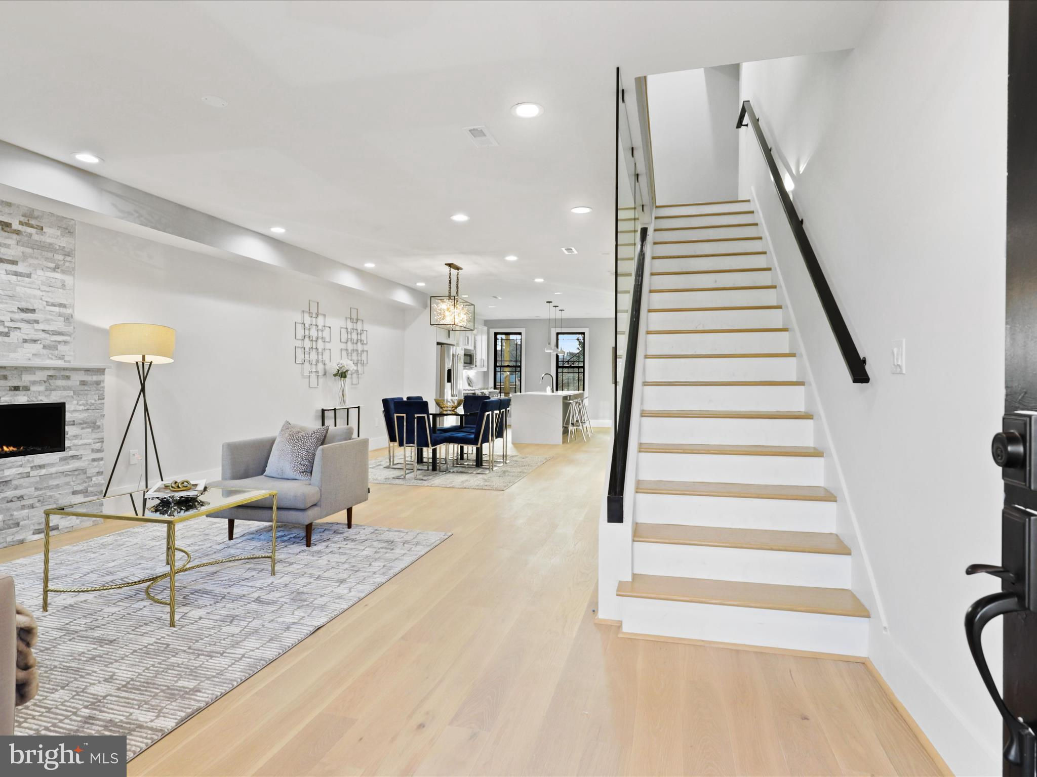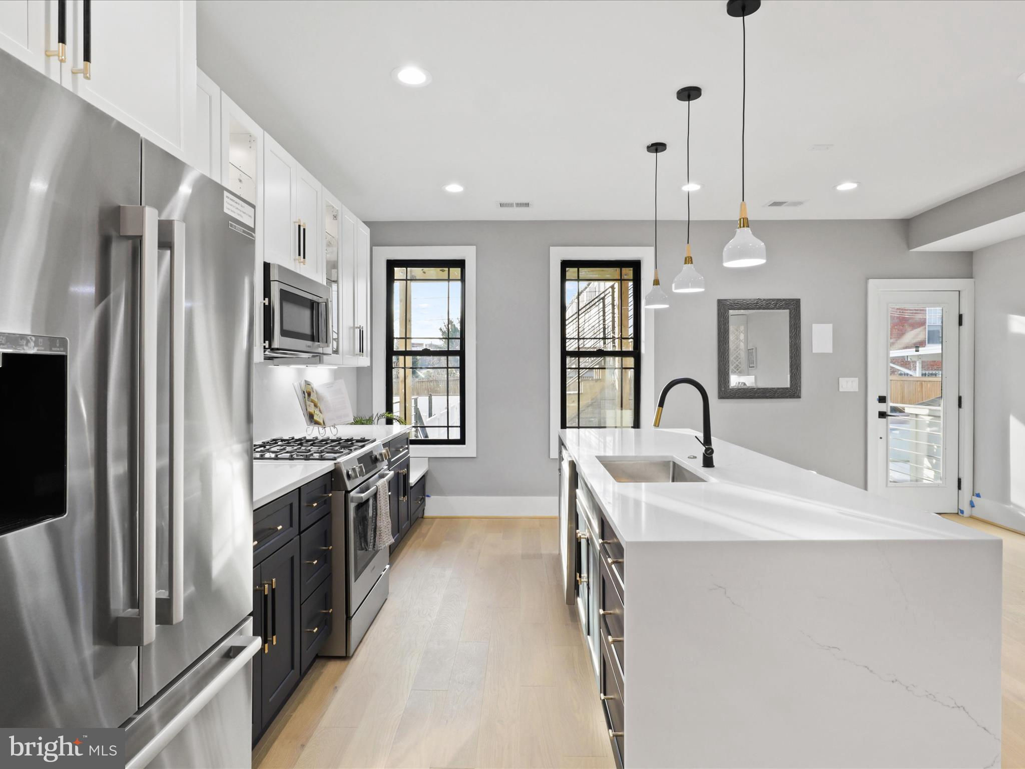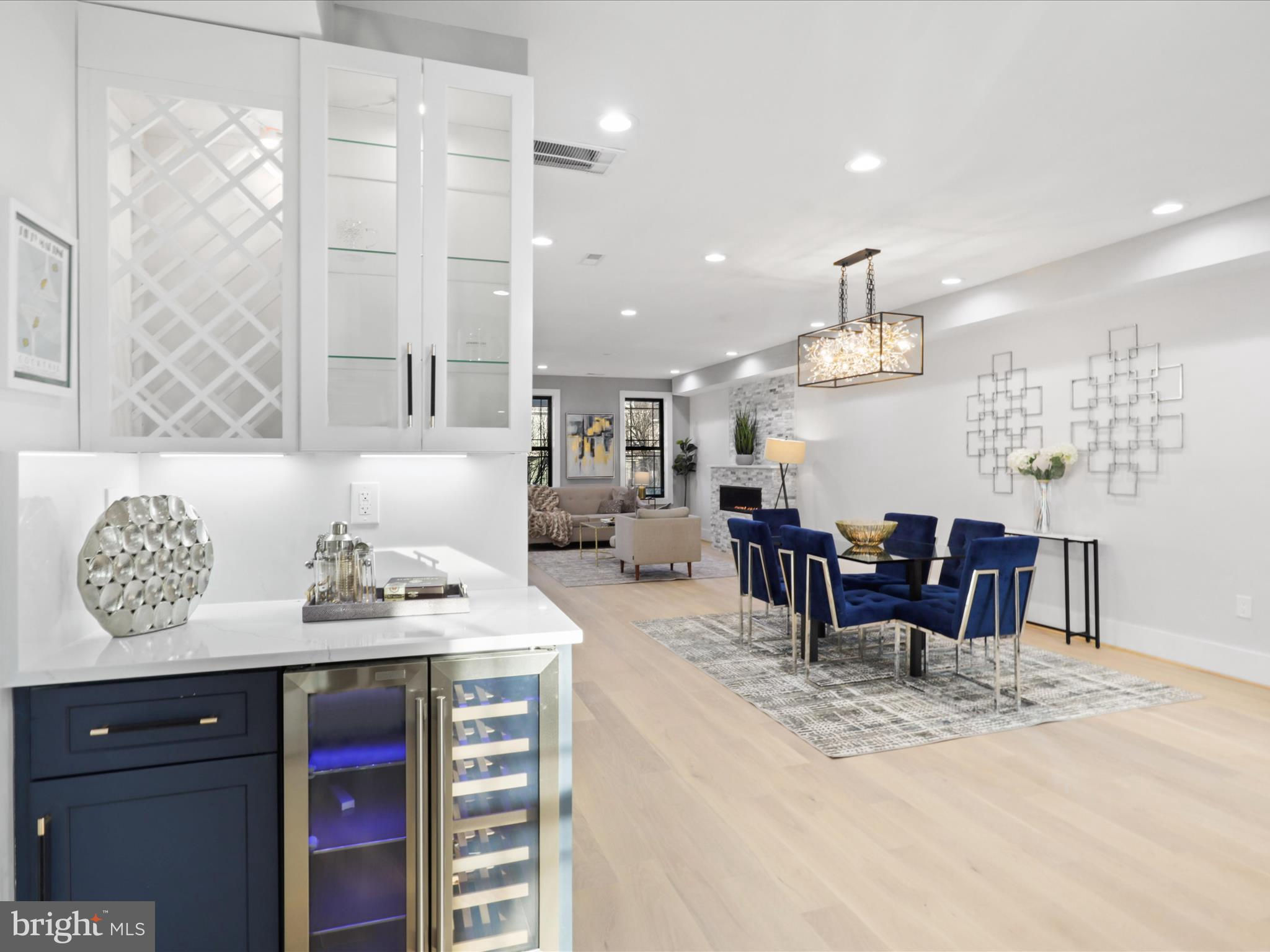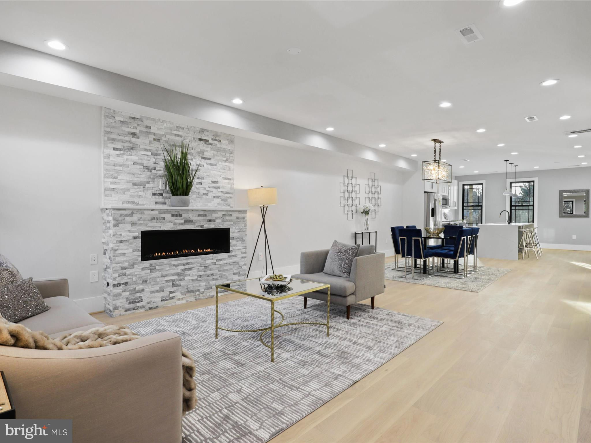 PRICE DROP.. Welcome to this 4 level home with a SEPARATE LEGAL APARTMENT and kitchen, REDUCE YOUR MORTGAGE by the rent you collect from the apartment below, FULLY RENOVATED 3000 total sqft. This home has a roof deck and is part of the 3 MULTI-TIERED DECK on the rear . This home is truly a dream come true, offering all the designer specs anyone could hope for. As you enter through the wide PORCH, you'll immediately notice through the front foyer, open floor plan and modern light with wide planked engineered hardwood floors. Modern gas FIREPLACE with its marble ledged mantel a touch of elegance. The Bosch kitchen is truly a chef's delight, two-toned cabinets in royal blue and white. A separate WET BAR with dual zoned wine cooler / refrigerator augments the casual dining. The black and gold hardware adds an extra touch of sophistication, while the touchless faucets provide convenience and functionality. The oversized waterfall quartz countertop is not only visually stunning but also perfect for entertaining guests. A powder room with marble tiled floors and contemporary cabinets completes this main level. Kitchen leads to the backyard deck which leads to the 2 CAR PARKING. This home has large double pane Anderson windows throughout . Wide stairs leads to the upstairs secured by super modern thick sectional glass walls offering more openness to the space and a sturdy modern handrail leading to the second floor. Cathedral ceilings in master bedroom with modern FIREPLACE and contemporary chandelier light is inviting. Marble decked master bathroom boasts luxurious shower with jets, handheld and rain shower. Master bed has a large walk-in closet for the comfort of the home owner. This floor also has a wide passageway leading to two additional bedrooms at the back with a large full bath. There is a surprise WET BAR in second level with dual zone under counter wine cooler/refrigerator. The 2 large back bedrooms and large closets open on to a beautiful deck to enjoy the outdoors. This floor also has a full washer dryer and a work alcove for the convenience of the home owner. This floor further goes up to another floor that has a large bedroom suite with full bath and a walk in closet, leading to a huge expansive dark composite roof top deck, which offers an entertainment area and outdoor seating space and amazing views of the city and rooftops. The lower basement level of this property offers a fantastic opportunity as an INDEPENDENT RENTAL UNIT with full kitchen. With its impressive ceiling height, it provides a spacious and comfortable living space. This unit is equipped with separate HVAC and water heaters and separate laundry. The entrance to this unit is conveniently located at the rear porch, ensuring privacy for both tenants and homeowners. Inside, you will find a generously sized bedroom along with a den that can be utilized in various ways according to your needs. Additionally, there is a full bathroom available on this level, providing all the necessary amenities for comfortable living. The living room seamlessly flows into the kitchen which boasts beautiful white shaker cabinets and sleek stainless steel appliances. Completing the cozy ambiance is another modern FIREPLACE that adds warmth and charm to the space. This versatile lower level has endless possibilities - whether you choose to rent it out separately or utilize it as an au pair or in-law suite for extended family members. Its practicality extends further with luxury flooring throughout, offering durability while maintaining an attractive appearance. This basement unit offers independence from the main residence, and convenience and privacy for all. Public transportation less than a mile, and Metro a little over a mile, restaurant and bars on Kennedy st, also walking distance. 2 HOMES FOR THE PRICE OF ONE! The TAXES are from original unrenovated home, it'll be adjusted at settlement. MOTIVATED SELLER....