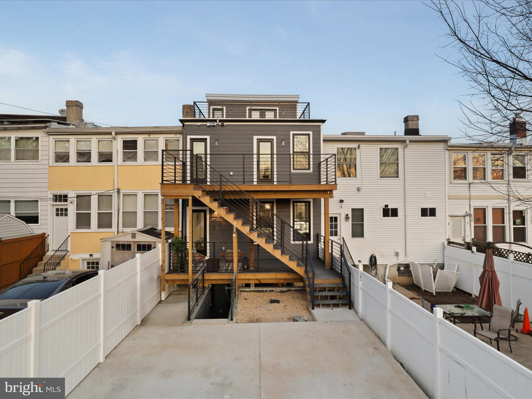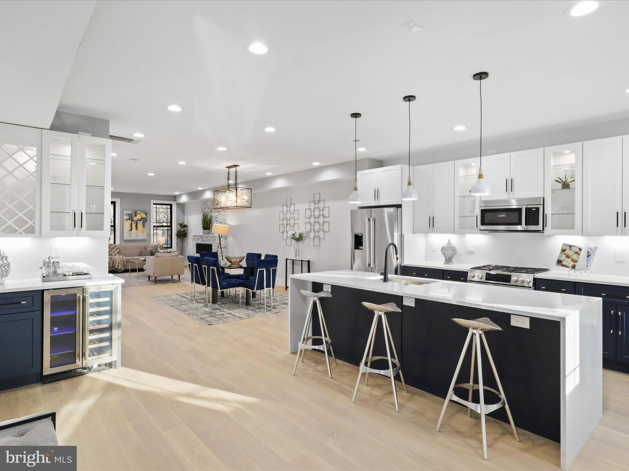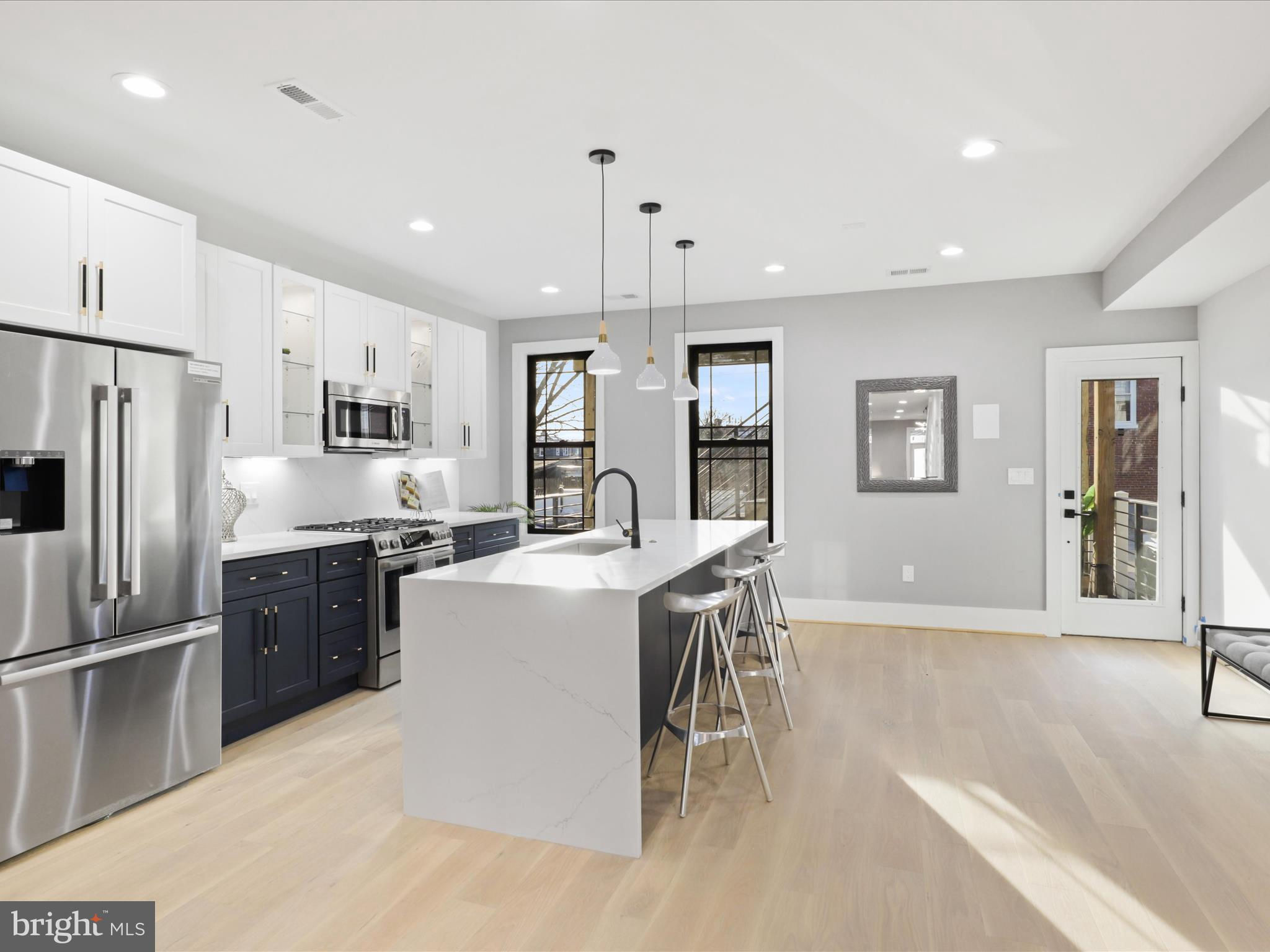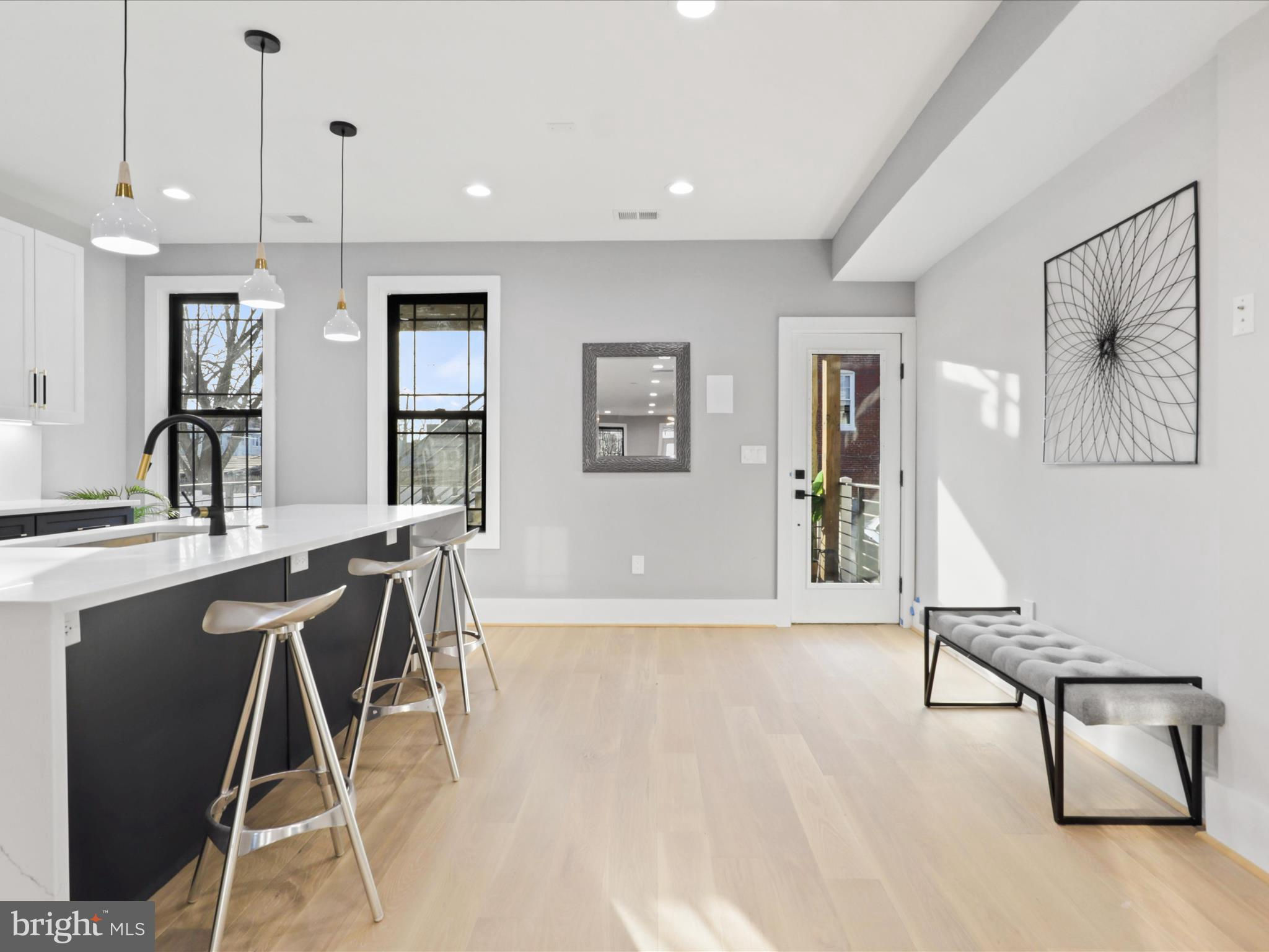 PRICE DROP.. Welcome to this 4 level home with a SEPARATE LEGAL APARTMENT and kitchen, REDUCE YOUR MORTGAGE by the rent you collect from the apartment below, FULLY RENOVATED 3000 total sqft. This home has a roof deck and is part of the 3 MULTI-TIERED DECK on the rear . This home is truly a dream come true, offering all the designer specs anyone could hope for. As you enter through the wide PORCH, you'll immediately notice through the front foyer, open floor plan and modern light with wide planked engineered hardwood floors. Modern gas FIREPLACE with its marble ledged mantel a touch of elegance. The Bosch kitchen is truly a chef's delight, two-toned cabinets in royal blue and white. A separate WET BAR with dual zoned wine cooler / refrigerator augments the casual dining. The black and gold hardware adds an extra touch of sophistication, while the touchless faucets provide convenience and functionality. The oversized waterfall quartz countertop is not only visually stunning but also perfect for entertaining guests. A powder room with marble tiled floors and contemporary cabinets completes this main level. Kitchen leads to the backyard deck which leads to the 2 CAR PARKING. This home has large double pane Anderson windows throughout . Wide stairs leads to the upstairs secured by super modern thick sectional glass walls offering more openness to the space and a sturdy modern handrail leading to the second floor. Cathedral ceilings in master bedroom with modern FIREPLACE and contemporary chandelier light is inviting. Marble decked master bathroom boasts luxurious shower with jets, handheld and rain shower. Master bed has a large walk-in closet for the comfort of the home owner. This floor also has a wide passageway leading to two additional bedrooms at the back with a large full bath. There is a surprise WET BAR in second level with dual zone under counter wine cooler/refrigerator. The 2 large back bedrooms and large closets open on to a beautiful deck to enjoy the outdoors. This floor also has a full washer dryer and a work alcove for the convenience of the home owner. This floor further goes up to another floor that has a large bedroom suite with full bath and a walk in closet, leading to a huge expansive dark composite roof top deck, which offers an entertainment area and outdoor seating space and amazing views of the city and rooftops. The lower basement level of this property offers a fantastic opportunity as an INDEPENDENT RENTAL UNIT with full kitchen. With its impressive ceiling height, it provides a spacious and comfortable living space. This unit is equipped with separate HVAC and water heaters and separate laundry. The entrance to this unit is conveniently located at the rear porch, ensuring privacy for both tenants and homeowners. Inside, you will find a generously sized bedroom along with a den that can be utilized in various ways according to your needs. Additionally, there is a full bathroom available on this level, providing all the necessary amenities for comfortable living. The living room seamlessly flows into the kitchen which boasts beautiful white shaker cabinets and sleek stainless steel appliances. Completing the cozy ambiance is another modern FIREPLACE that adds warmth and charm to the space. This versatile lower level has endless possibilities - whether you choose to rent it out separately or utilize it as an au pair or in-law suite for extended family members. Its practicality extends further with luxury flooring throughout, offering durability while maintaining an attractive appearance. This basement unit offers independence from the main residence, and convenience and privacy for all. Public transportation less than a mile, and Metro a little over a mile, restaurant and bars on Kennedy st, also walking distance. 2 HOMES FOR THE PRICE OF ONE! The TAXES are from original unrenovated home, it'll be adjusted at settlement. MOTIVATED SELLER....