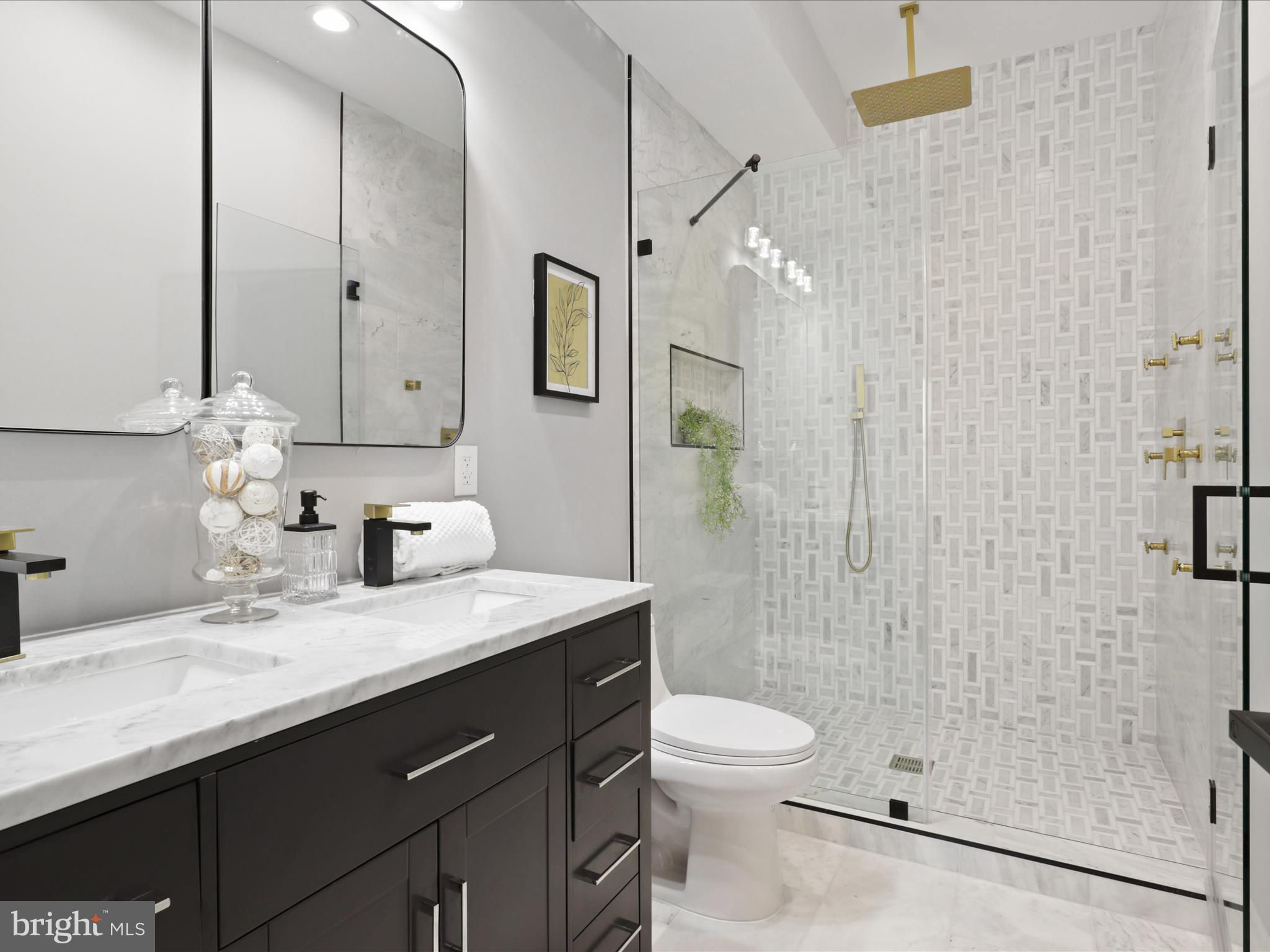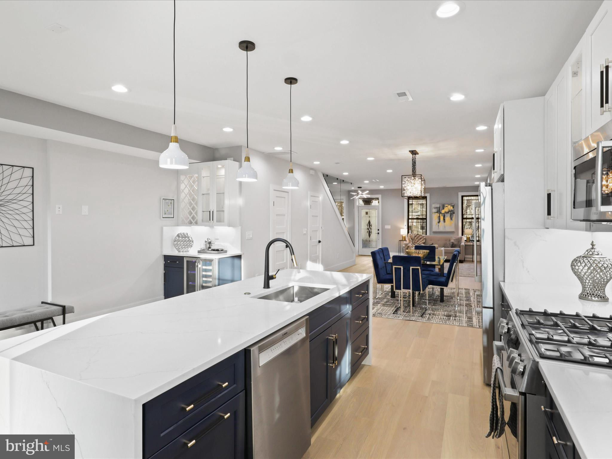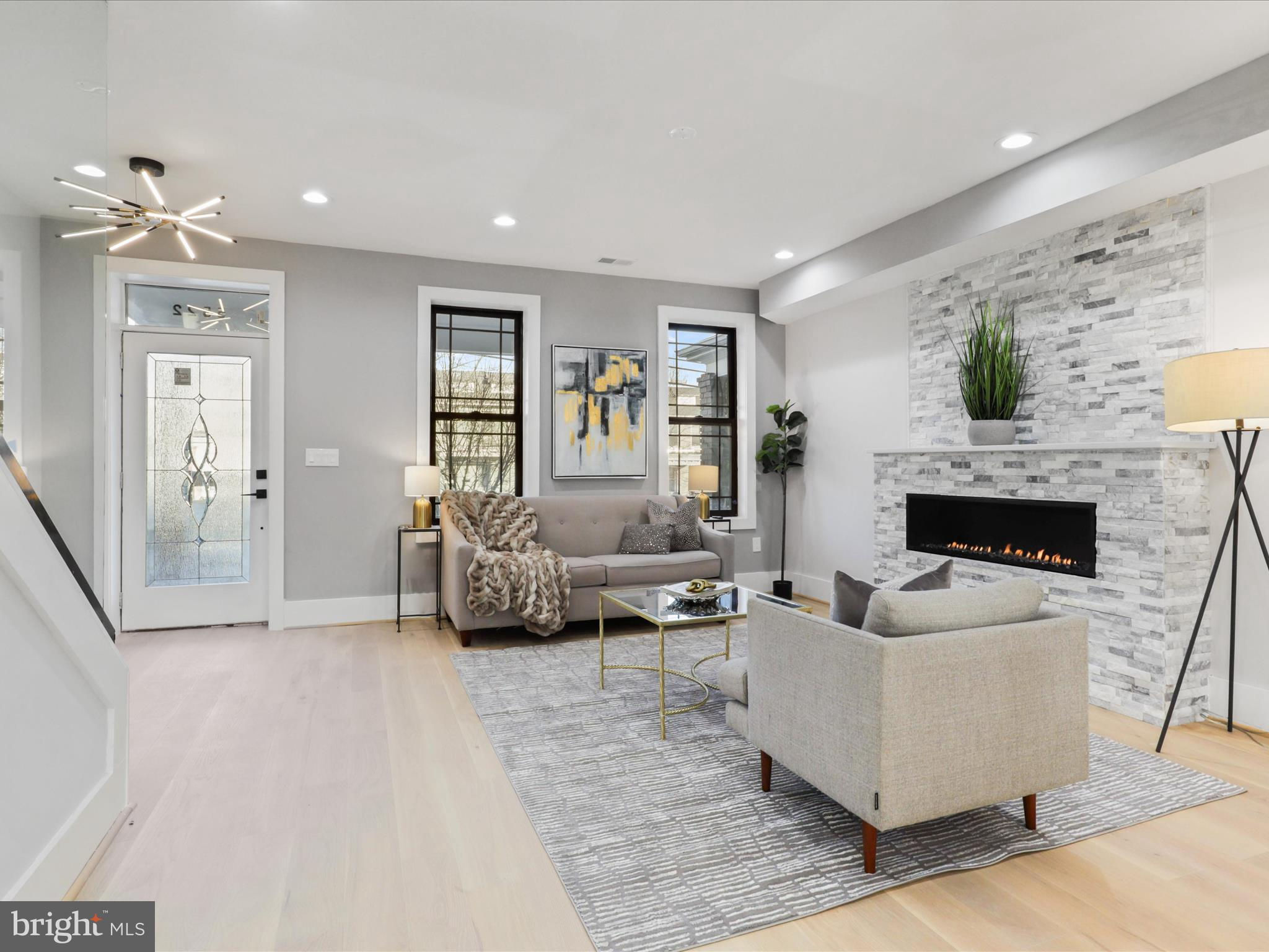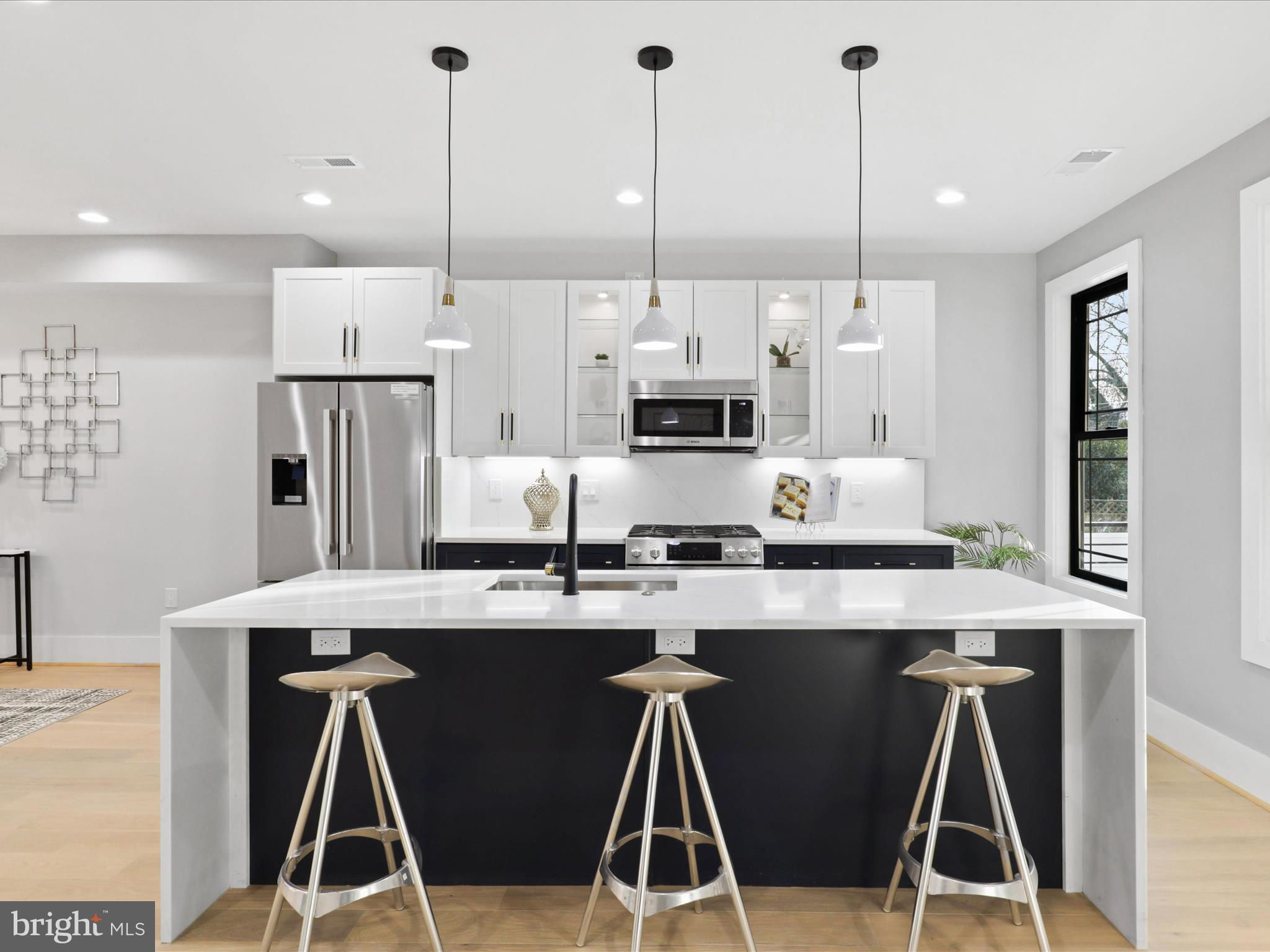 PRICE DROP.. Welcome to this 4 level home with a SEPARATE LEGAL APARTMENT and kitchen, REDUCE YOUR MORTGAGE by the rent you collect from the apartment below, FULLY RENOVATED 3000 total sqft. This home has a roof deck and is part of the 3 MULTI-TIERED DECK on the rear . This home is truly a dream come true, offering all the designer specs anyone could hope for. As you enter through the wide PORCH, you'll immediately notice through the front foyer, open floor plan and modern light with wide planked engineered hardwood floors. Modern gas FIREPLACE with its marble ledged mantel a touch of elegance. The Bosch kitchen is truly a chef's delight, two-toned cabinets in royal blue and white. A separate WET BAR with dual zoned wine cooler / refrigerator augments the casual dining. The black and gold hardware adds an extra touch of sophistication, while the touchless faucets provide convenience and functionality. The oversized waterfall quartz countertop is not only visually stunning but also perfect for entertaining guests. A powder room with marble tiled floors and contemporary cabinets completes this main level. Kitchen leads to the backyard deck which leads to the 2 CAR PARKING. This home has large double pane Anderson windows throughout . Wide stairs leads to the upstairs secured by super modern thick sectional glass walls offering more openness to the space and a sturdy modern handrail leading to the second floor. Cathedral ceilings in master bedroom with modern FIREPLACE and contemporary chandelier light is inviting. Marble decked master bathroom boasts luxurious shower with jets, handheld and rain shower. Master bed has a large walk-in closet for the comfort of the home owner. This floor also has a wide passageway leading to two additional bedrooms at the back with a large full bath. There is a surprise WET BAR in second level with dual zone under counter wine cooler/refrigerator. The 2 large back bedrooms and large closets open on to a beautiful deck to enjoy the outdoors. This floor also has a full washer dryer and a work alcove for the convenience of the home owner. This floor further goes up to another floor that has a large bedroom suite with full bath and a walk in closet, leading to a huge expansive dark composite roof top deck, which offers an entertainment area and outdoor seating space and amazing views of the city and rooftops. The lower basement level of this property offers a fantastic opportunity as an INDEPENDENT RENTAL UNIT with full kitchen. With its impressive ceiling height, it provides a spacious and comfortable living space. This unit is equipped with separate HVAC and water heaters and separate laundry. The entrance to this unit is conveniently located at the rear porch, ensuring privacy for both tenants and homeowners. Inside, you will find a generously sized bedroom along with a den that can be utilized in various ways according to your needs. Additionally, there is a full bathroom available on this level, providing all the necessary amenities for comfortable living. The living room seamlessly flows into the kitchen which boasts beautiful white shaker cabinets and sleek stainless steel appliances. Completing the cozy ambiance is another modern FIREPLACE that adds warmth and charm to the space. This versatile lower level has endless possibilities - whether you choose to rent it out separately or utilize it as an au pair or in-law suite for extended family members. Its practicality extends further with luxury flooring throughout, offering durability while maintaining an attractive appearance. This basement unit offers independence from the main residence, and convenience and privacy for all. Public transportation less than a mile, and Metro a little over a mile, restaurant and bars on Kennedy st, also walking distance. 2 HOMES FOR THE PRICE OF ONE! The TAXES are from original unrenovated home, it'll be adjusted at settlement. MOTIVATED SELLER....