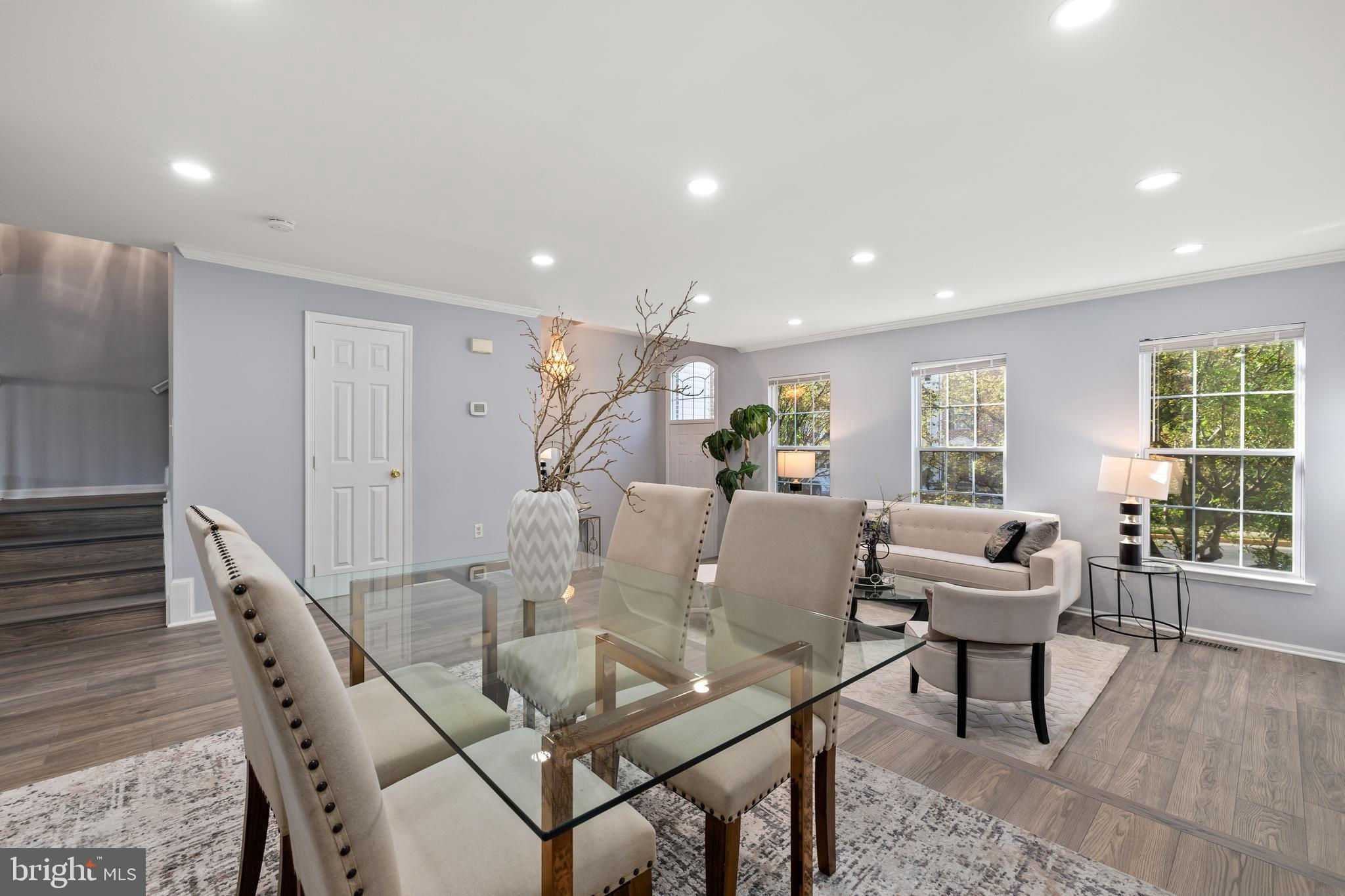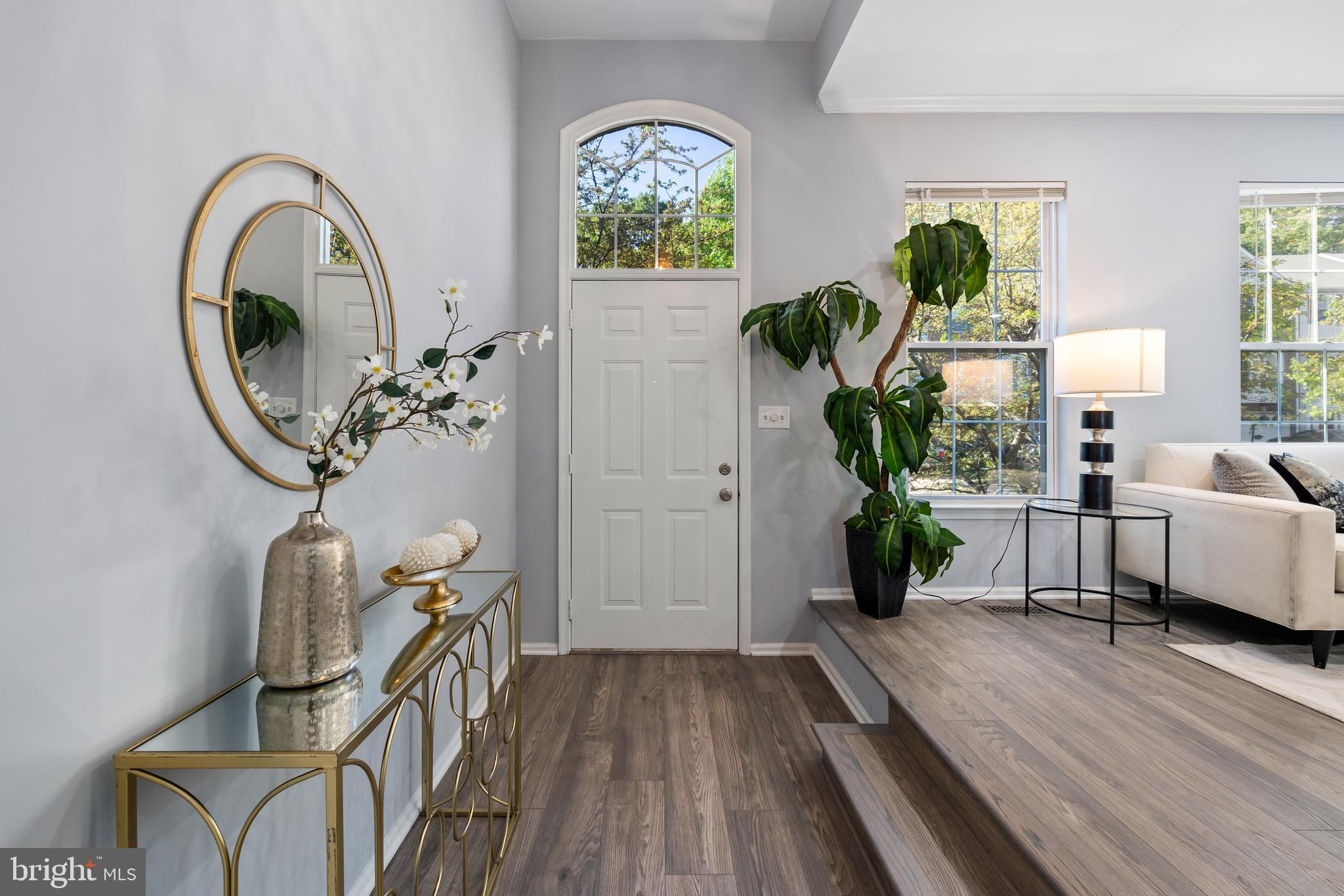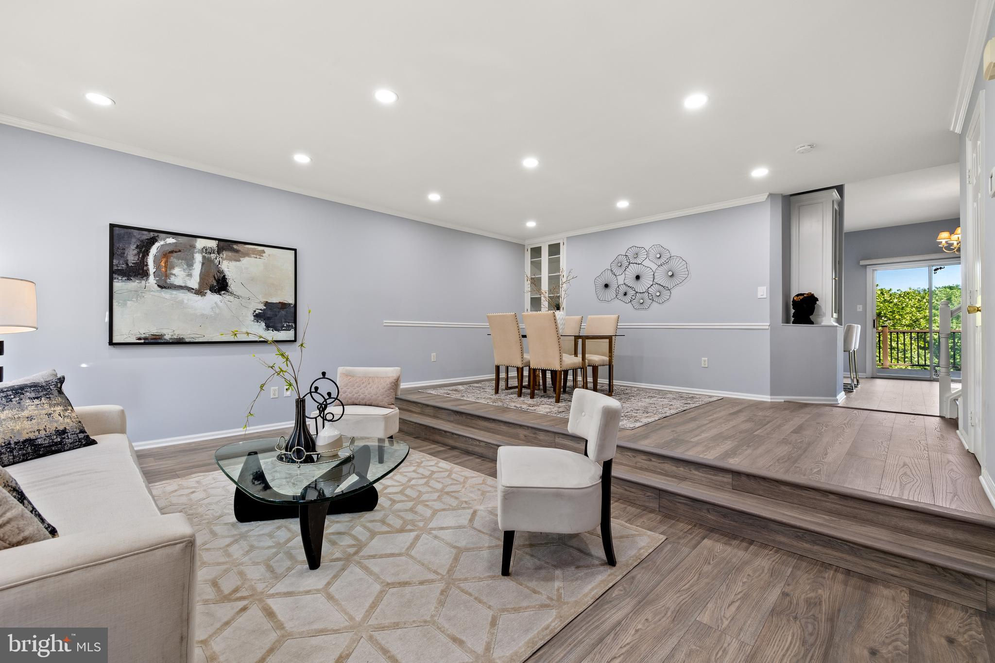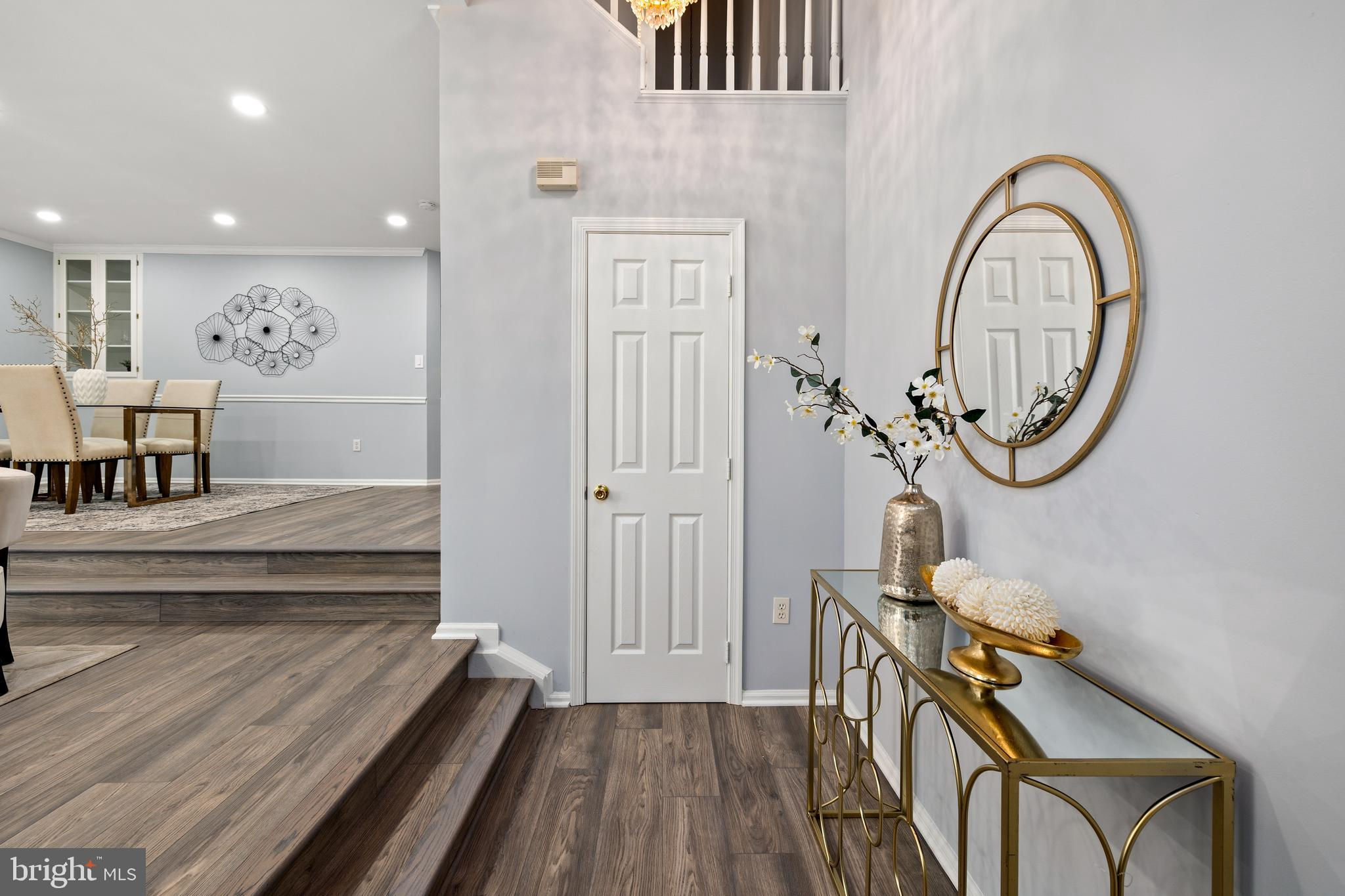 Dramatic, open floor plan with sunken living room greets you! New Luxury Vinyl floor throughout the house, new paint, the main level including a formal dining room accented with a chair rail. The eat-in kitchen has dining space as well as a breakfast bar, granite counters and stainless steel appliances. With 42 inch cabinets, there is plentiful storage. The master bedroom boasts soaring ceilings for a striking effect. En suite master bath includes a soaking tub, separate shower and double sinks. Sizeable 2nd and 3rd upper bedrooms share a hall bath. The 4th bedroom and 3rd full bath are on the lower level. A huge recreation room with a cozy fireplace walks out to a brick paved patio and a Trex deck! The previous owner put thousands into that deck and it's one of very few in the area that never needs to be replaced. Minutes to metro, Rtes. 395 and 495 for an easy commute. Enjoy Kingstown amenities, shops, theatres & restaurants.