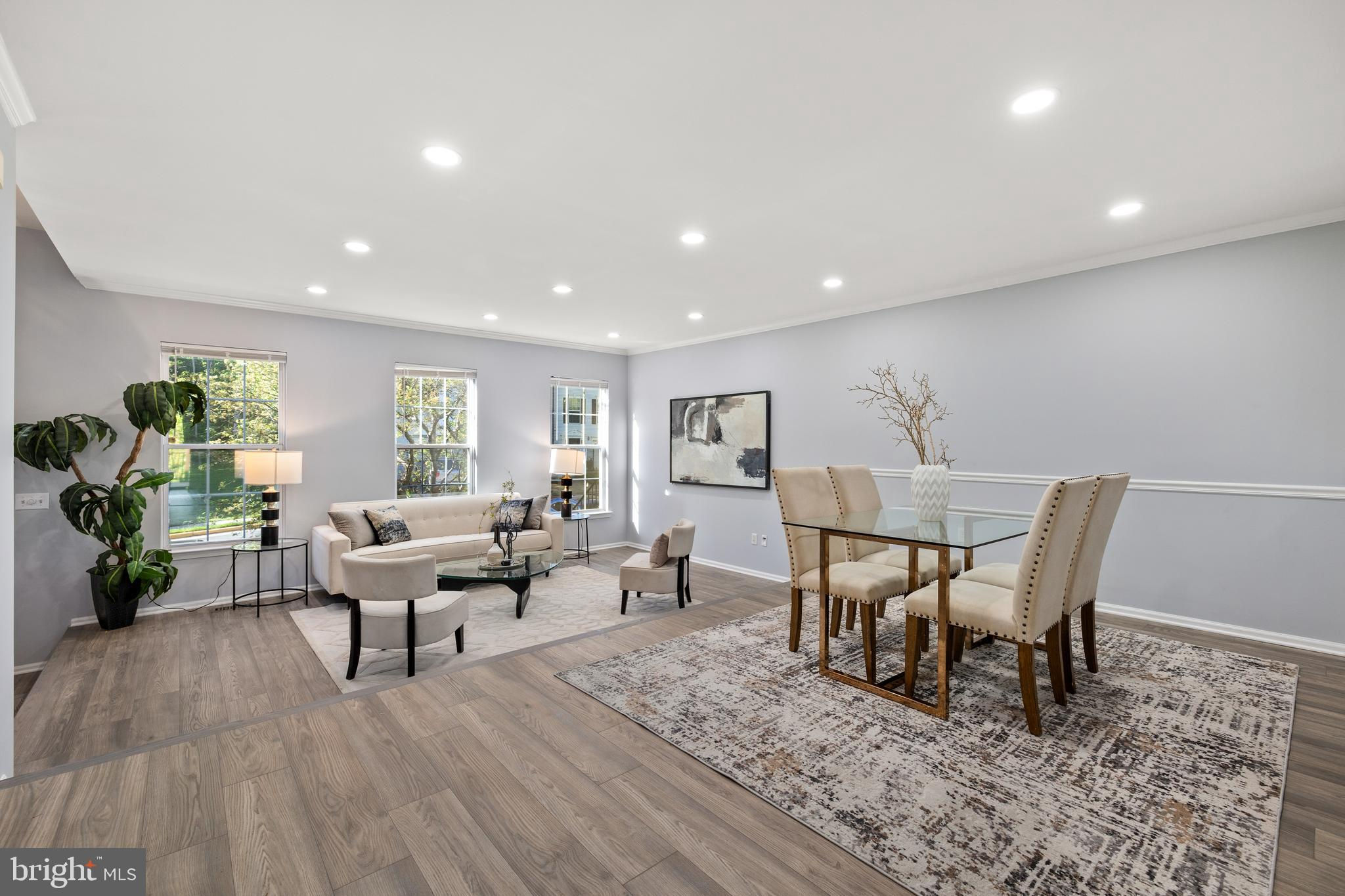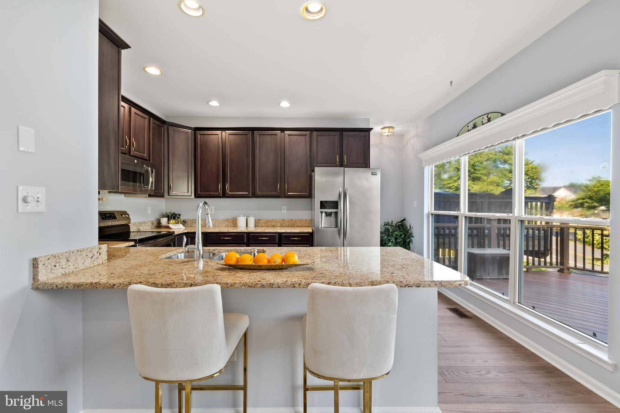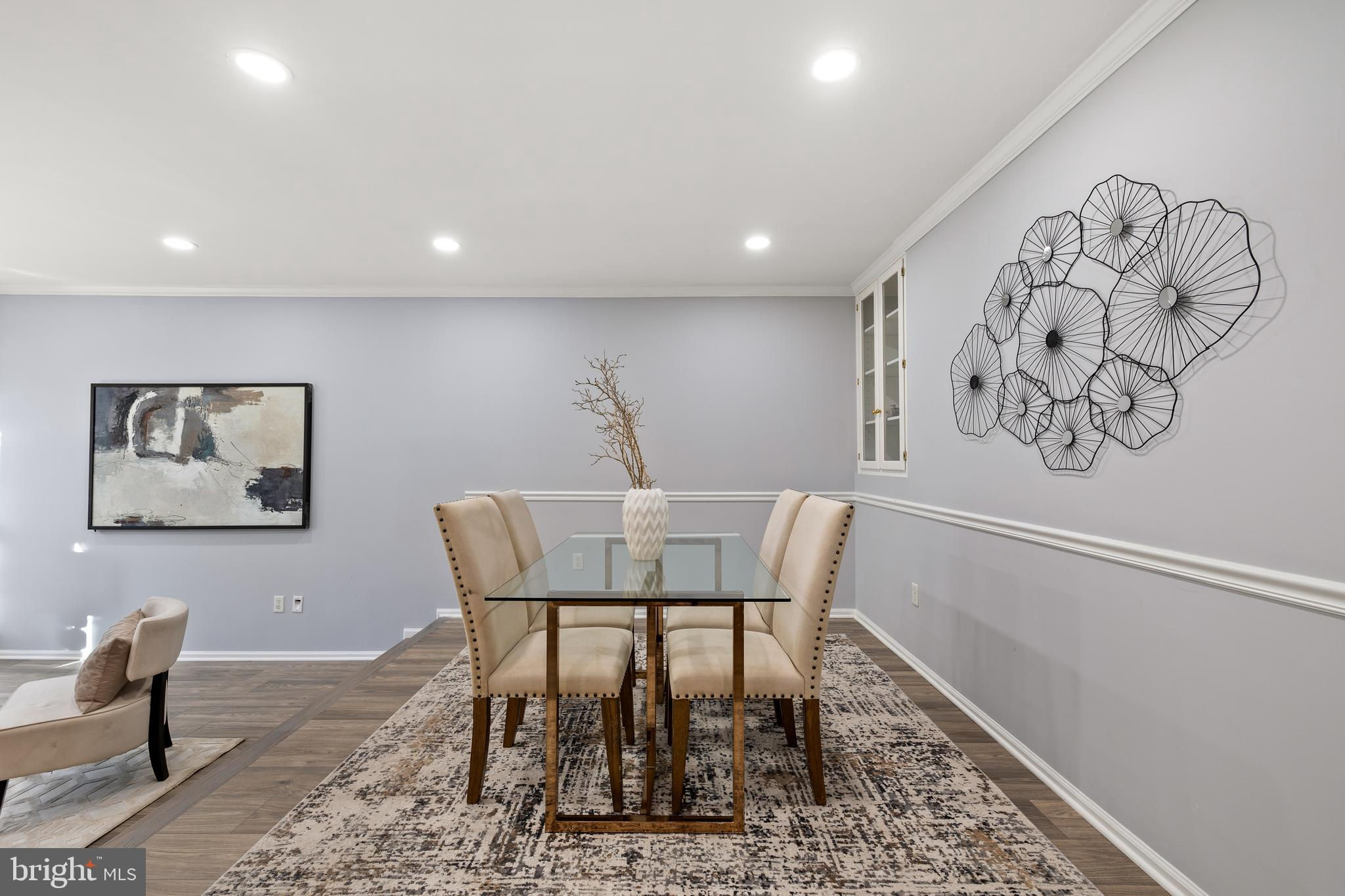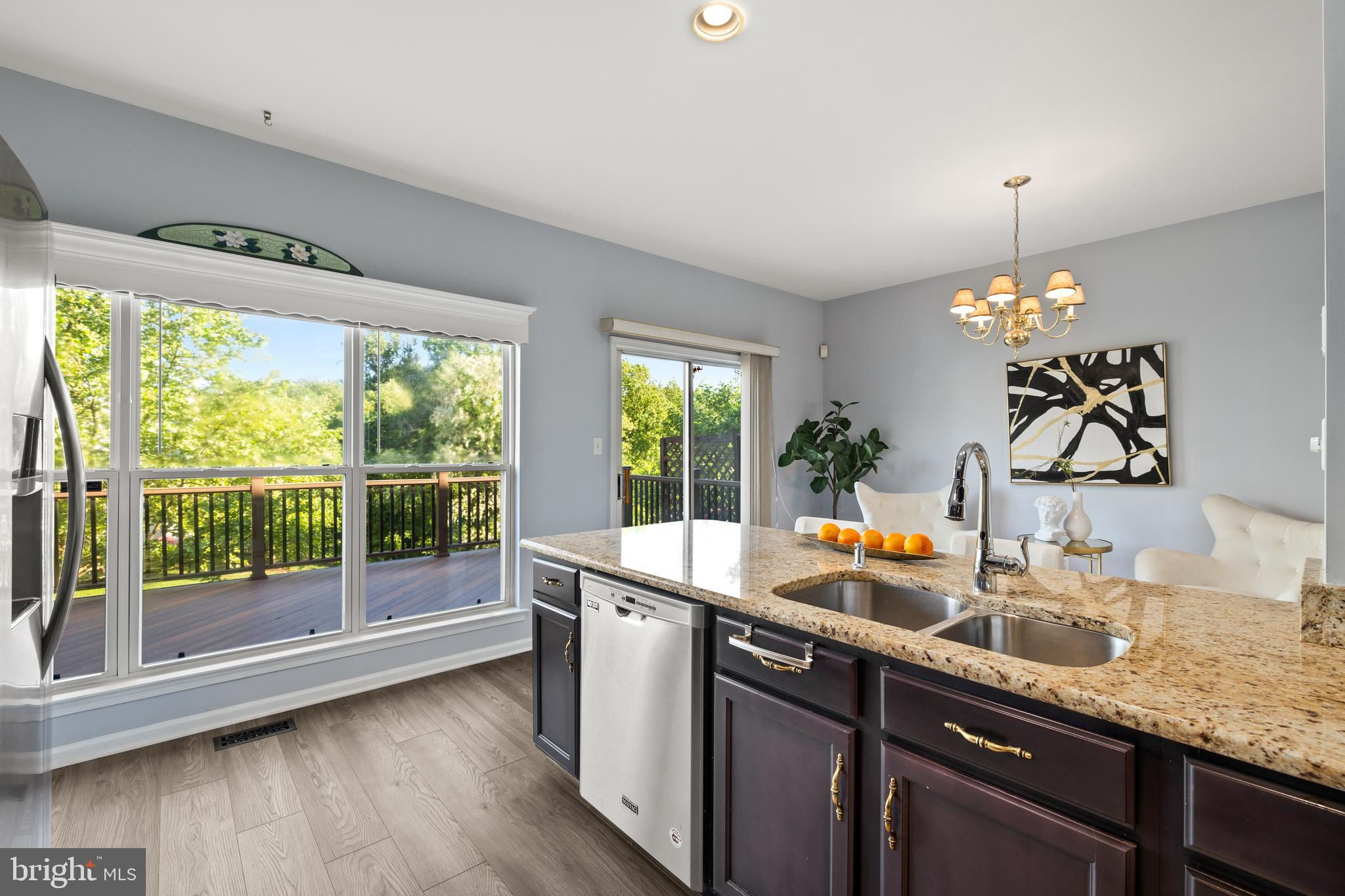 Dramatic, open floor plan with sunken living room greets you! New Luxury Vinyl floor throughout the house, new paint, the main level including a formal dining room accented with a chair rail. The eat-in kitchen has dining space as well as a breakfast bar, granite counters and stainless steel appliances. With 42 inch cabinets, there is plentiful storage. The master bedroom boasts soaring ceilings for a striking effect. En suite master bath includes a soaking tub, separate shower and double sinks. Sizeable 2nd and 3rd upper bedrooms share a hall bath. The 4th bedroom and 3rd full bath are on the lower level. A huge recreation room with a cozy fireplace walks out to a brick paved patio and a Trex deck! The previous owner put thousands into that deck and it's one of very few in the area that never needs to be replaced. Minutes to metro, Rtes. 395 and 495 for an easy commute. Enjoy Kingstown amenities, shops, theatres & restaurants.