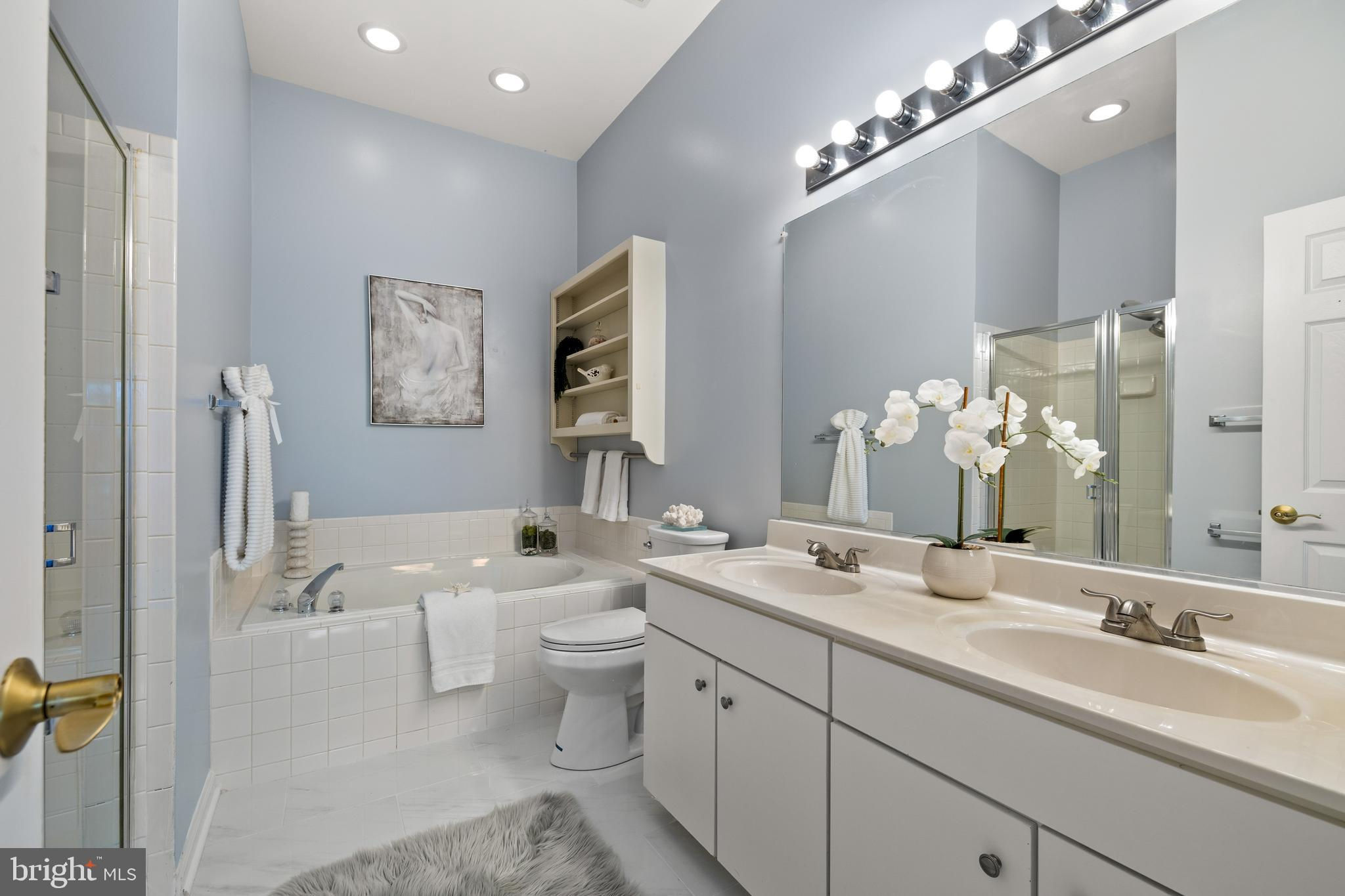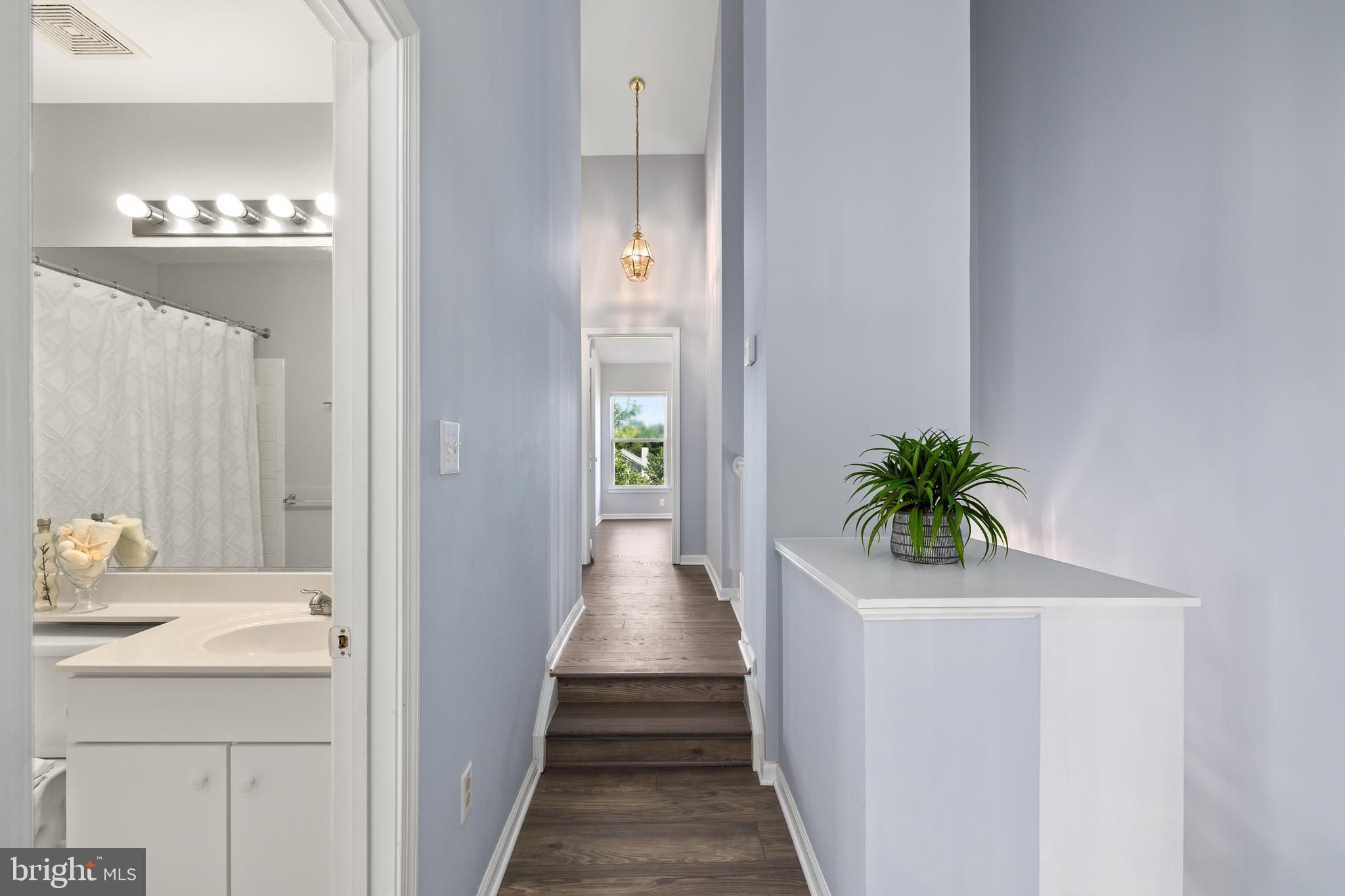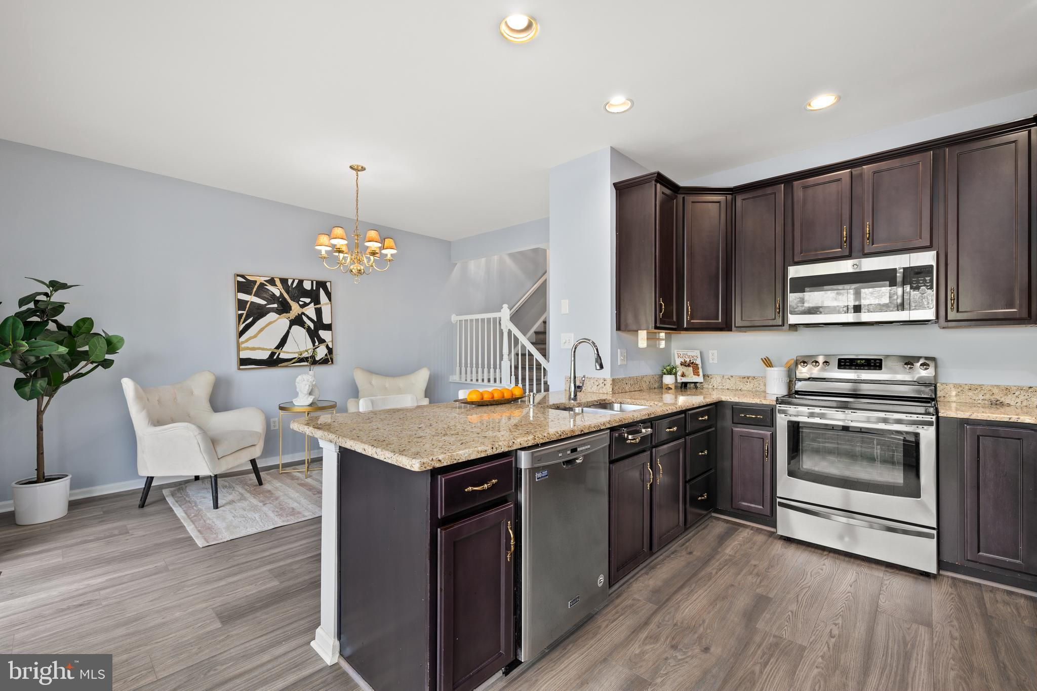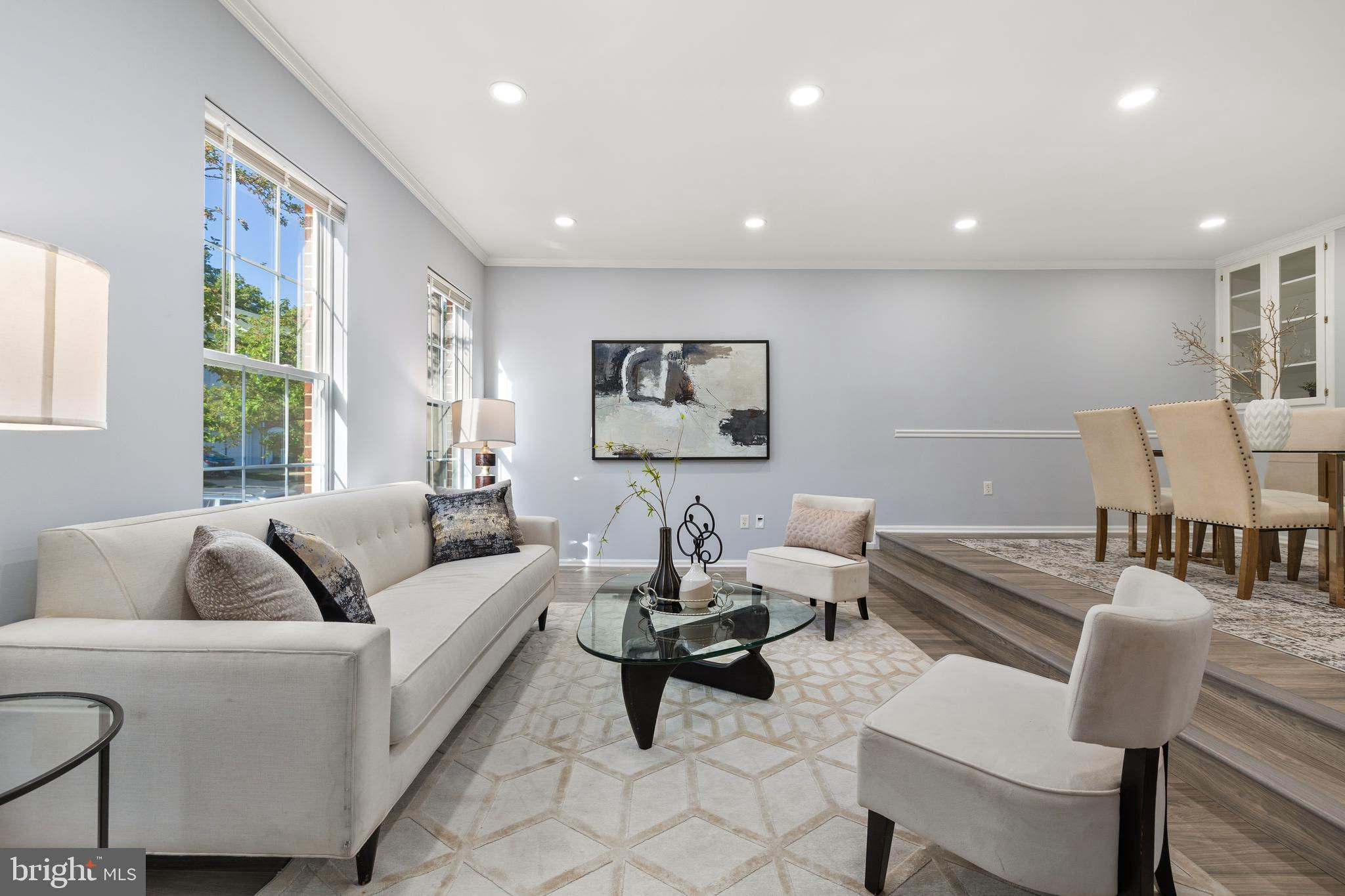 Dramatic, open floor plan with sunken living room greets you! New Luxury Vinyl floor throughout the house, new paint, the main level including a formal dining room accented with a chair rail. The eat-in kitchen has dining space as well as a breakfast bar, granite counters and stainless steel appliances. With 42 inch cabinets, there is plentiful storage. The master bedroom boasts soaring ceilings for a striking effect. En suite master bath includes a soaking tub, separate shower and double sinks. Sizeable 2nd and 3rd upper bedrooms share a hall bath. The 4th bedroom and 3rd full bath are on the lower level. A huge recreation room with a cozy fireplace walks out to a brick paved patio and a Trex deck! The previous owner put thousands into that deck and it's one of very few in the area that never needs to be replaced. Minutes to metro, Rtes. 395 and 495 for an easy commute. Enjoy Kingstown amenities, shops, theatres & restaurants.