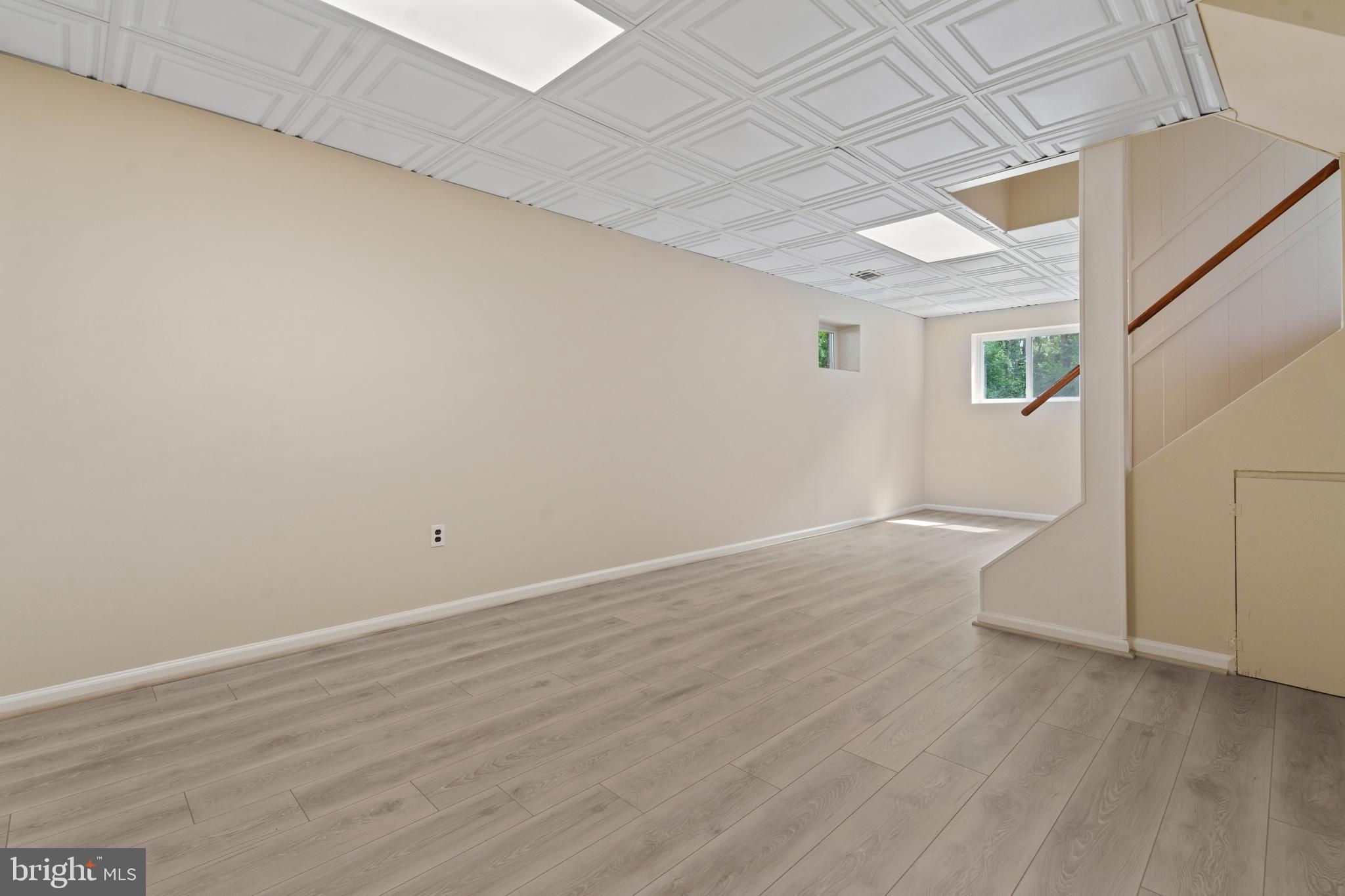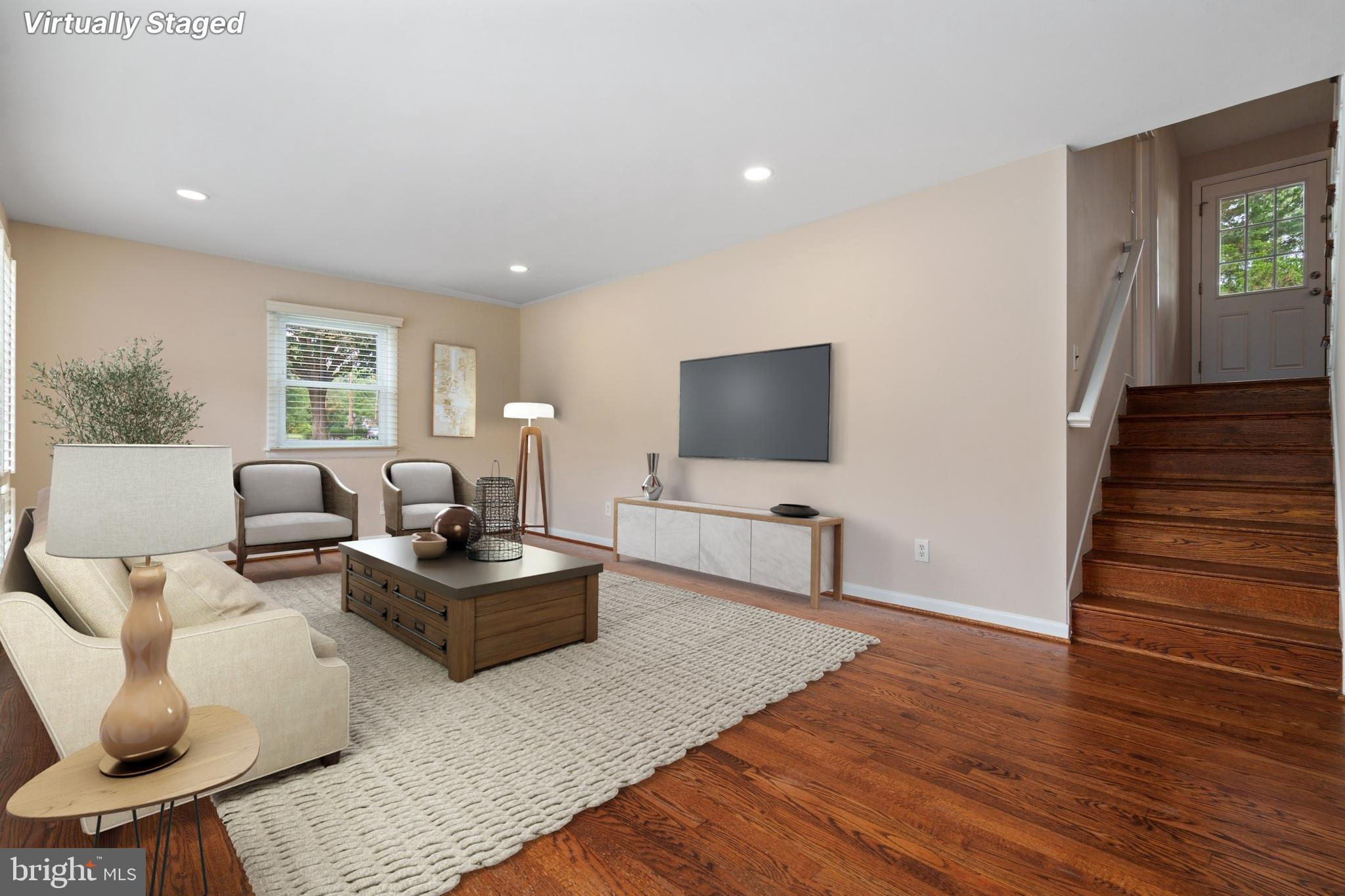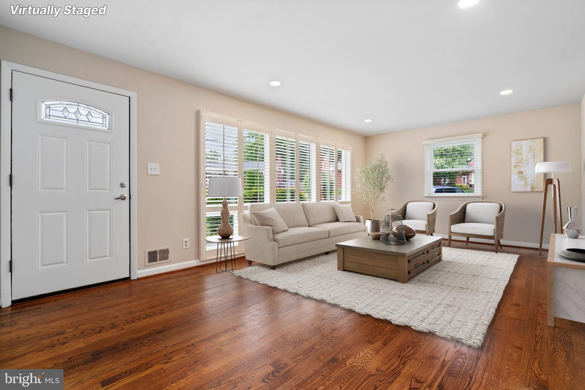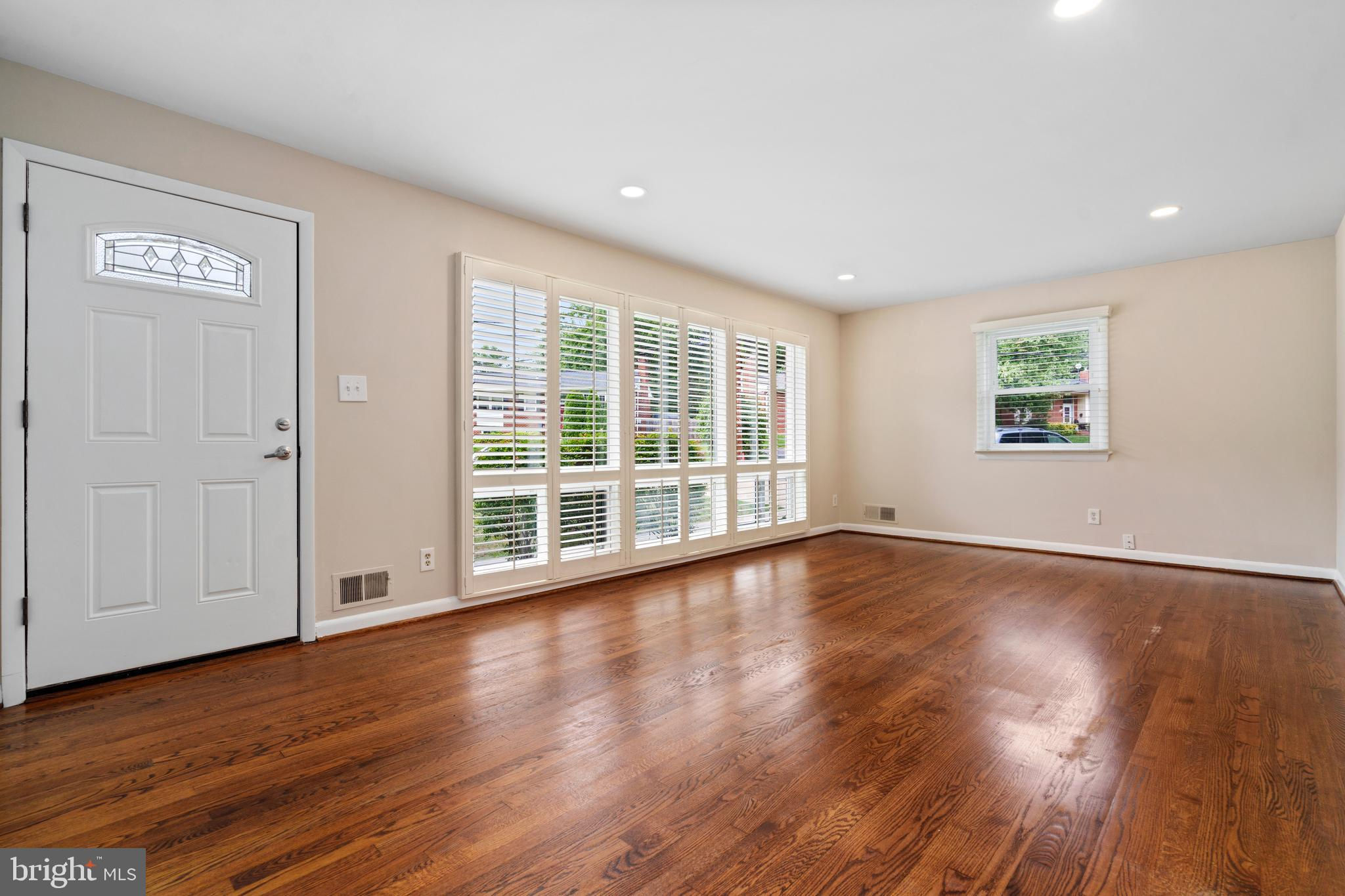 Discover your oasis in the heart of Shirley Forest with this charming home offering a perfect blend of comfort and convenience. Step inside to find hardwood floors gracing the main level, illuminated by recessed lighting that enhances the spacious living room. Natural light streams through a wall of windows adorned with plantation shutters, creating a welcoming ambiance. Amazing kitchen featuring custom cabinets, granite countertops, a stylish backsplash, and stainless-steel appliances. Adjacent is a convenient laundry room with a utility sink, powder room, and ample pantry space. Enjoy meals in the dining room under vaulted ceilings, leading out to a large deck overlooking the lush backyard - a serene retreat for relaxation and entertaining. On the main level, a versatile bedroom offers flexibility as an office or playroom. Upstairs, three additional bedrooms await, complemented by a large hall bathroom and generous storage options. The basement provides a spacious recreation room ideal for gatherings, along with an oversized storage room and direct backyard access adding to the convenience and functionality. Situated on a corner lot backing to trees and a tranquil dead-end road, this home ensures privacy and peace. Recent updates include a new Roof and Gutters in 2018, Water Heater in 2017, LVP floors in the basement 2024, and fully renovated bathrooms in 2024, ensuring modern comfort. Beyond the home, discover a vibrant community with amenities galore. Easy access to the 50-acre Dora Kelley Nature Park, offering scenic trails for nature enthusiasts. For recreation, residents can join the membership-only Dowden Terrace Pool, or play tennis and pickleball at courts just around the corner. Directly behind the house, John Adams Elementary School, playground, and baseball field provide convenience for families with children. Planned green spaces throughout the neighborhood offer abundant opportunities for outdoor enjoyment for kids and pets alike. Additionally, most streets in the area culminate at Holmes Run Stream, minimizing through traffic and ensuring a peaceful residential environment. Conveniently located near Rt 7, Seminary Rd, I-395, and Reagan National Airport makes commuting a breeze. Freshly painted throughout and move-in ready, seize the opportunity to make this your new home sweet home. Priced to Sell - Submit your offer today!