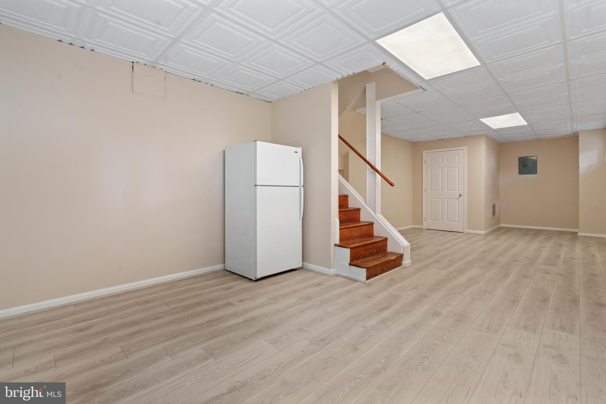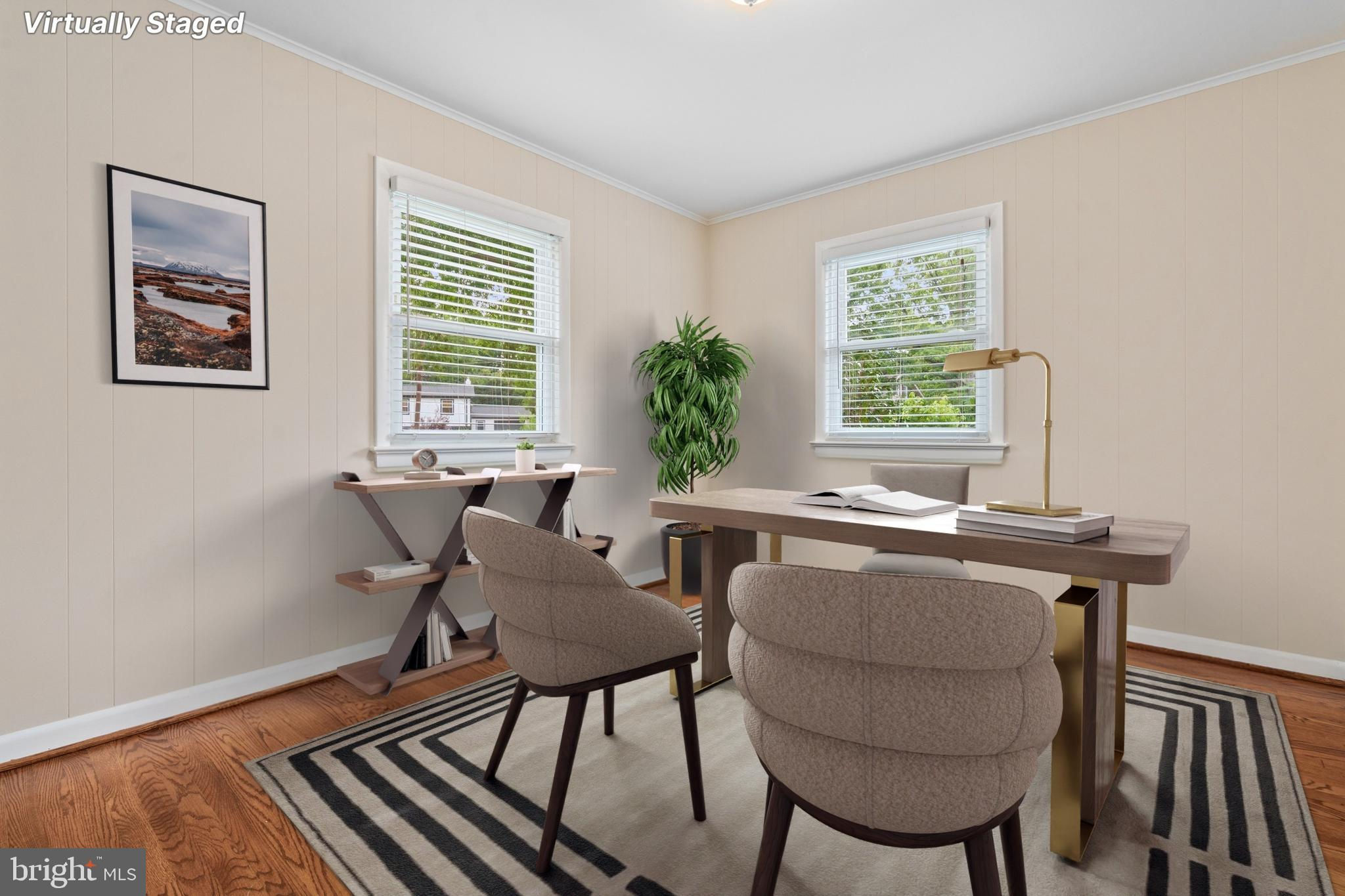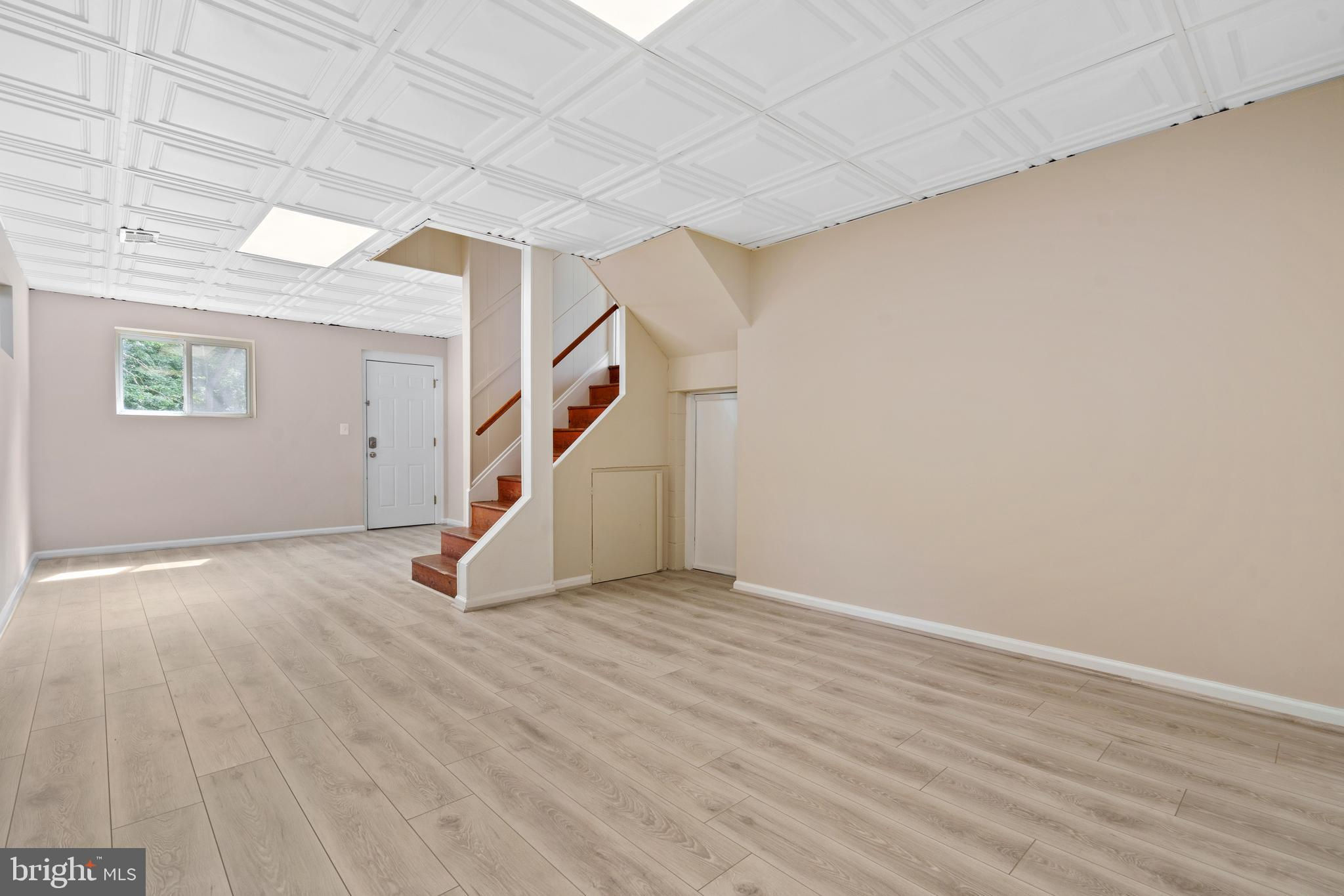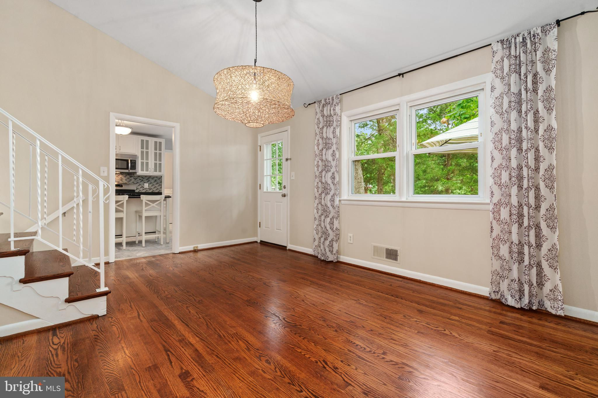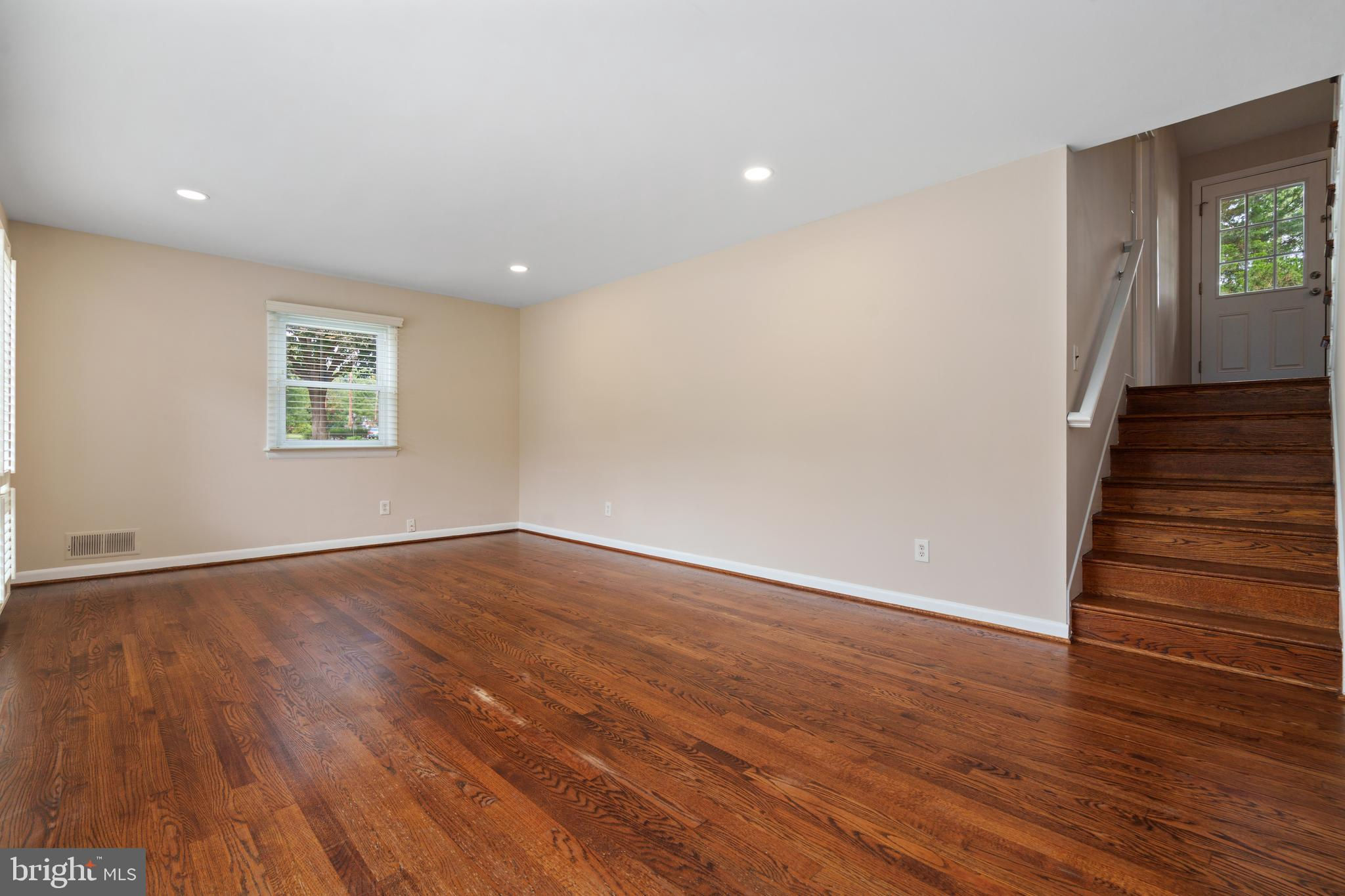 Discover your oasis in the heart of Shirley Forest with this charming home offering a perfect blend of comfort and convenience. Step inside to find hardwood floors gracing the main level, illuminated by recessed lighting that enhances the spacious living room. Natural light streams through a wall of windows adorned with plantation shutters, creating a welcoming ambiance. Amazing kitchen featuring custom cabinets, granite countertops, a stylish backsplash, and stainless-steel appliances. Adjacent is a convenient laundry room with a utility sink, powder room, and ample pantry space. Enjoy meals in the dining room under vaulted ceilings, leading out to a large deck overlooking the lush backyard - a serene retreat for relaxation and entertaining. On the main level, a versatile bedroom offers flexibility as an office or playroom. Upstairs, three additional bedrooms await, complemented by a large hall bathroom and generous storage options. The basement provides a spacious recreation room ideal for gatherings, along with an oversized storage room and direct backyard access adding to the convenience and functionality. Situated on a corner lot backing to trees and a tranquil dead-end road, this home ensures privacy and peace. Recent updates include a new Roof and Gutters in 2018, Water Heater in 2017, LVP floors in the basement 2024, and fully renovated bathrooms in 2024, ensuring modern comfort. Beyond the home, discover a vibrant community with amenities galore. Easy access to the 50-acre Dora Kelley Nature Park, offering scenic trails for nature enthusiasts. For recreation, residents can join the membership-only Dowden Terrace Pool, or play tennis and pickleball at courts just around the corner. Directly behind the house, John Adams Elementary School, playground, and baseball field provide convenience for families with children. Planned green spaces throughout the neighborhood offer abundant opportunities for outdoor enjoyment for kids and pets alike. Additionally, most streets in the area culminate at Holmes Run Stream, minimizing through traffic and ensuring a peaceful residential environment. Conveniently located near Rt 7, Seminary Rd, I-395, and Reagan National Airport makes commuting a breeze. Freshly painted throughout and move-in ready, seize the opportunity to make this your new home sweet home. Priced to Sell - Submit your offer today!