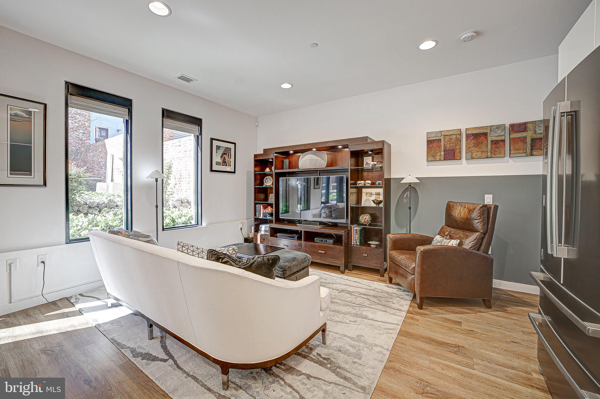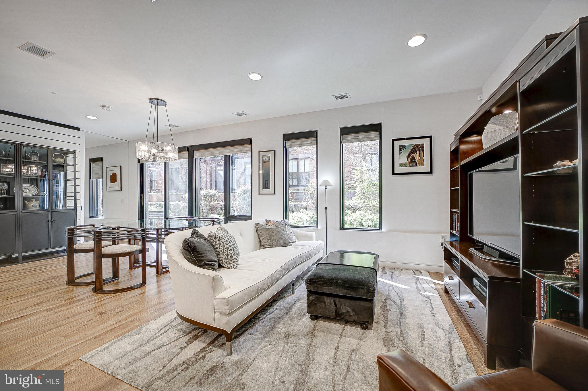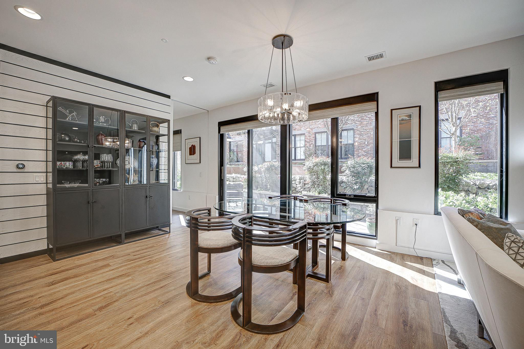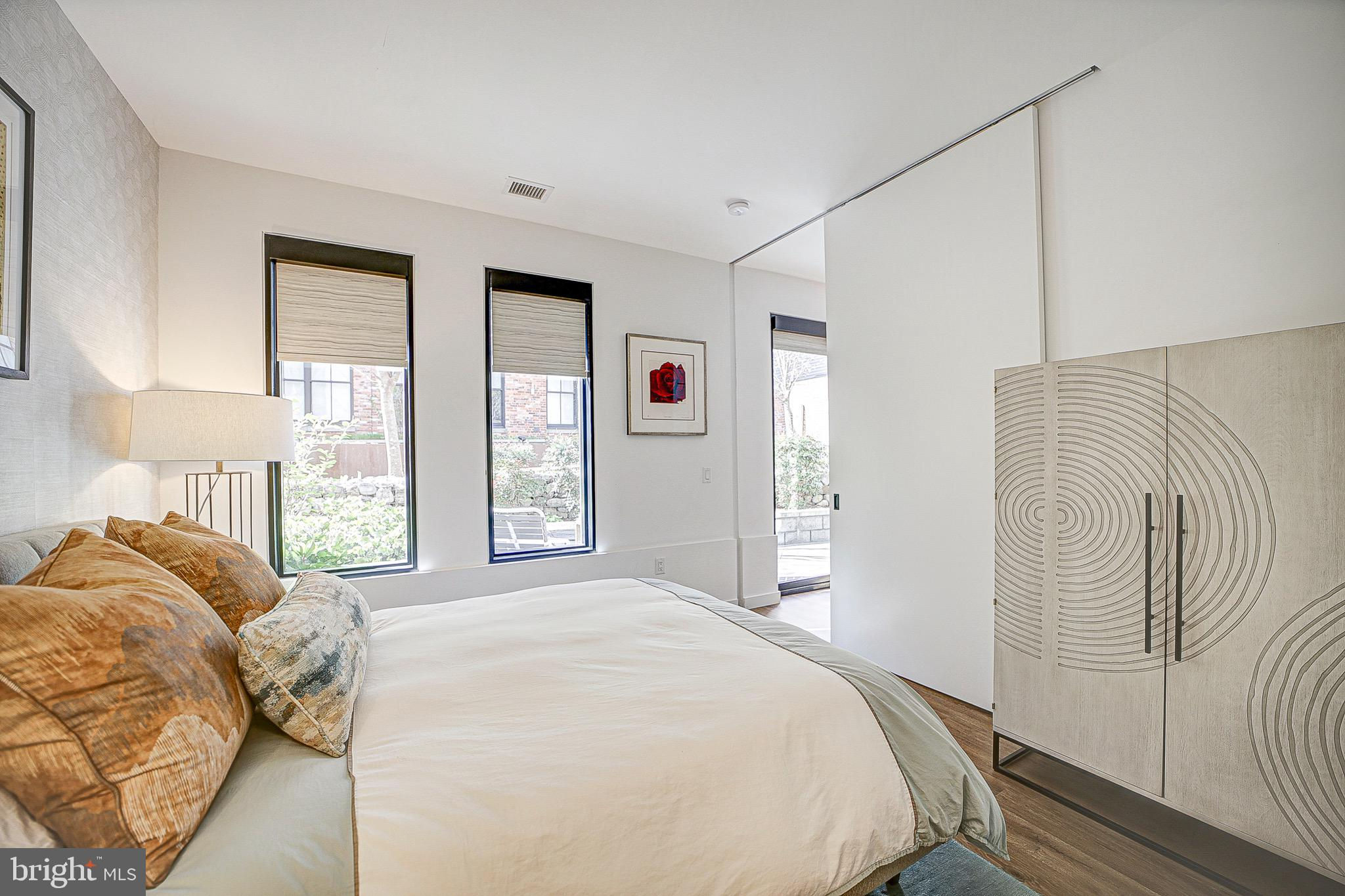 MUST SEE in person! A rare and unique, spacious, one-of-a-kind, single level 2 Bed/ 2 bath with large patio that looks out to a peaceful and serene private courtyard (also perfect for your fur baby). Here, you'll have your very own private Oasis in the city! 1 Secured EV Parking spot included. This space is also made for entertaining (Over $40K in upgrades)! Primary suite features huge closets with custom built-ins that lead to the spa inspired Duravit soaking bathtub and floating sink/toilets. Unit features include engineered LTV wide plank floors throughout (called Carolina Oak), custom Hunter Douglass blackout electric shades throughout, Bosh appliances, LED accent lighting (Murano inspired chandelier will convey from Rejuvination). Second bedroom/office has custom built-in shelving and queen Murphy bed which will also convey. The Historic Chapman Stables is located between SHAW and NOMA on the NW side. Its modern design reflects the revitalization of the former horse stable, with its unique and custom designs. The amenity-rich, pet-friendly building also boasts a common roof terrace with stunning city and Monument views. Concierge is 7 days a week (business hours).