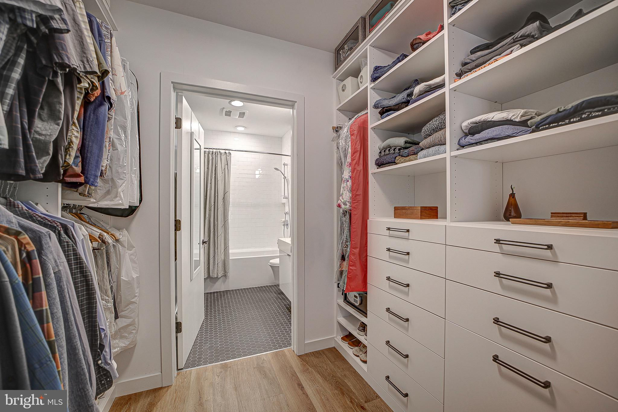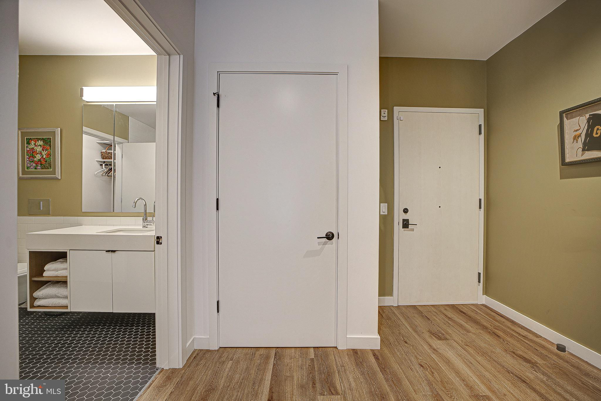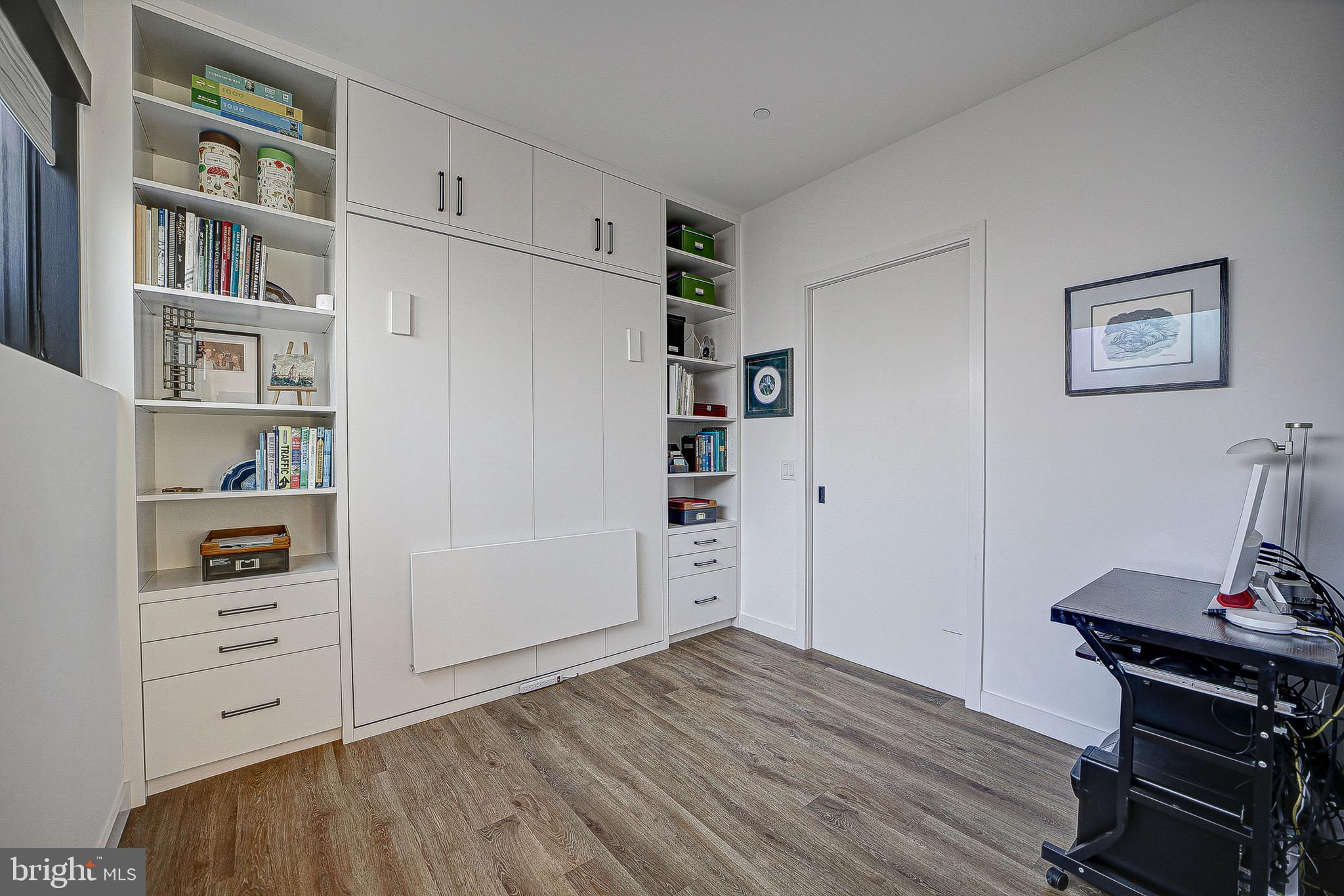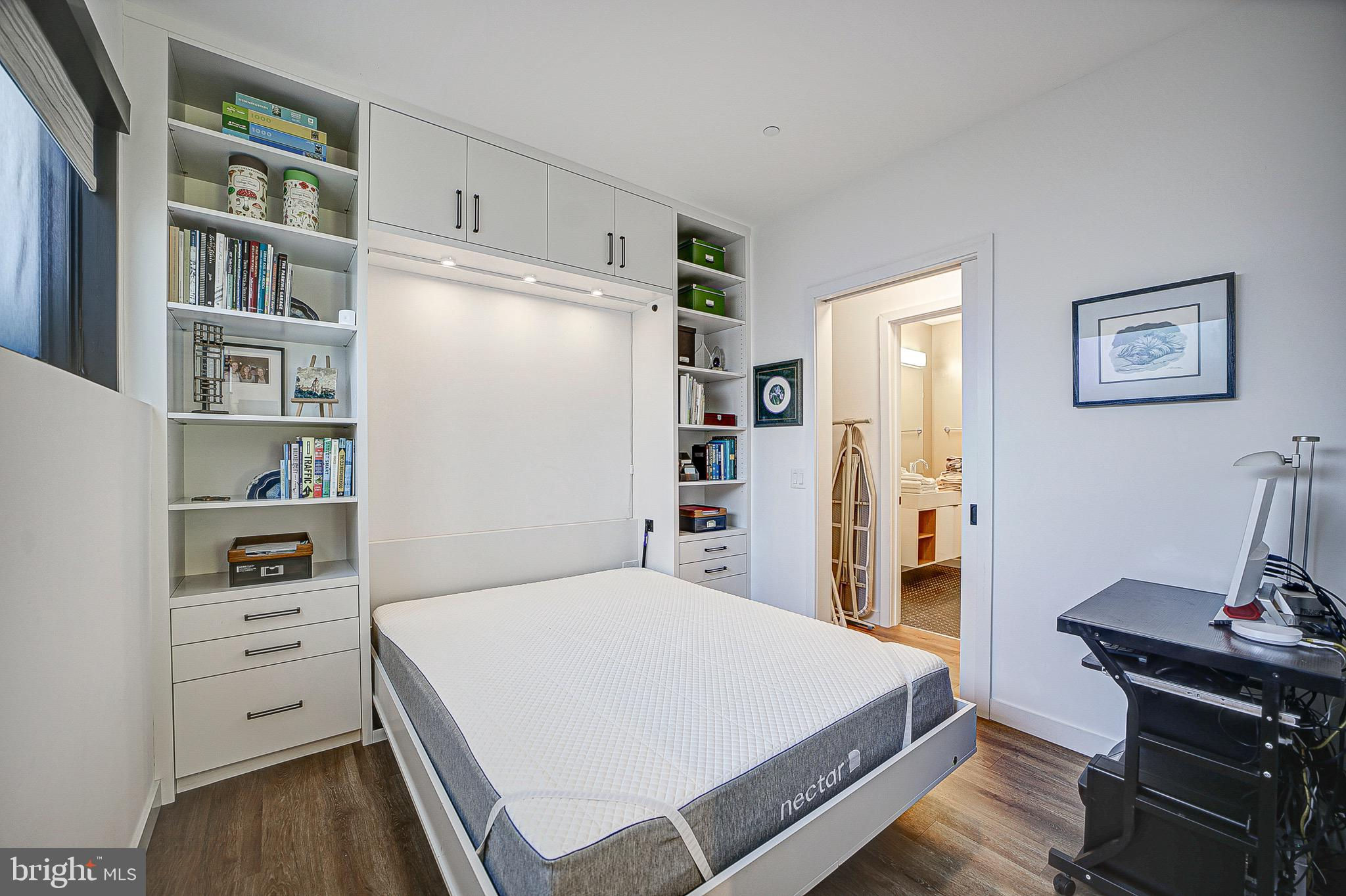 MUST SEE in person! A rare and unique, spacious, one-of-a-kind, single level 2 Bed/ 2 bath with large patio that looks out to a peaceful and serene private courtyard (also perfect for your fur baby). Here, you'll have your very own private Oasis in the city! 1 Secured EV Parking spot included. This space is also made for entertaining (Over $40K in upgrades)! Primary suite features huge closets with custom built-ins that lead to the spa inspired Duravit soaking bathtub and floating sink/toilets. Unit features include engineered LTV wide plank floors throughout (called Carolina Oak), custom Hunter Douglass blackout electric shades throughout, Bosh appliances, LED accent lighting (Murano inspired chandelier will convey from Rejuvination). Second bedroom/office has custom built-in shelving and queen Murphy bed which will also convey. The Historic Chapman Stables is located between SHAW and NOMA on the NW side. Its modern design reflects the revitalization of the former horse stable, with its unique and custom designs. The amenity-rich, pet-friendly building also boasts a common roof terrace with stunning city and Monument views. Concierge is 7 days a week (business hours).