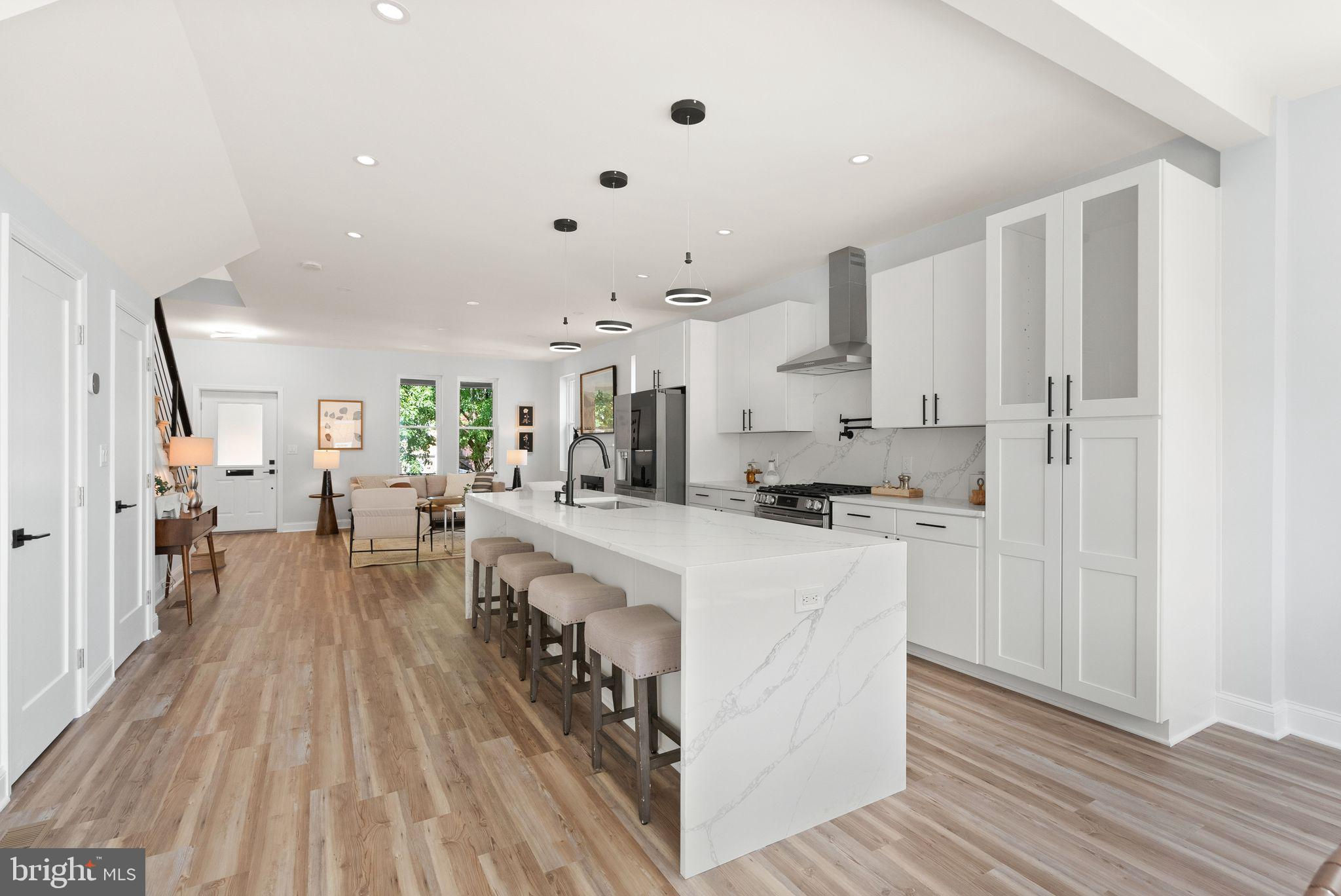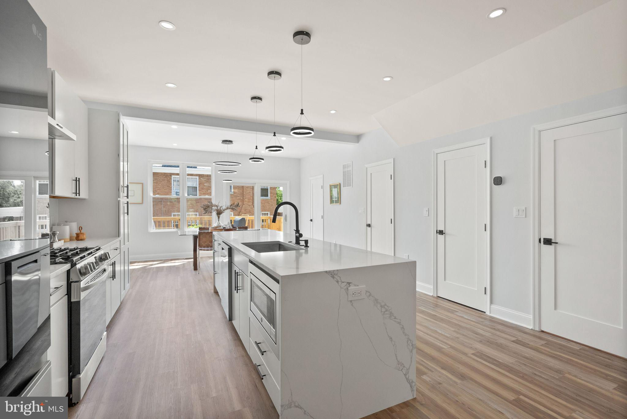 Welcome to your dream home in Brightwood, Washington DC, recently recognized by Washingtonian Magazine as one of the best places to live in 2024! This stunning townhome blends modern elegance with thoughtful design, perfect for those seeking a vibrant community with easy access to shops, restaurants, and schools. As you approach the property, you're greeted by a lovely porch—an inviting space ideal for sipping your morning coffee or unwinding with a glass of wine at the end of the day. Step inside to discover a spacious open-concept living area adorned with light-colored luxury vinyl plank flooring that enhances the airy feel of the home. The heart of this residence is the expansive kitchen, featuring a magnificent island with a built-in cooktop, stainless steel appliances, and a convenient dishwasher. The quartz kitchen and vanity countertop with a double waterfall island add a touch of luxury and sophistication to the space, perfect for both everyday living and entertaining. The lower level of this home is a true gem, featuring a vast living space complete with a full bath and kitchenette, as well as a bedroom at the basement. With its separate entrance, this area presents endless possibilities—whether as an income-generating rental space or an ideal suite for in-laws or guests. Venture upstairs to find three generously sized bedrooms, including a primary suite that boasts a luxurious bath with a shower and a hall bath, both equipped with double vanities for added comfort and functionality. With a dedicated two-car parking area, convenience is at your fingertips. The property also features the convenience of two sets of brand new laundry, with one located in the basement and another on the second floor. Additionally, the fully fenced backyard with new PVC fencing provides a private and secure outdoor space for relaxation and recreation. This home has been fully renovated with brand new electrical, plumbing, and HVAC systems, as well as a new roof in 2024 and brand new insulation all around the house, making it more energy-efficient. Located in a thriving neighborhood with an array of shops, restaurants, and schools just moments away, this townhome offers the perfect blend of comfort and convenience. Don't miss your chance to call this beautiful property home in one of Washington DC's most sought-after communities!