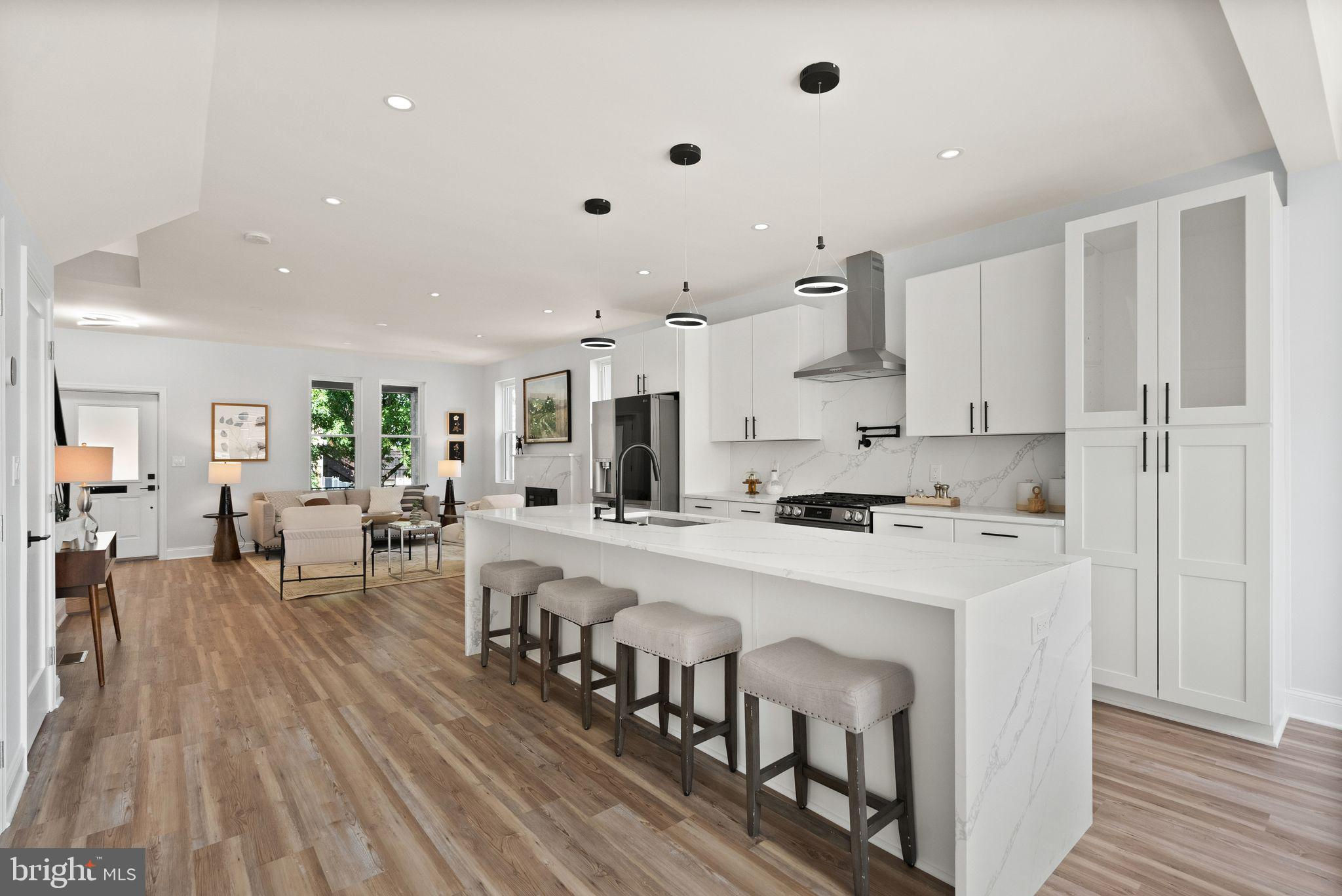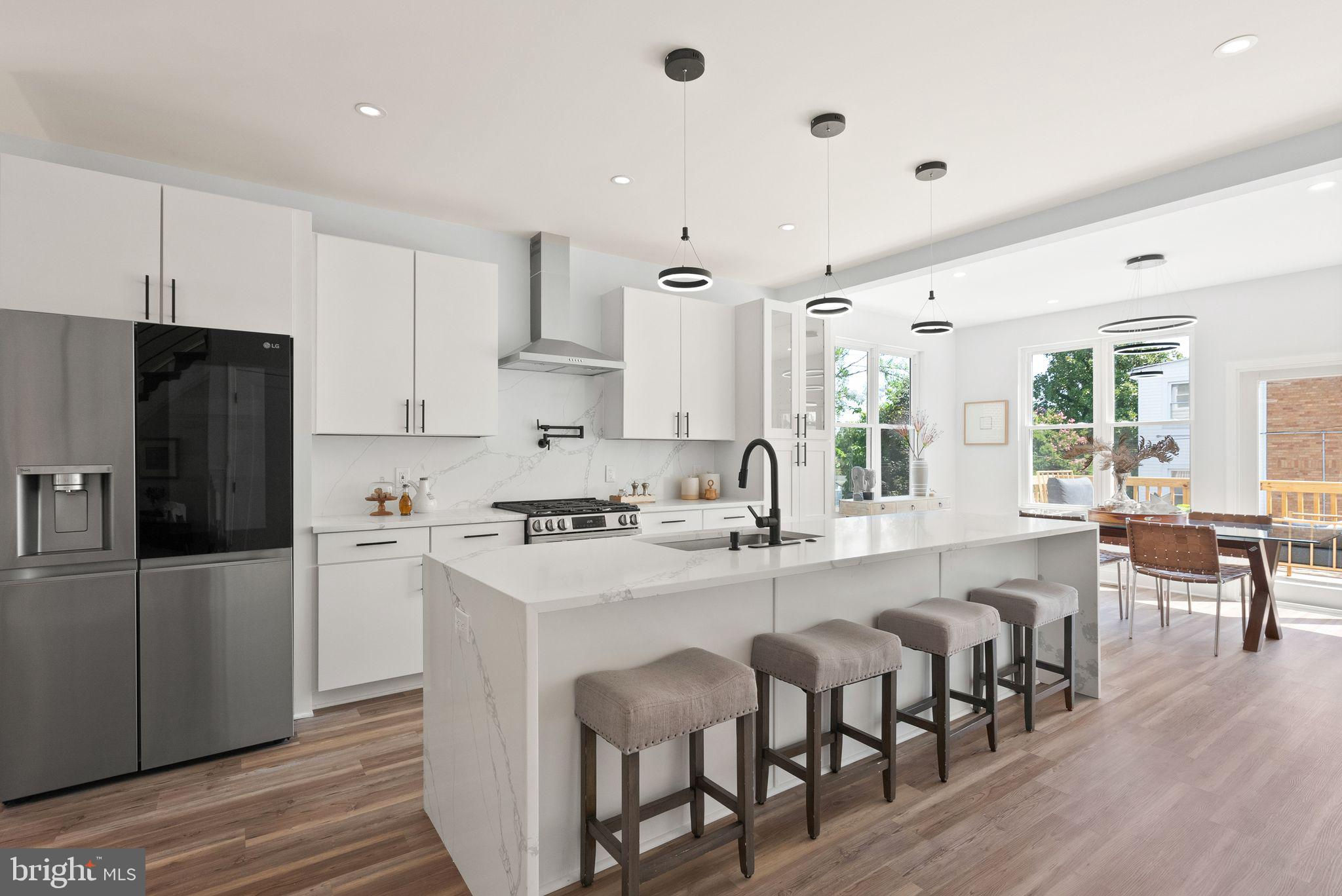 Welcome to your dream home in Brightwood, Washington DC, recently recognized by Washingtonian Magazine as one of the best places to live in 2024! This stunning townhome blends modern elegance with thoughtful design, perfect for those seeking a vibrant community with easy access to shops, restaurants, and schools. As you approach the property, you're greeted by a lovely porch—an inviting space ideal for sipping your morning coffee or unwinding with a glass of wine at the end of the day. Step inside to discover a spacious open-concept living area adorned with light-colored luxury vinyl plank flooring that enhances the airy feel of the home. The heart of this residence is the expansive kitchen, featuring a magnificent island with a built-in cooktop, stainless steel appliances, and a convenient dishwasher. The quartz kitchen and vanity countertop with a double waterfall island add a touch of luxury and sophistication to the space, perfect for both everyday living and entertaining. The lower level of this home is a true gem, featuring a vast living space complete with a full bath and kitchenette, as well as a bedroom at the basement. With its separate entrance, this area presents endless possibilities—whether as an income-generating rental space or an ideal suite for in-laws or guests. Venture upstairs to find three generously sized bedrooms, including a primary suite that boasts a luxurious bath with a shower and a hall bath, both equipped with double vanities for added comfort and functionality. With a dedicated two-car parking area, convenience is at your fingertips. The property also features the convenience of two sets of brand new laundry, with one located in the basement and another on the second floor. Additionally, the fully fenced backyard with new PVC fencing provides a private and secure outdoor space for relaxation and recreation. This home has been fully renovated with brand new electrical, plumbing, and HVAC systems, as well as a new roof in 2024 and brand new insulation all around the house, making it more energy-efficient. Located in a thriving neighborhood with an array of shops, restaurants, and schools just moments away, this townhome offers the perfect blend of comfort and convenience. Don't miss your chance to call this beautiful property home in one of Washington DC's most sought-after communities!
