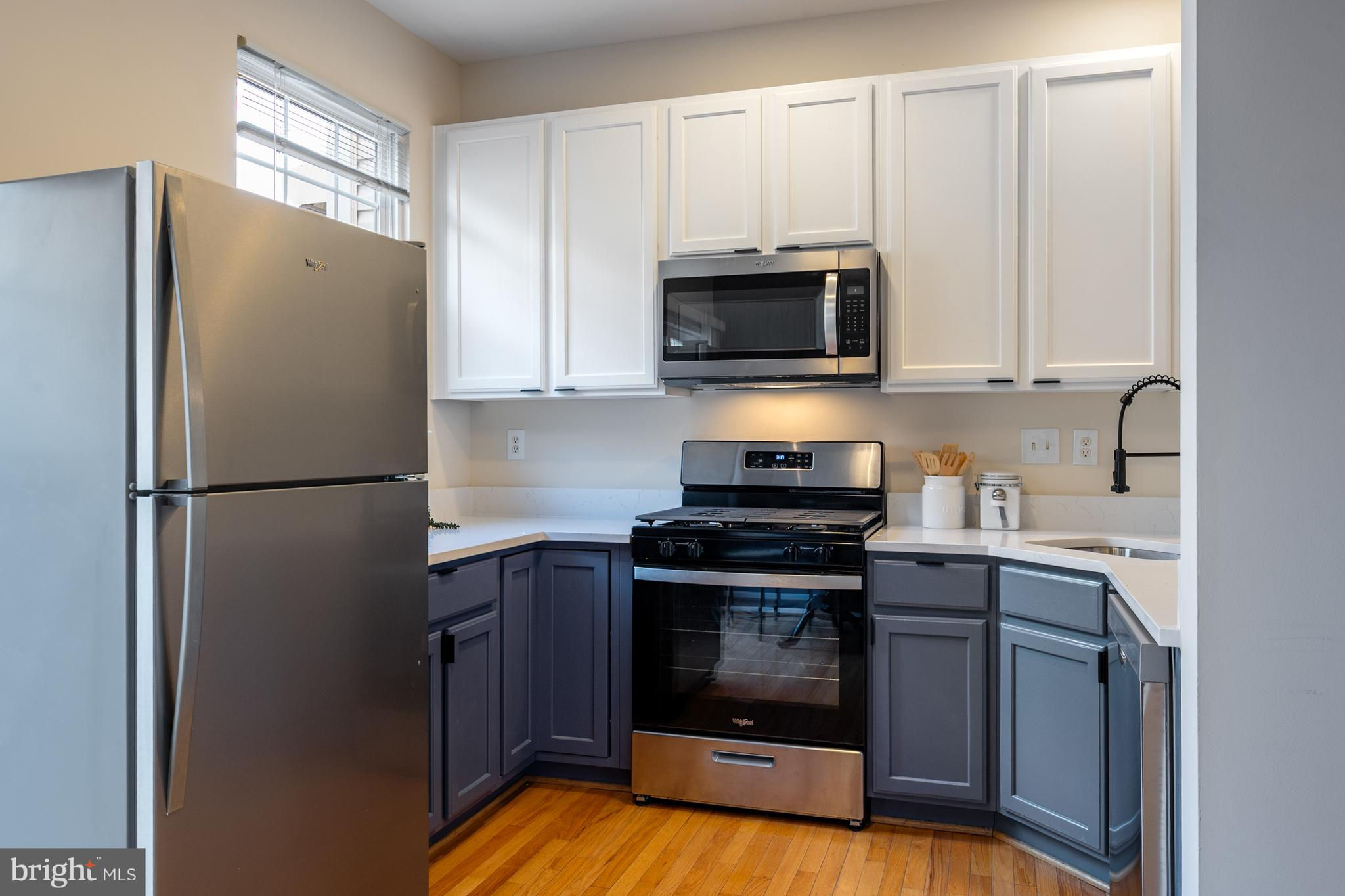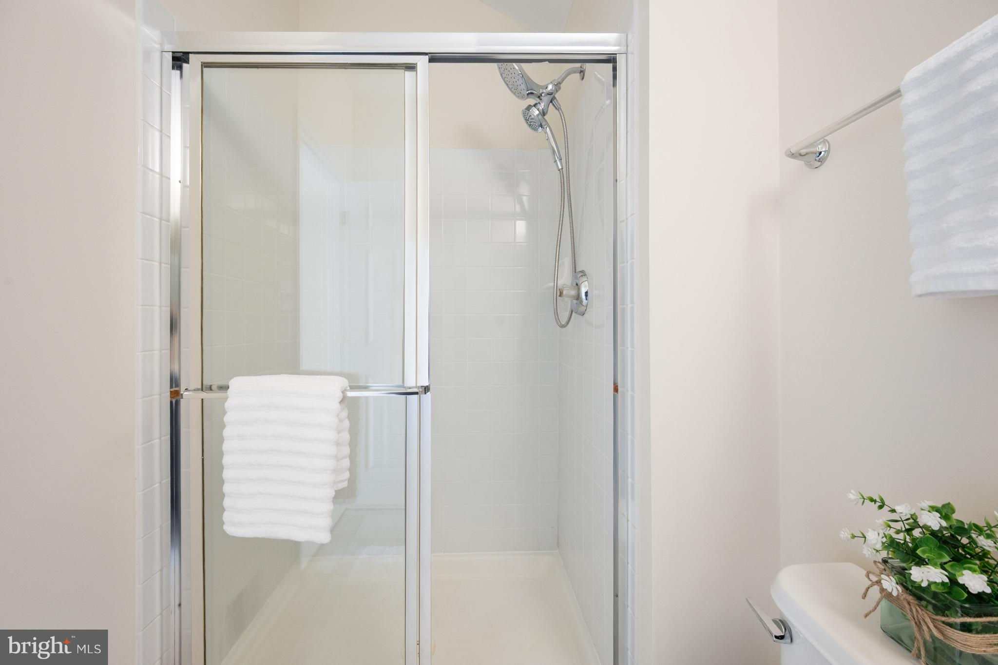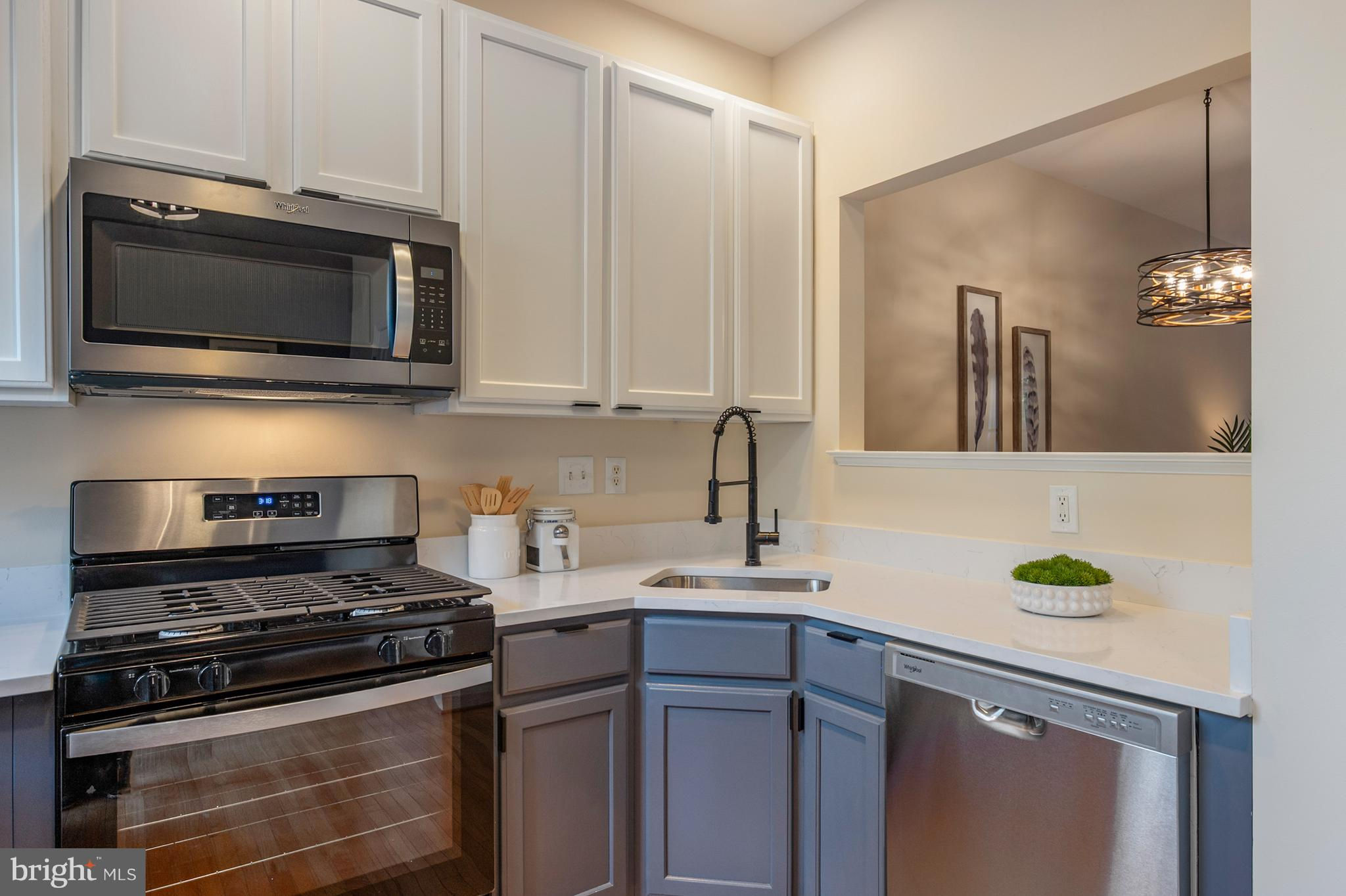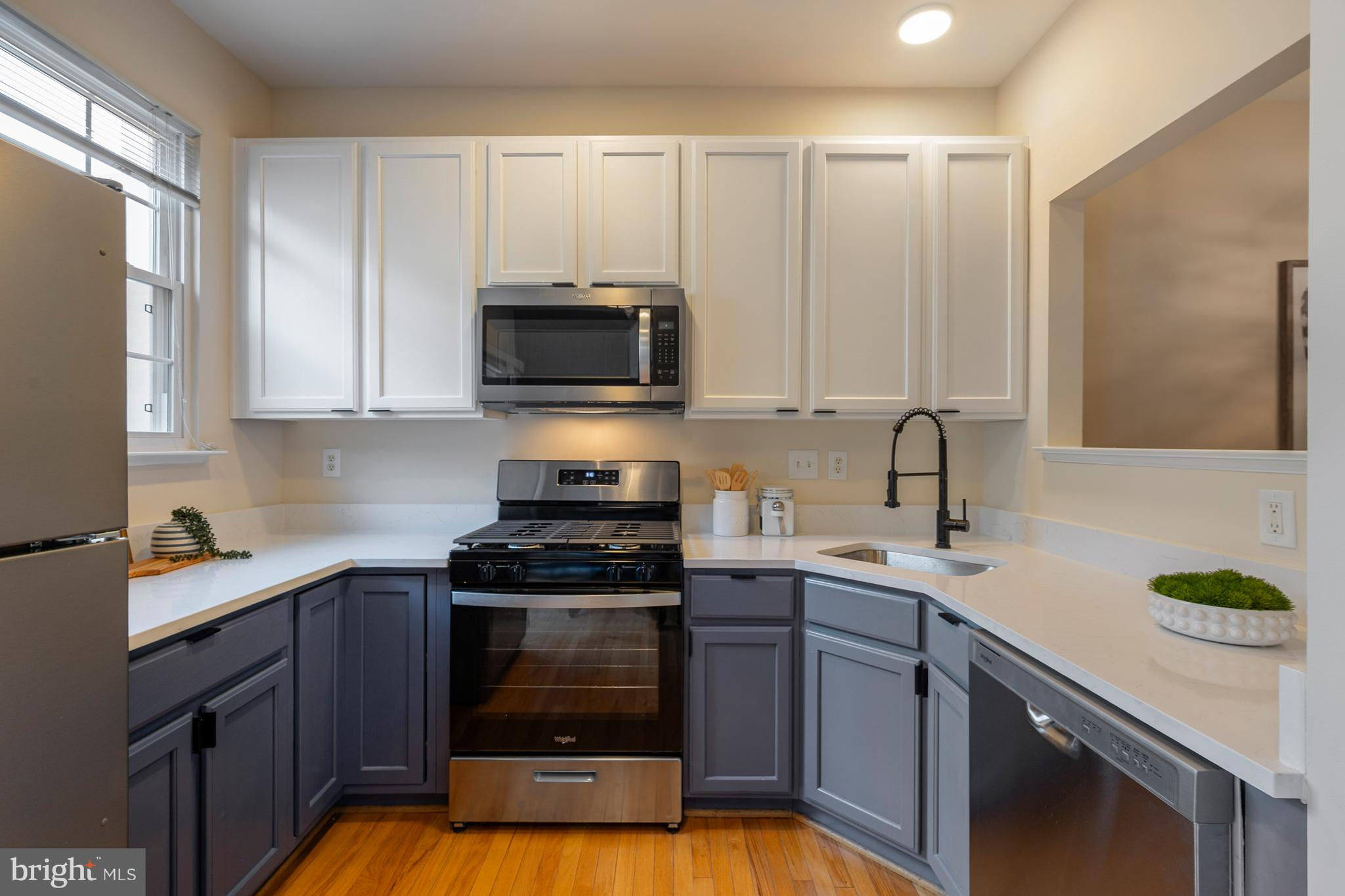 Newly updated (!) this town home will delight! All four levels are freshly painted and the lighting has been modernized throughout the home. The kitchen features two-tone cabinets (white uppers and slate blue lowers), and brand new stainless appliances and quartz counters (with new, deep sink and faucet). The wall across the breakfast nook is painted to match the lower cabinets and is adorned with black, floating shelves. The overall look is sleek and bright, given abundant light brought in from the sliders to the deck. There’s a pass-through to the dining room which in turn is open to the living room. Light from the bay window at the far end of the space shows off the gleaming hardwoods. *** On the upper level is a carpeted bedroom with hall bath, and the primary bedroom with hardwoods has a newly updated and stylish en-suite bathroom. The third bedroom is one level up with another en-suite bath for convenience! *** On the entry level is a rec room (or office) with gas fireplace, laundry/utility room, access to the front door and also to the one-car garage. *** The roof was replaced in 2020; some new windows were installed in 2014, and the remainder in 2021. *** It’s hard to beat the location for convenience! Summers Grove is across from the Van Dorn Metro station kiss & ride with easy on/off I-495 and good proximity to I-395. With one garage space and one reserved surface space, parking is easy. Plus, the community will issue two parking passes for guests. Loads of shopping is just a few minute’s drive away. Make this fresh, move-in-ready and lovely home yours!