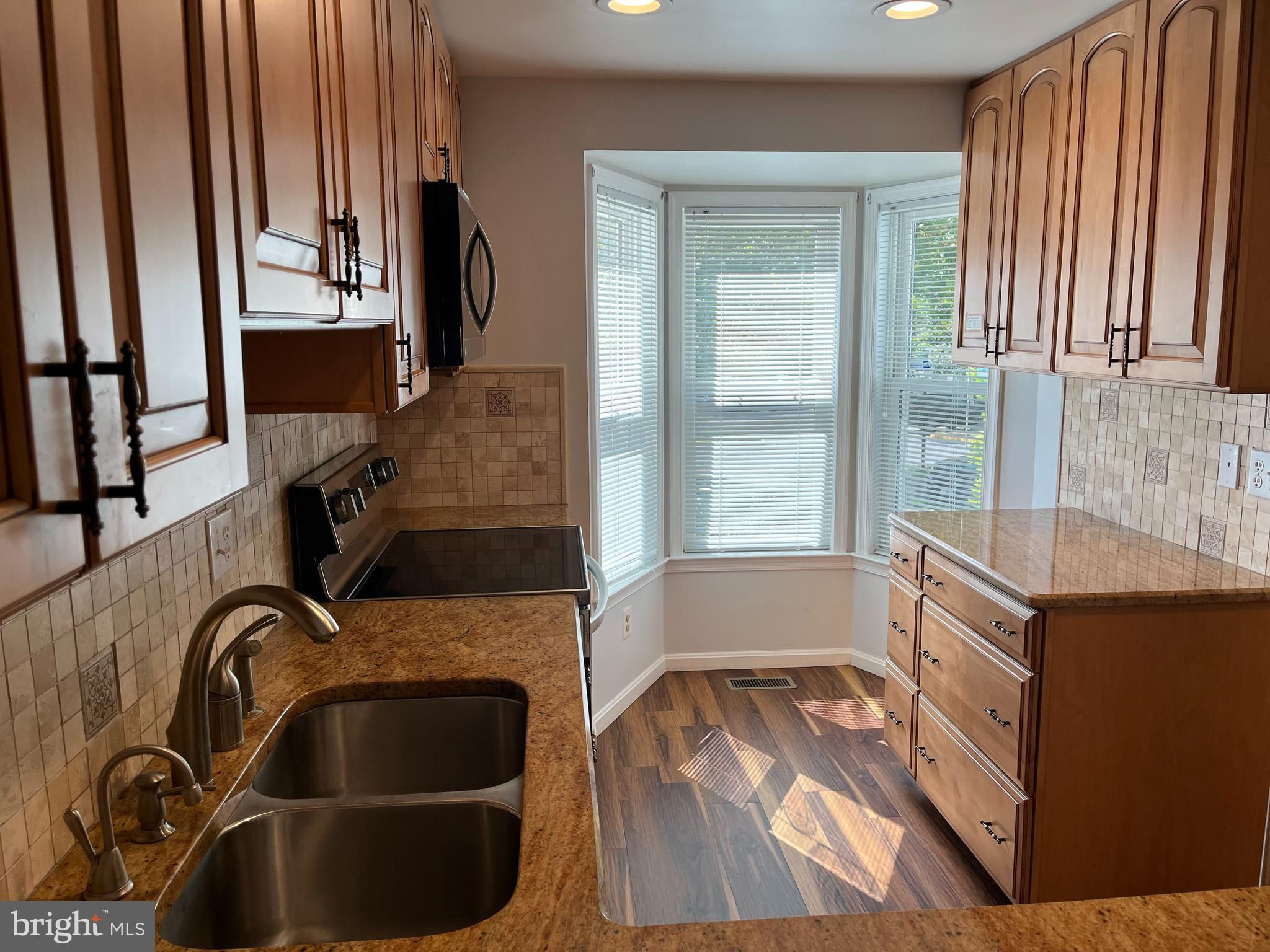 Kingstowne townhouse!! This Victorian Style property is located in the heart of Kingstowne, it is in close proximity to shopping centers, the Blue line Metro (Springfield/Franconia Station) and the Springfield Interchange. This home offers a renovated kitchen and baths, laminate flooring in the foyer and kitchen and wall to wall carpet throughout. The top floor has two bedrooms and a renovated bathroom with a large standing shower and double vanity. The basement also has a large full bath and extra room/bedroom. The mail floor has a galley style kitchen, separate dining area, a relaxing living room with a wood burning fireplace and a sliding glass door that leads to the large backyard deck. **All polybutylene pipes have been replaced with new copper**
