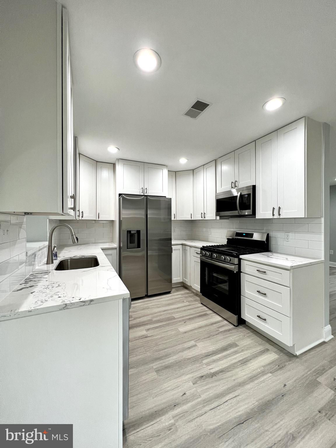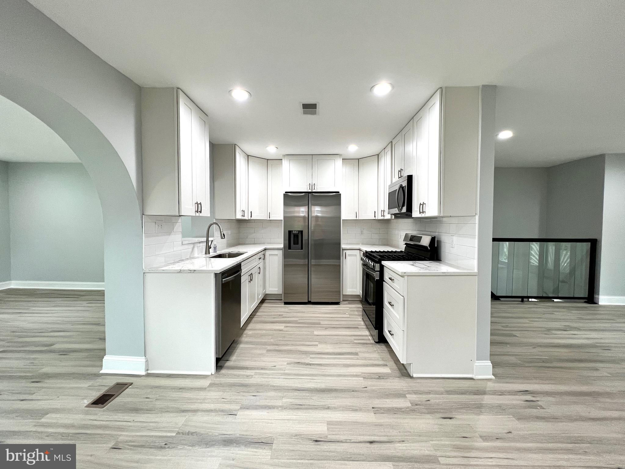 Welcome to the sought-after neighborhood of Brookland Estates. $156,000 worth of upgrades!!!! The freshly manicured front yard welcomes you to this lovely home, and the large (.33 acres), fully fenced rear yard is private, great for entertaining, and features a storage shed. This 4 bedroom, 3 full bathrooms over 3100 sq ft home greets you with plenty of natural light. The main level features a very spacious living with a gas fireplace, which can be used as a recreation room too. One guest bedroom with a full bath and walk-in closet. This level also features a study/den area with a laundry hook-up. The upper level welcomes you into a huge living room with a Juliet balcony, a designer kitchen with shaker white cabinets, brand new quartz countertops, New SS appliances, and a backsplash. A beautiful arch doorway leads into a massive family room that overlooks the wrapped-around deck and the new backyard. The Master bedroom with seating area is huge and spacious with a big walk-in closet. and attached a brand-new designer bathroom with beautiful mosaic and tile work New sliding doors. There are two other guest bedrooms and a fully remodeled full bath to share. Upgrades galore: Roof (2023), HVAC (2023), Neutral Paint throughout (2024), Brand new luxury vinyl floors (2024), Recessed lights throughout (2023), Designer Kitchen and all Bathrooms (2023), Siding (2023), Retaining wall and Landscaping (2024). No HOA. This home has it all and nothing to do except move in! Ideally located close to 1-95/395/495 and Fairfax County Parkway and a short drive to Downtown DC and Old Town Alexandria. Easily commute by metro, or water taxi to the National Harbor, or catch a flight at either the Washington Dulles International Airport in 30 mins or Ronald Reagan Washington National Airport in under 10 mins! Have the benefits of the Alexandria section in Fairfax County while living comfortably within this beautiful home. The long driveway and off-street parking make it very convenient!