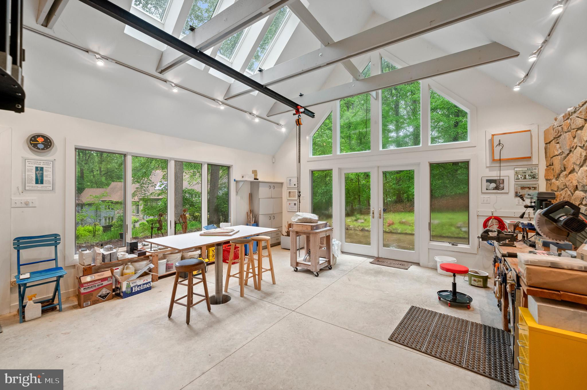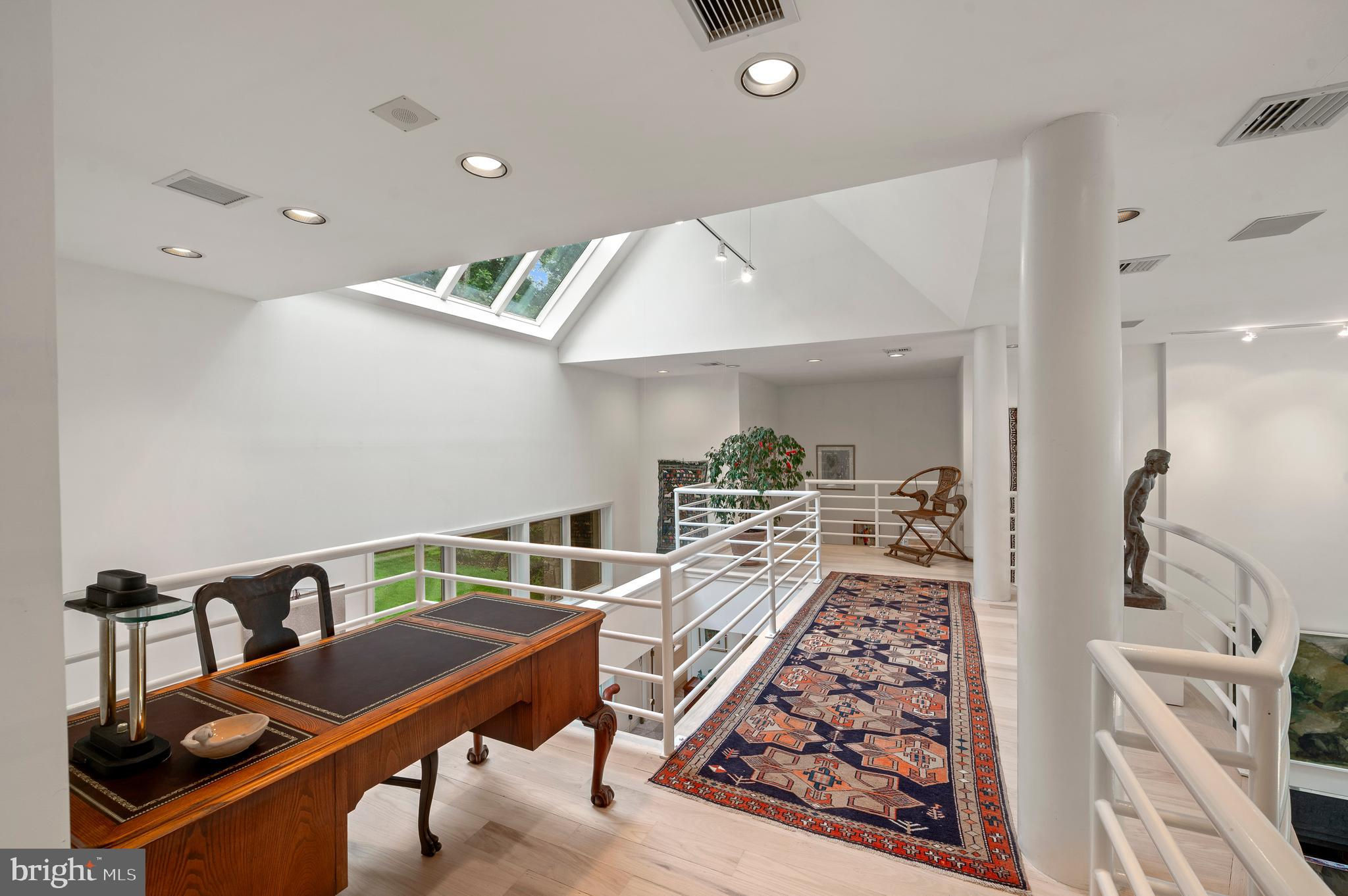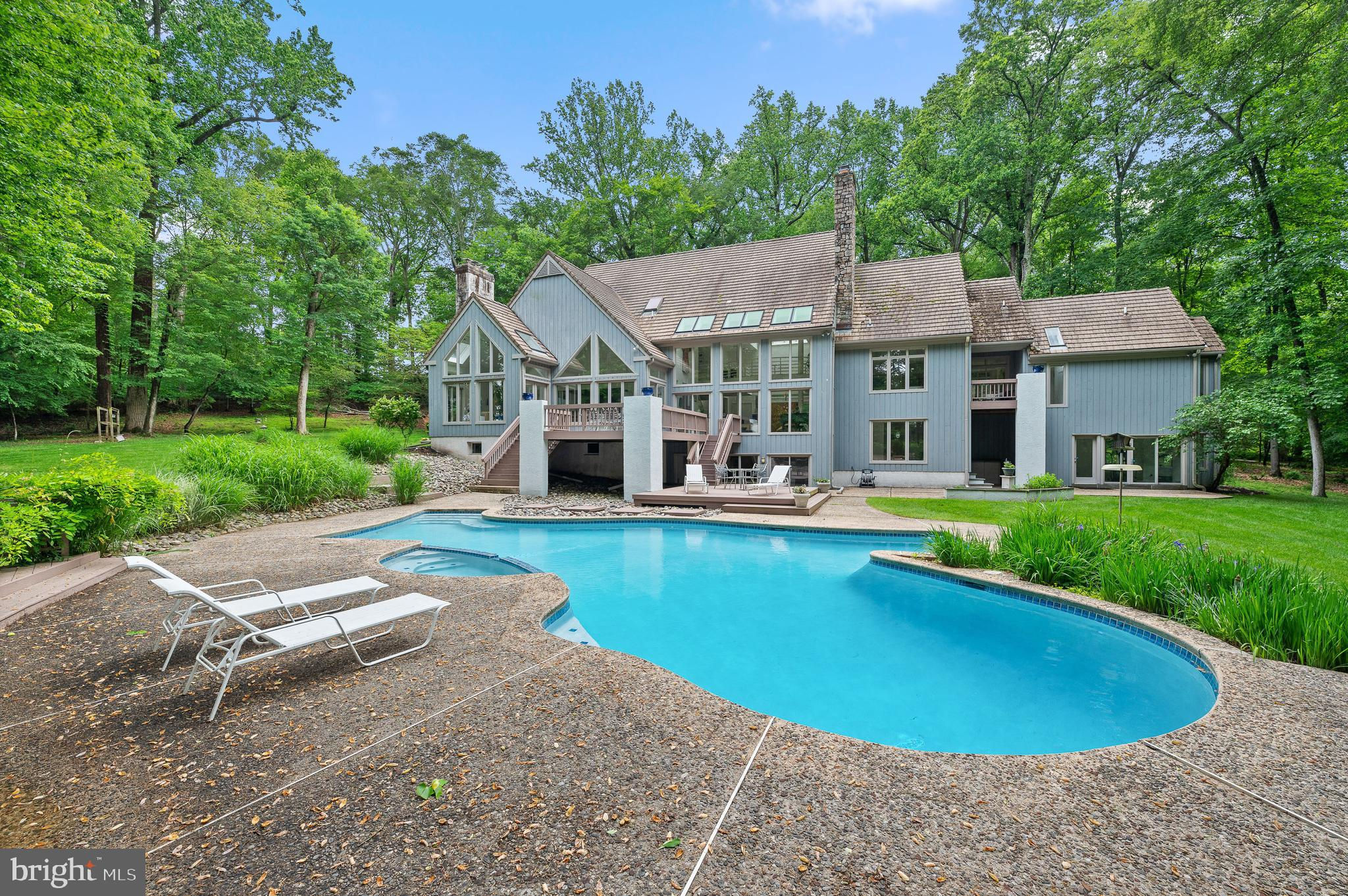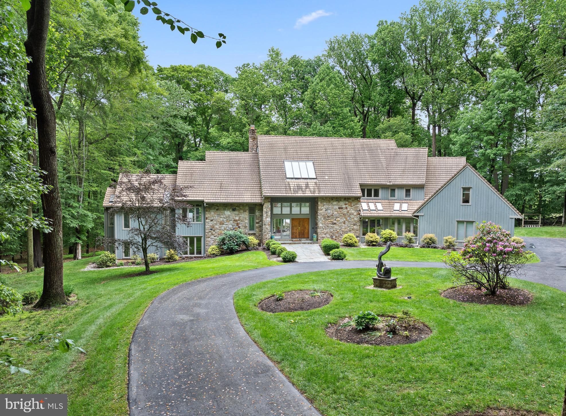 Nestled in the heart of Willistown Township’s coveted Radnor Hunt country, this extraordinary contemporary home blends modern luxury with breathtaking natural surroundings. Set on 6 private acres, backing to White Manor Country club’s golf course, this light-filled retreat offers unparalleled design, comfort, and versatility. At the end of a cul de sac and down the long tree lined drive past the secondary living structure, currently utilized as an art studio, this stunning home in the most private setting awaits. Walls of glass and soaring ceilings invite the outdoors in, creating seamless transitions between expansive interior spaces and the breathtaking environment beyond. As you enter the home you are greeted by a gracious water, feature, and sunlight streaming through into the open and airy living spaces. The living room—with its sleek fireplace, wet bar, and panoramic views—anchors the open floor plan. A gourmet chef’s kitchen is open to a family room and breakfast room featuring modern lacquer cabinetry, high end stainless appliances and black countertops opens effortlessly to multiple living and dining areas, both indoors and out. A few steps up is the expansive primary suite, a sanctuary unto itself, complete with a sitting room with fireplace, private deck, dual walk-in closets, and a spa-like en suite bath. Upstairs, the open hallway takes you to the three spacious bedrooms each with generous closet space, including one with an en suite bath and two that share a Jack and Jill bath—perfect for family or guests. A private in-law or nanny suite, situated away from the main living area, with its own staircase offers its own bedroom, full bath, and sitting room tucked away for privacy. The walkout lower level is a destination of its own—featuring a private home office, spacious family room, a recreation room with wet bar, gym, full bath, and a rejuvenating sauna. A main floor laundry room, large mud room, 2 powder rooms, a 3 car garage and a large unfinished storage area are just a few of the additional highlights of this home. Outside, the grounds are nothing short of spectacular. Enjoy a series of beautifully designed outdoor living spaces, from flagstone patios to lounging terraces surrounding the sparkling pool. Multiple dining areas are nestled under a canopy of trees and framed by seasonal blooms, while the professionally landscaped gardens showcase rare and mature specimen plantings throughout the property. A freestanding art studio with its own half bath offers endless possibilities as a creative retreat or guest escape. With geothermal heating and multiple zones, the home can be efficiently heated and cooled. This exceptional property blends contemporary architecture with the timeless appeal of Pennsylvania’s countryside—offering complete privacy, refined design, and close proximity to the Main Line’s finest schools, less than a mile to Radnor Hunt Club, close to shops, and dining. This is a rare opportunity to own a one-of-a-kind contemporary estate in one of the Main Line’s most picturesque and prestigious settings.