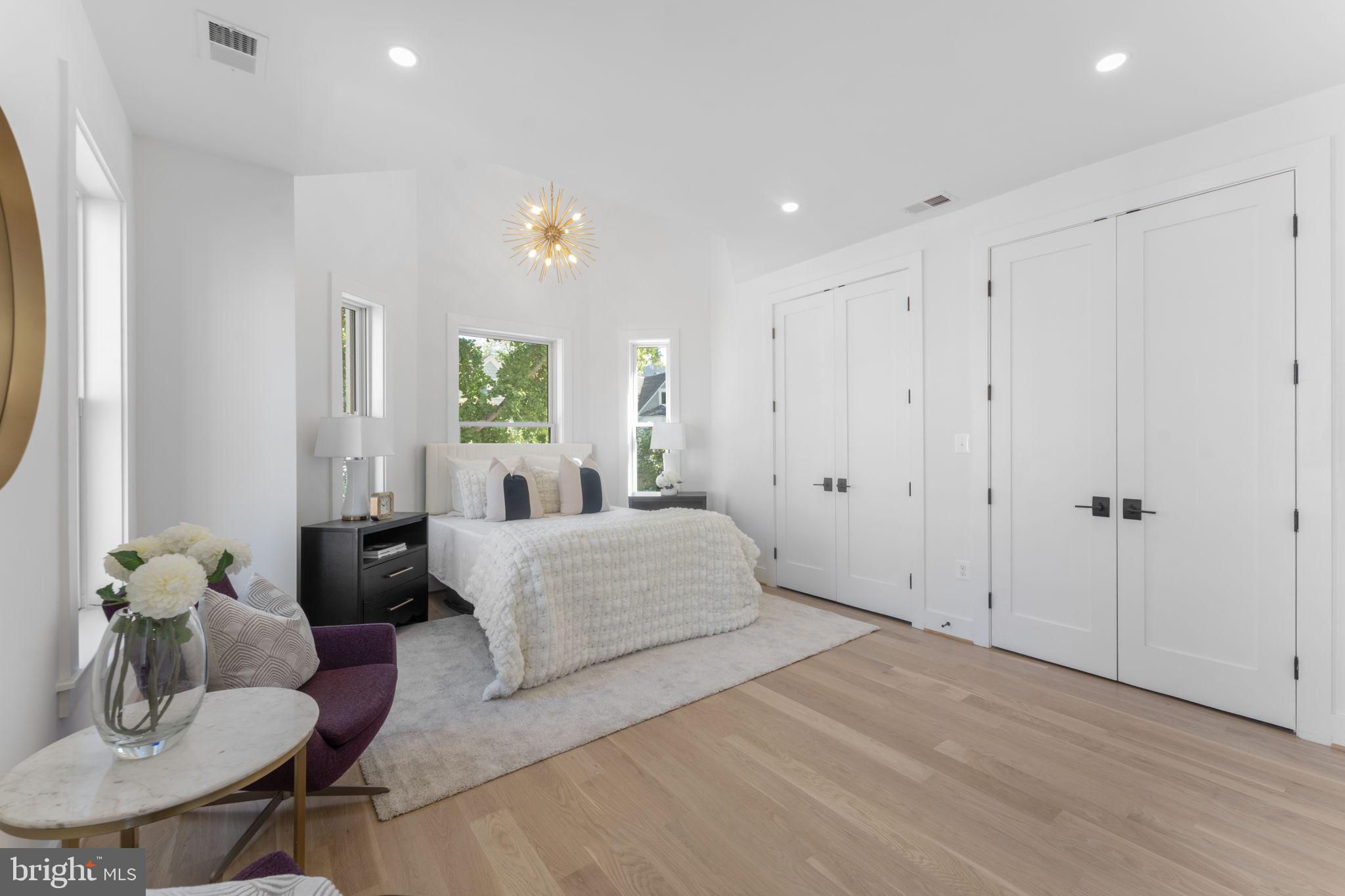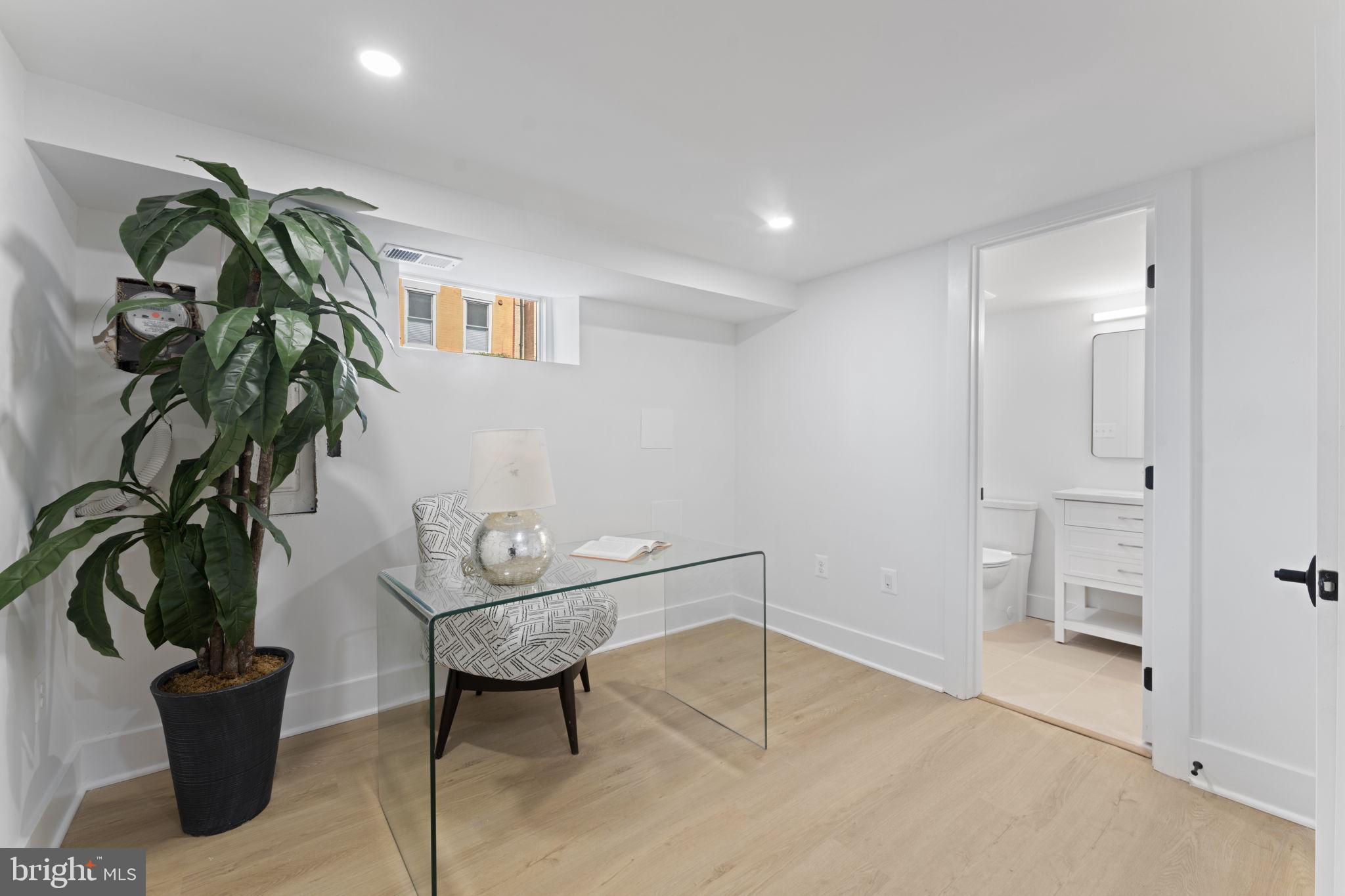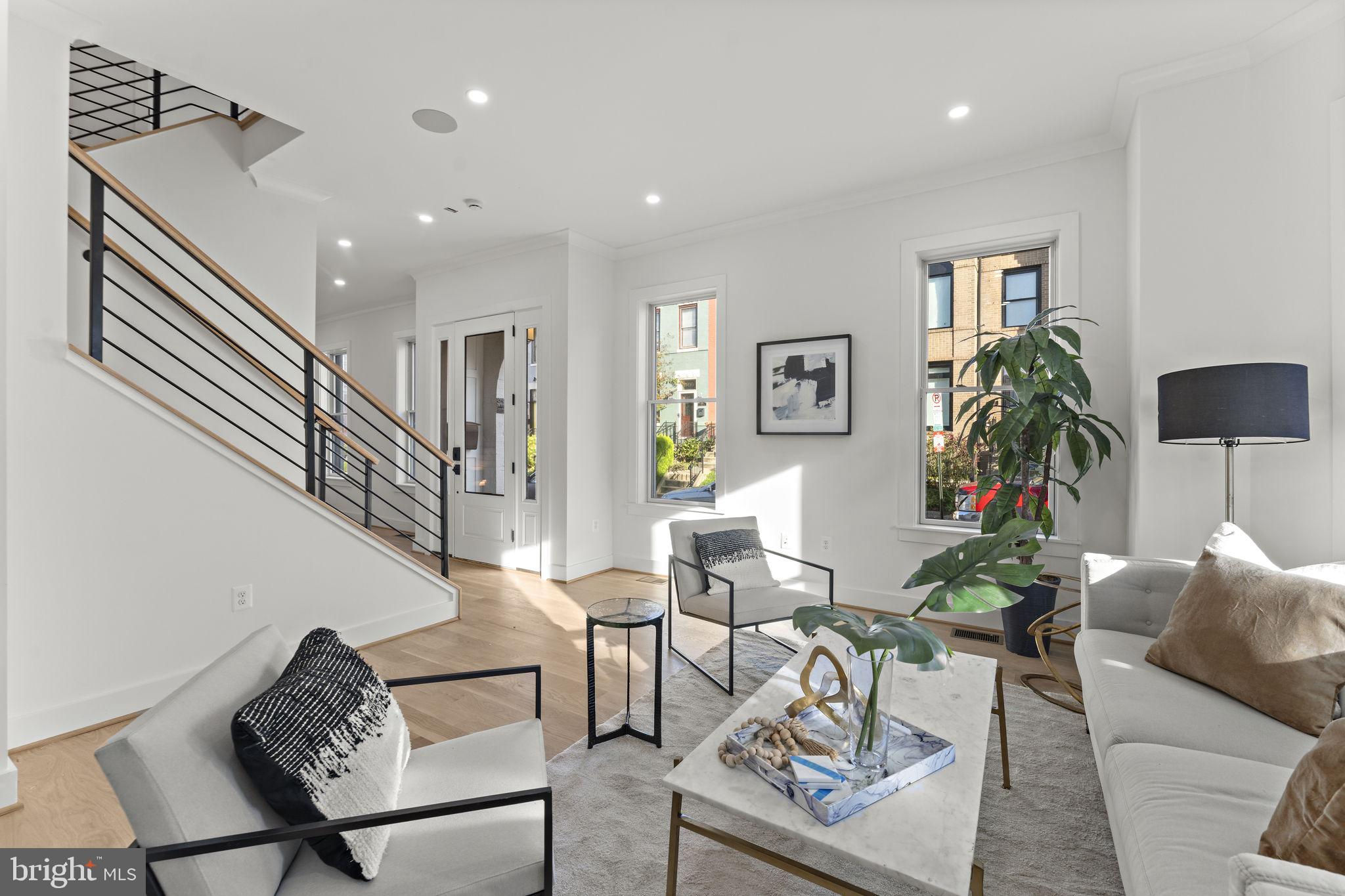 $15,000 Closing Cost Credit offer towards rate buydown or closing cost. Seeking charm, convenience, and excitement in LeDroit Park/Shaw? Welcome to this fully renovated corner 4-bedroom, 3.5-bath in one of DC’s most vibrant neighborhoods. Blending historic character with modern luxury, the home offers an airy open-concept layout with 9.5-ft ceilings, 8-ft doors, recessed lighting, 5” white oak floors, built-in speakers, and sunlit rooms throughout. The arched entry opens to a center staircase with an overhead skylight. The charming living room boasts tall bay windows—perfect for a quiet evening or entertaining. The dining room flows into the gourmet kitchen with a chic powder room nearby and access to a privately fenced stone patio. The kitchen combines elegance and warmth with slim Shaker cabinetry, soft wood finishes, champagne bronze fixtures, a quartz breakfast bar, and stainless steel KitchenAid appliances. Enjoy casual meals at the counter or host dinners in the spacious dining area. Upstairs, the primary suite offers a turreted sitting area with a unique light fixture, a bank of closets, and an ensuite bath with porcelain tile, a walk-in shower, a modern vanity, and champagne bronze details. Two additional bedrooms share a full bath, with laundry conveniently located on the same level. The finished lower level includes a private ensuite bedroom—ideal for guests, a home office, or fitness space—with direct walkout to the patio. With a 98 Walk Score, Capital Bikeshare stations, and Shaw Metro steps away, this home puts dining, shopping, and nightlife at your door—no car required. Nearby are the U Street Corridor, Howard University, Banneker Pool & Recreation Center, Landmark Atlantic Plumbing Cinema, Whole Foods, and more. If you’re seeking a brand new home with character, convenience, and a strong sense of community, this LeDroit Park treasure may be the perfect fit. Seller will consider rate buydown with strong offer!