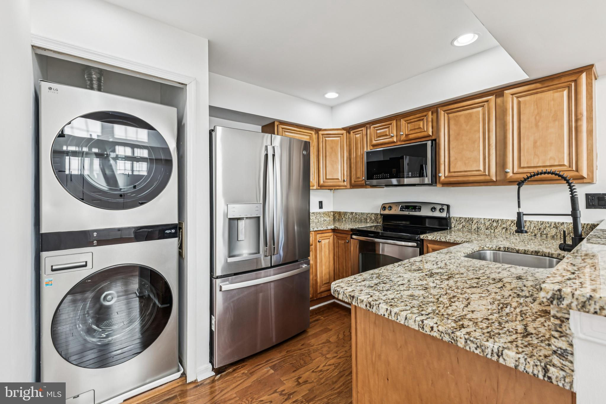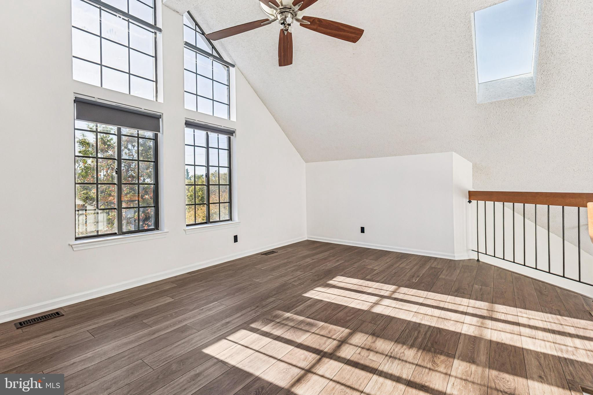 This bright and spacious two-level end-unit condo with a private garage! The open living area boasts 20-foot ceilings, large windows, and skylights that fill the space with natural light. The main level features an open-concept layout with a kitchen and living room, along with two bedrooms and two full bathrooms. The kitchen includes granite countertops, maple cabinetry, and stainless steel appliances. Upstairs, the large and bright loft overlooks the main level and includes a fireplace and a generous storage closet. Recent updates include fresh paint, new flooring in the loft and on the stairs, and a new dishwasher, refrigerator, new carpet in bedrooms, new microwave, new washer, and dryer. The community includes two swimming pools, a clubhouse, gym, playground, and more. Condo fees cover trash, recycling, snow removal, and other common-area maintenance. This home is conveniently located near I-495, I-95, I-395, Kingstowne Town Center, Wegmans, Safeway, Shoppers, Springfield Town Center, restaurants, Fort Belvoir, and the Franconia-Springfield and Van Dorn Metro stations.