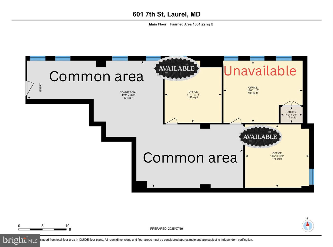 601 7th Street is a condo building with offices and residential on the top floor. Convenient location to live and work. Beautifully maintained shared office suites or lease the entire unit for privacy. This unit is a 1300 square foot office with three private offices. The common space includes a waiting /reception area, and a kitchen build out, access to locked bathrooms is in the hallway. Rent one or both (Office 1 - 148 Sf. - $1000.00 / Office 2- 175Sf. - $1200.00 or $2200.00 for both or rent the entire space (call for details) depending on the space needed. Conveniently located in North Laurel next to Laurel Branch Library and Retail. Lease requested 3 -5 years, security deposit equal to first month's rent. Parking passes available for office.