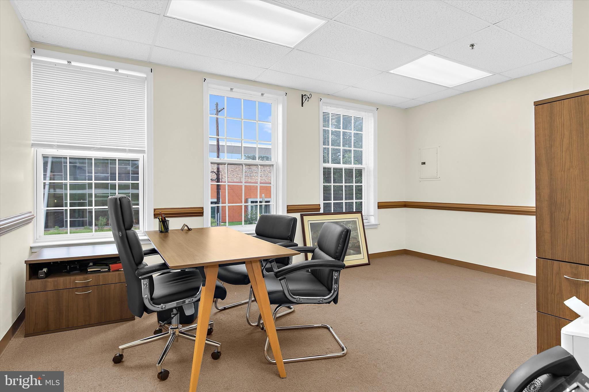601 7th Street is a condo building with offices and residential on the top floor. Convenient location to live and work. Beautifully maintained office suite, (total 1123s.f.) with three private offices, with common area and kitchen. Access to locked bathrooms is in the hallway. Conveniently located in North Laurel next to Laurel Branch Library and Retail. Lease requested 3 -5 years, security deposit equal to first month's rent. Parking passes available for office.