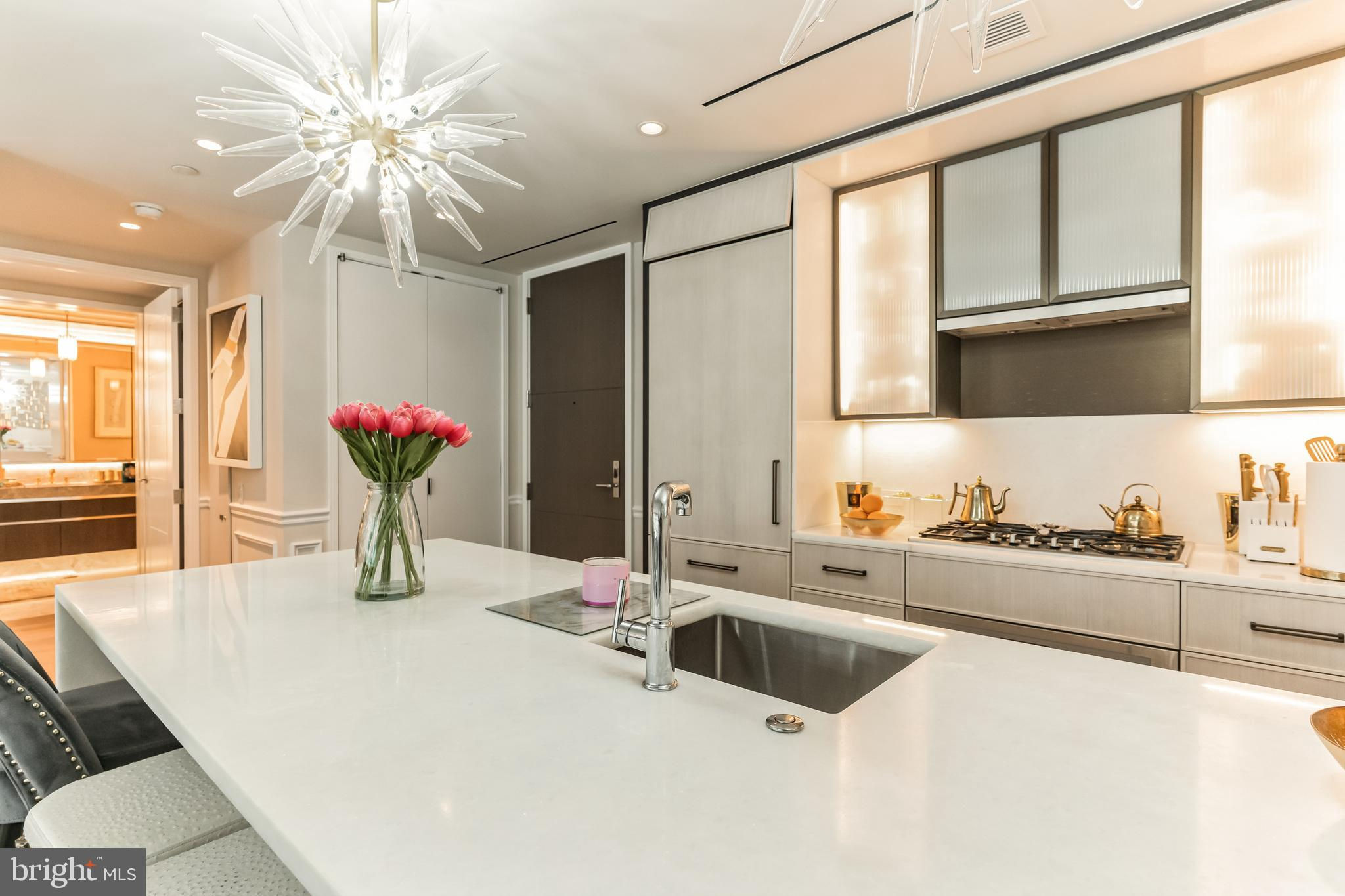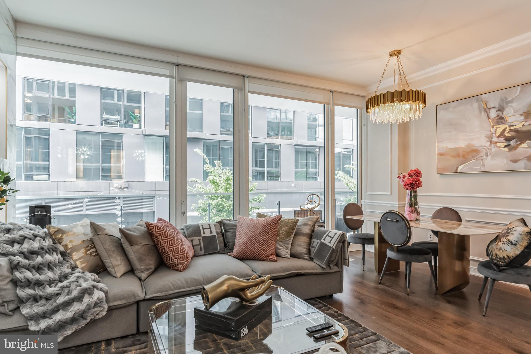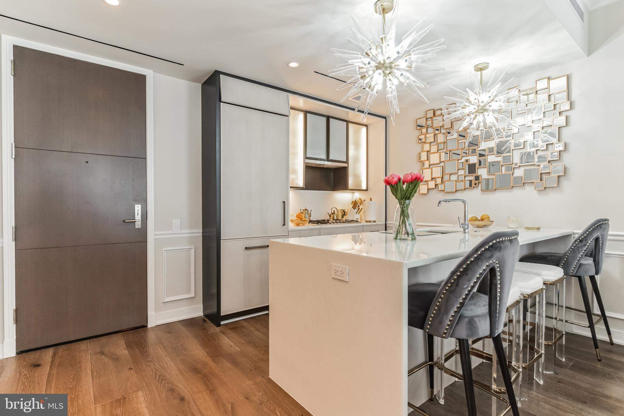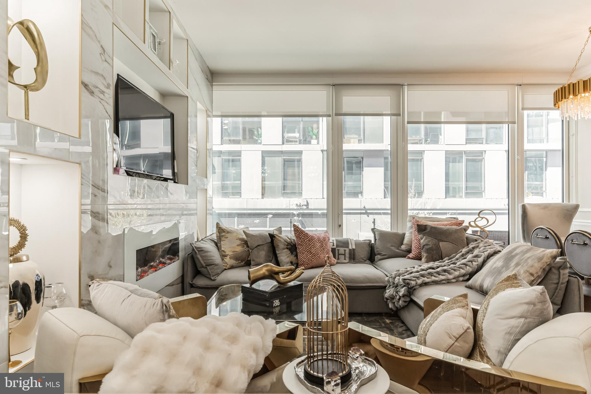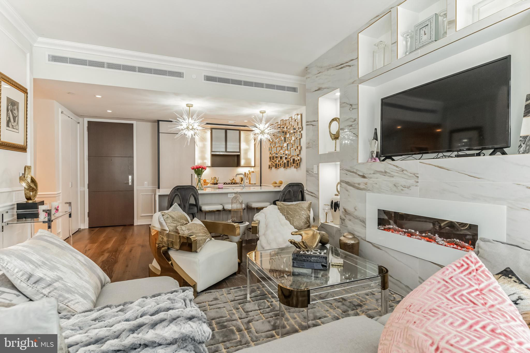 Presenting an exquisite one-bedroom, one-bathroom residence at Amaris, where meticulous design meets unparalleled sophistication, and the art of waterfront living is redefined. Crafted by a renowned NYC interior designer, this home is a testament to luxury and attention to detail, featuring special custom molding that adds an air of elegance and uniqueness to the space. The centerpiece, a marble fireplace, is adorned with carefully designed boxes, creating a focal point of both warmth and style. The gourmet kitchen, a masterpiece of functionality and style, boasts custom Italian cabinetry by Stevali, elegantly complemented by discreet under-cabinet lighting, and is equipped with state-of-the-art Thermador and Bosch appliances. Anchoring this culinary haven is a honed marble island, inviting both casual breakfasts and grand evening soirees. Step outside to the expansive balcony and embrace the serene views of The Green, a 1.5-acre oasis crafted by the esteemed landscape architect Michael Van Valkenburgh. Here, a striking raw marble fountain stands as the park’s majestic focal point, offering a tranquil retreat from the city’s bustle. Amaris elevates the concept of luxury amenities to create a sanctuary of wellness and relaxation. Residents enjoy an exclusive indoor, two-lane saltwater pool, alongside a spa and sauna that seamlessly extend into a comprehensive fitness center. The connectivity of the space is further enhanced by a bridge leading to a cozy lounge and an adjoining screening room, promising moments of leisure and socialization. The outdoor waterfront terrace, featuring a grilling area, unfolds into an expansive vista, providing an immersive experience of awe-inspiring views. The architectural brilliance of Amaris, envisioned by the legendary Rafael Viñoly, with interiors by the acclaimed Thomas Juul-Hansen, guarantees an environment of sublime aesthetics and rejuvenating amenities. Positioned within The Wharf, a vibrant waterfront neighborhood, residents have unparalleled access to a rich tapestry of events, culinary delights from chef-owned restaurants, boutique shopping, and over 17.5 acres of communal green spaces. This residence, where luxury design meets the art of waterfront living, reflects a philosophy where no stone was left untouched by the designer, ensuring every inch speaks to a refined lifestyle unmatched in its elegance.
