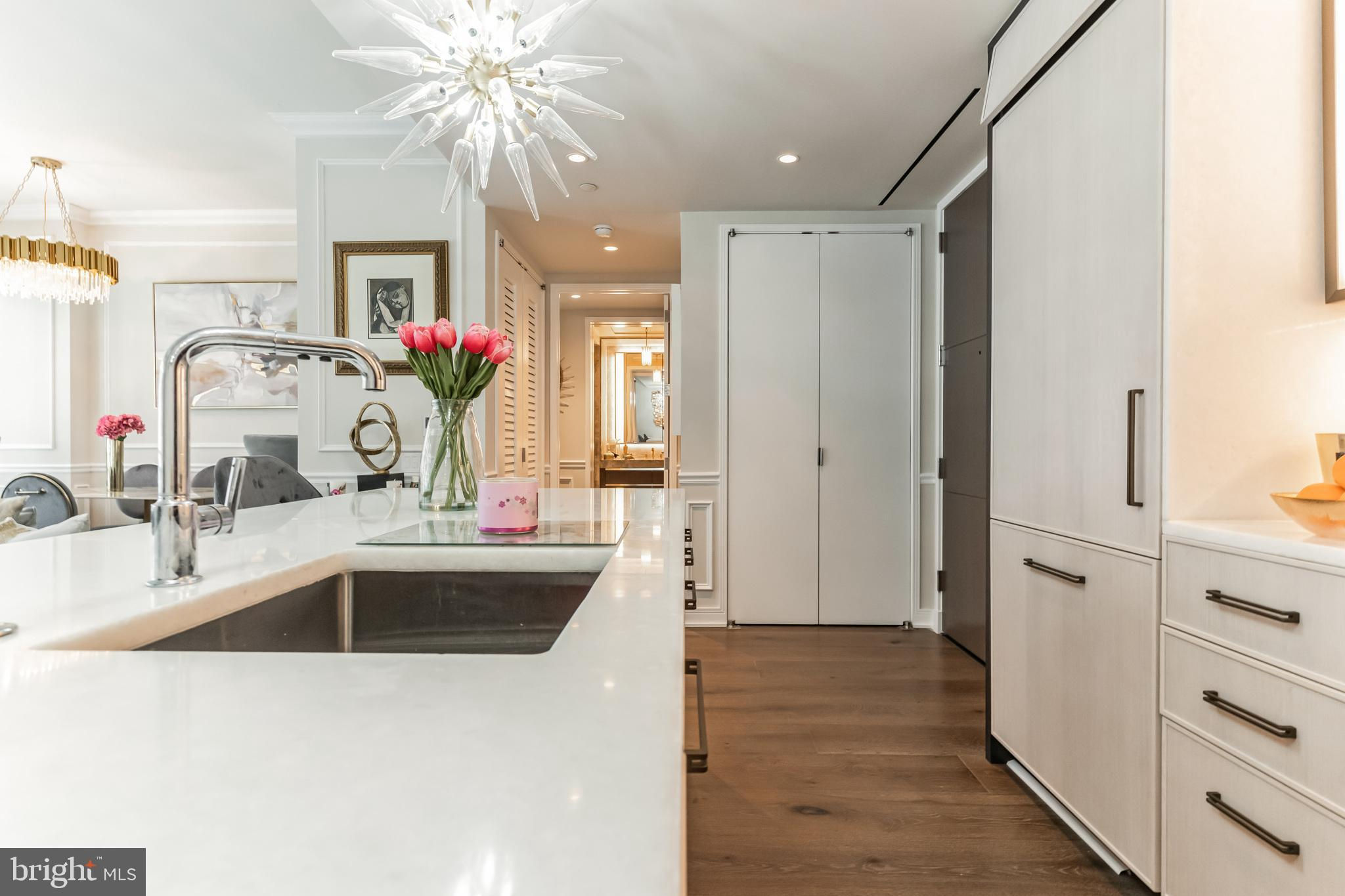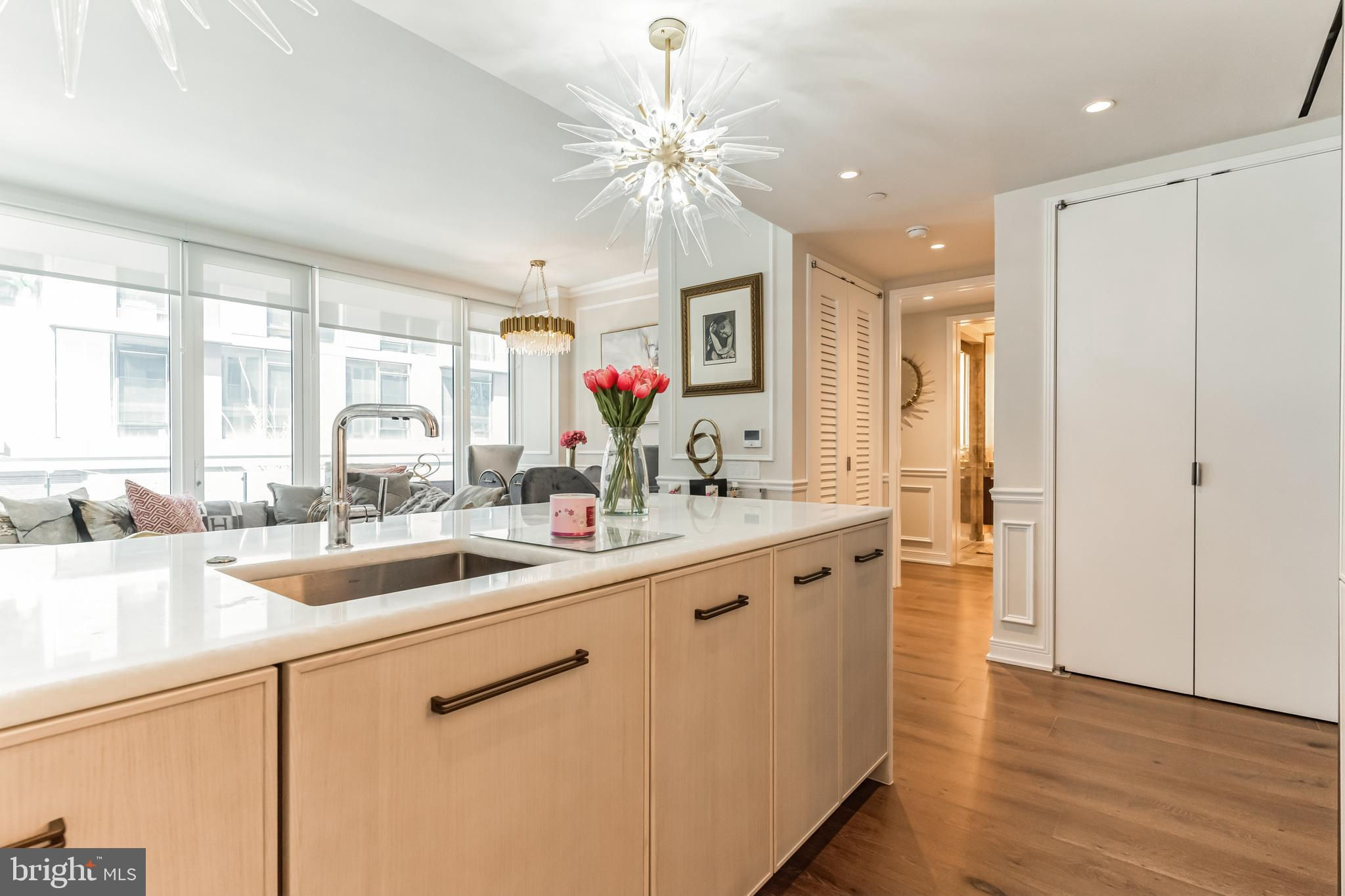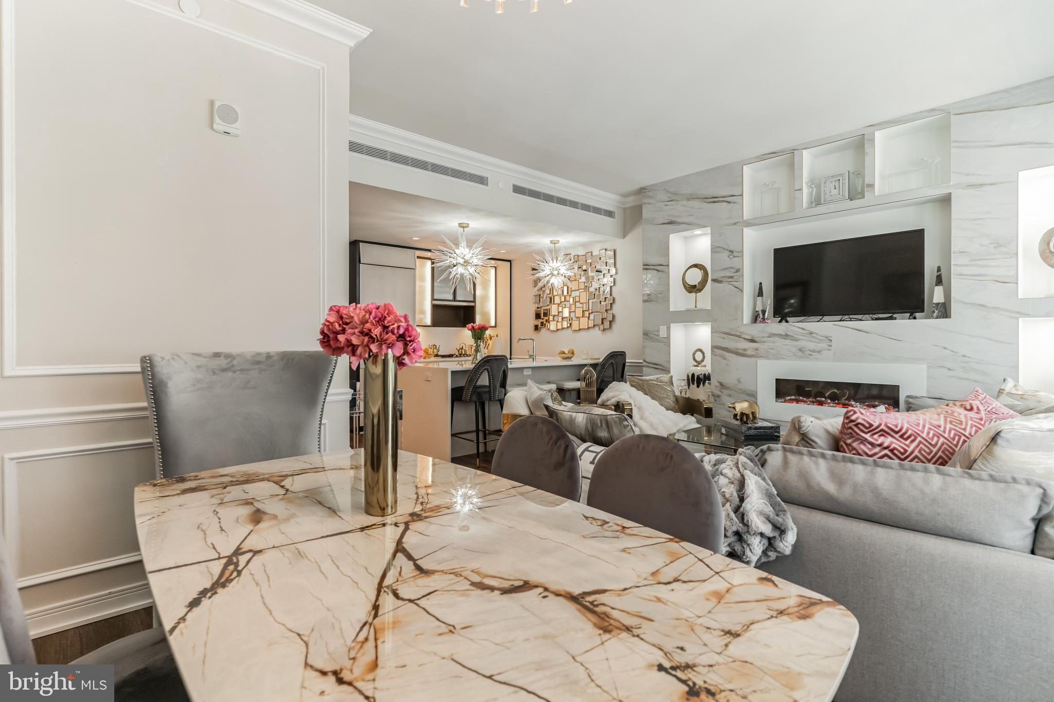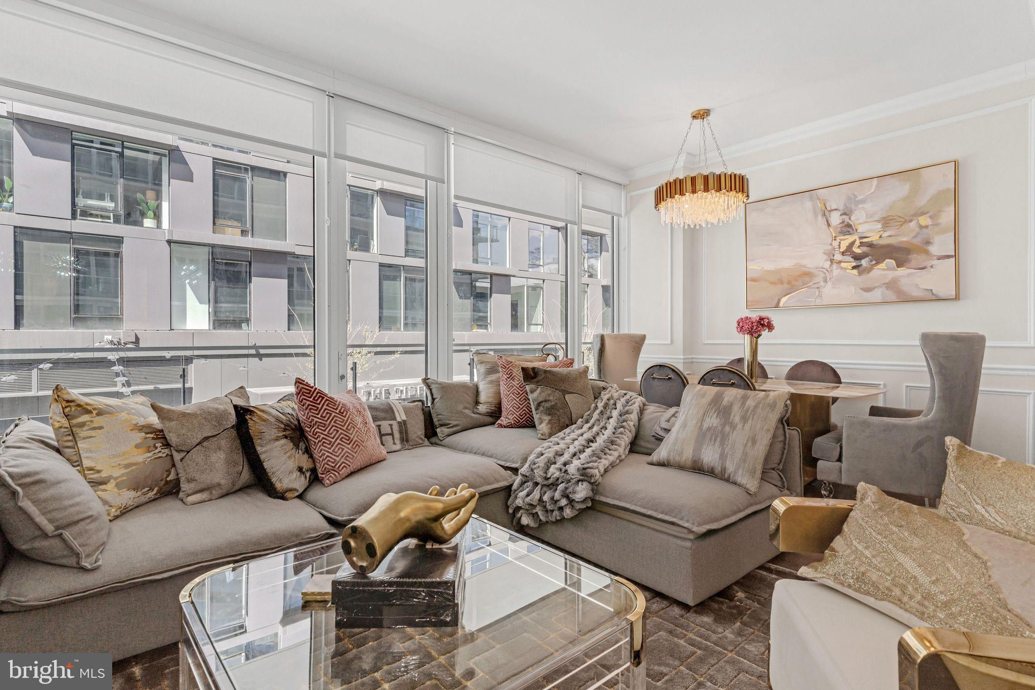 Presenting an exquisite one-bedroom, one-bathroom residence at Amaris, where meticulous design meets unparalleled sophistication, and the art of waterfront living is redefined. Crafted by a renowned NYC interior designer, this home is a testament to luxury and attention to detail, featuring special custom molding that adds an air of elegance and uniqueness to the space. The centerpiece, a marble fireplace, is adorned with carefully designed boxes, creating a focal point of both warmth and style. The gourmet kitchen, a masterpiece of functionality and style, boasts custom Italian cabinetry by Stevali, elegantly complemented by discreet under-cabinet lighting, and is equipped with state-of-the-art Thermador and Bosch appliances. Anchoring this culinary haven is a honed marble island, inviting both casual breakfasts and grand evening soirees. Step outside to the expansive balcony and embrace the serene views of The Green, a 1.5-acre oasis crafted by the esteemed landscape architect Michael Van Valkenburgh. Here, a striking raw marble fountain stands as the park’s majestic focal point, offering a tranquil retreat from the city’s bustle. Amaris elevates the concept of luxury amenities to create a sanctuary of wellness and relaxation. Residents enjoy an exclusive indoor, two-lane saltwater pool, alongside a spa and sauna that seamlessly extend into a comprehensive fitness center. The connectivity of the space is further enhanced by a bridge leading to a cozy lounge and an adjoining screening room, promising moments of leisure and socialization. The outdoor waterfront terrace, featuring a grilling area, unfolds into an expansive vista, providing an immersive experience of awe-inspiring views. The architectural brilliance of Amaris, envisioned by the legendary Rafael Viñoly, with interiors by the acclaimed Thomas Juul-Hansen, guarantees an environment of sublime aesthetics and rejuvenating amenities. Positioned within The Wharf, a vibrant waterfront neighborhood, residents have unparalleled access to a rich tapestry of events, culinary delights from chef-owned restaurants, boutique shopping, and over 17.5 acres of communal green spaces. This residence, where luxury design meets the art of waterfront living, reflects a philosophy where no stone was left untouched by the designer, ensuring every inch speaks to a refined lifestyle unmatched in its elegance.