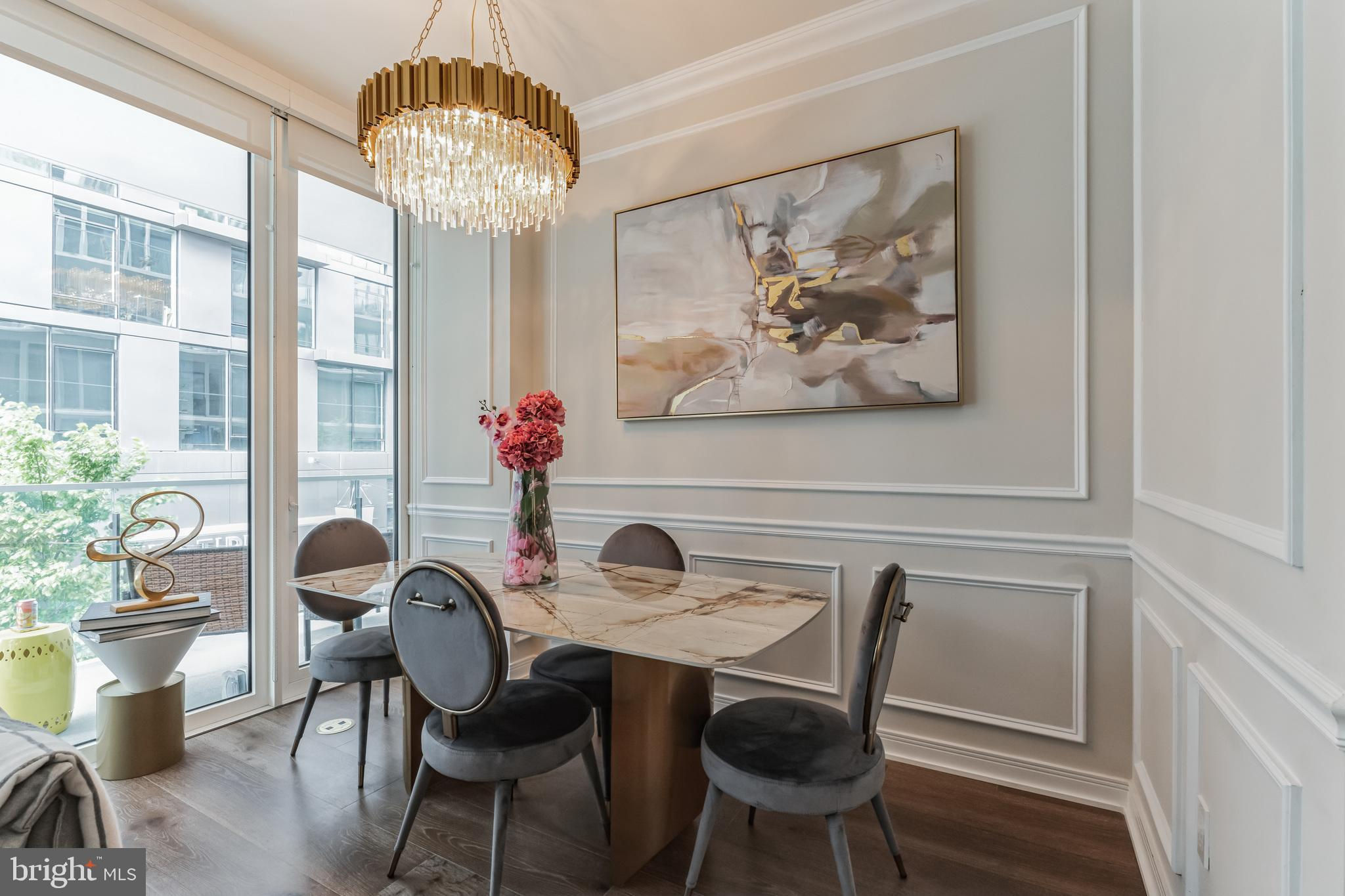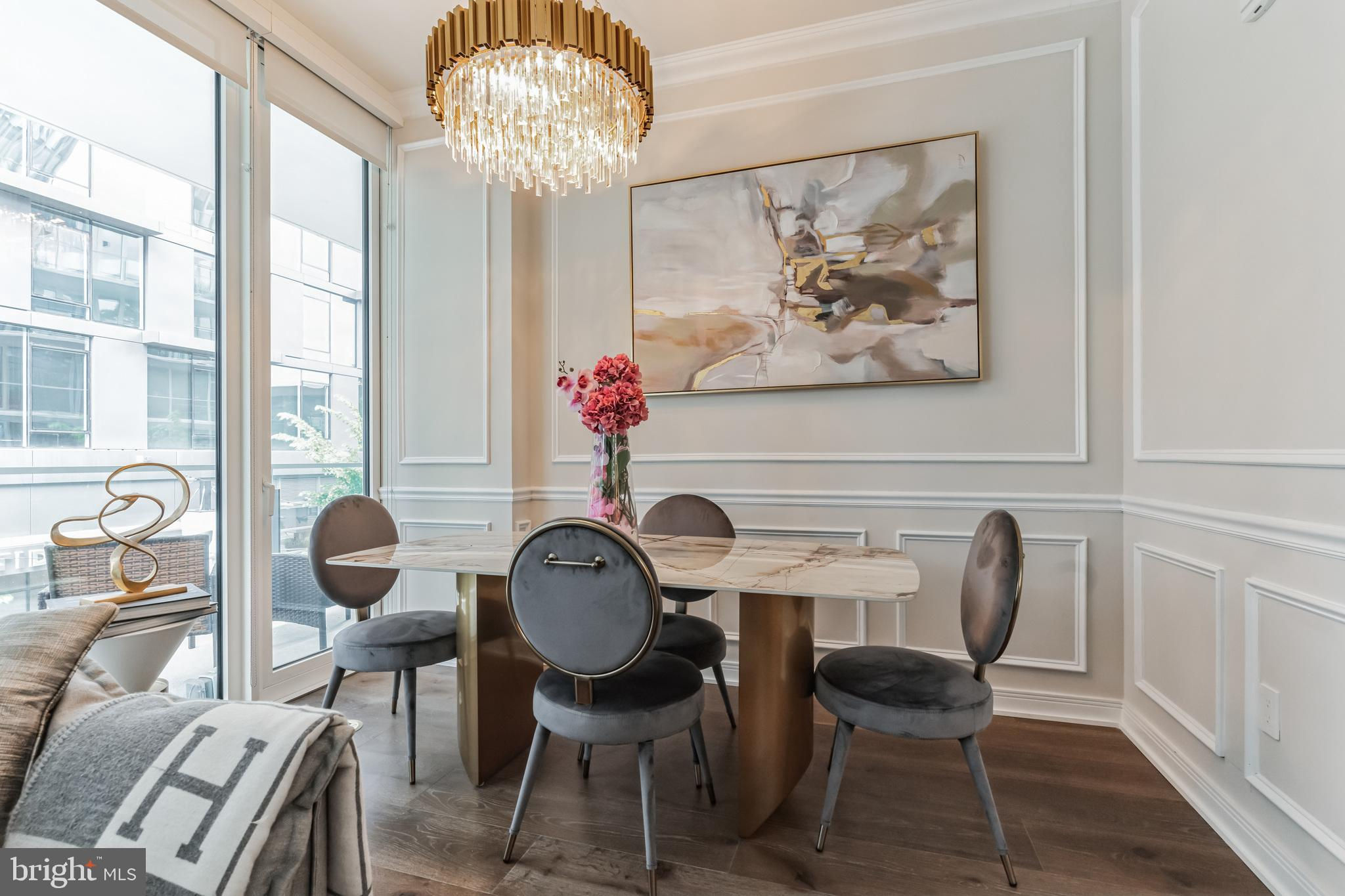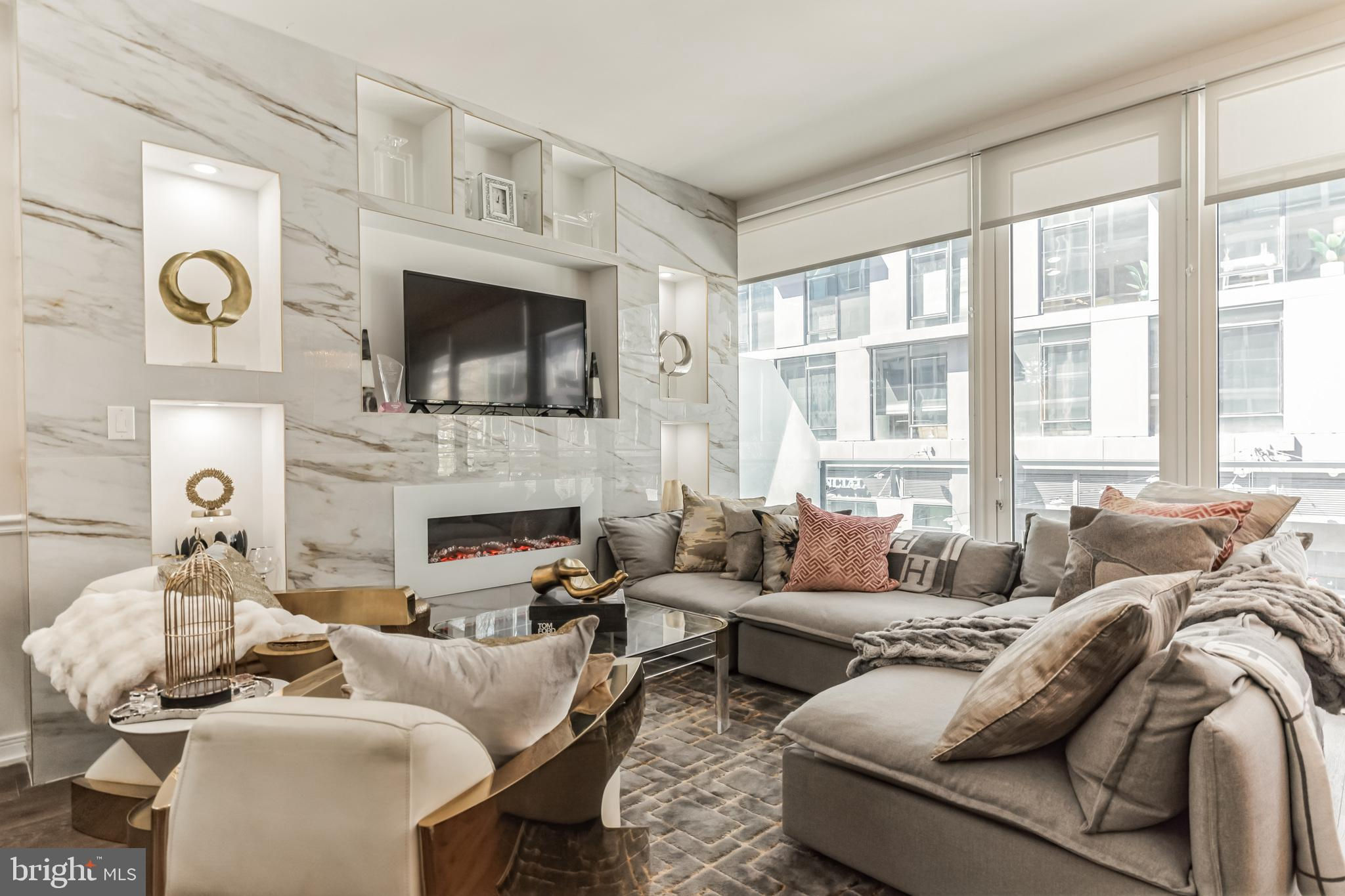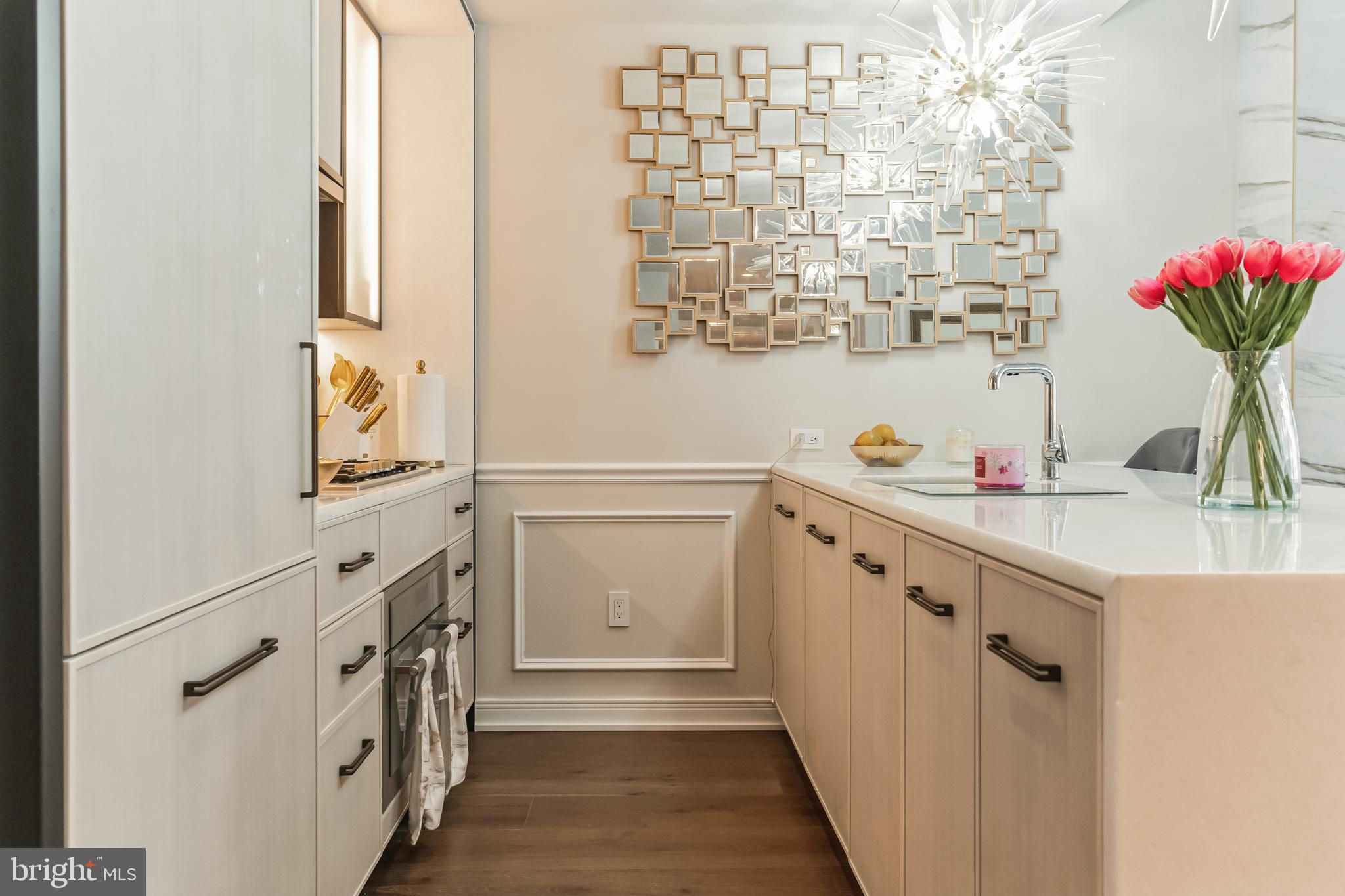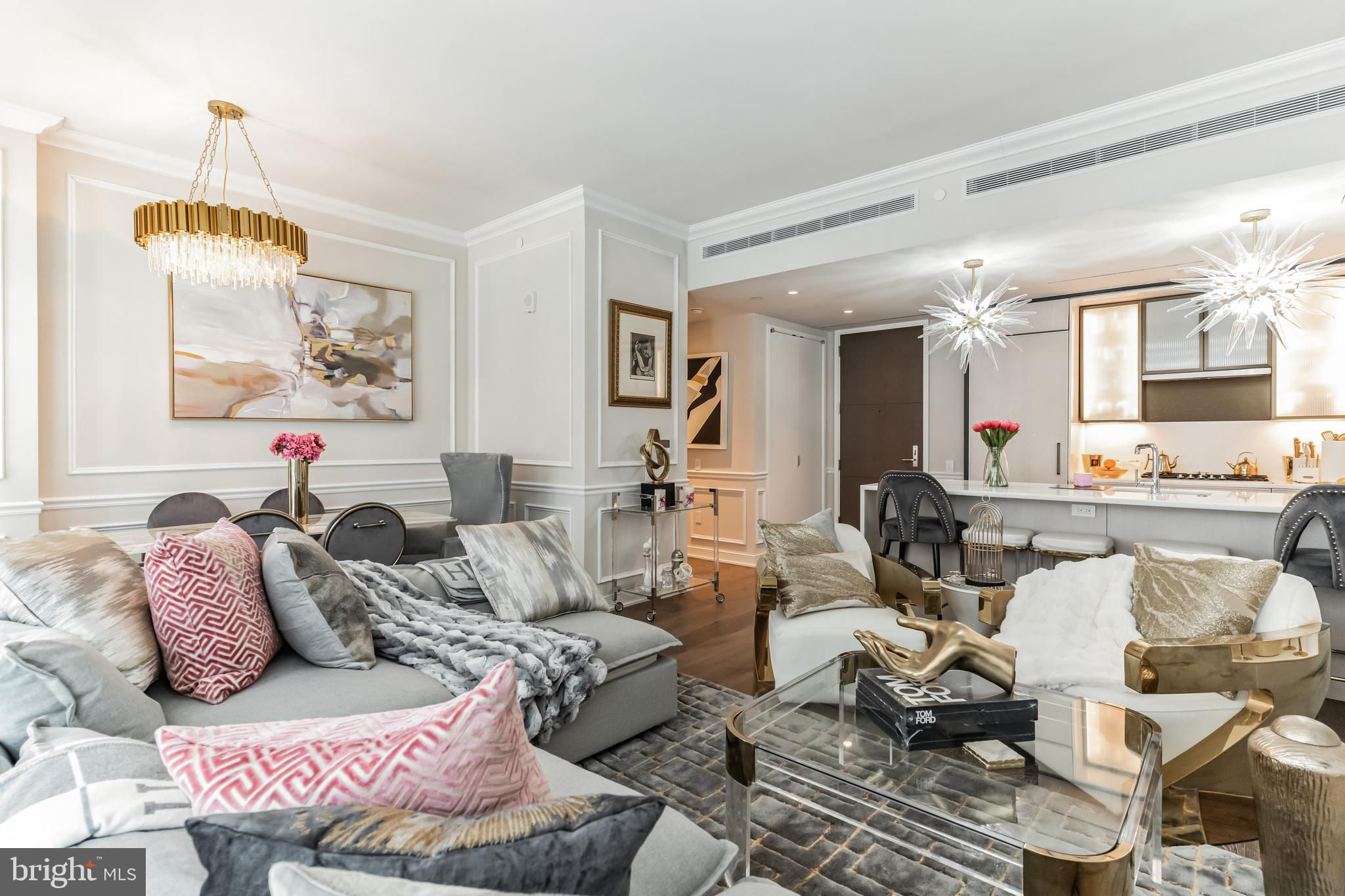 Presenting an exquisite one-bedroom, one-bathroom residence at Amaris, where meticulous design meets unparalleled sophistication, and the art of waterfront living is redefined. Crafted by a renowned NYC interior designer, this home is a testament to luxury and attention to detail, featuring special custom molding that adds an air of elegance and uniqueness to the space. The centerpiece, a marble fireplace, is adorned with carefully designed boxes, creating a focal point of both warmth and style. The gourmet kitchen, a masterpiece of functionality and style, boasts custom Italian cabinetry by Stevali, elegantly complemented by discreet under-cabinet lighting, and is equipped with state-of-the-art Thermador and Bosch appliances. Anchoring this culinary haven is a honed marble island, inviting both casual breakfasts and grand evening soirees. Step outside to the expansive balcony and embrace the serene views of The Green, a 1.5-acre oasis crafted by the esteemed landscape architect Michael Van Valkenburgh. Here, a striking raw marble fountain stands as the park’s majestic focal point, offering a tranquil retreat from the city’s bustle. Amaris elevates the concept of luxury amenities to create a sanctuary of wellness and relaxation. Residents enjoy an exclusive indoor, two-lane saltwater pool, alongside a spa and sauna that seamlessly extend into a comprehensive fitness center. The connectivity of the space is further enhanced by a bridge leading to a cozy lounge and an adjoining screening room, promising moments of leisure and socialization. The outdoor waterfront terrace, featuring a grilling area, unfolds into an expansive vista, providing an immersive experience of awe-inspiring views. The architectural brilliance of Amaris, envisioned by the legendary Rafael Viñoly, with interiors by the acclaimed Thomas Juul-Hansen, guarantees an environment of sublime aesthetics and rejuvenating amenities. Positioned within The Wharf, a vibrant waterfront neighborhood, residents have unparalleled access to a rich tapestry of events, culinary delights from chef-owned restaurants, boutique shopping, and over 17.5 acres of communal green spaces. This residence, where luxury design meets the art of waterfront living, reflects a philosophy where no stone was left untouched by the designer, ensuring every inch speaks to a refined lifestyle unmatched in its elegance.