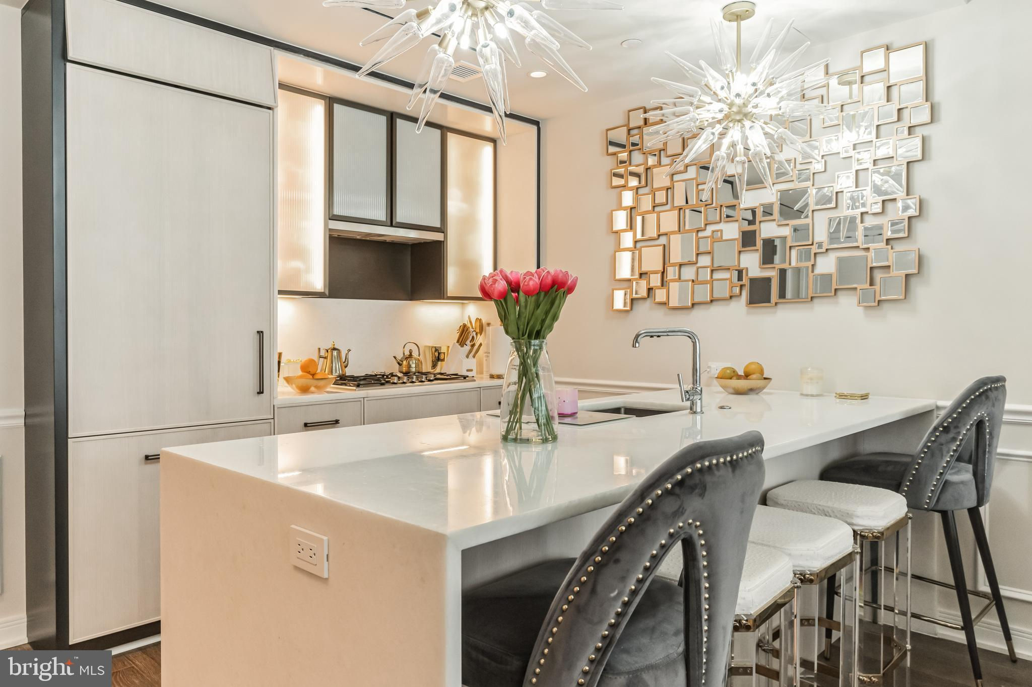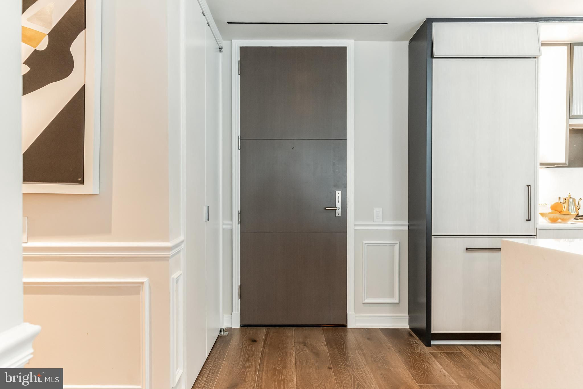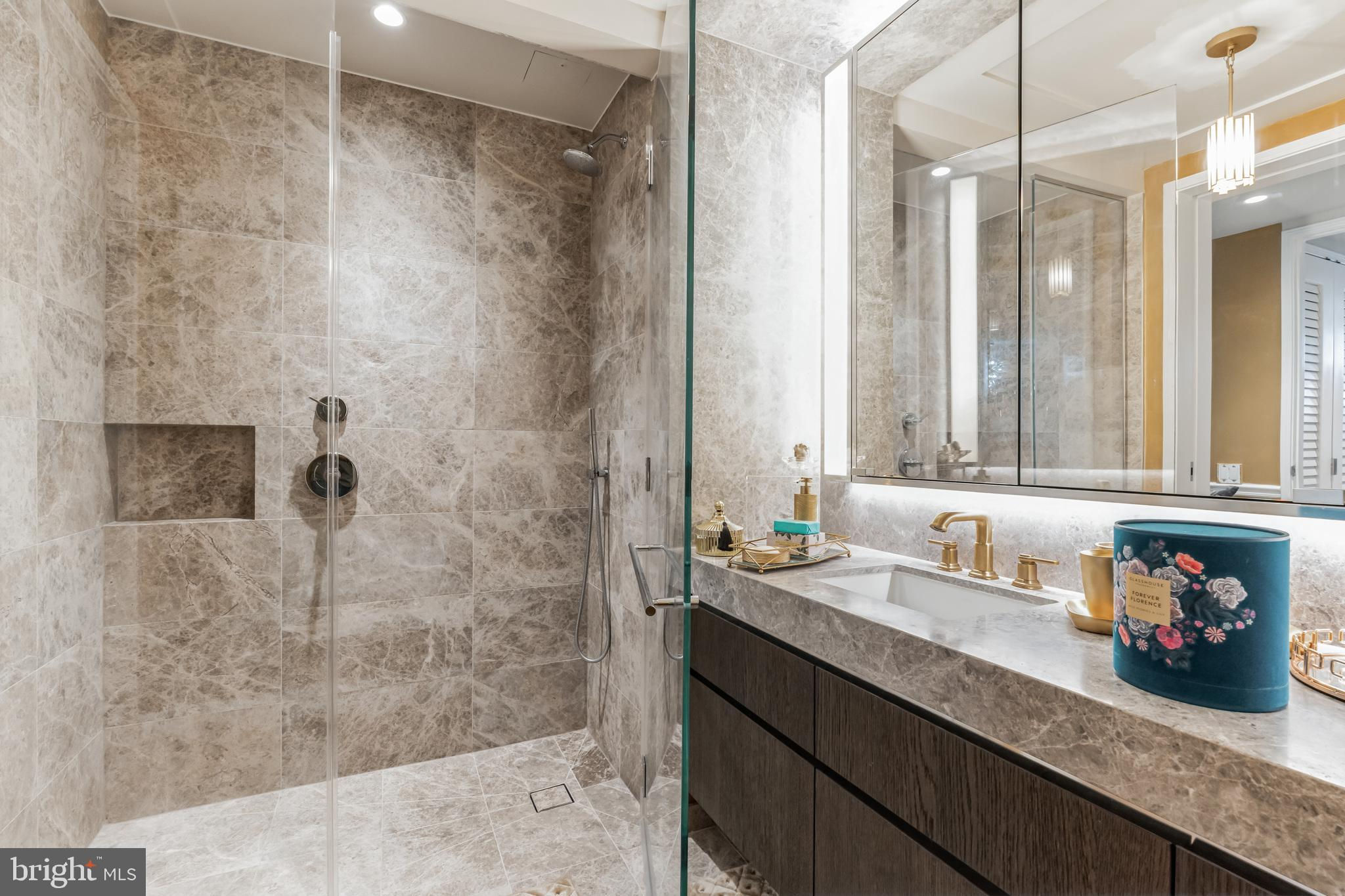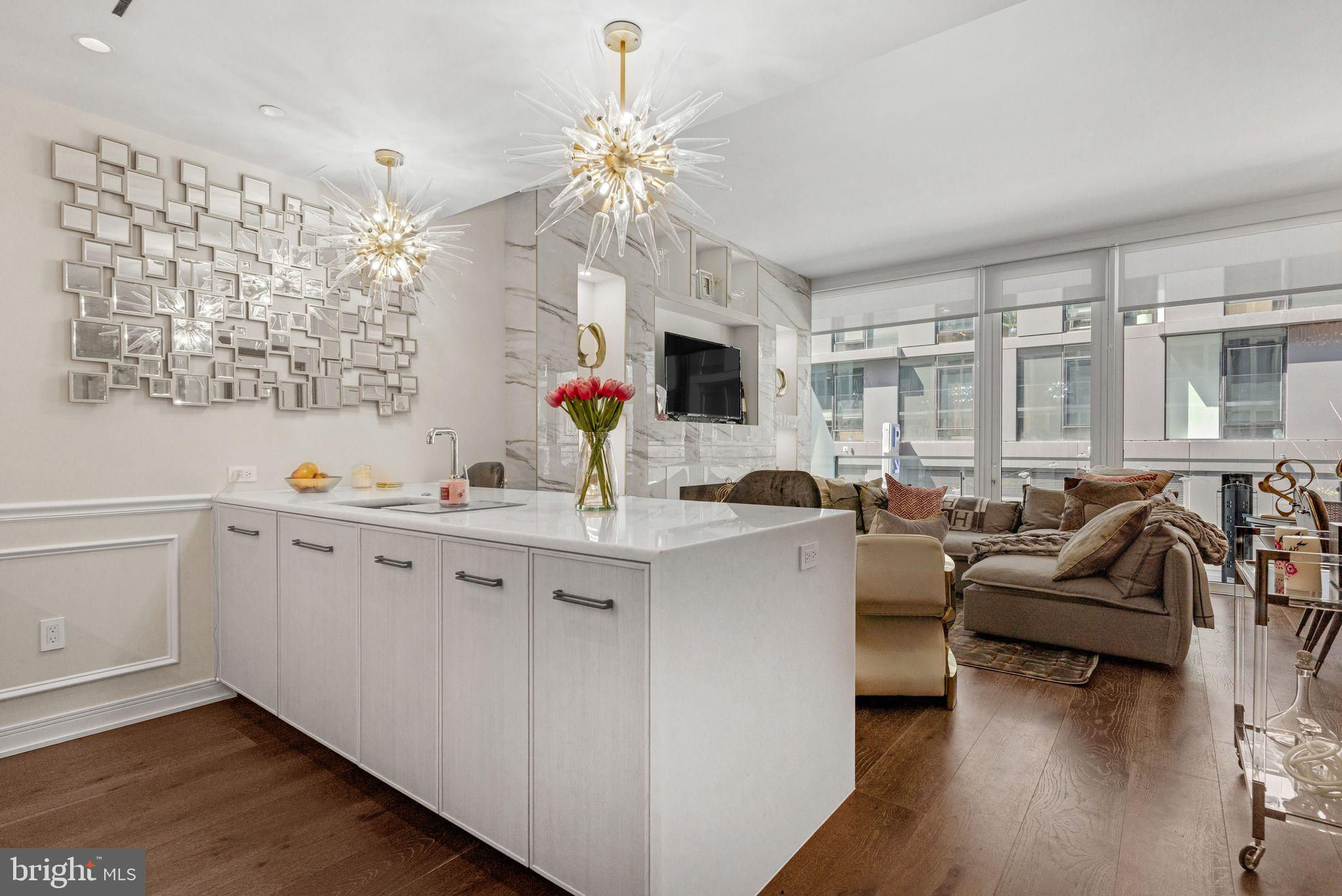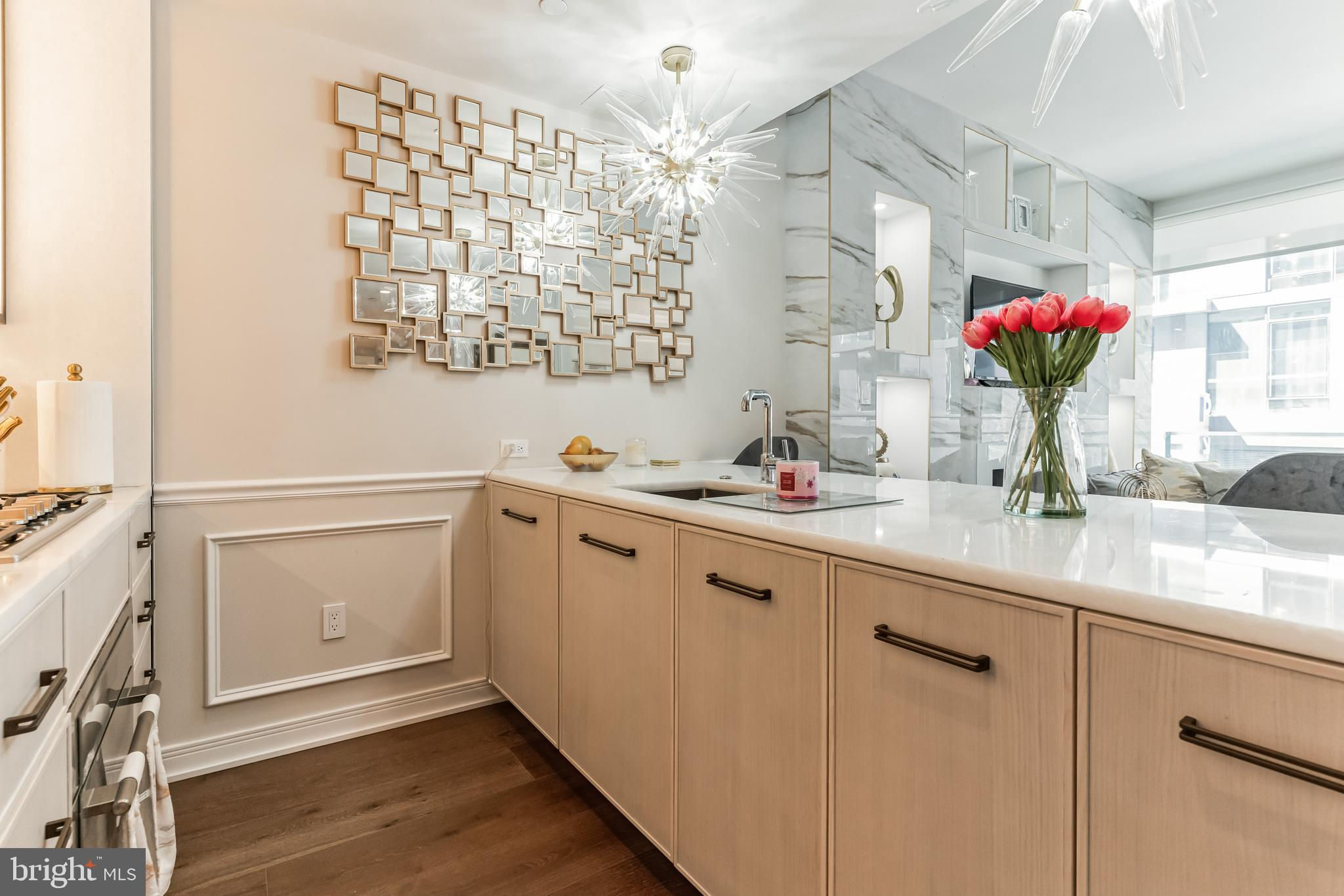 Presenting an exquisite one-bedroom, one-bathroom residence at Amaris, where meticulous design meets unparalleled sophistication, and the art of waterfront living is redefined. Crafted by a renowned NYC interior designer, this home is a testament to luxury and attention to detail, featuring special custom molding that adds an air of elegance and uniqueness to the space. The centerpiece, a marble fireplace, is adorned with carefully designed boxes, creating a focal point of both warmth and style. The gourmet kitchen, a masterpiece of functionality and style, boasts custom Italian cabinetry by Stevali, elegantly complemented by discreet under-cabinet lighting, and is equipped with state-of-the-art Thermador and Bosch appliances. Anchoring this culinary haven is a honed marble island, inviting both casual breakfasts and grand evening soirees. Step outside to the expansive balcony and embrace the serene views of The Green, a 1.5-acre oasis crafted by the esteemed landscape architect Michael Van Valkenburgh. Here, a striking raw marble fountain stands as the park’s majestic focal point, offering a tranquil retreat from the city’s bustle. Amaris elevates the concept of luxury amenities to create a sanctuary of wellness and relaxation. Residents enjoy an exclusive indoor, two-lane saltwater pool, alongside a spa and sauna that seamlessly extend into a comprehensive fitness center. The connectivity of the space is further enhanced by a bridge leading to a cozy lounge and an adjoining screening room, promising moments of leisure and socialization. The outdoor waterfront terrace, featuring a grilling area, unfolds into an expansive vista, providing an immersive experience of awe-inspiring views. The architectural brilliance of Amaris, envisioned by the legendary Rafael Viñoly, with interiors by the acclaimed Thomas Juul-Hansen, guarantees an environment of sublime aesthetics and rejuvenating amenities. Positioned within The Wharf, a vibrant waterfront neighborhood, residents have unparalleled access to a rich tapestry of events, culinary delights from chef-owned restaurants, boutique shopping, and over 17.5 acres of communal green spaces. This residence, where luxury design meets the art of waterfront living, reflects a philosophy where no stone was left untouched by the designer, ensuring every inch speaks to a refined lifestyle unmatched in its elegance.