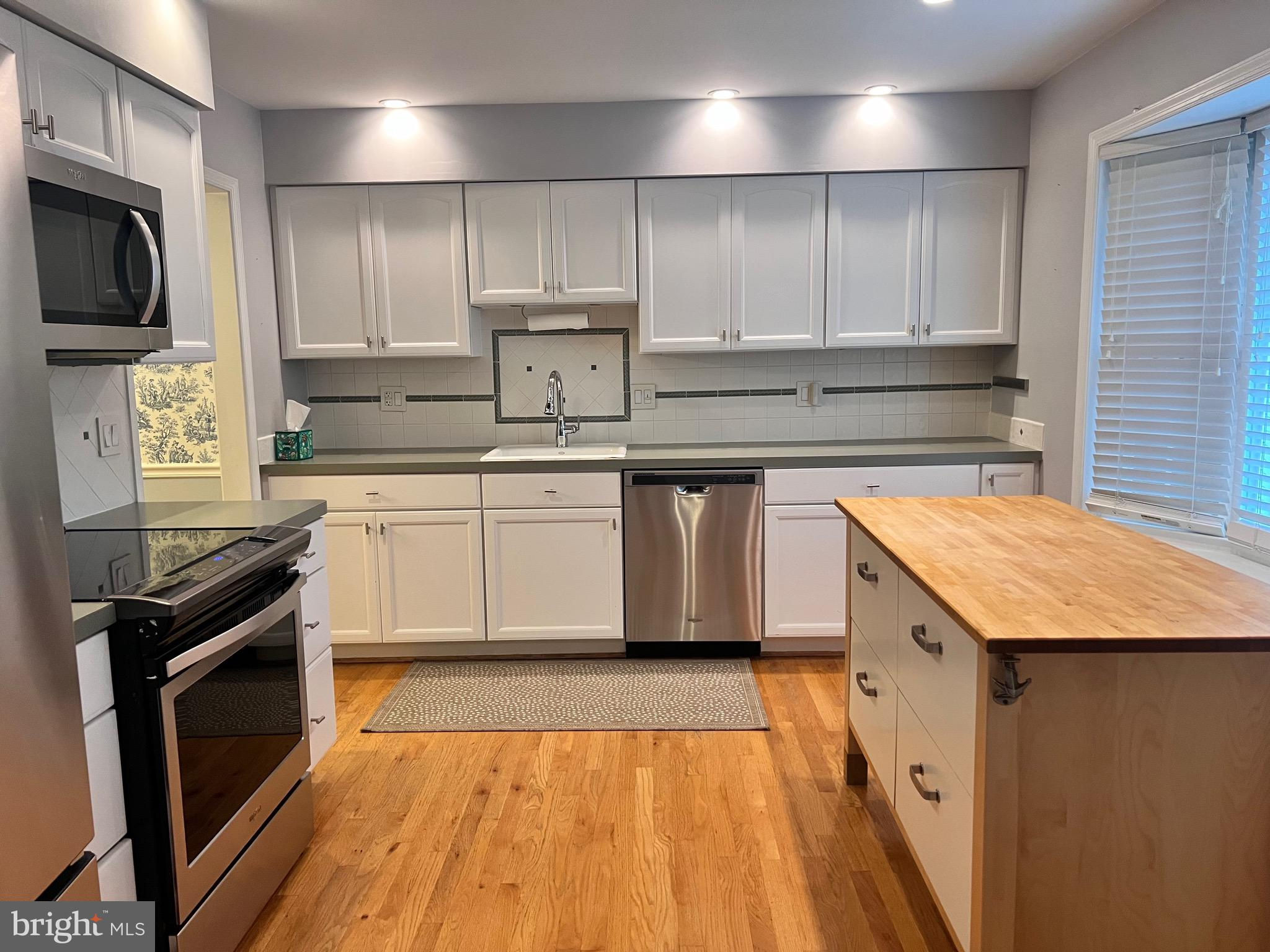 Rent this stately brick townhouse. Spacious and super clean. Gourmet kitchen with stainless appliances, white cabinets, Silestone counters, and wood-topped kitchen island. Separate dining room. Huge living room. 3 beds / 2 baths upstairs with huge primary bedroom with multiple closets. Big lower level family room walks out to walled outdoor courtyard. Full LL bath, washer / dryer, and big storage room with shelving. Great location with nearby bus service and easy access to I-395. Pets case-by-case.