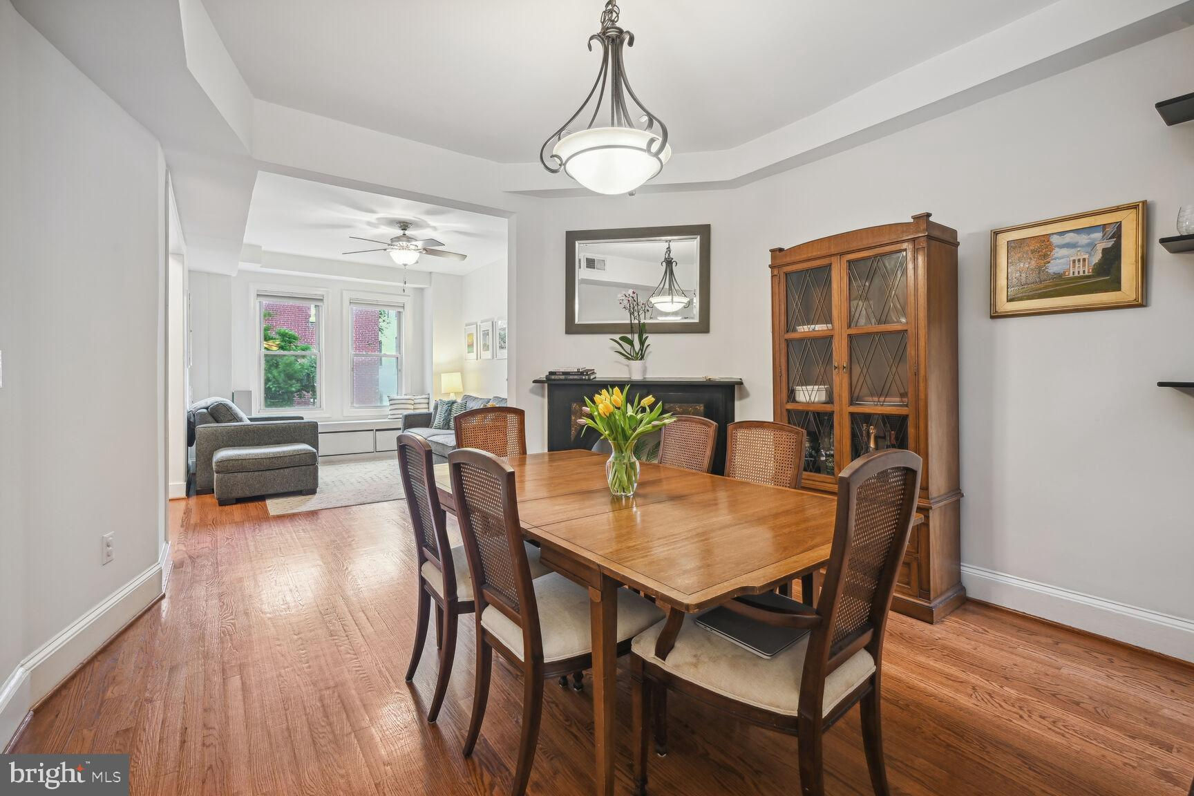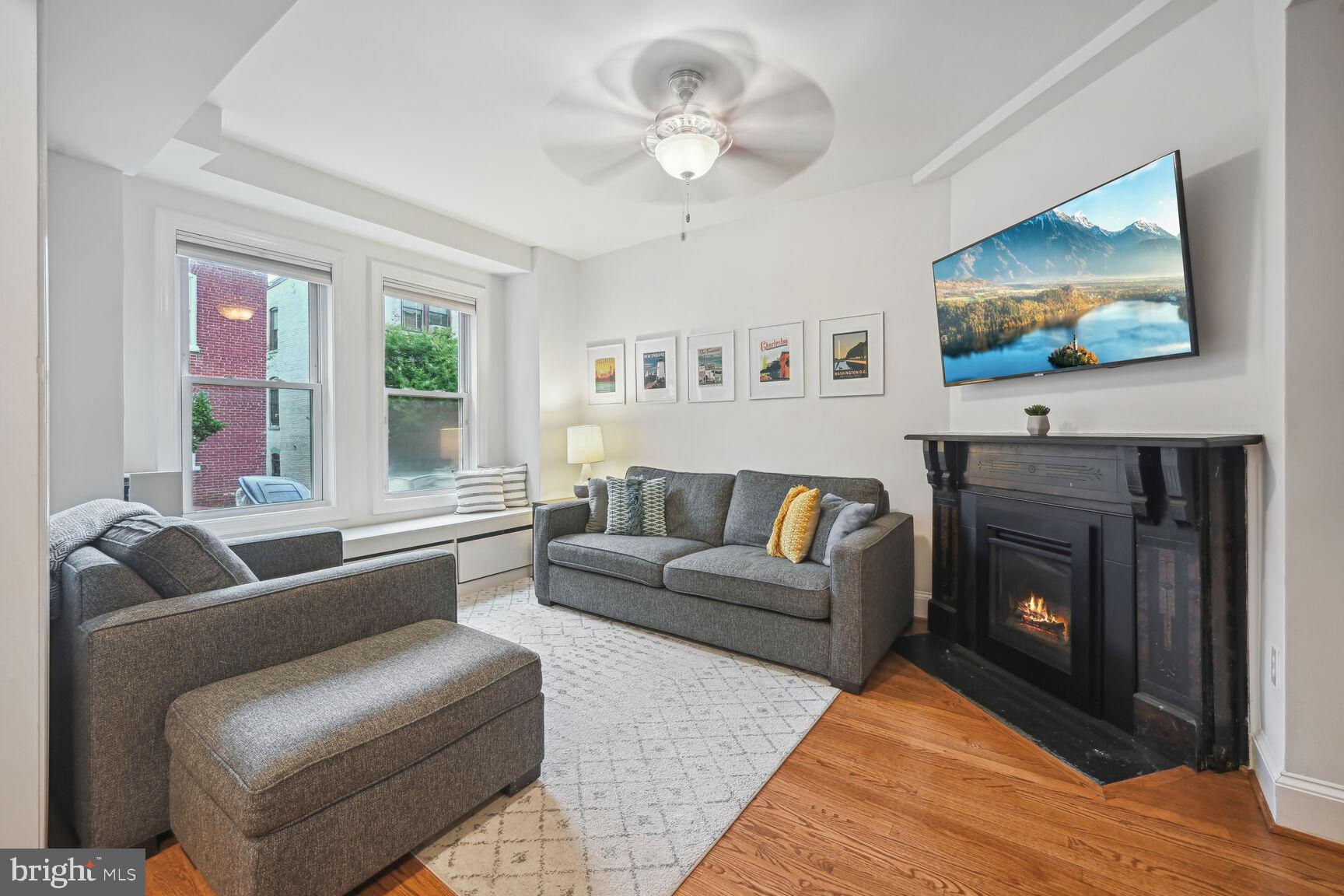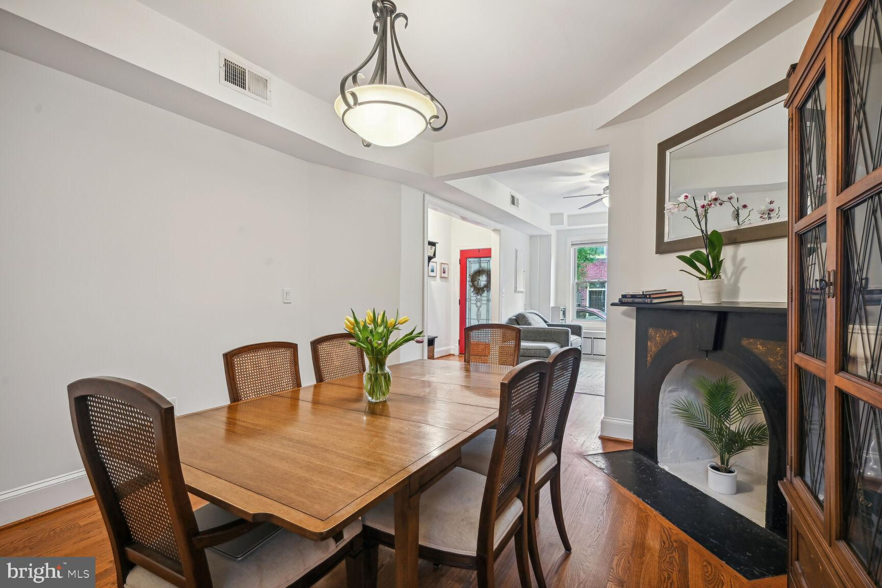 ***Potential to Assume VA loan @3% interest rate, if you are VA eligible. List Price and terms are different if exercising this option. Inquire for more information if you are VA Eligible. *** Welcome to this light-filled, beautifully appointed row home on highly coveted Acker Place in the heart of Capitol Hill. Enjoy quiet privacy just minutes from all that the Hill has to offer! Featuring three bedrooms and two-and-a-half baths, this terrific property is in move-in condition and ready for its new owners. Step through the welcoming entryway to the main level featuring hardwood floors and recessed lighting throughout. The bright and spacious living room has a new gas fireplace and a built-in window seat. The adjacent dining room features a second fireplace and plenty of space for a large dining table. Beyond, you’ll find the kitchen with newly painted cabinets and updated hardware, subway tile backsplash, stainless steel appliances, and a gas range, as well as access to the back patio. Entertain or relax outside on the two-tier, fenced-in back patio. A convenient laundry closet with built-in shelving and a powder room complete the main level. Upstairs, you’ll find a large primary suite with tons of natural light, custom window shades, multiple closets, and a stunningly updated bathroom with modern tile, built-in storage, and a walk-in shower. Two additional bedrooms feature great natural light and spacious closets with shelving. The bright white second full bathroom offers a shower/tub combo and is conveniently located between the two secondary bedrooms. Acker Place is a quaint tree-lined one-way street, just steps to Stanton Park, the H Street Corridor, Union Station, Union Market, Whole Foods, and so much more. The neighbors have lots of community fun including a Spring bake-off, a Fall chili cook-off, and weekly summer get-togethers for families in the alleyway. This home is the gem you’ve been waiting for in the heart of the Nation’s Capitol!