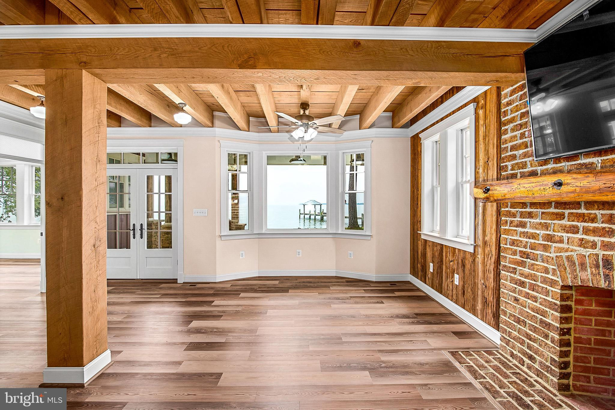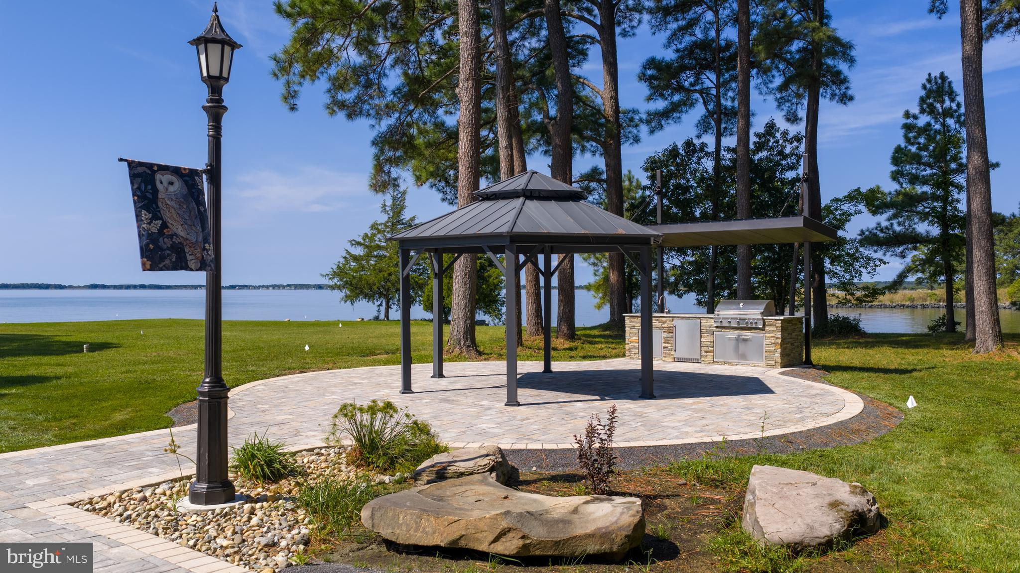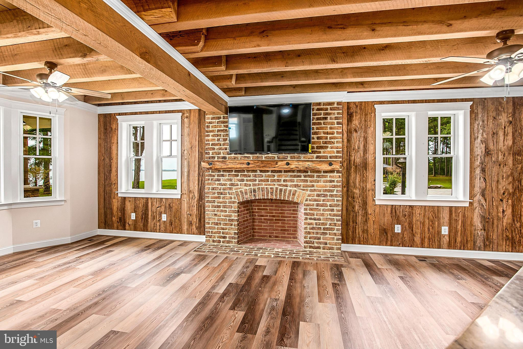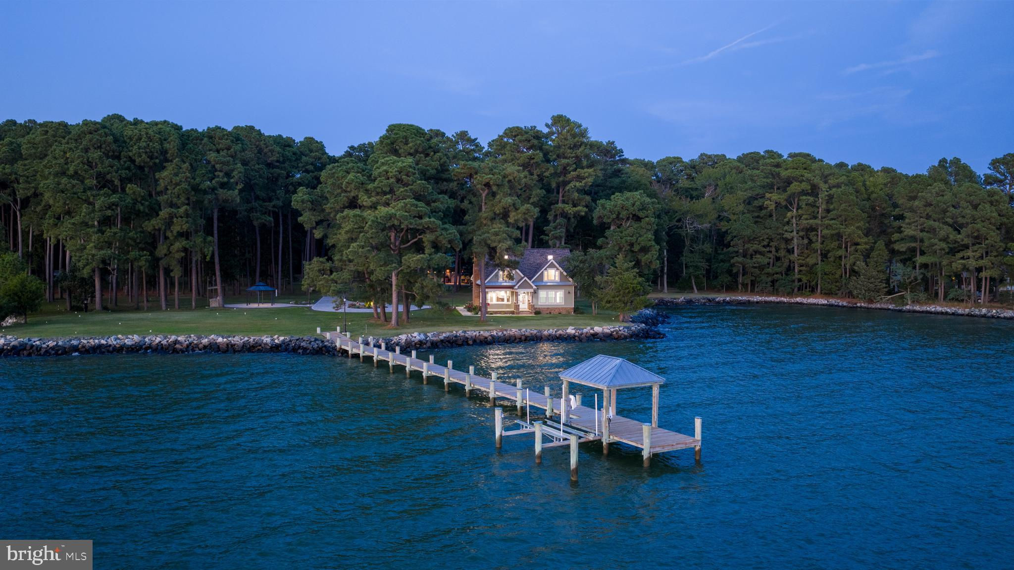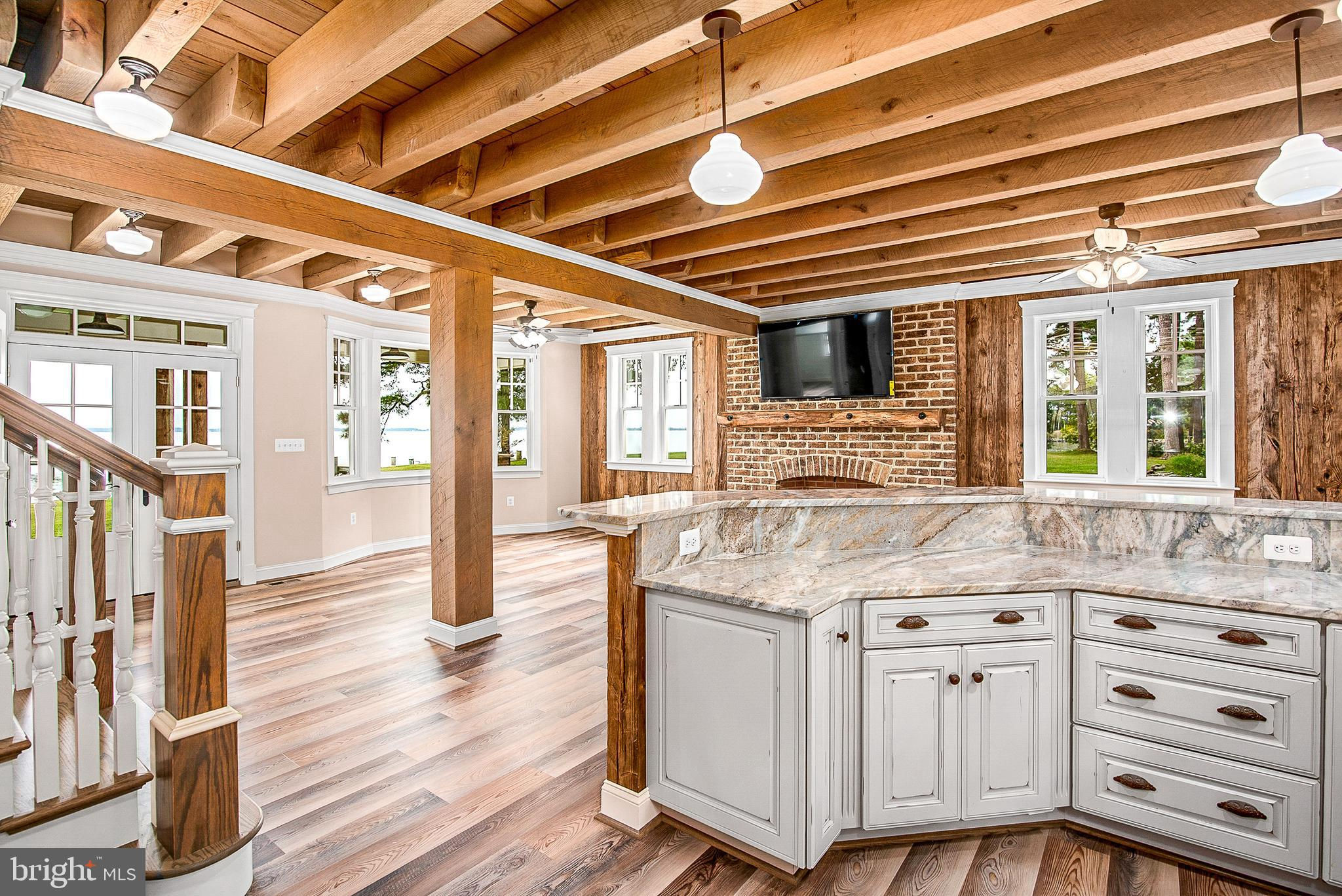 This extraordinary 10.6± acre property on the Choptank River and Harris Creek has been fully renovated, offering 1,500± feet of waterfrontage, a private 172’ L-shaped pier with boat lift, and sweeping views from nearly every room. The home’s interiors balance craftsmanship with modern convenience. The first-floor kitchen features Kraft Maid cabinetry, granite countertops, and stainless steel appliances, while the second floor adds a Sanibel cabinetry wet bar with granite surfaces and a wine cooler—ideal for entertaining. Warm details include hand-crafted oak beams and ceiling on the main level, custom poplar beams upstairs, and brick fireplaces with artisan oak mantels in both the great room and the primary suite. Every room reflects attention to detail, from custom trim and crown molding to solid pine doors with fixed glass transoms. Outdoor living takes center stage. A stone and block outdoor kitchen with stainless appliances, custom steel canopy, and gazebo with electric fan creates a striking space by the water, while brick and flagstone sidewalks, paver patios, and extensive hardscaping extend the living areas outside. The shoreline is protected with rip-rap, complemented by an irrigation system and manicured landscaping. Practical upgrades ensure peace of mind, including a climate-controlled crawl space with spray foam insulation, new Trane heat pumps, 200-amp services for the home and pole barn, plus 60-amp service on the pier. A 60' x 40' pole barn with 12’ ceilings provides room for boats, vehicles, and equipment. With its move-in ready renovations, 11 wall-mounted flat screen TVs, and durable finishes including natural stone, LP Smart Siding, architectural shingles, and standing seam metal roofs, this property is as functional as it is beautiful. It’s a rare retreat where timeless Eastern Shore character meets thoughtful modern upgrades.
