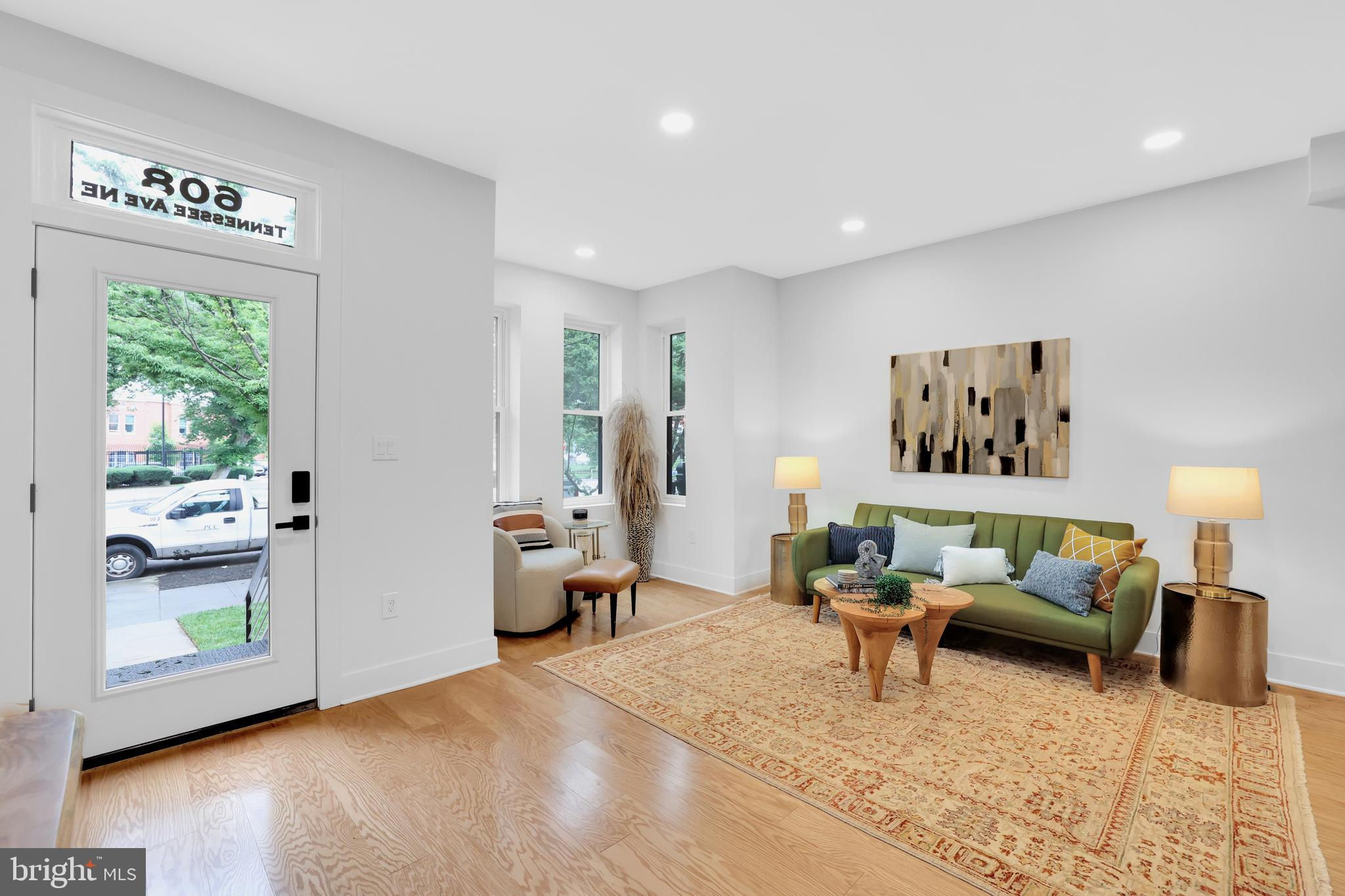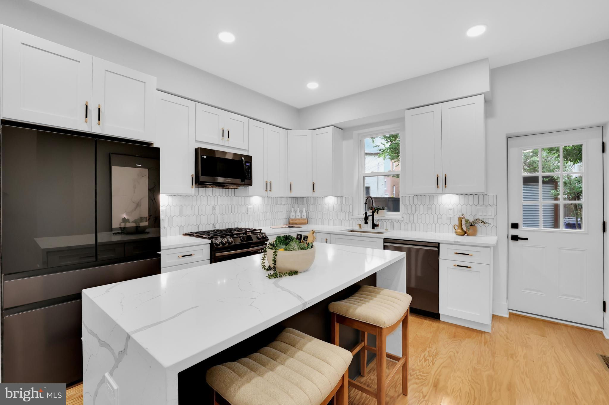 Just steps to parks, restaurants, cafes, and the bustling H Street Corridor. We are proud to present this gorgeous top-to-bottom renovation in Capitol Hill! This stunning Federal row home, has been meticulously restored and updated to suit modern living in every way. Boasting exposed brick, recessed lighting, hardwood flooring, open living spaces, generous closets, spa-like baths with custom imported tiling, and luxurious finishes throughout, this home is nothing short of magnificent. It includes a self-sufficient spacious lower-level apartment with a full kitchen and its own laundry, which can be ideal for as a SHORT-TERM RENTAL, au pair suite, or extended family living. There is also gated secured parking and green space in the rear. Built by Romulus Construction and Designed by Rising Sun Co, this a truly seamless blend of elegance and functionality.