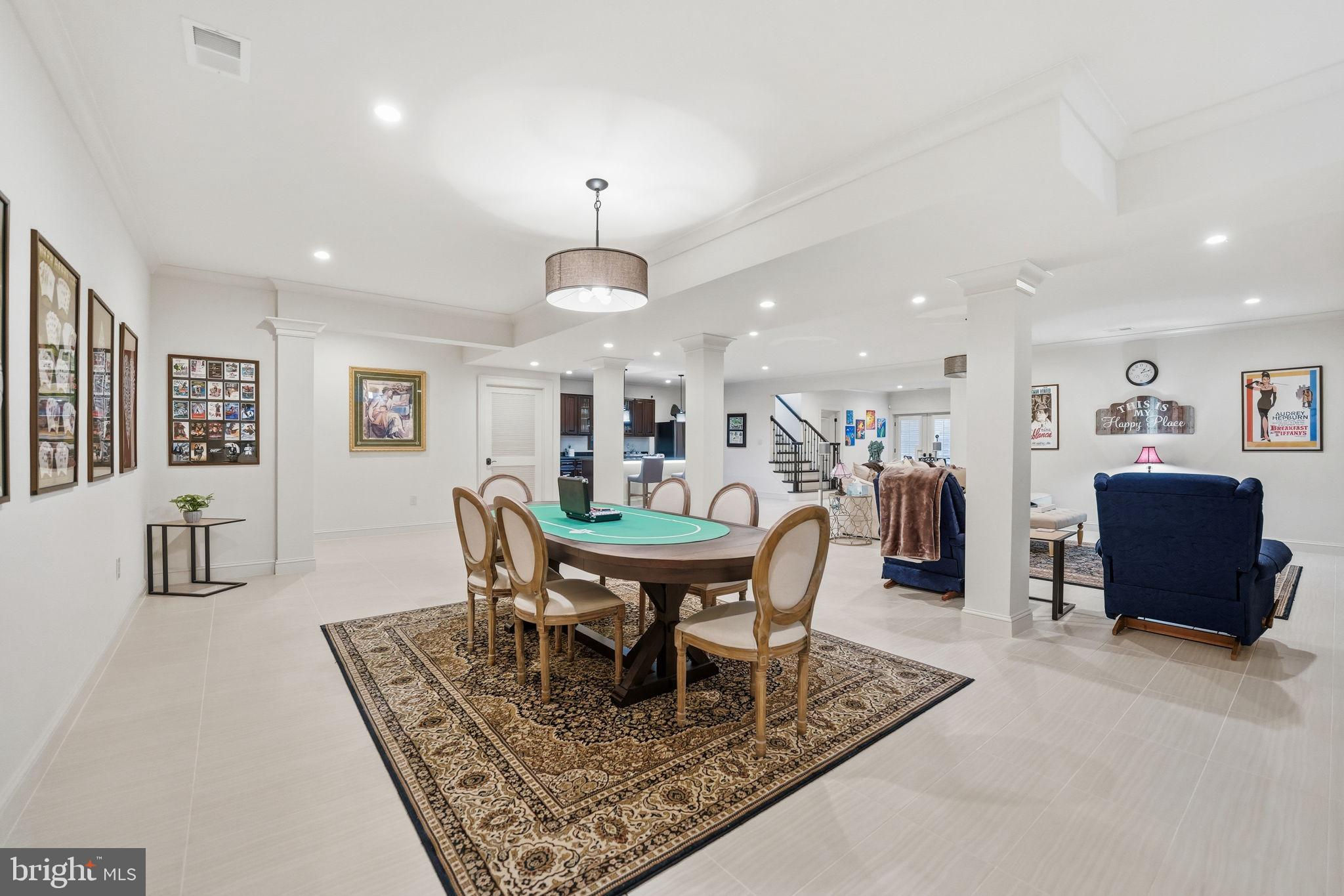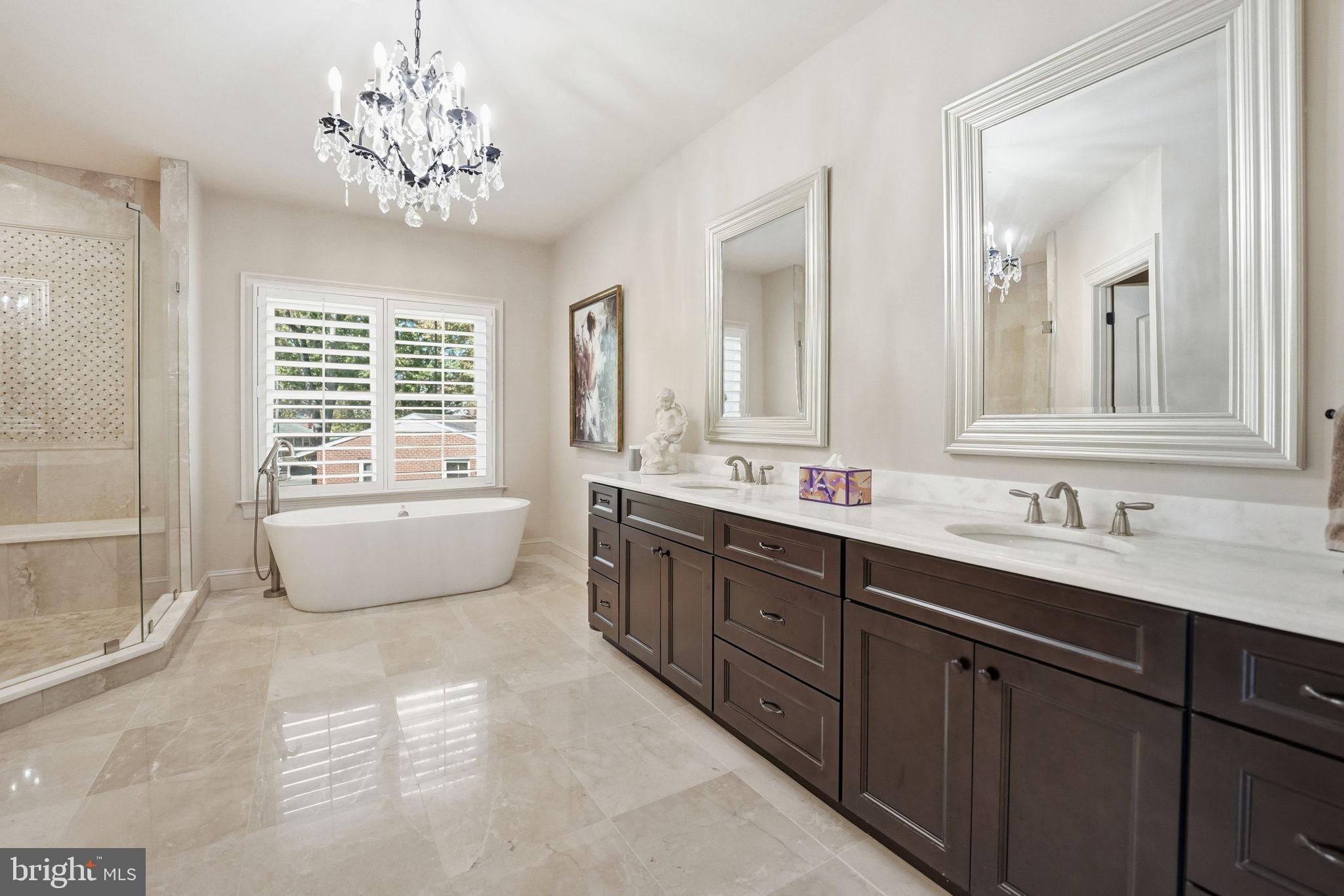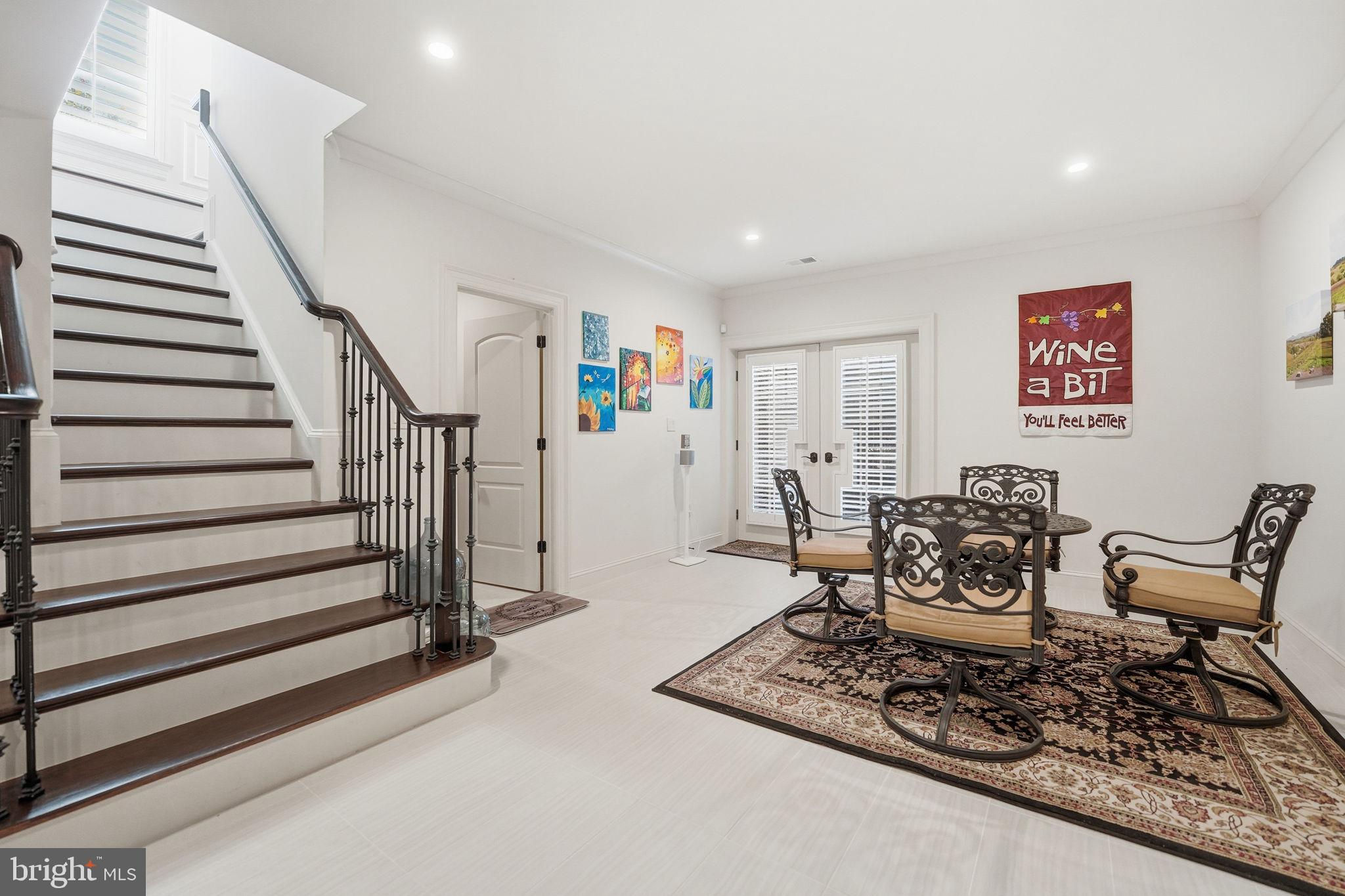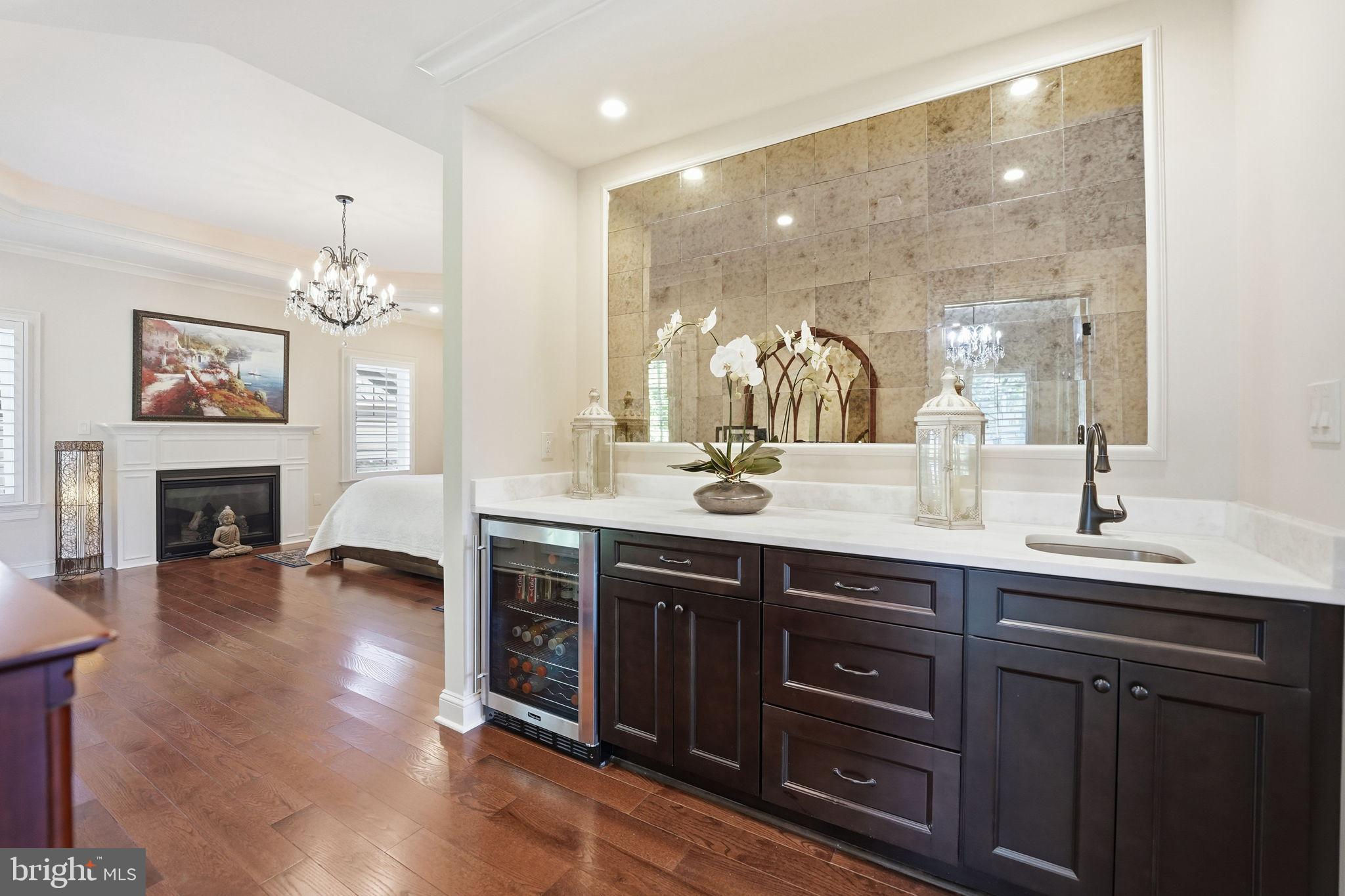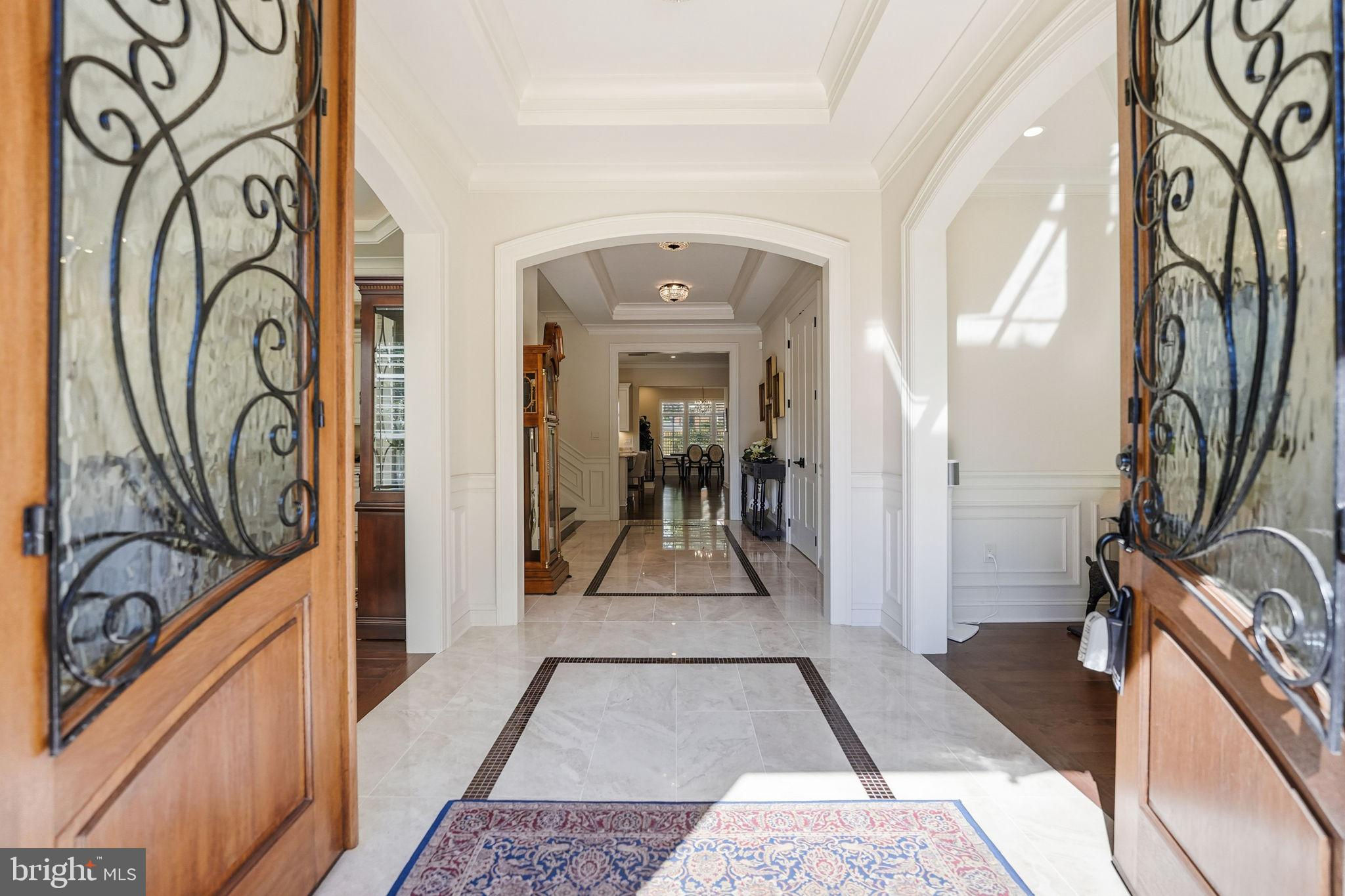 Welcome to this stunning custom-built residence, where timeless elegance meets modern luxury. Designed for both comfort and entertaining, this exquisite home showcases beautifully appointed living space across three finished levels. Main Level: Enter through a grand foyer with marble floors and tray ceilings, setting the tone for the sophistication throughout. Soaring 10’ ceilings, rich hardwood floors, and plantation shutters accent the open, light-filled spaces. The chef’s kitchen is a true showpiece, featuring an oversized center island with seating and storage, granite counters, and stainless steel appliances including a Kucht 6-burner gas range and double wall ovens. A sunny breakfast room opens to the rear patio, while the inviting family room boasts a coffered ceiling, gas fireplace, and French doors leading outside—perfect for indoor-outdoor living. Formal dining and living rooms each feature tray ceilings, with a butler’s pantry and wine fridge adding convenience. A main-level bedroom and a well-designed mudroom complete this level. Upper Level: 10’ ceilings and hardwood floors continue upstairs. The luxurious primary suite offers a grand double-door entry, a spacious sitting area, tray ceiling, and a cozy gas fireplace that adds warmth and charm. French doors open to a private balcony, while a coffee bar with wine fridge and sink adds a touch of indulgence. Additional bedrooms include an au pair/nanny suite or office with ensuite bath and private staircase, plus three more spacious bedrooms (one ensuite and two sharing a Buddy Bath). A separate laundry room adds practicality. Lower Level: Designed for relaxation and recreation, the lower level features 9’ ceilings and ceramic tile flooring. The expansive rec room offers ample space for media, dining, and game areas, complemented by a kitchenette with island seating, under-cabinet lighting, sink, and wine fridge. A bedroom and full bath provide guest accommodations, while a wine room with storage for 300+ bottles and a bonus workout room complete this level. Outside, enjoy a spacious patio ideal for gatherings and quiet moments alike. Located in a sought-after Vienna neighborhood, this exceptional home is close to shops, dining, parks, commuter routes, 1 mile to the Vienna Metro Station —offering refined living in a prime location.