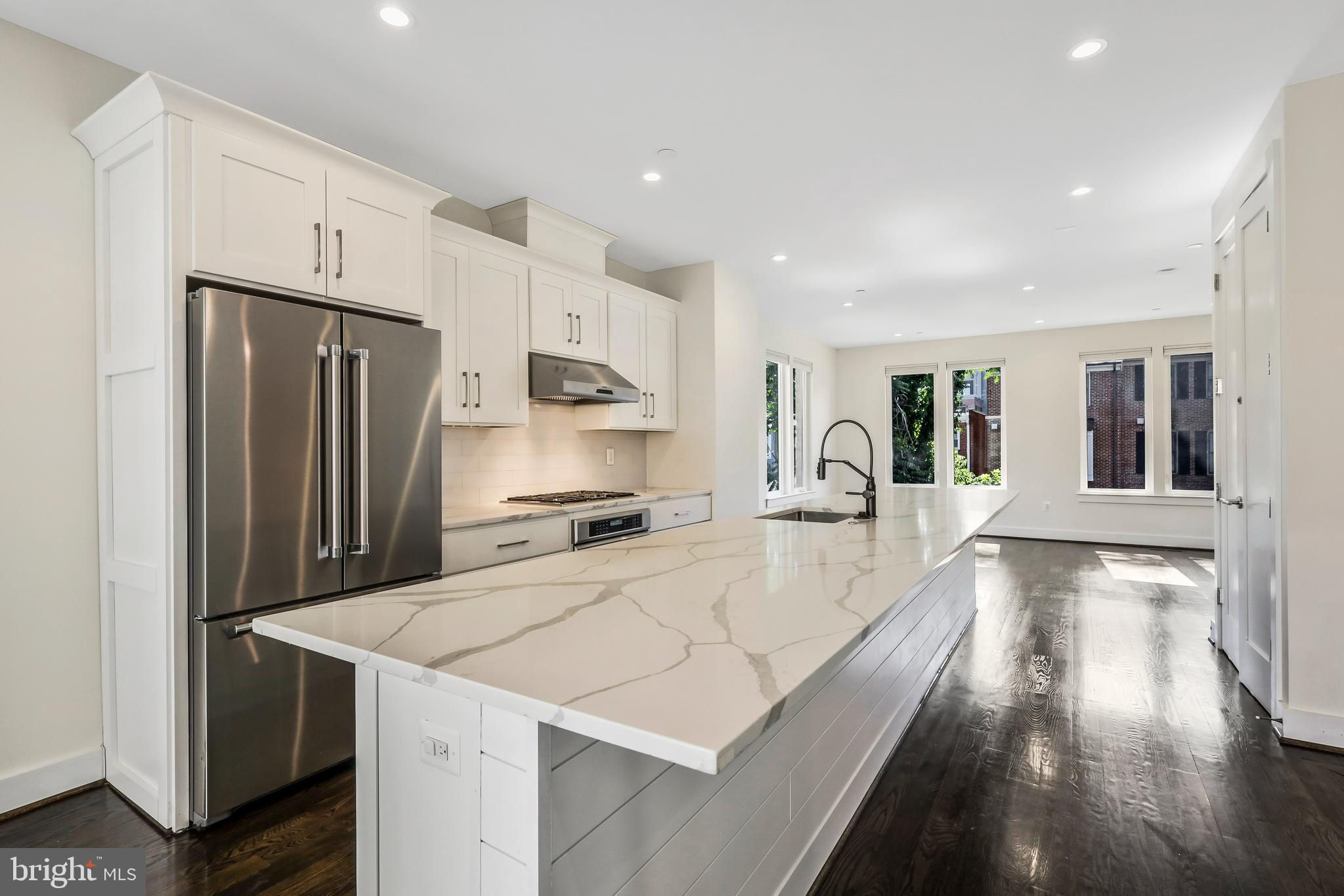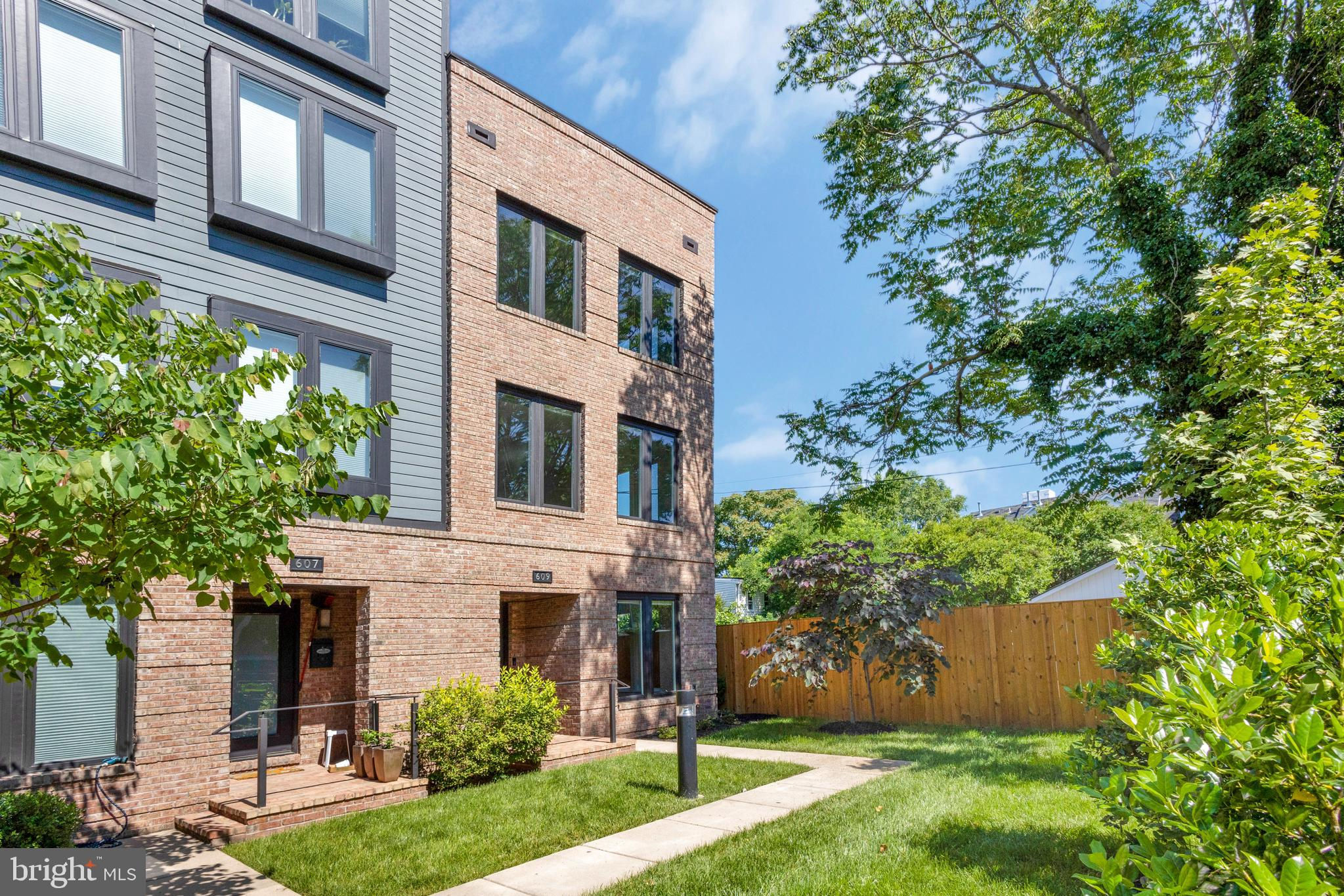 Never before available! Luxury living at its finest in this stunning 4 level contemporary end unit townhome nestled in a welcoming private community in the heart of Old Town Alexandria! Close to Metro (Braddock Road - yellow and blue lines), GW Parkway, Airport, Amazon HQ2, Virginia Tech Campus. Walking Distance to King Street as well as the waterfront, fitness centers, and trails. Close to the Pentagon, Arlington and easy access to DC. With a walk score of 94 this is a walker's paradise, with a Starbucks right across the street! You will be impressed the moment you arrive with the beautiful brick exterior, the landscaped yard, and the covered porch. After parking your cars in the attached 2-car garage with built-in storage, you'll enter the spacious downstairs living room. Going upstairs, you'll find a luxurious open floor plan complete with living room, gourmet kitchen, and a dining area. The kitchen is any chef's dream with quartz countertops, stainless steel appliances, and a huge 15-foot island with a breakfast bar. Moving up to the 3rd floor, you'll find the primary suite complete with a huge walk-in closet and en-suite bathroom, along with an additional bedroom and full bath. The 4th floor offers a private loft and additional bedroom with a full bath, and access to the rooftop deck to enjoy every season with your built-in natural gas grill and fire pit! Call today for your private showing!