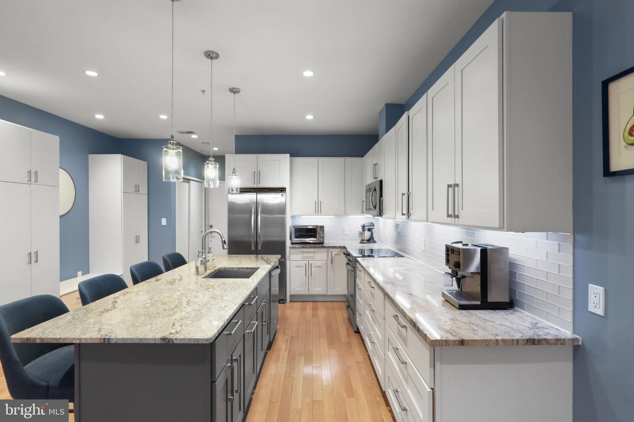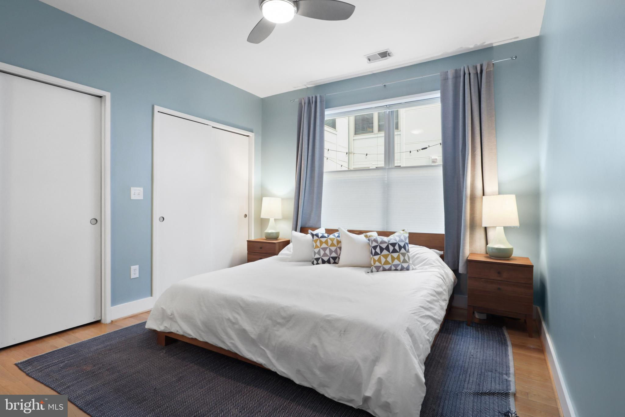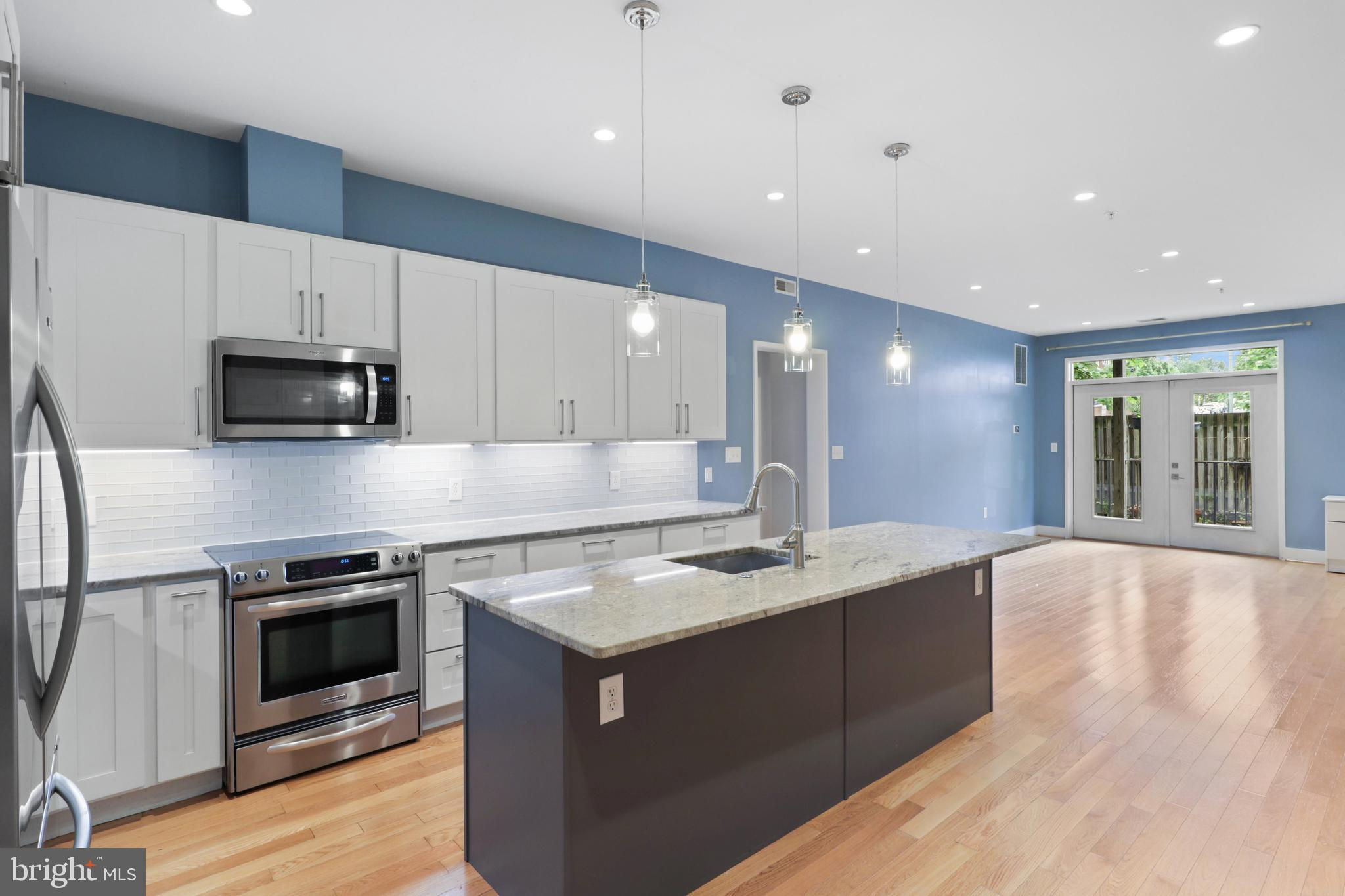 Welcome to this 2-bedroom, 2-bathroom condo in Park View. As you enter the condo, sunshine fills this home easily through the open concept living/dining and kitchen area. The kitchen features a combination of blue-grey cabinets at the four-seat island and white outer cabinets for contrast. The kitchen has gorgeous granite counters, stainless-steel appliances, and a glass backsplash. Premium custom built-ins create a natural flow to the open concept with an entertainment section, home office desk, and hall closets. Head from the French doors out to your deck. The deck space is private and the yard is shared space with one other condo. Electrolux washer and dryer are in the linen closet in the hall. The primary bedroom features 2 huge closets, recessed lights, and an en-suite bathroom with a double vanity, large shower, and marble tile. The second bedroom features a huge closet and 2 bike racks. The hall bathroom has a large soaker tub. The 12-unit building was renovated in 2014 and Unit 3 is part of the 2014 addition. Walk to the metro in 5 mins! Only 0.3 miles to GA Ave-Petworth Metro station. This condo is steps away from Park View hotspots such as Midlands, Heat Da Spot, Call Your Mother, and Reliable Tavern. Walk to Safeway in 7 mins, Giant in 10 mins, and Target in 12 mins. Walk score 92. Bike score 87. Improvements: Dishwasher and microwave, new in 2023; Nest thermostat and smoke detectors, premium built-in cabinets (retail for over $10,000). The buyer may qualify for a Welcome Home Grant of $10,000. Please see flyer in documents section for more details.